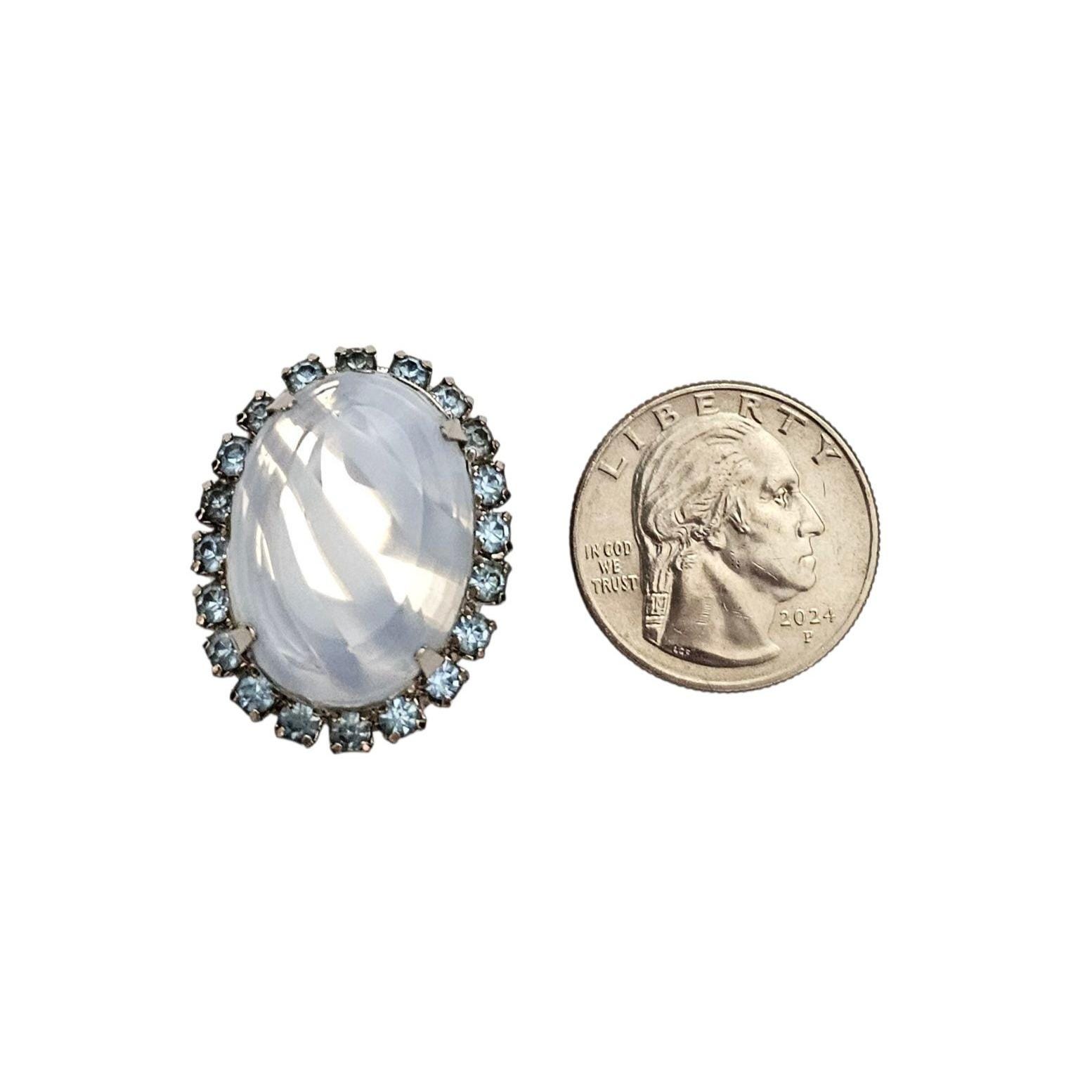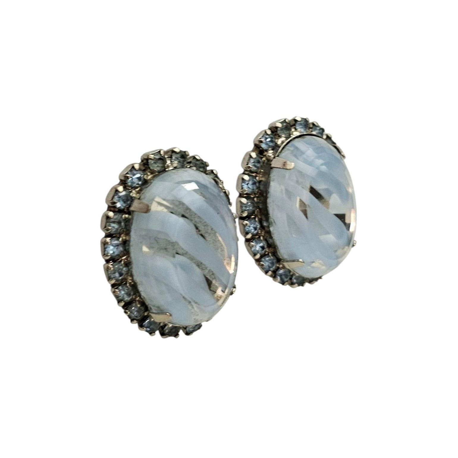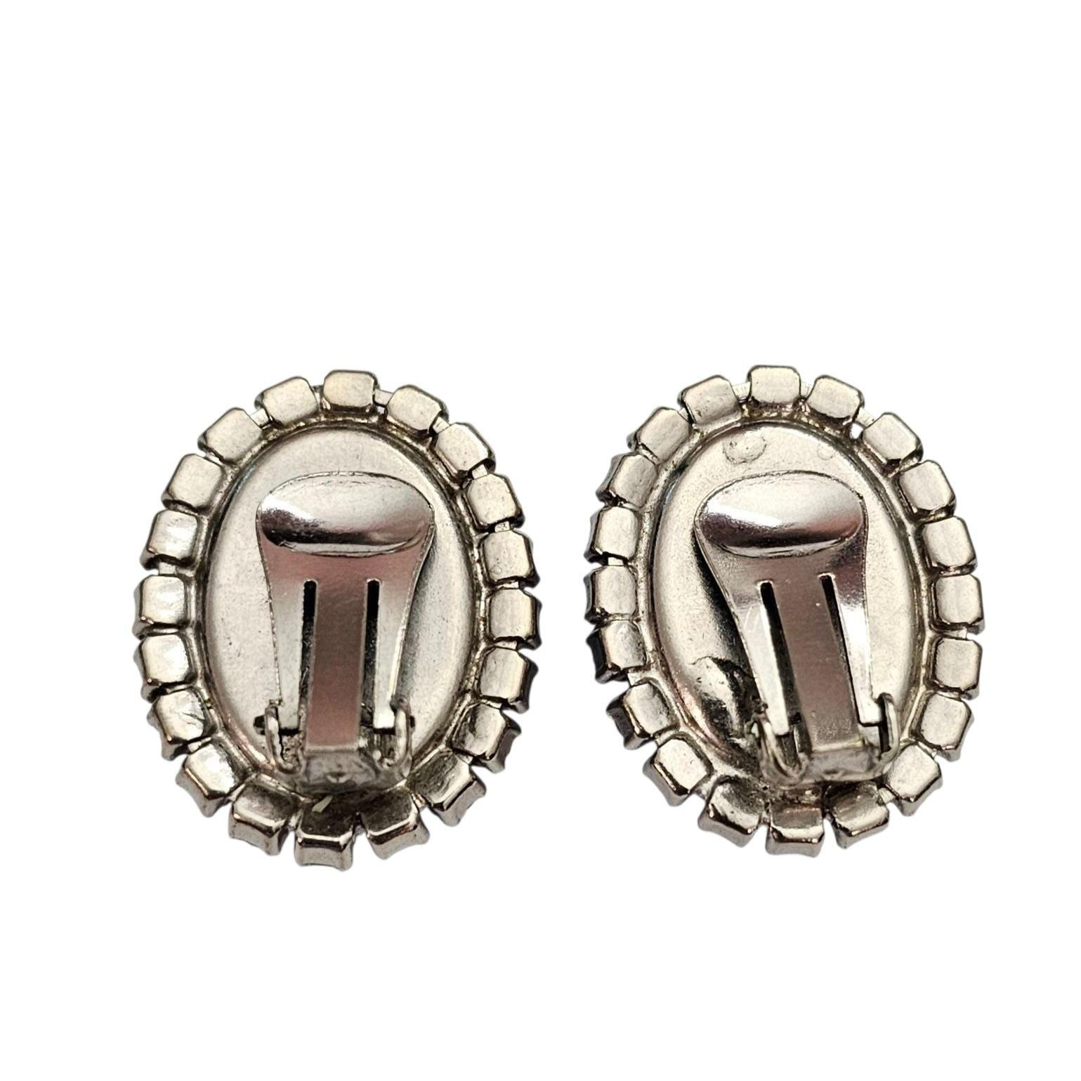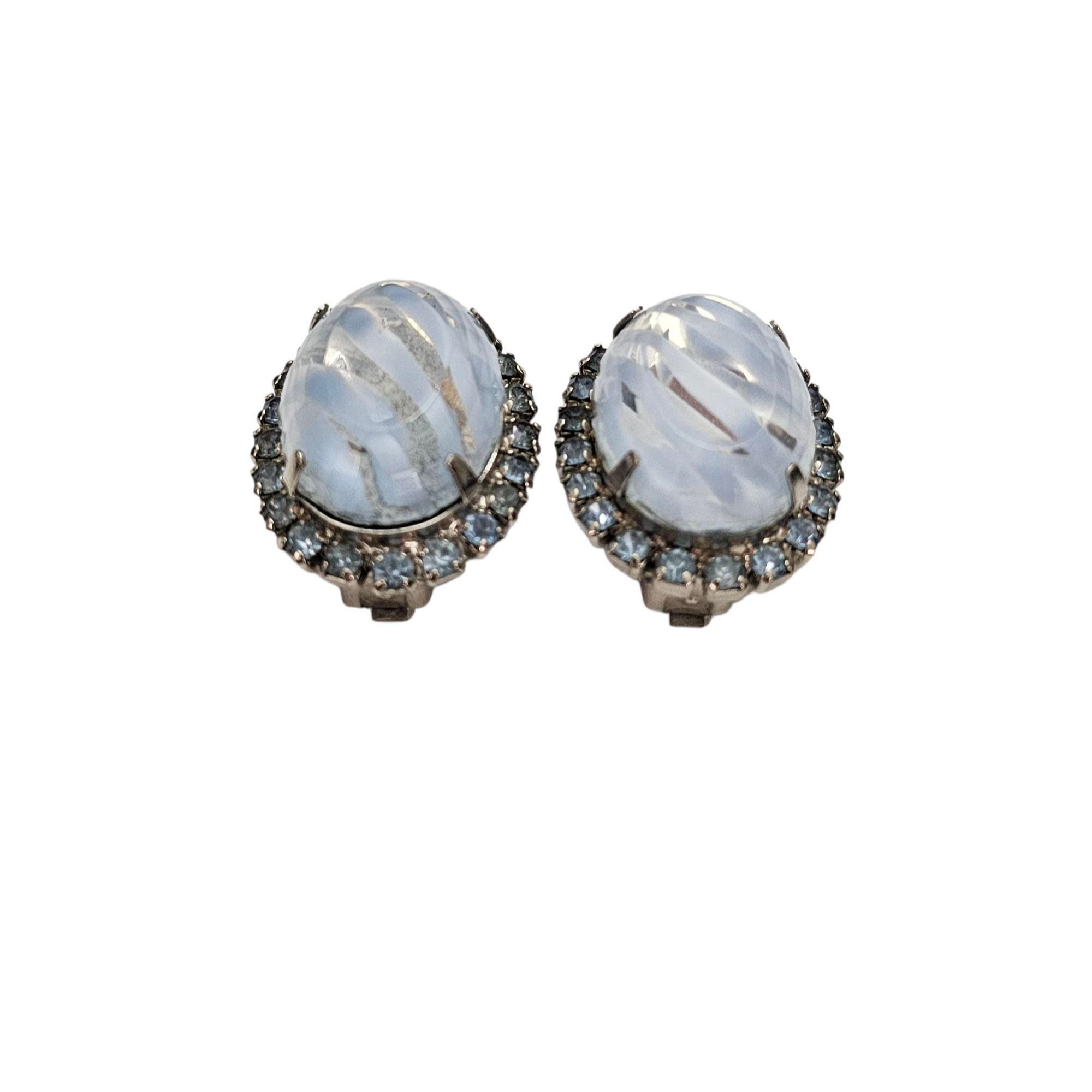 Givre Blue Vintage Clear Oval Clip On Blue Rhinestone Earrings C394