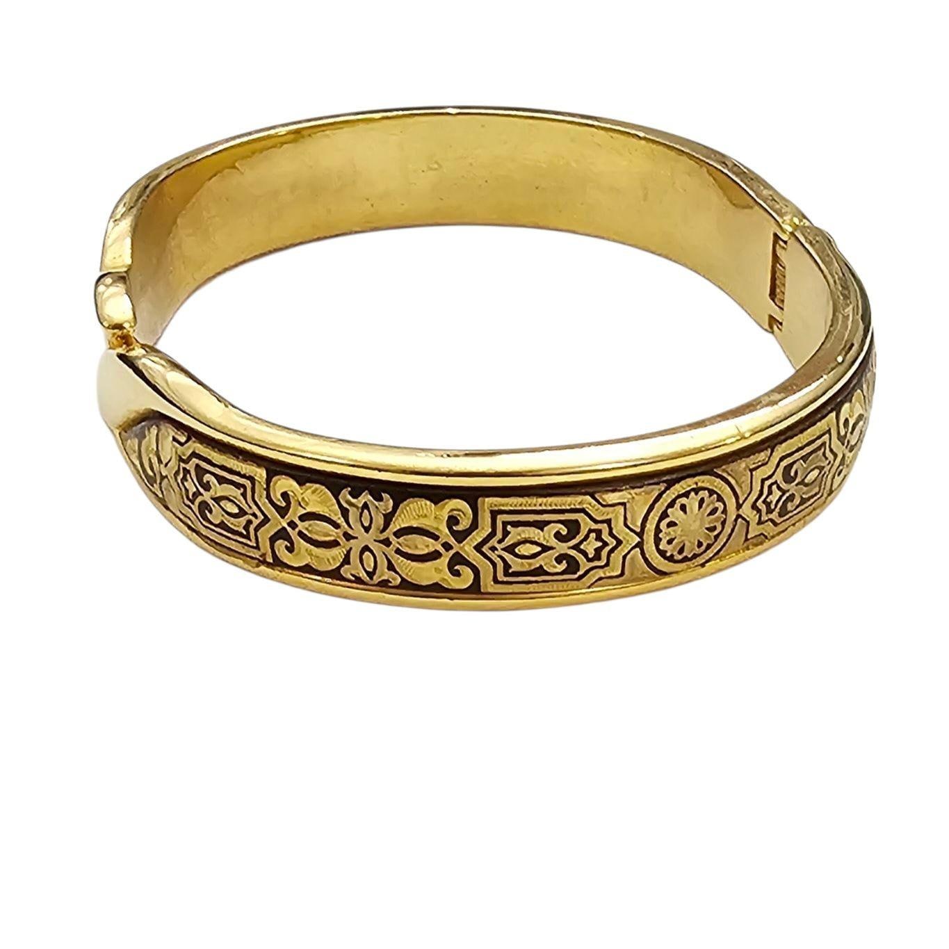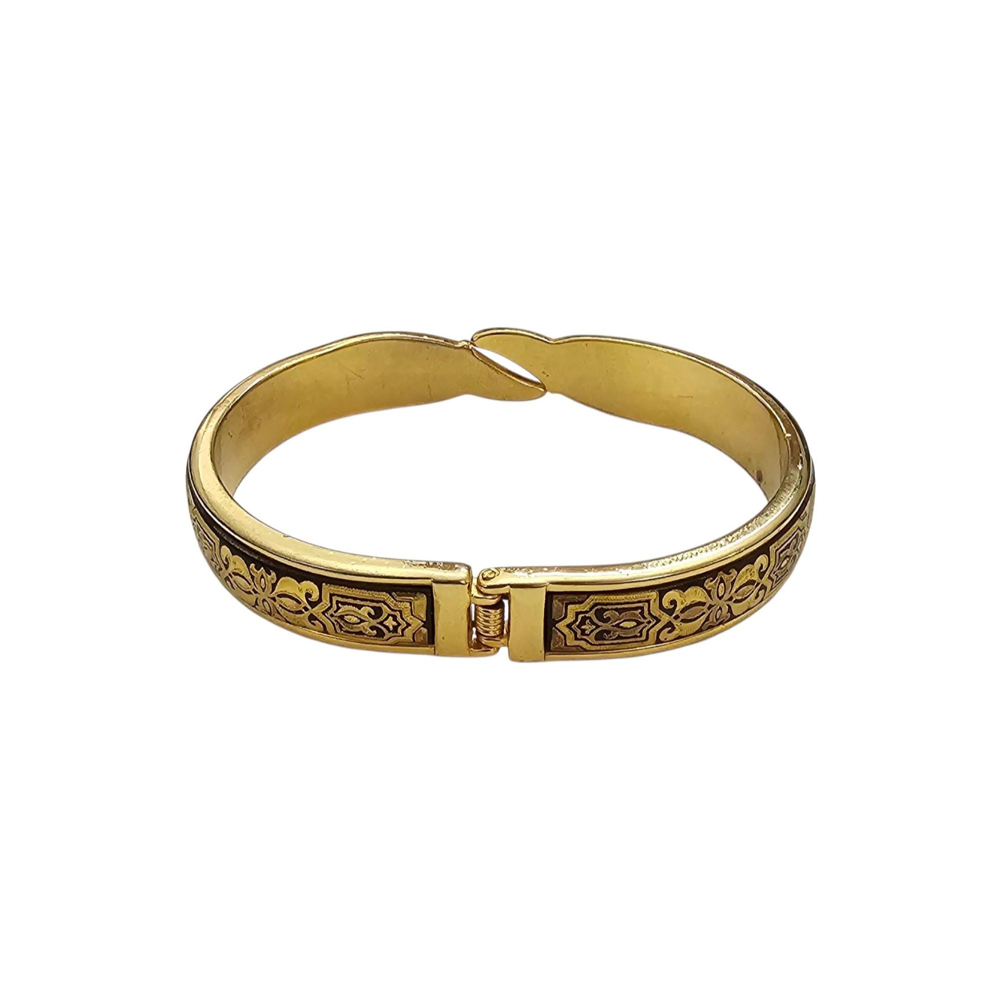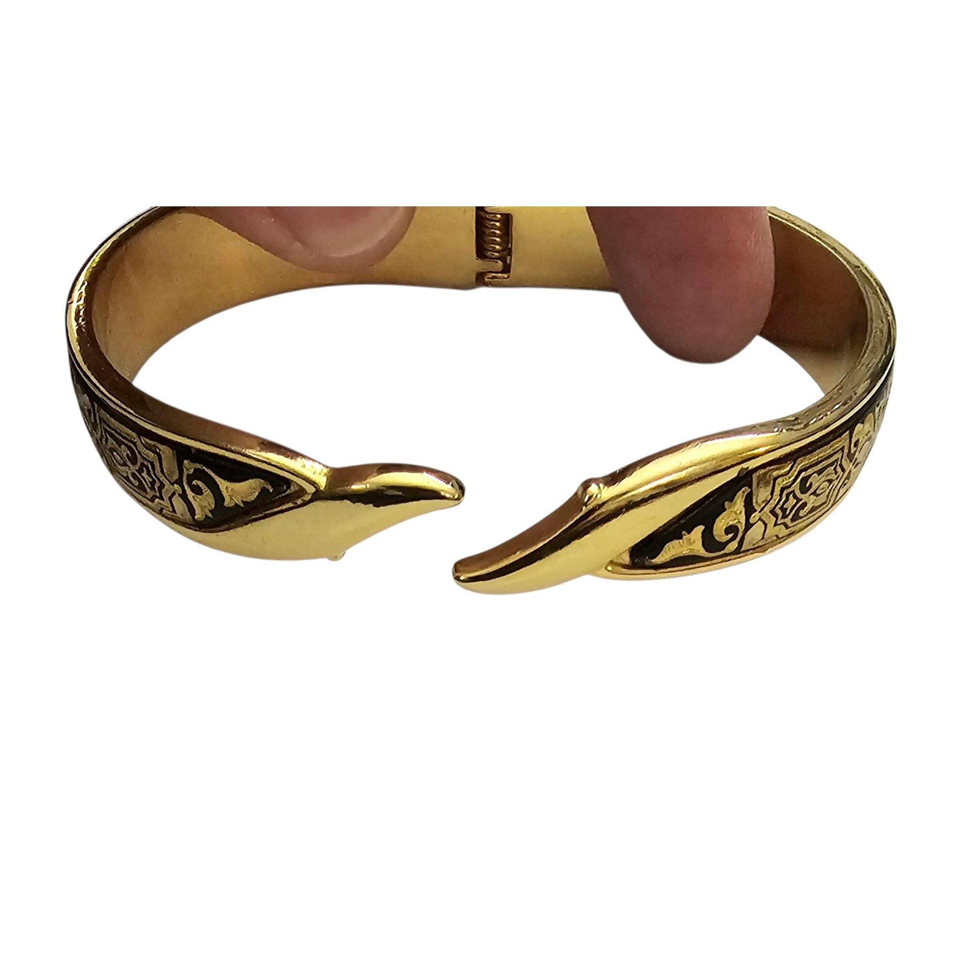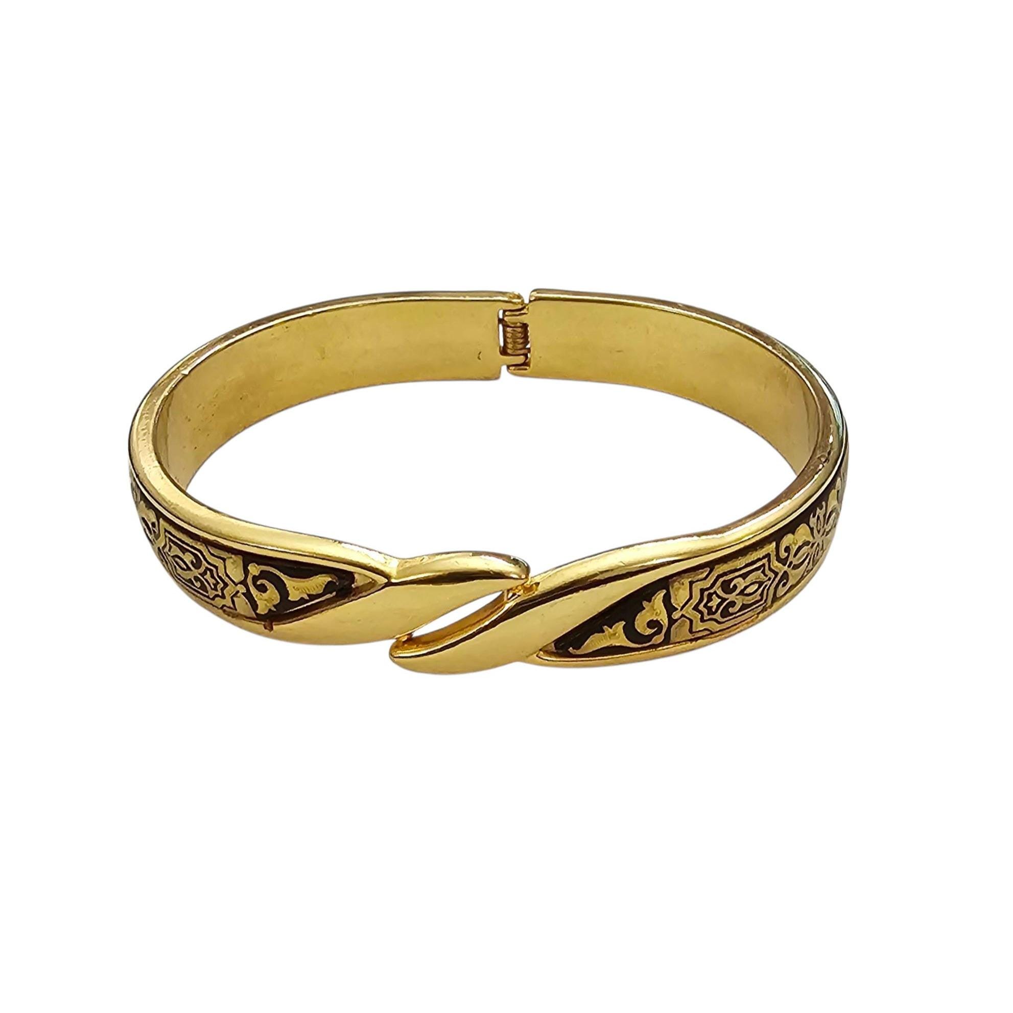 Gold Tone Vintage Hinged By Pass Damascene Cuff Bracelet C391