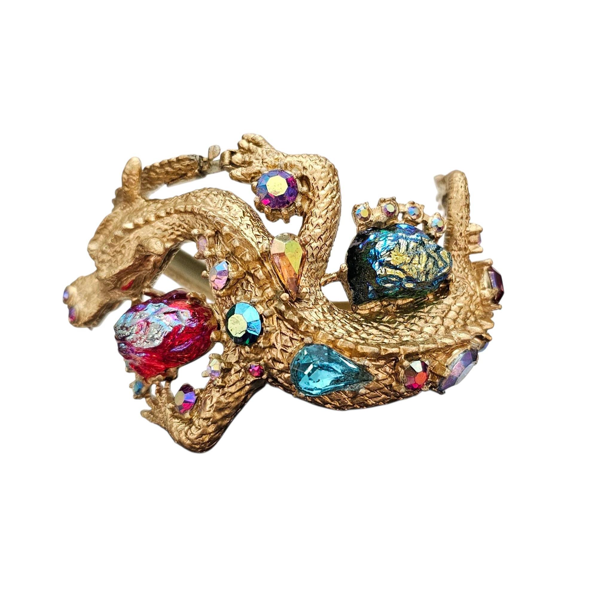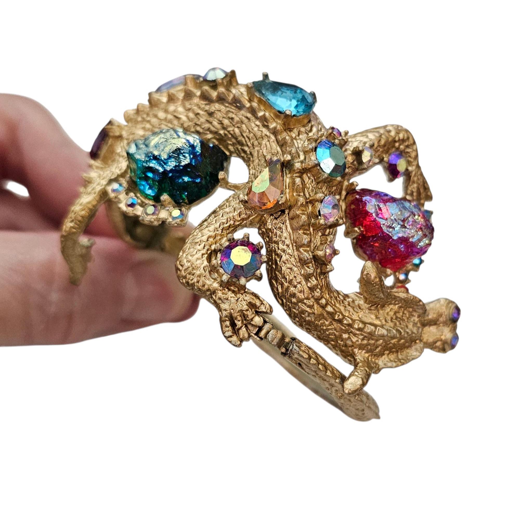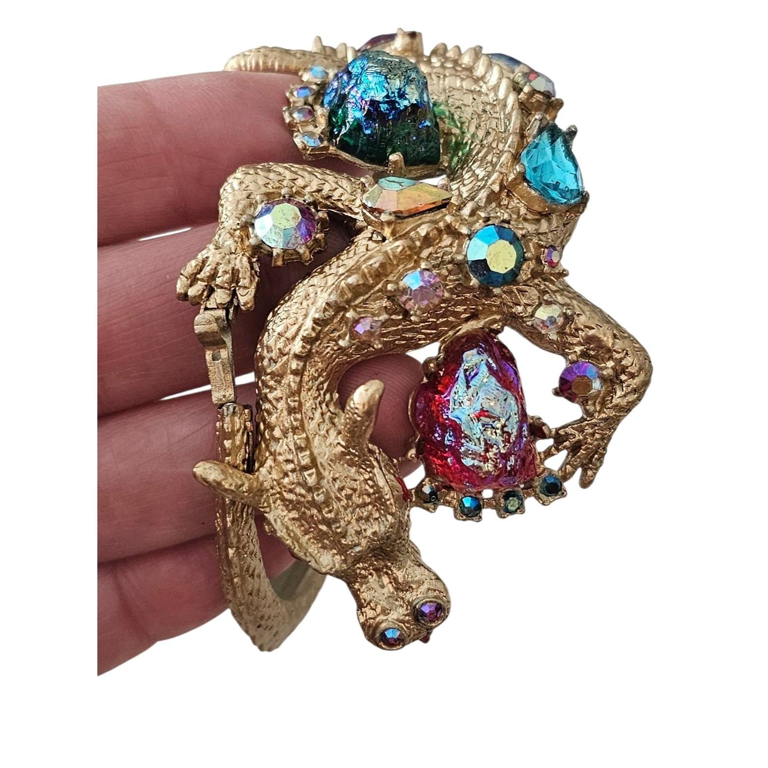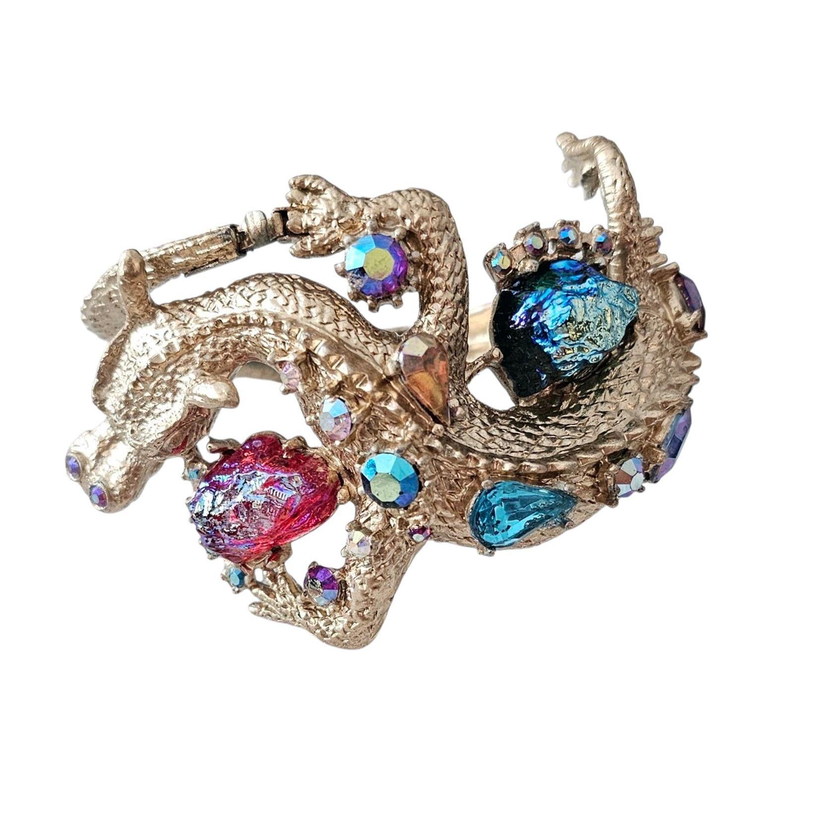 Judy Lee Hinged Dragon Bracelet Rare Signed, Lava AB Rhinestones, Restored, Repaired C392