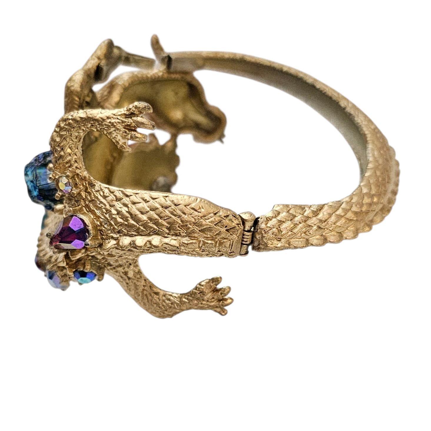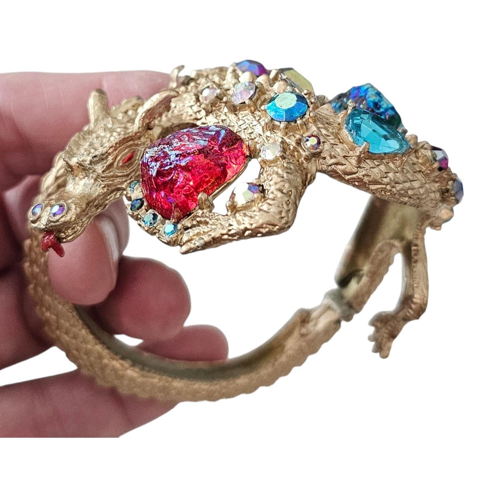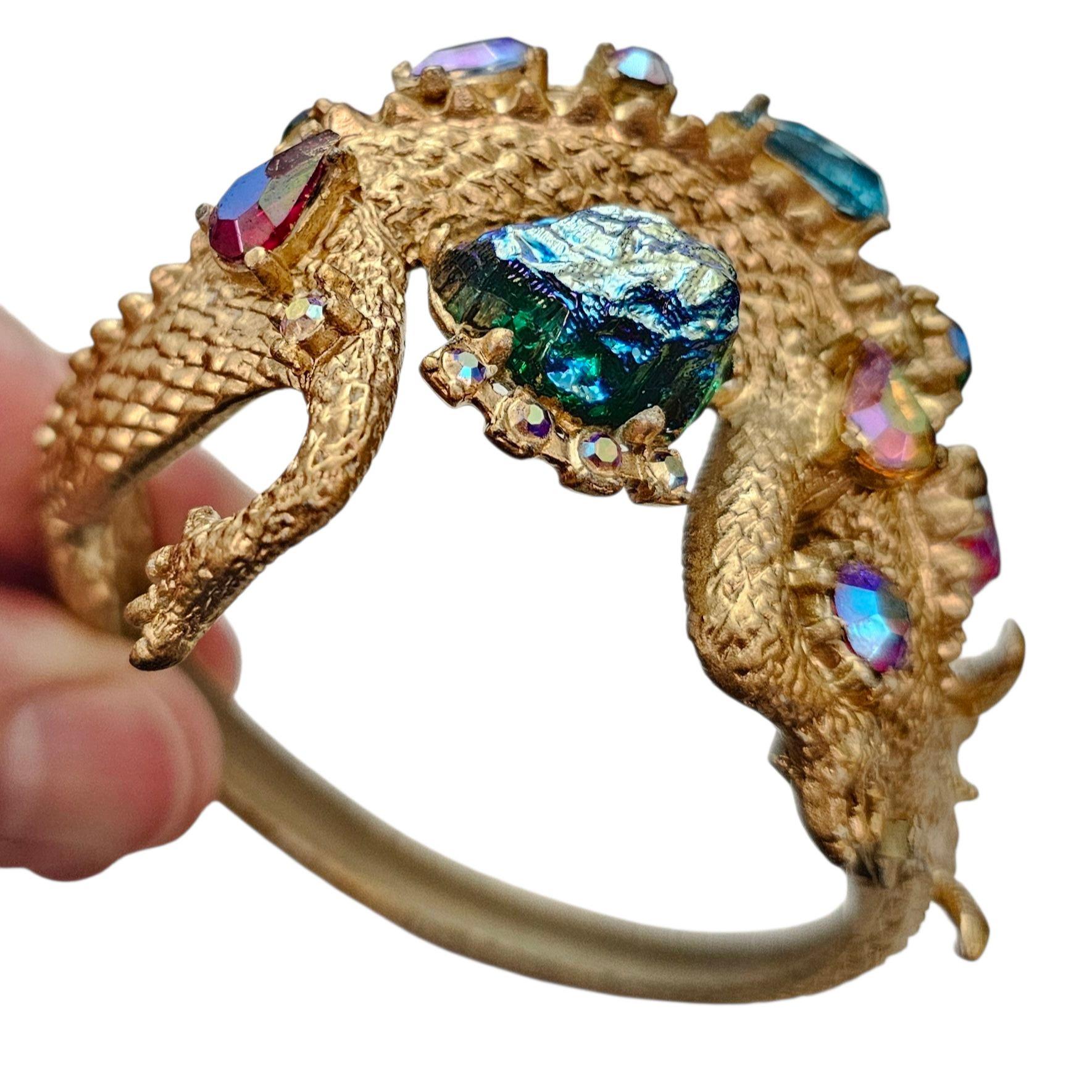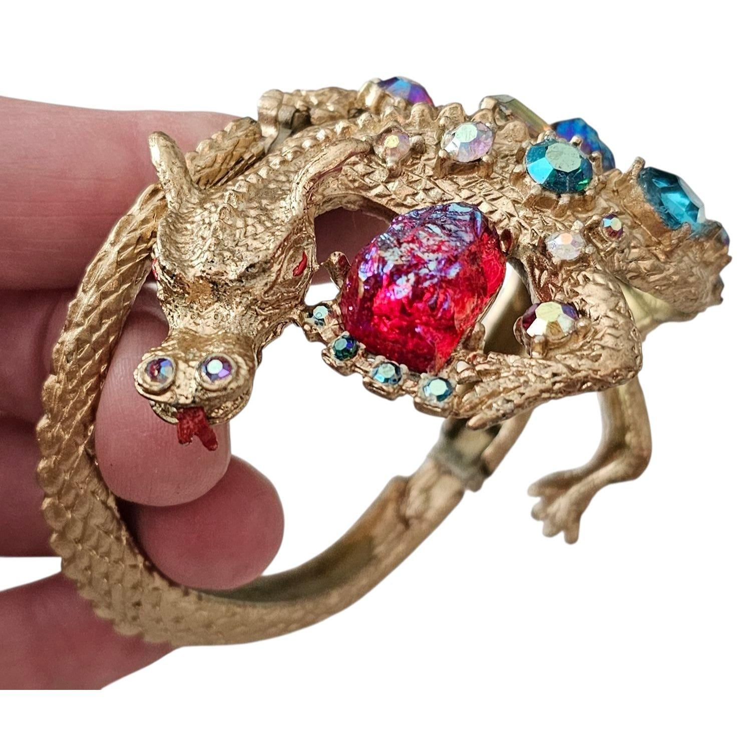Judy Lee Hinged Dragon Bracelet Rare Signed, Lava AB Rhinestones, Restored, Repaired C392