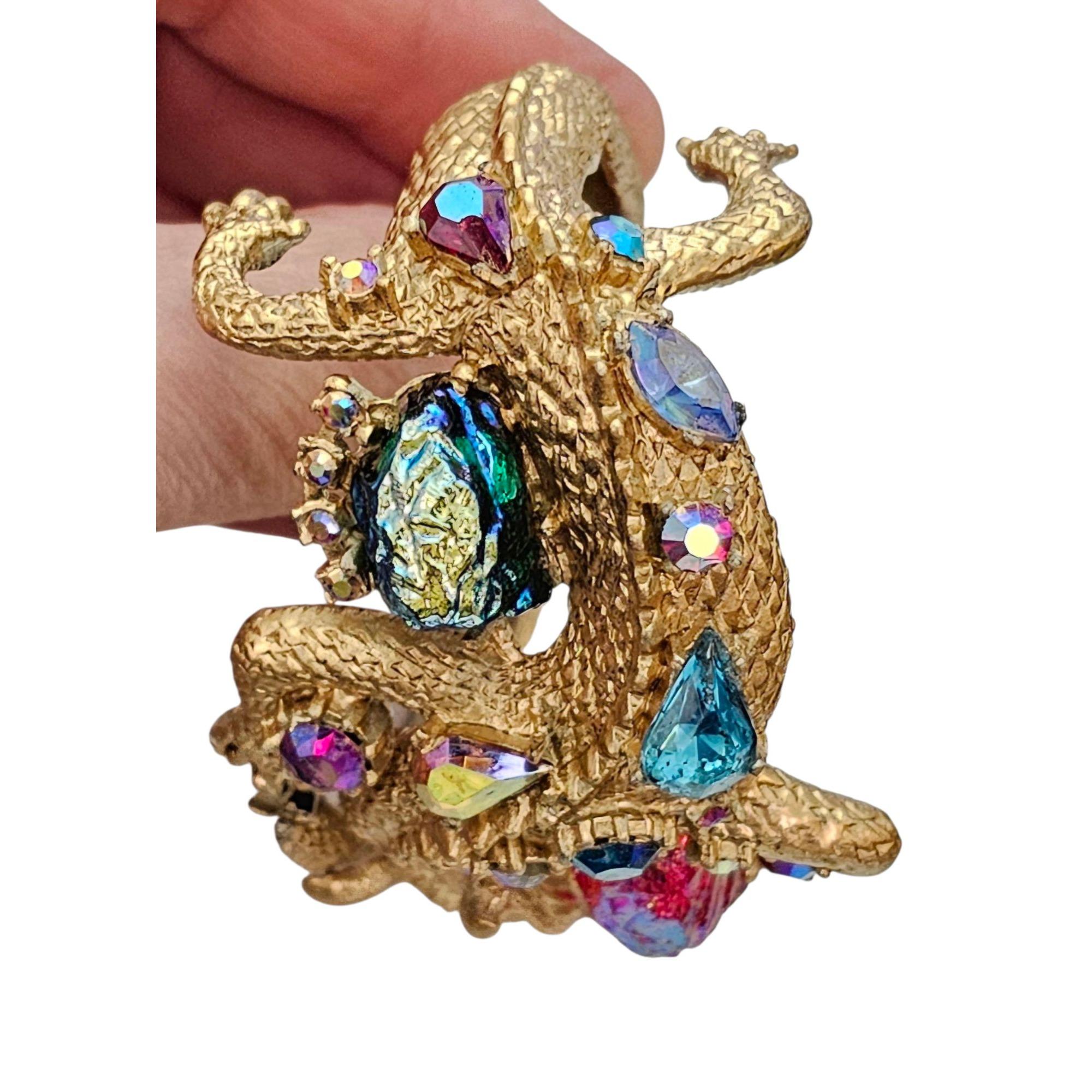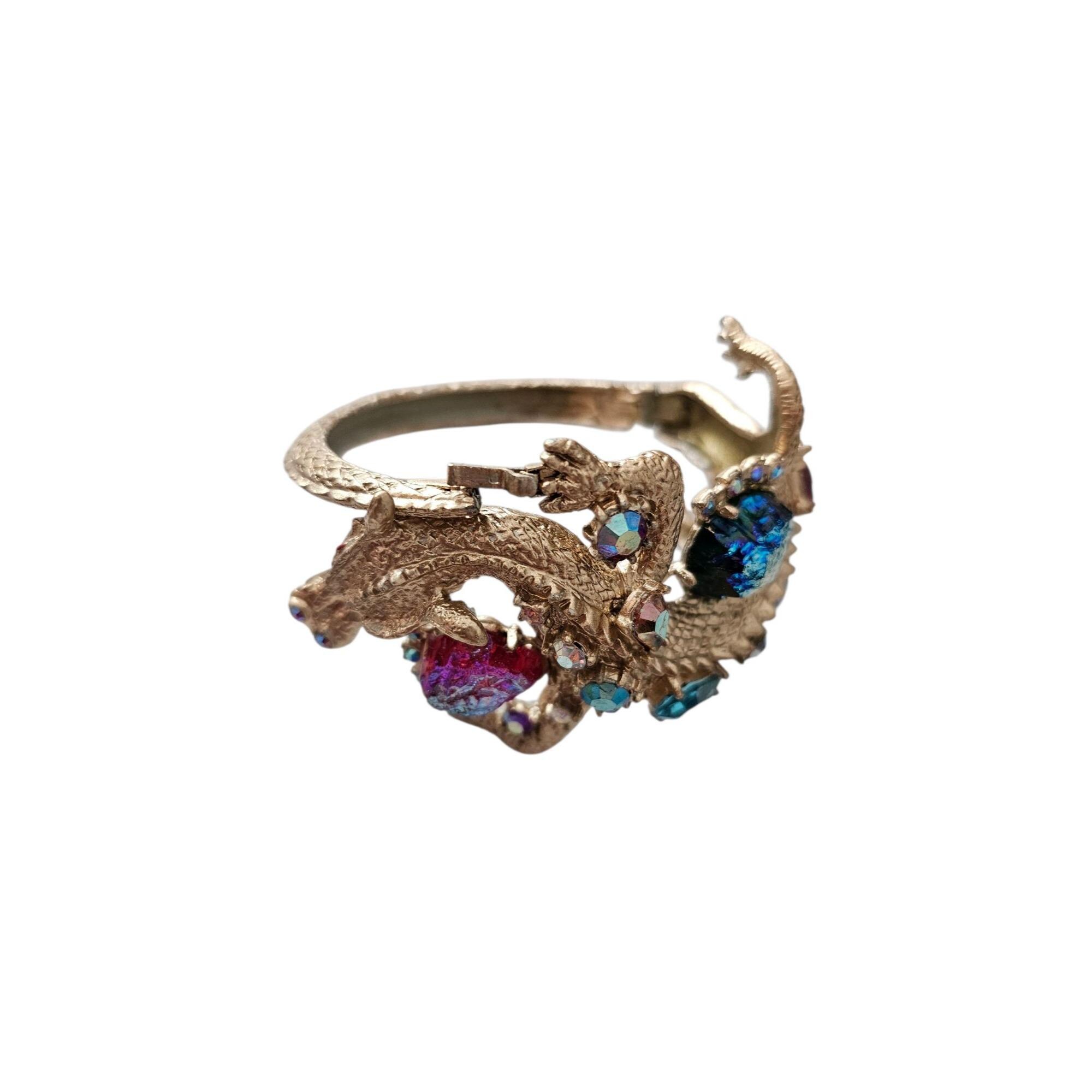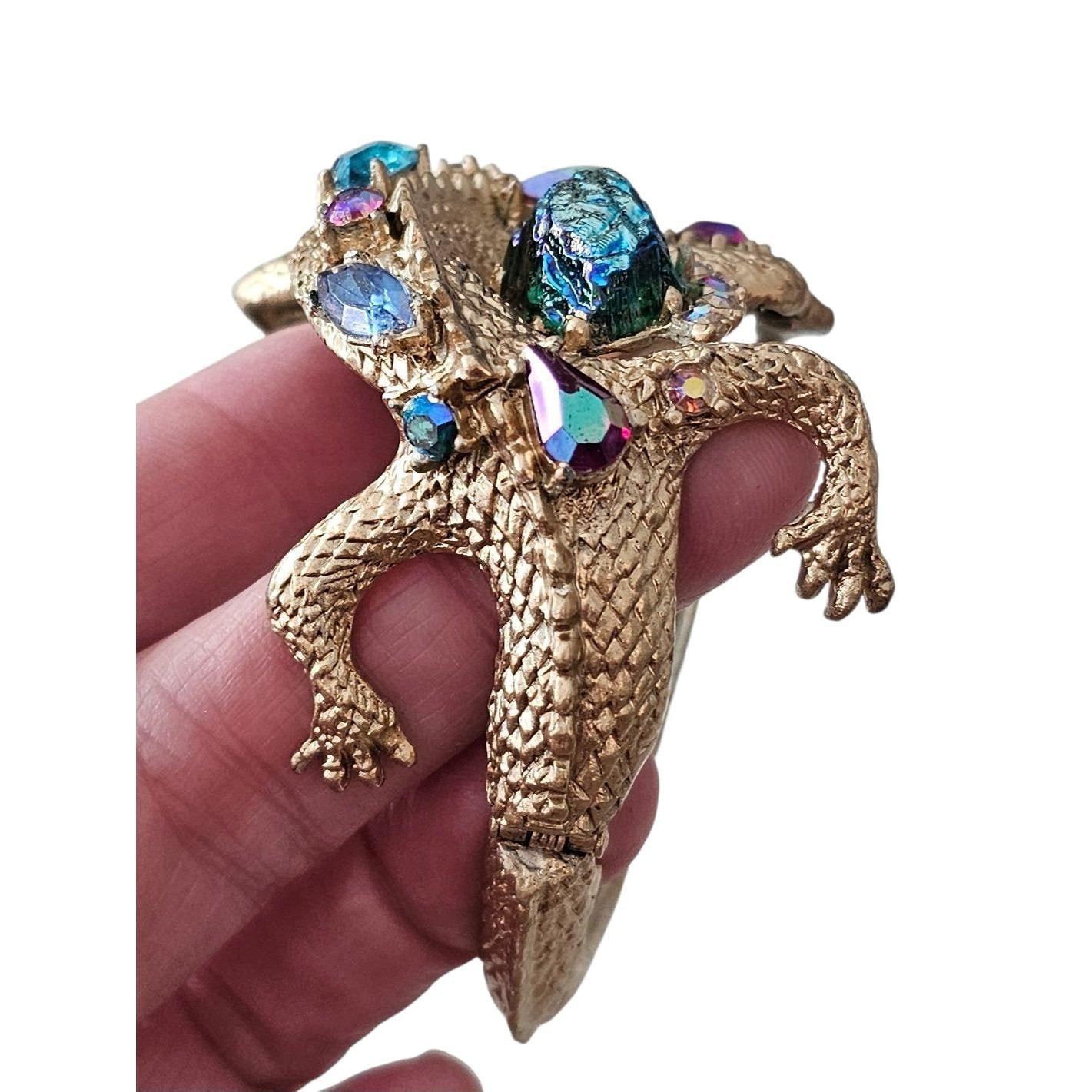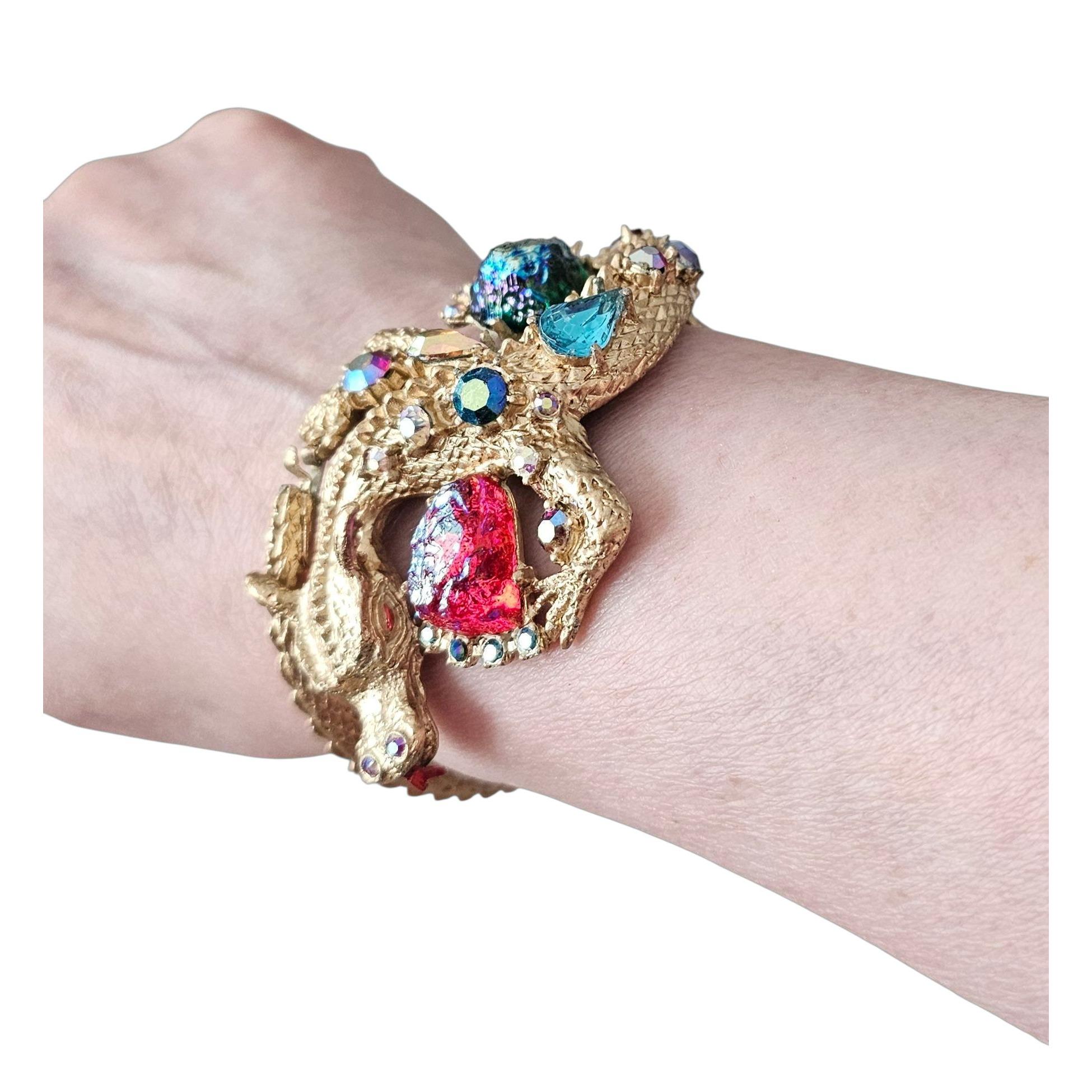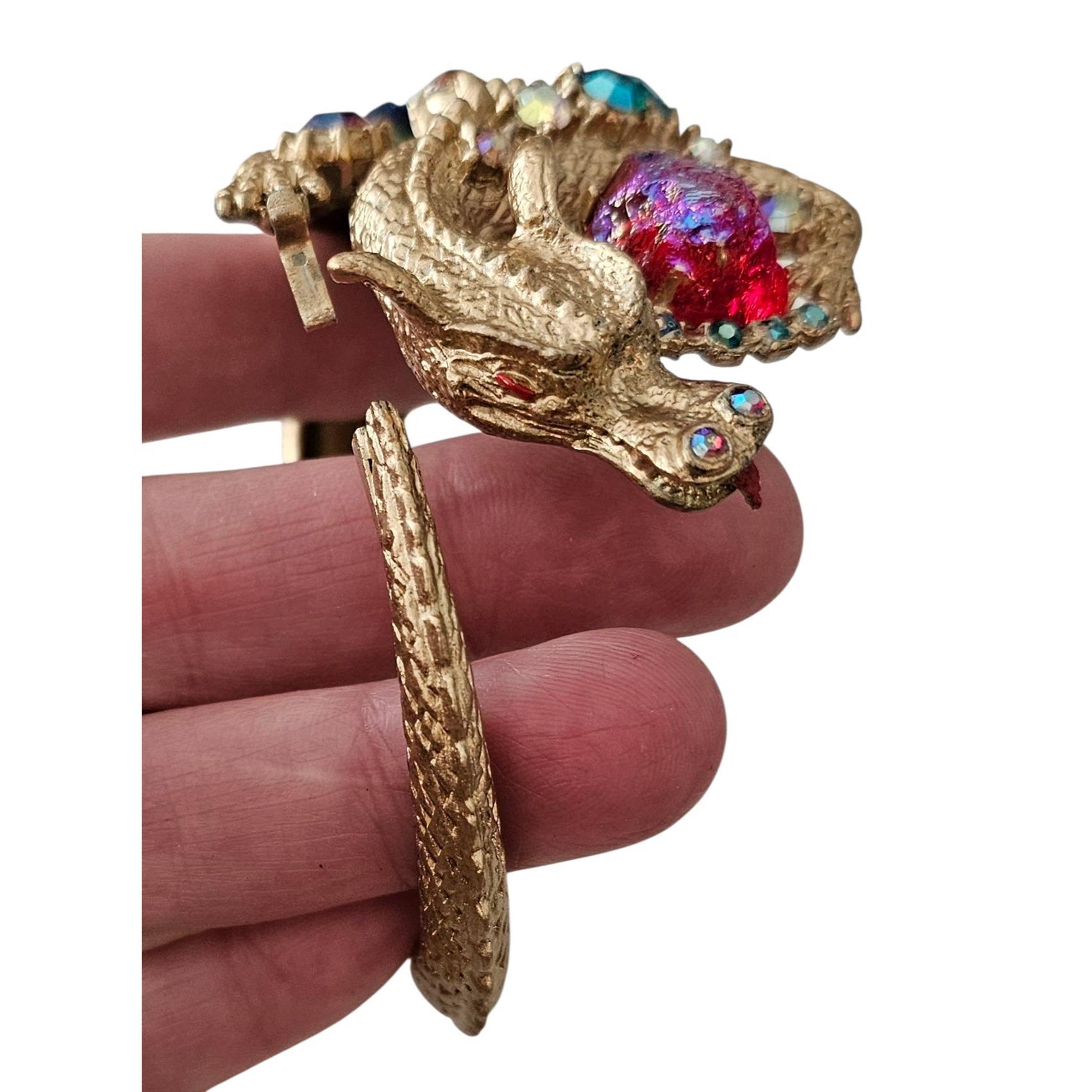 Judy Lee Hinged Dragon Bracelet Rare Signed, Lava AB Rhinestones, Restored, Repaired C392