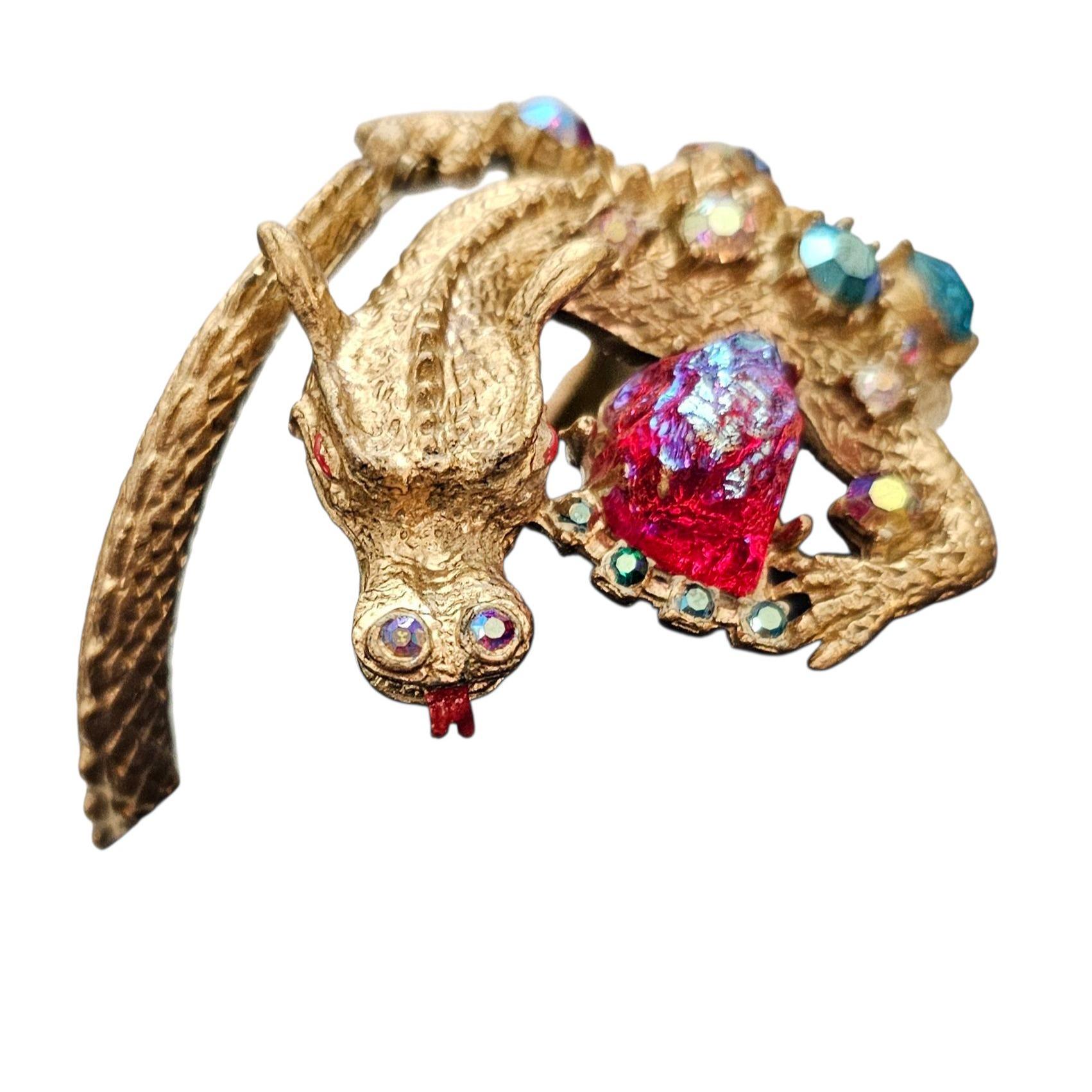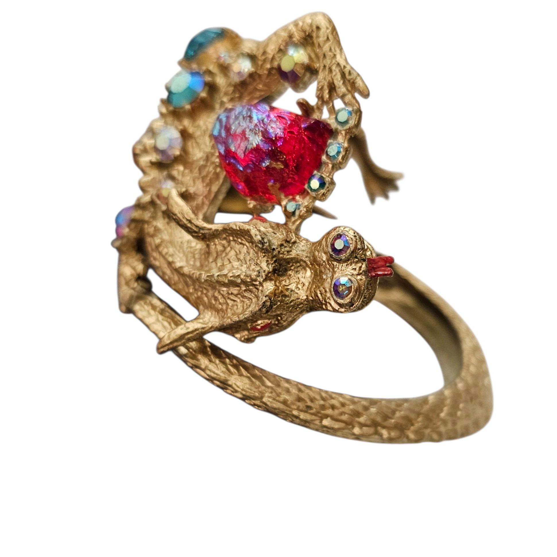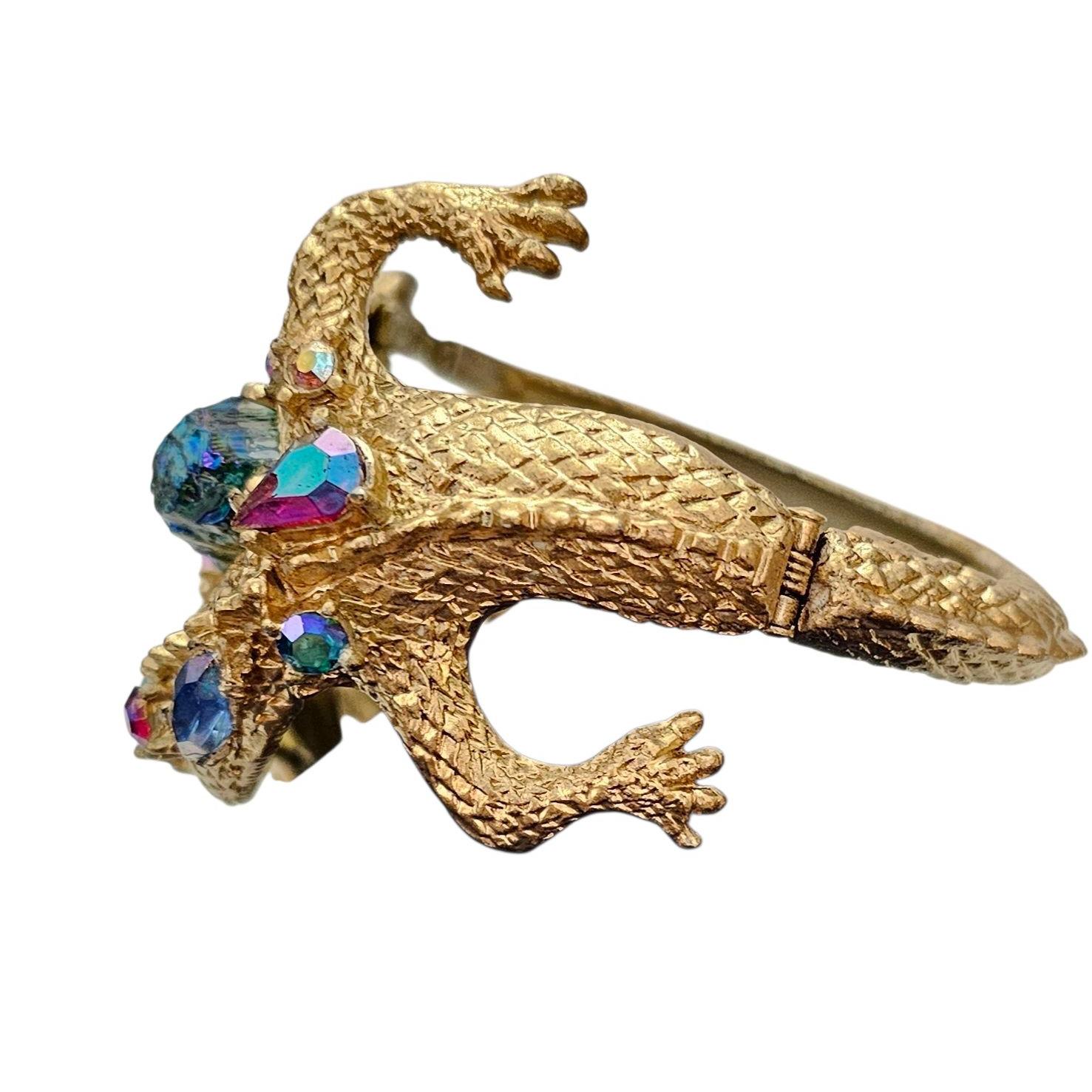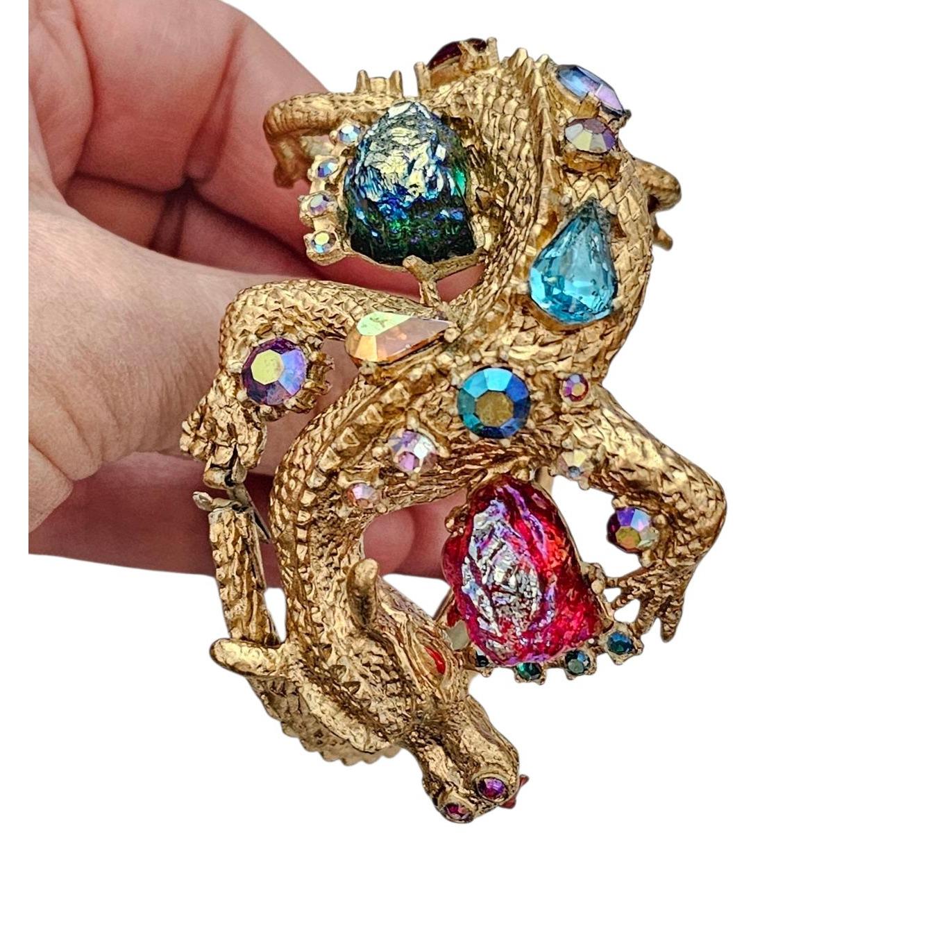 Judy Lee Hinged Dragon Bracelet Rare Signed, Lava AB Rhinestones, Restored, Repaired C392