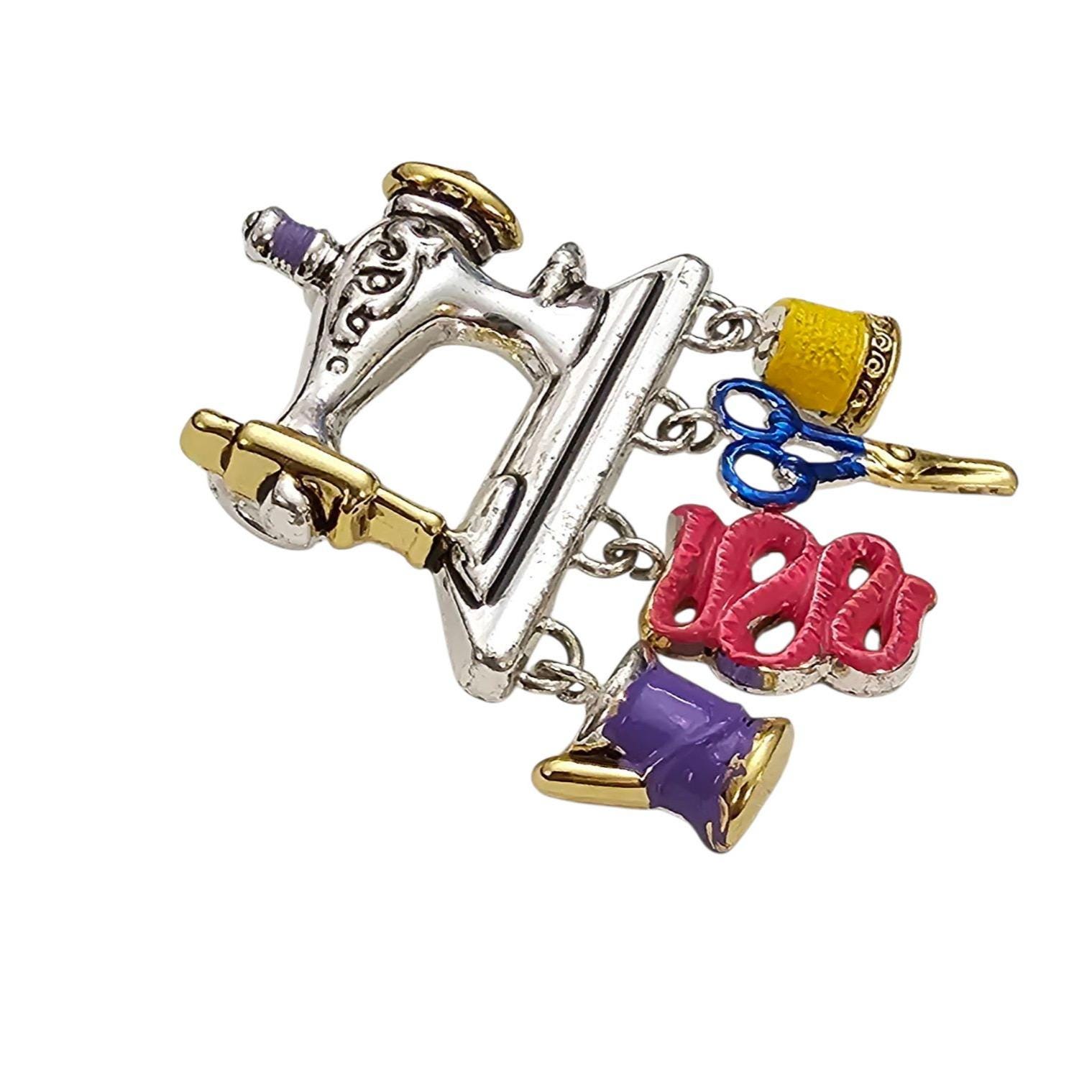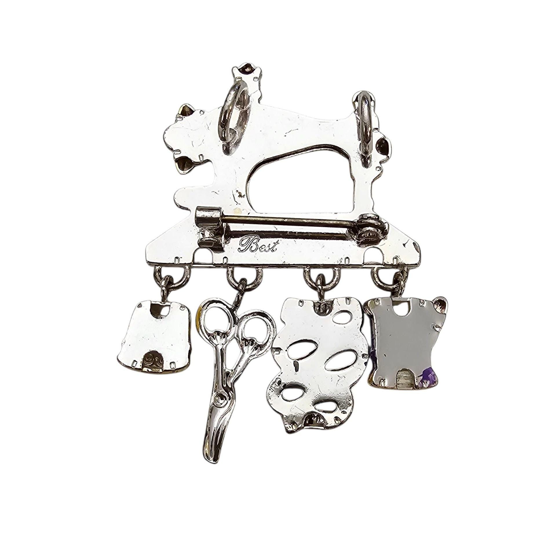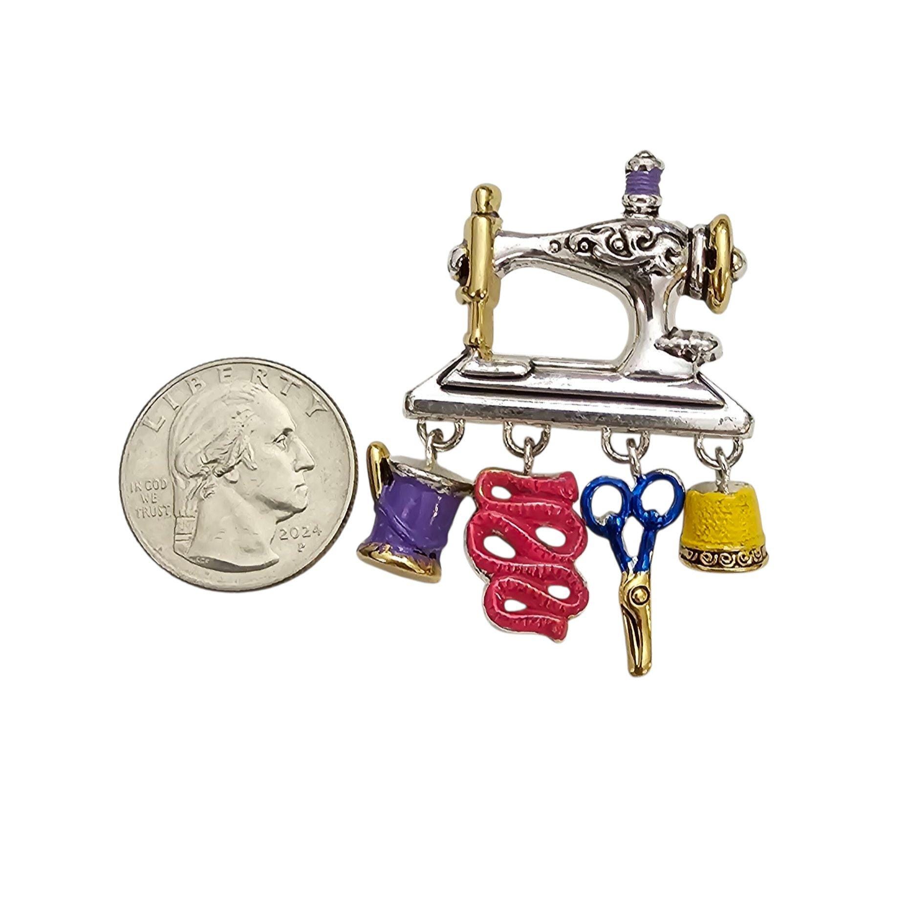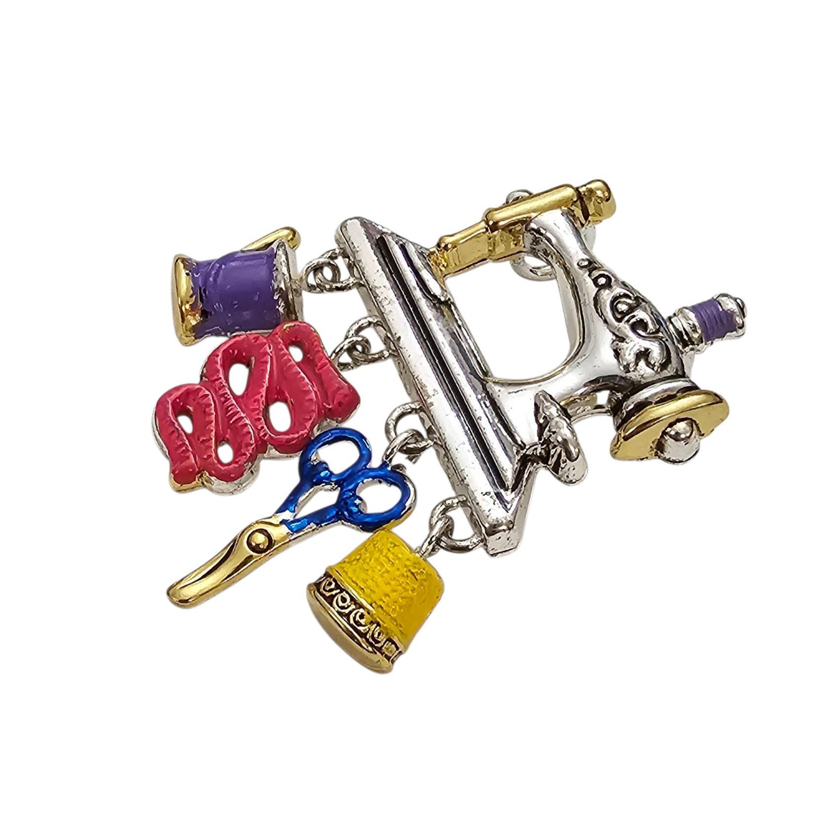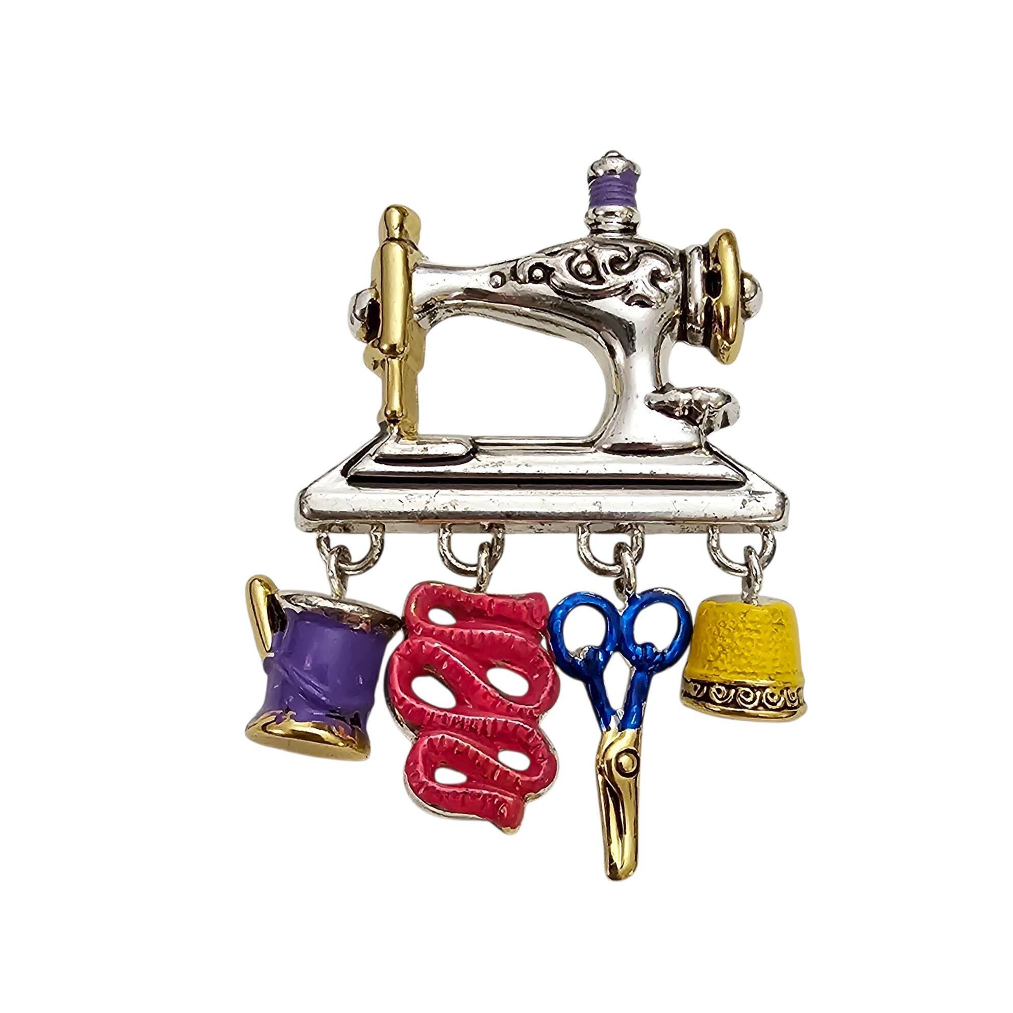 Best Sewing Machine Brooch Pendant, Needle Scissors Thread Charm Pin Signed, C390