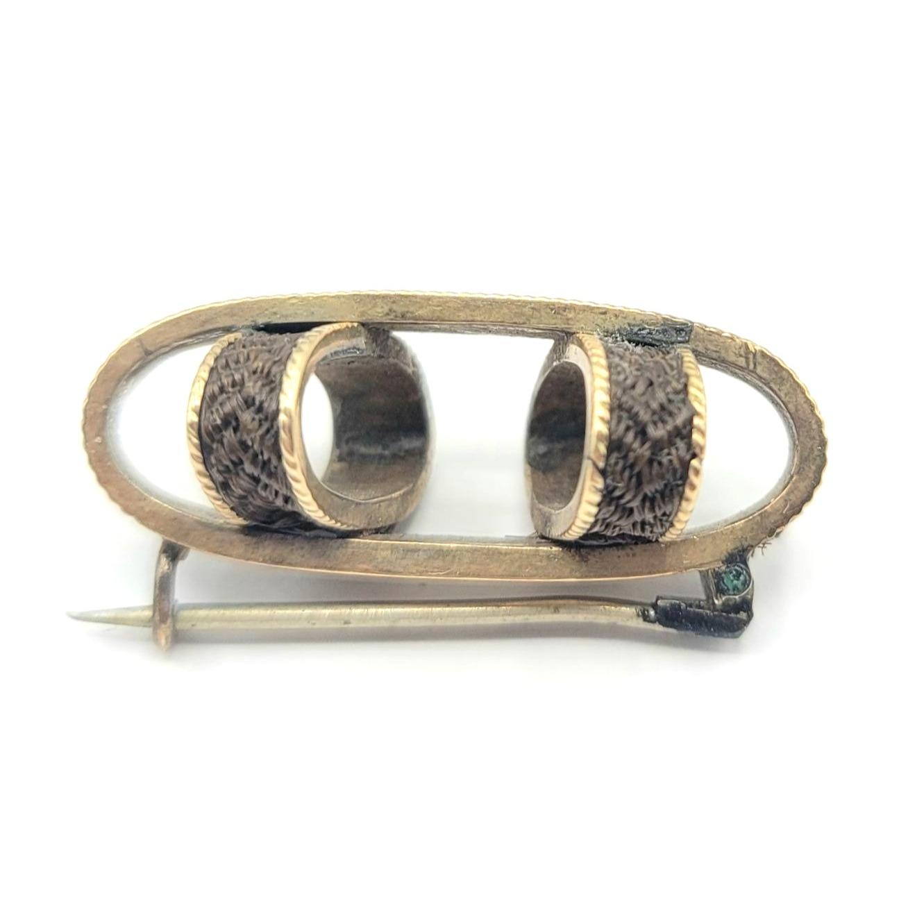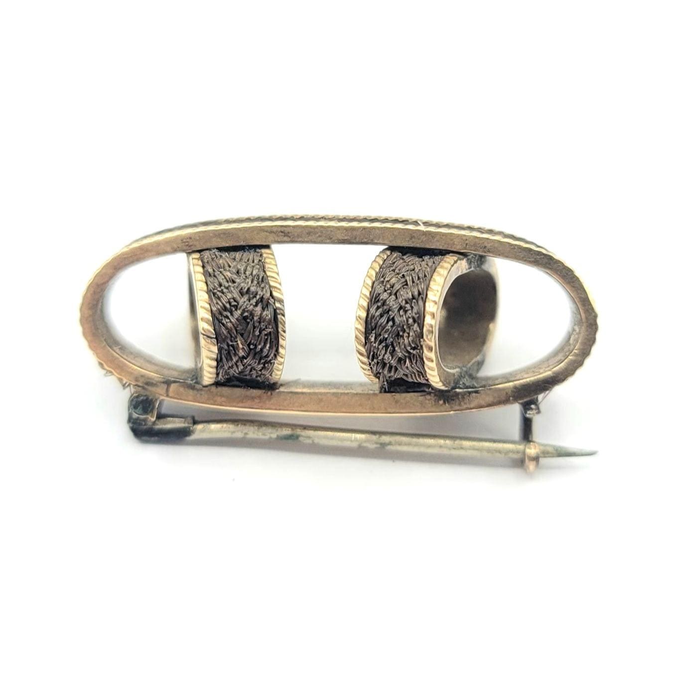 12K Yellow Gold Mourning Braided Hair Brooch Pin, C405