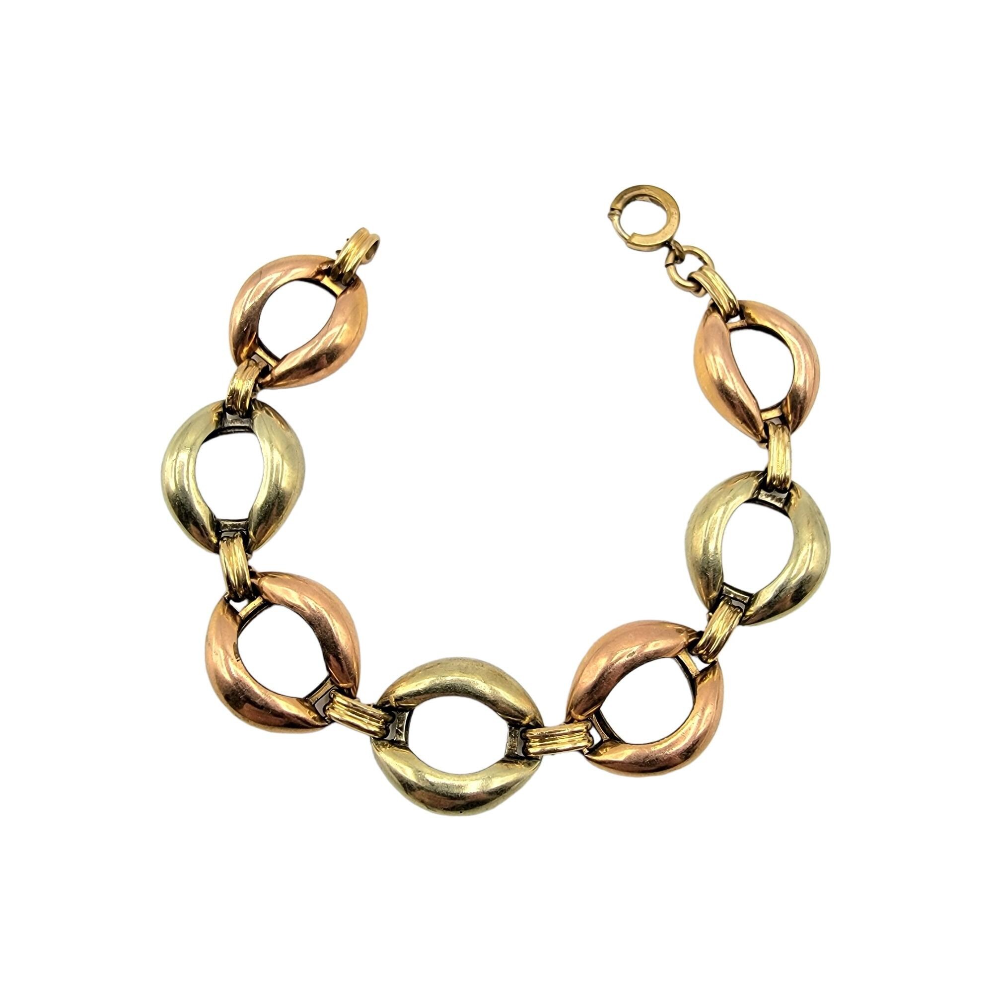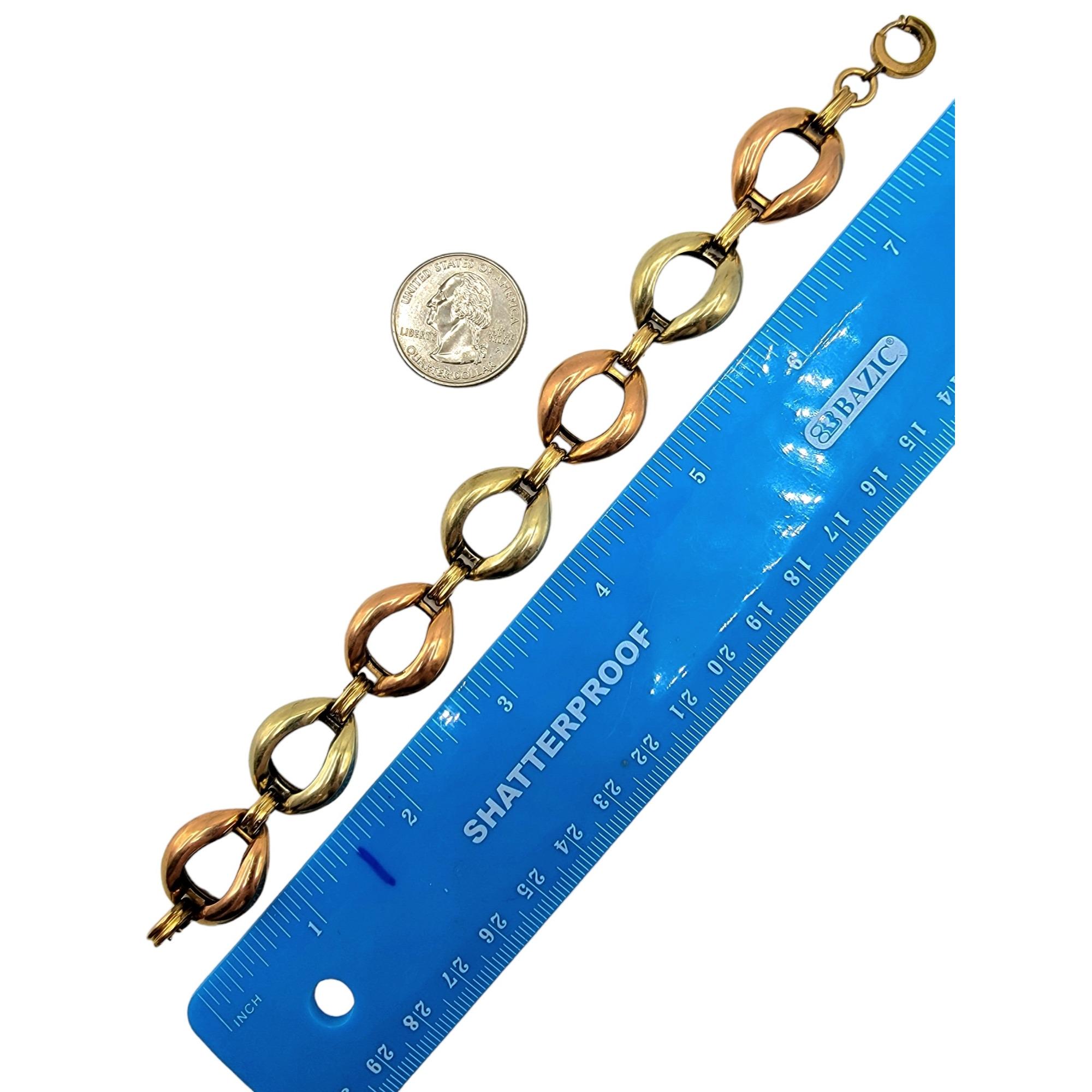 Gold Filled Two-Tone Chunky Round Link Thumb Clasp Bracelet, 8" Long