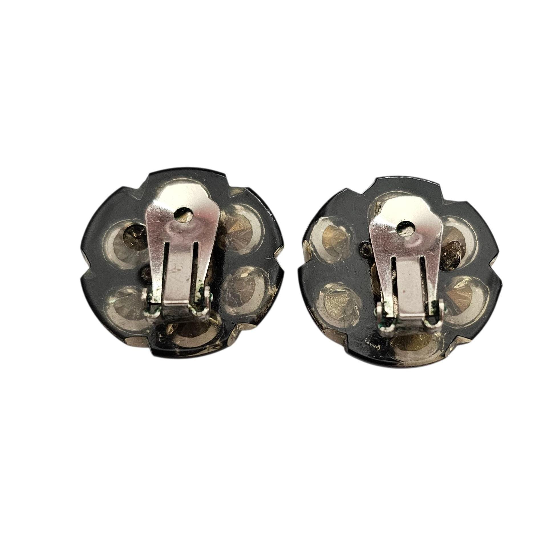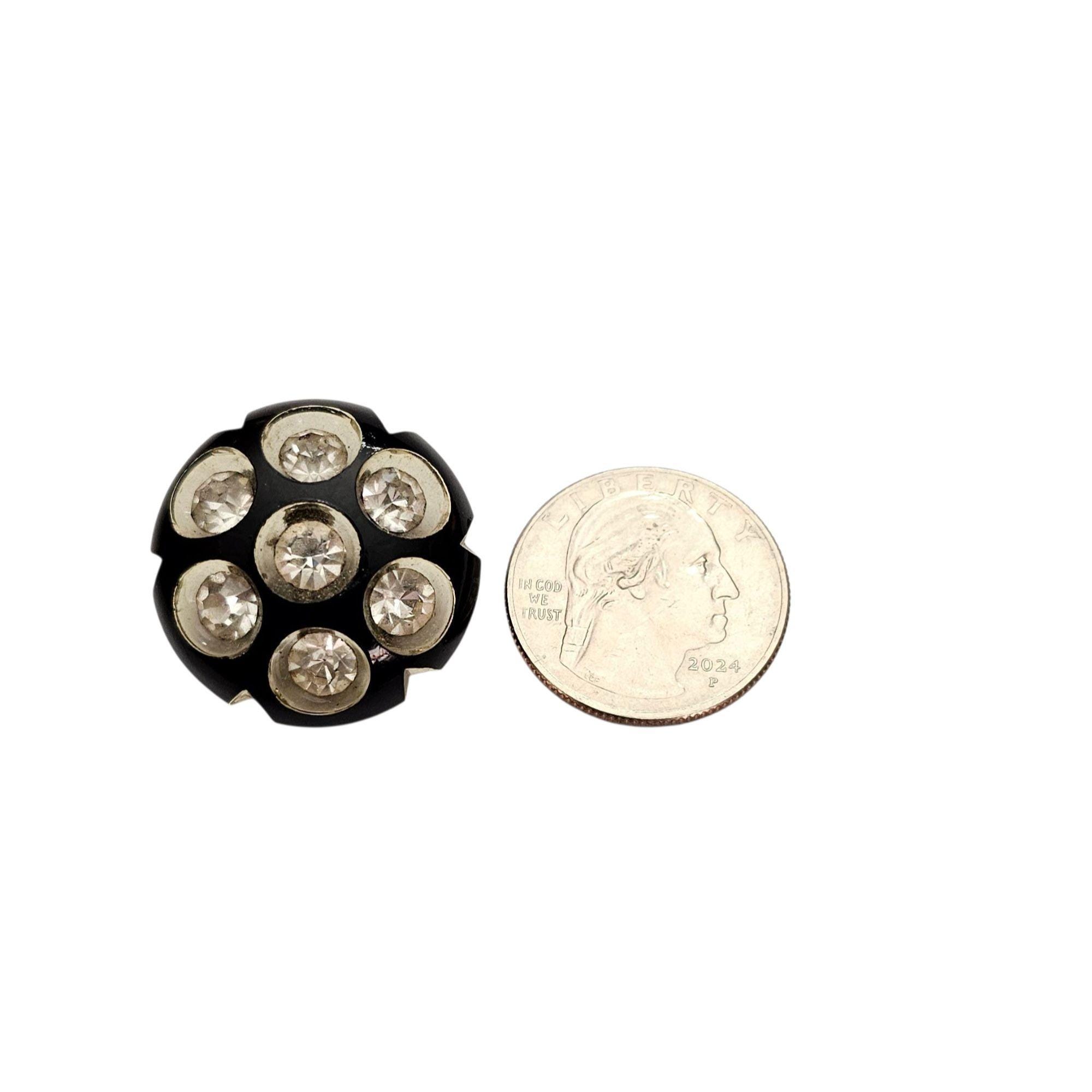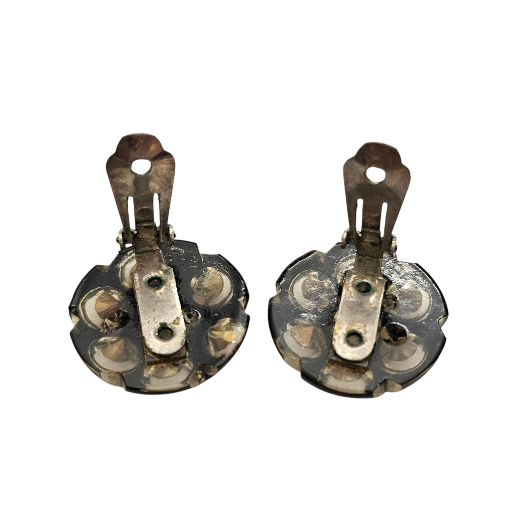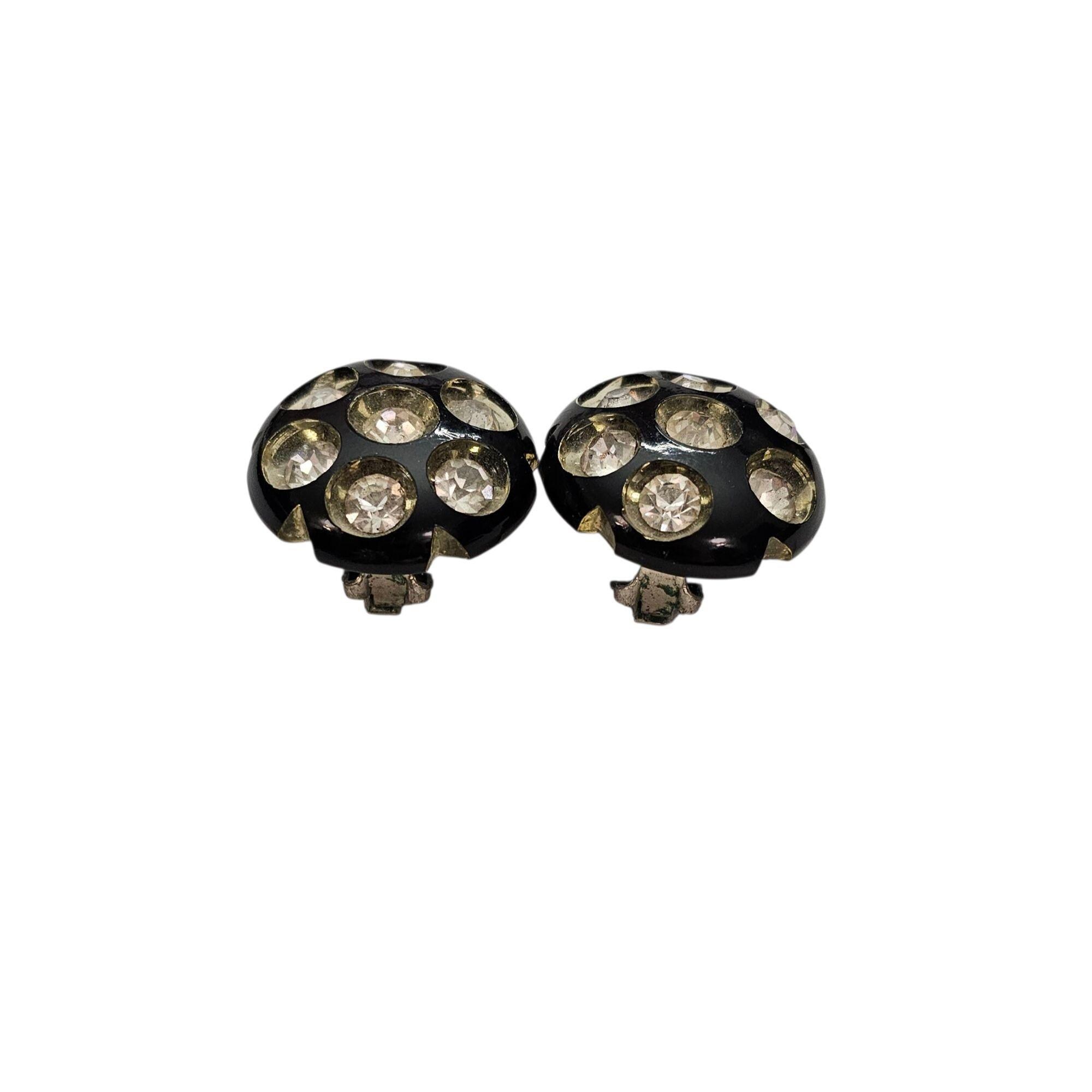 Vintage Lucite Clip-On Rhinestone Clear Black Earrings C393