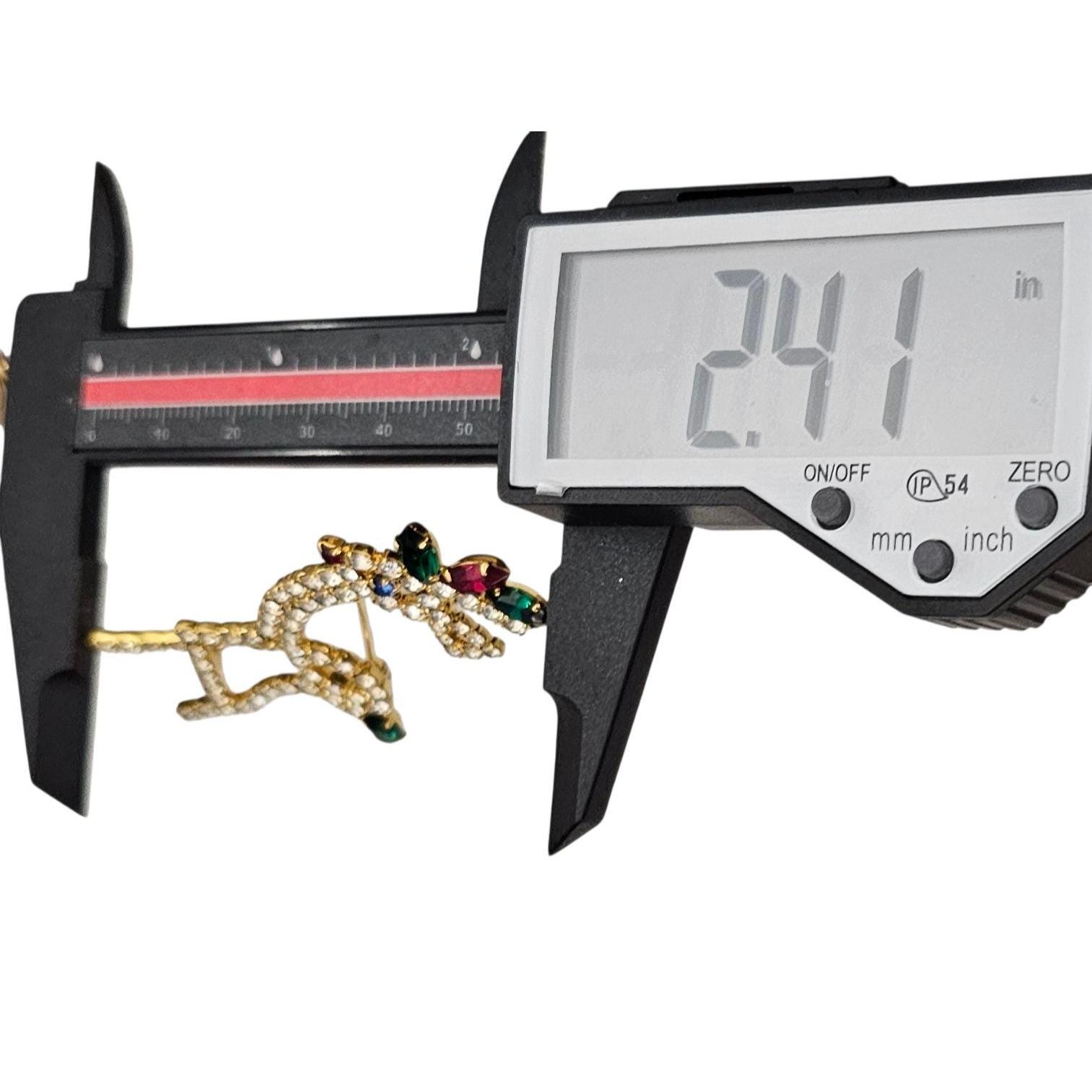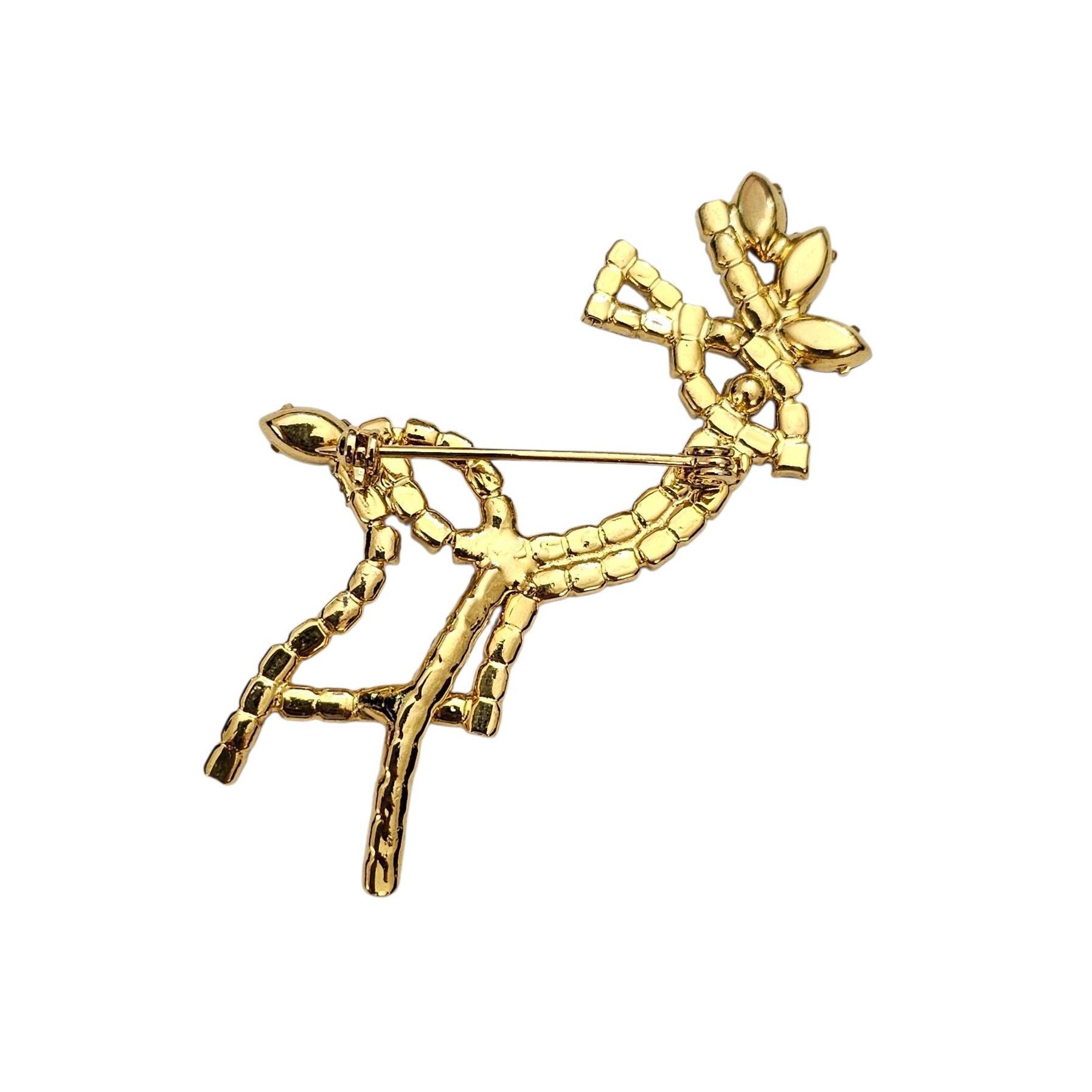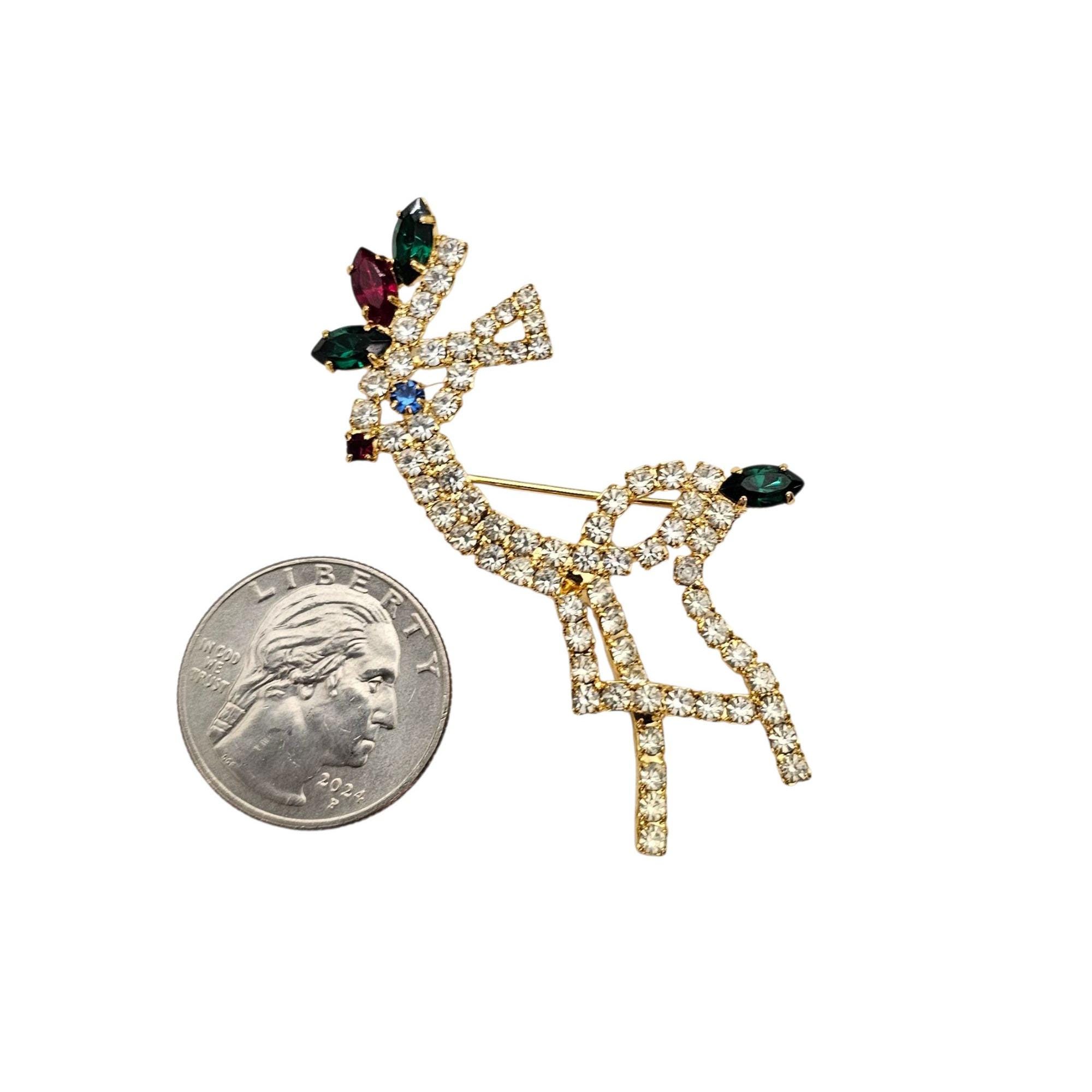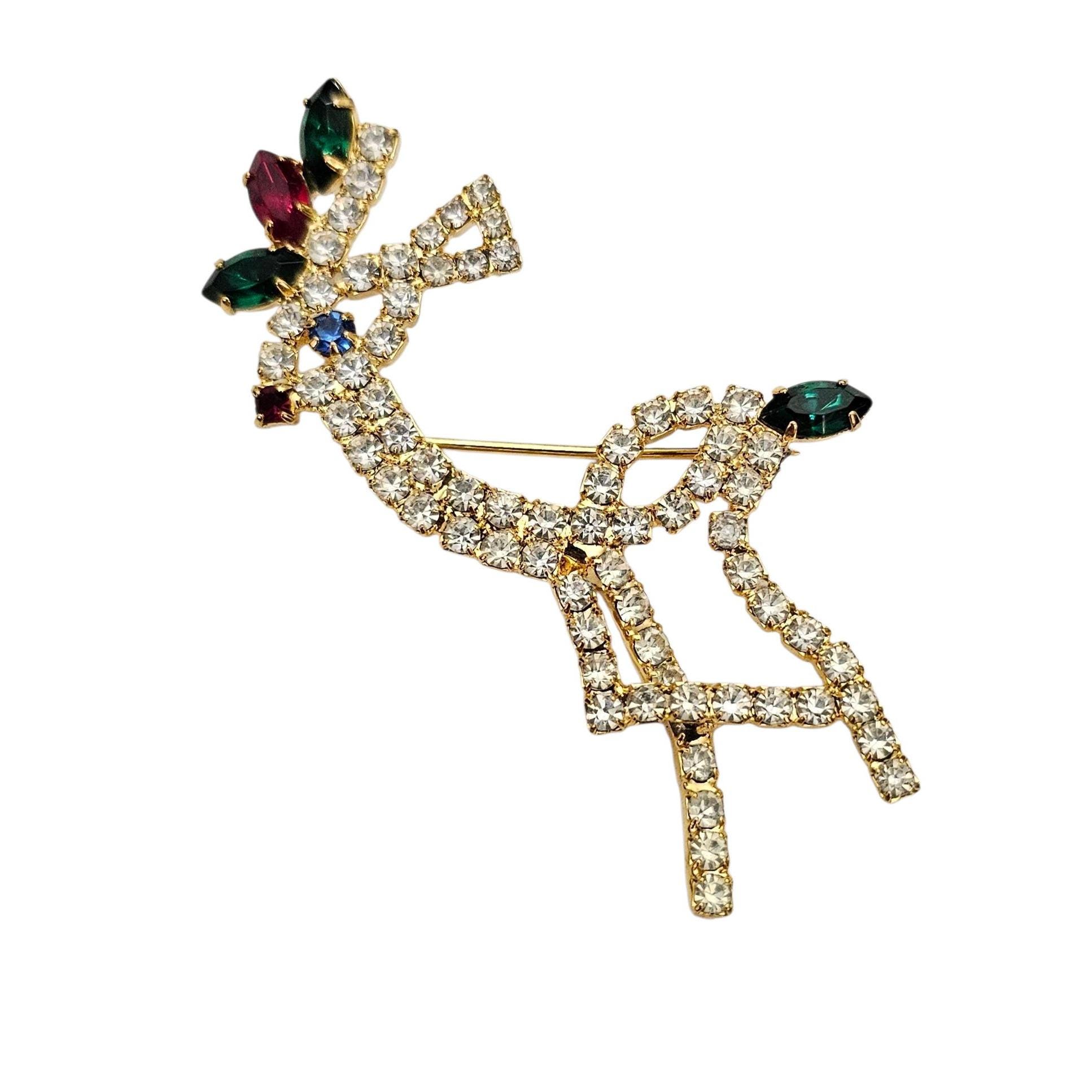 Vintage Clear Red Green Rhinestone Open Reindeer Brooch C395