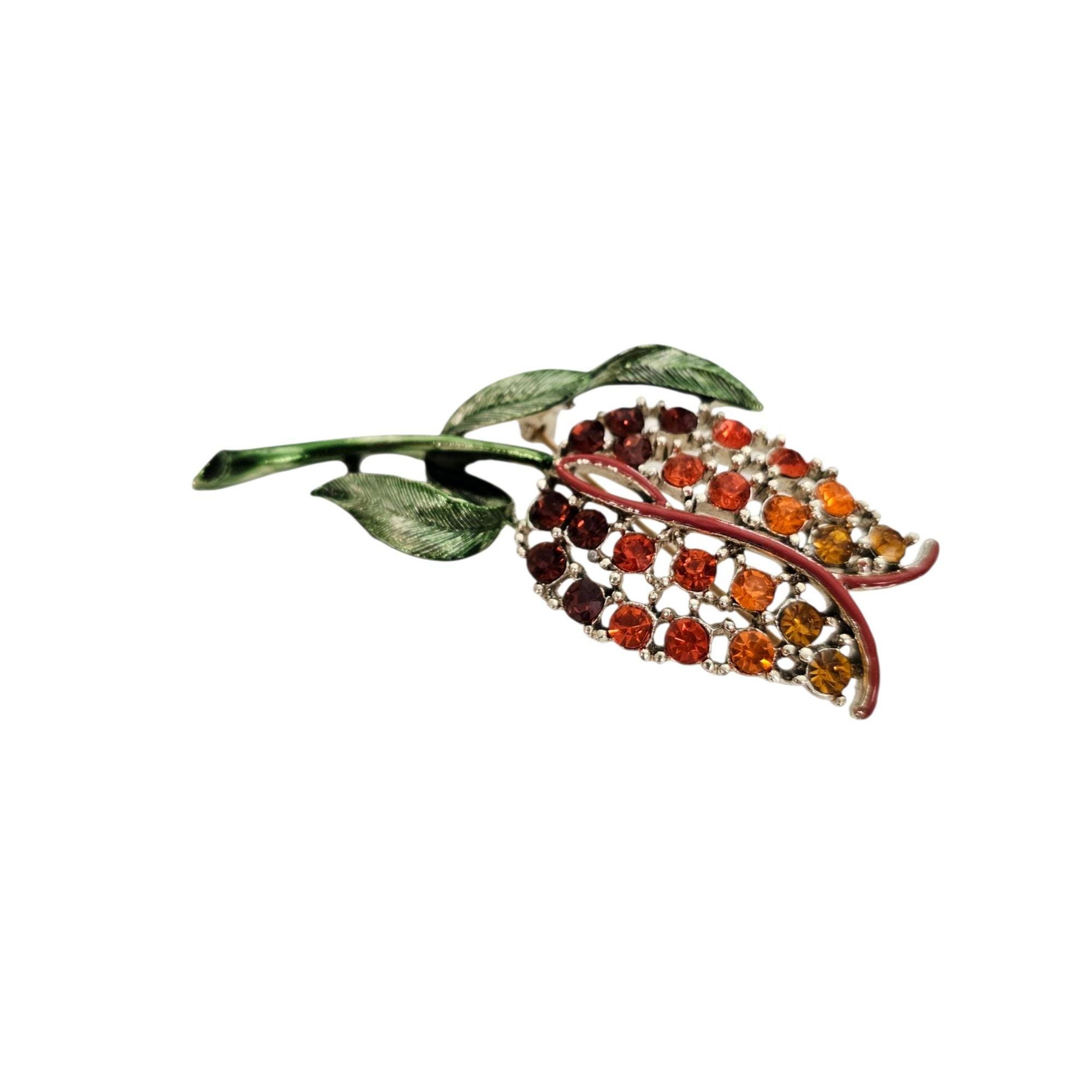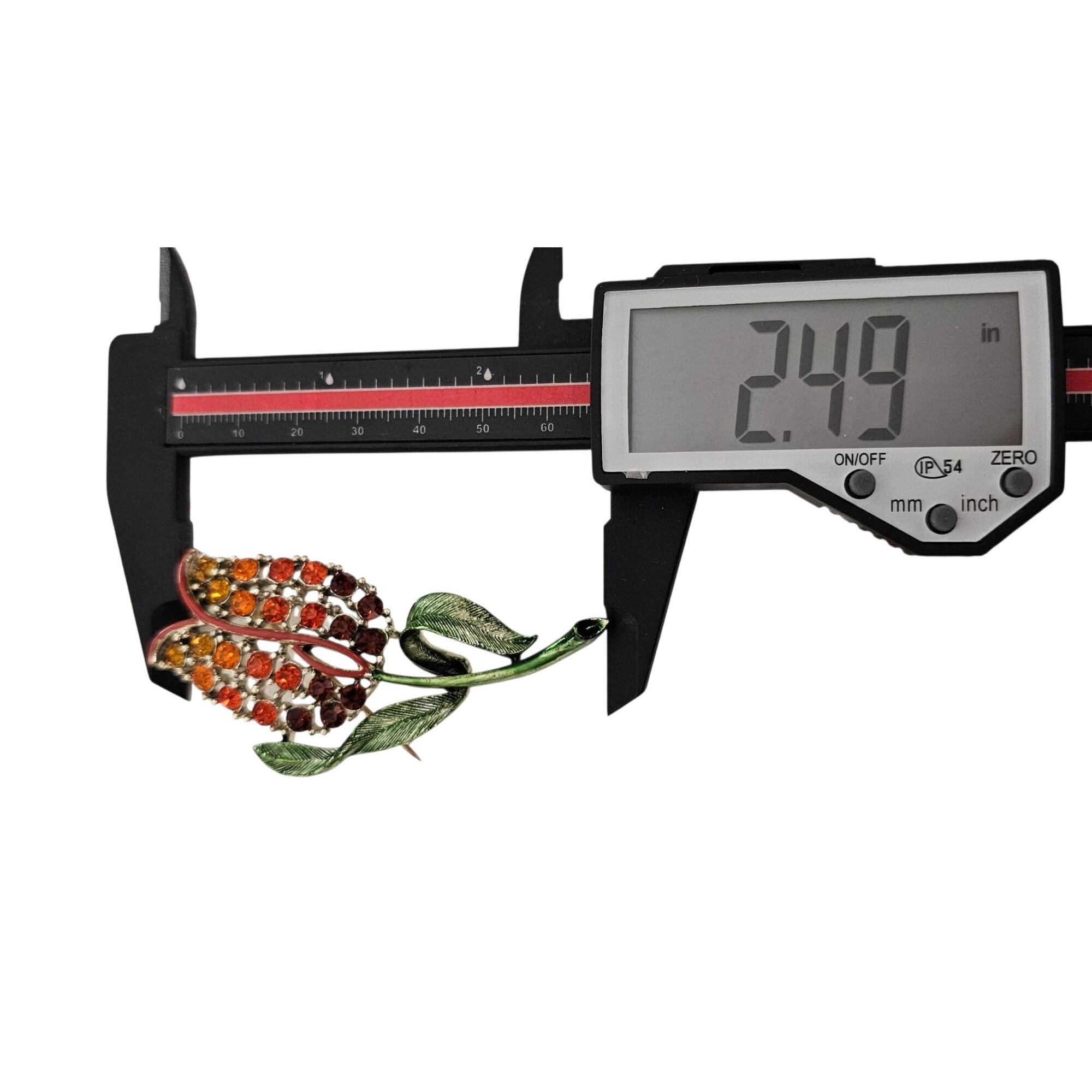 Autumn Color Rhinestone Tulip Flower Brooch Orange Red Pin C407
