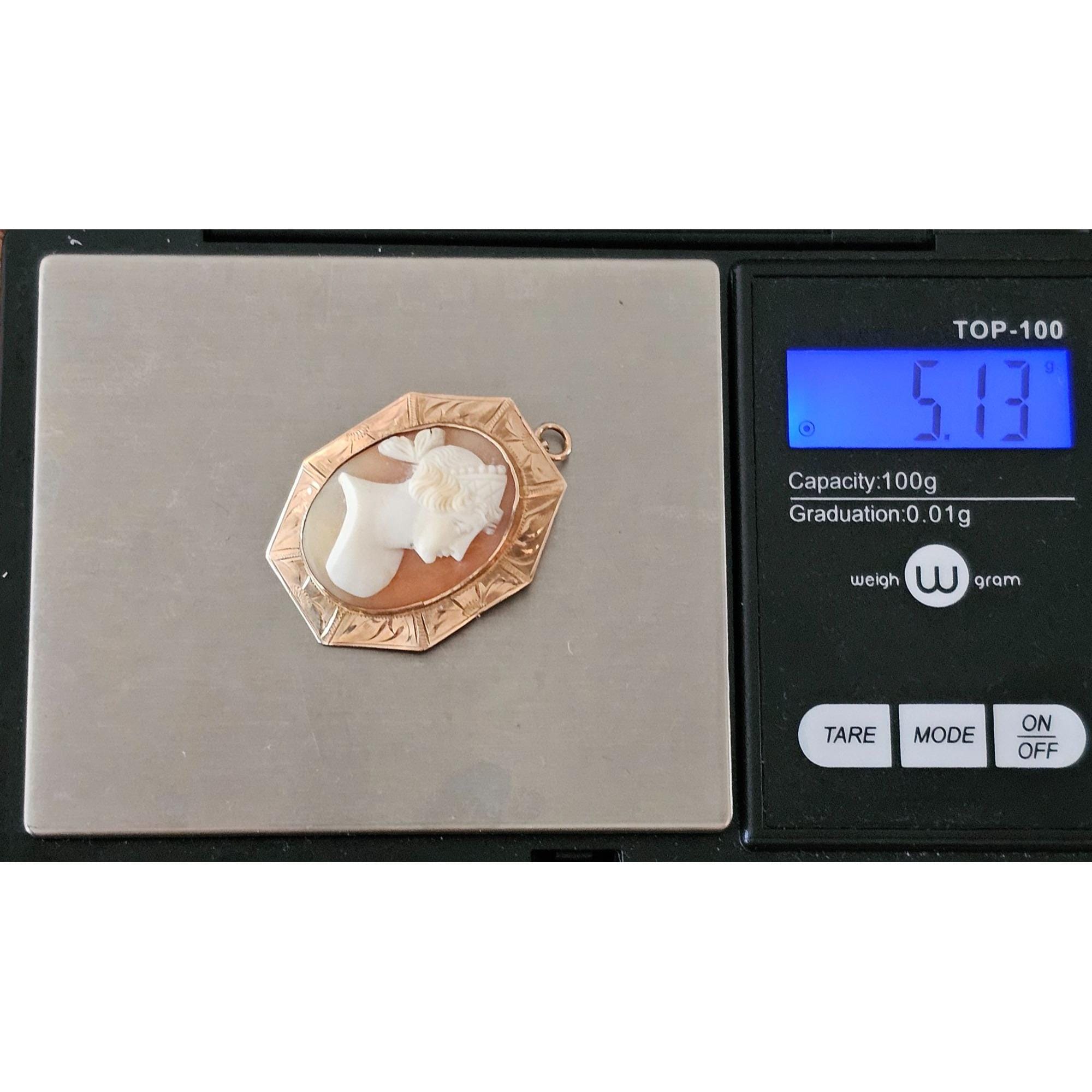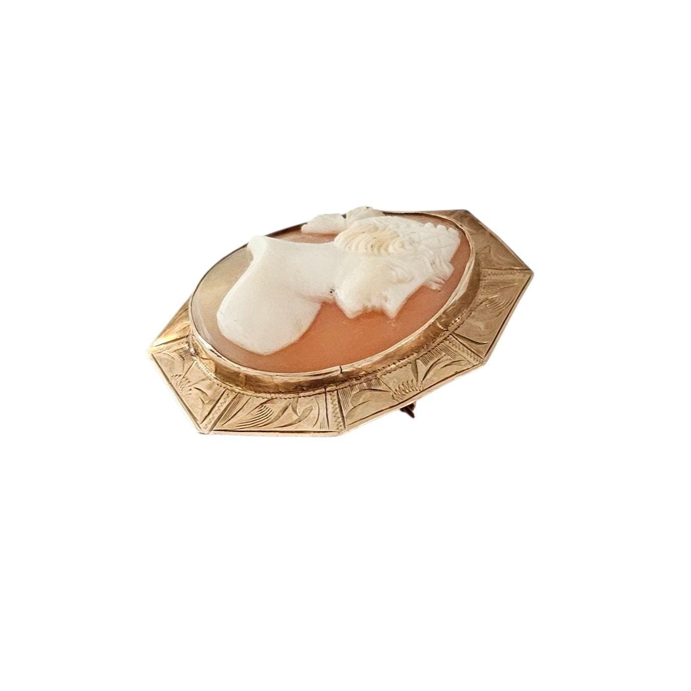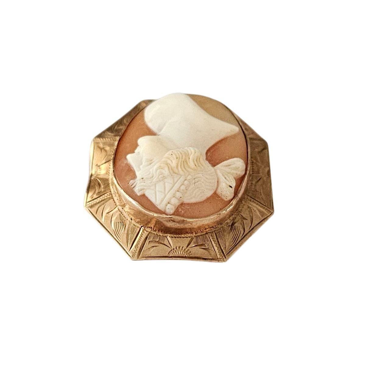 10K Yellow Gold Etched Cameo Brooch Pendant C399