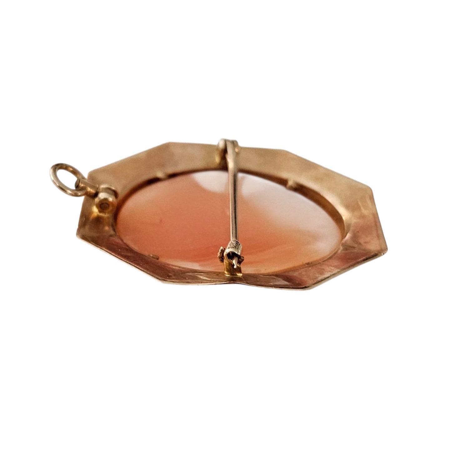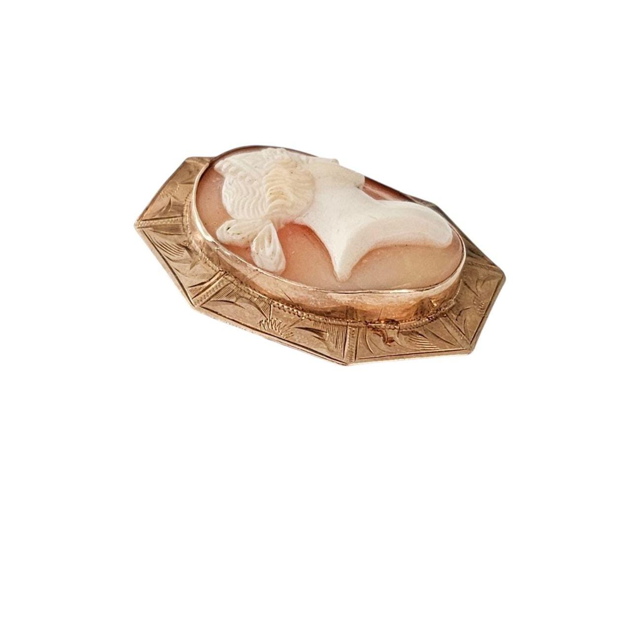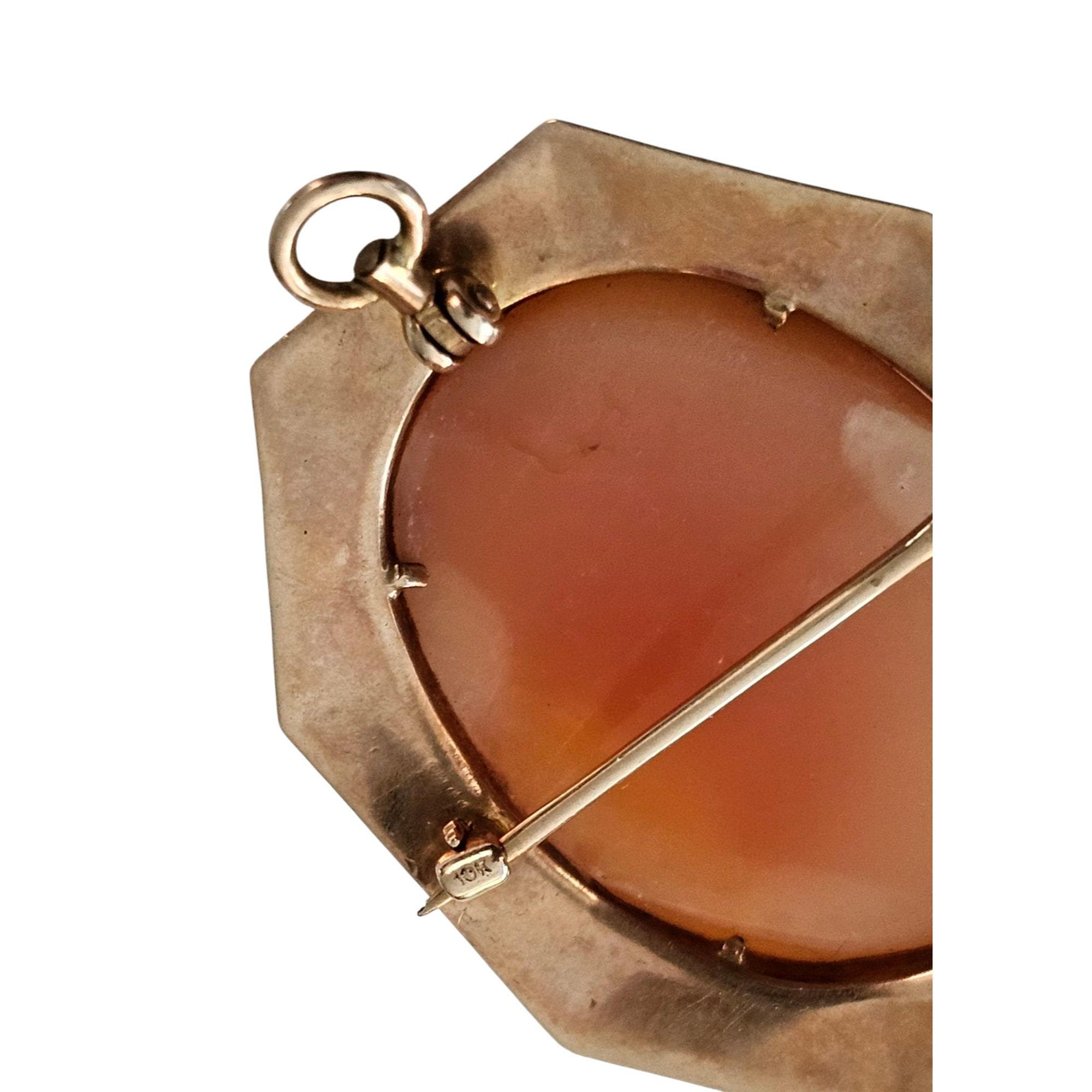 10K Yellow Gold Etched Cameo Brooch Pendant C399