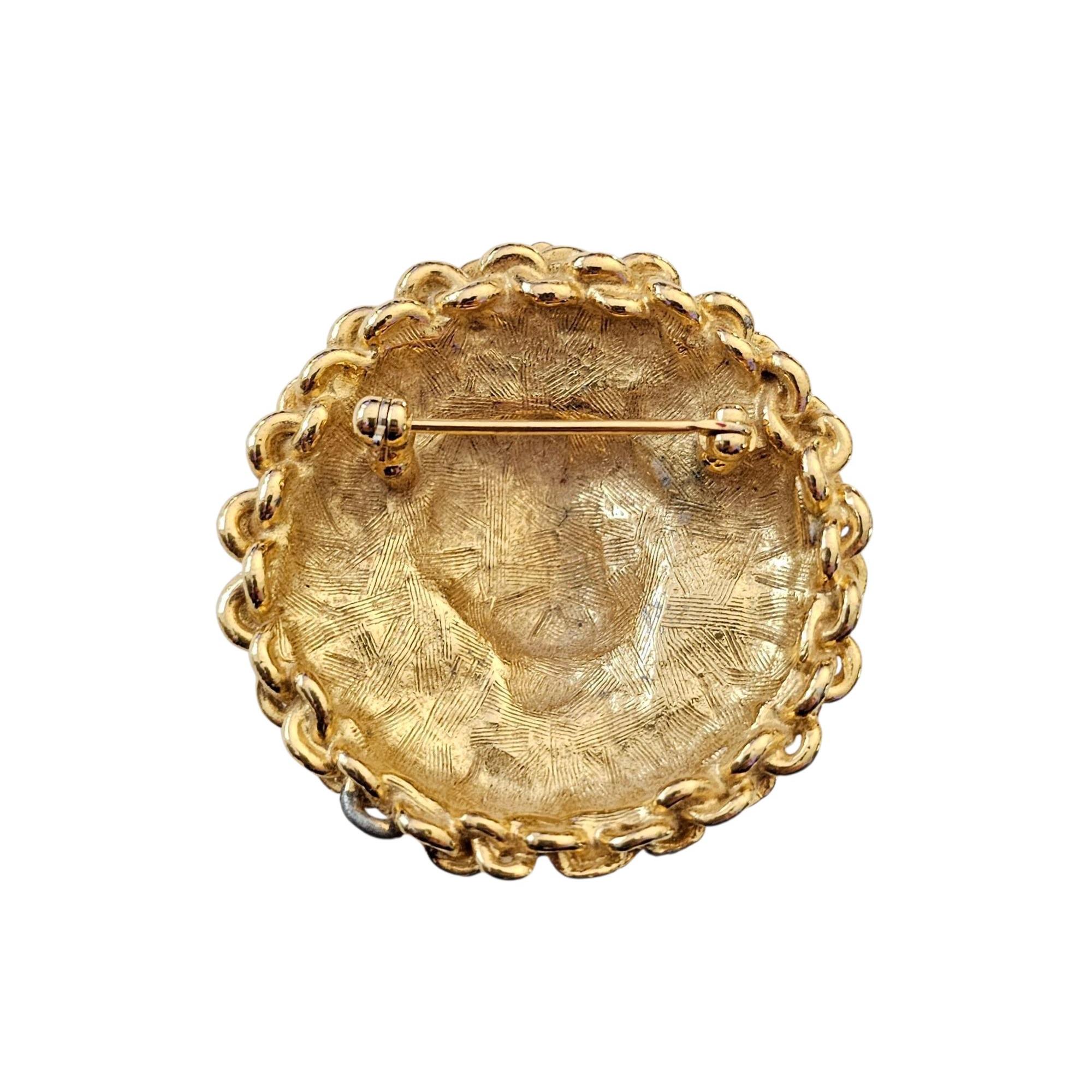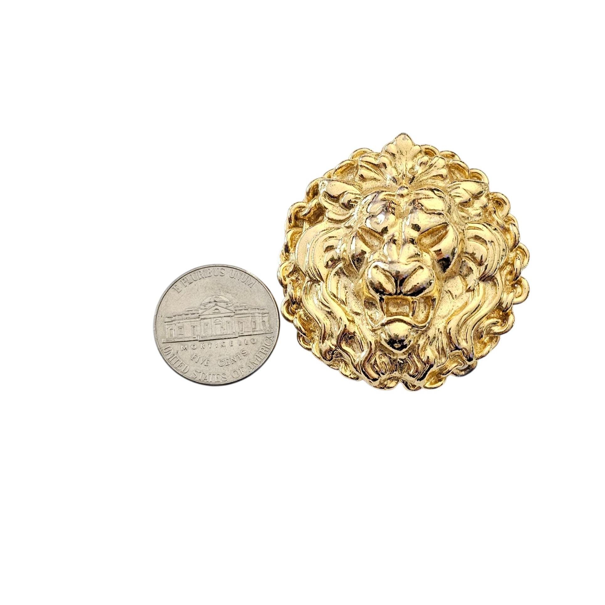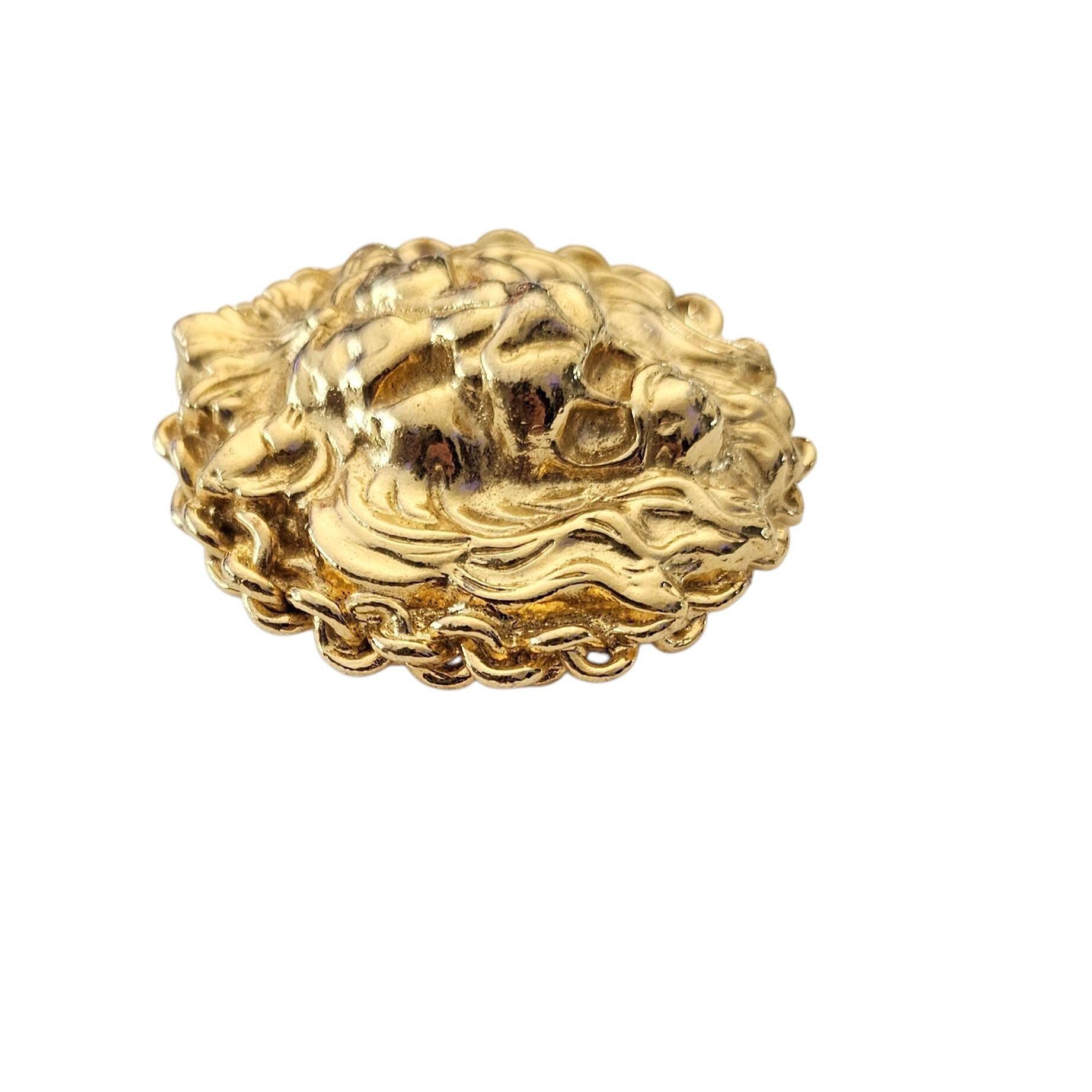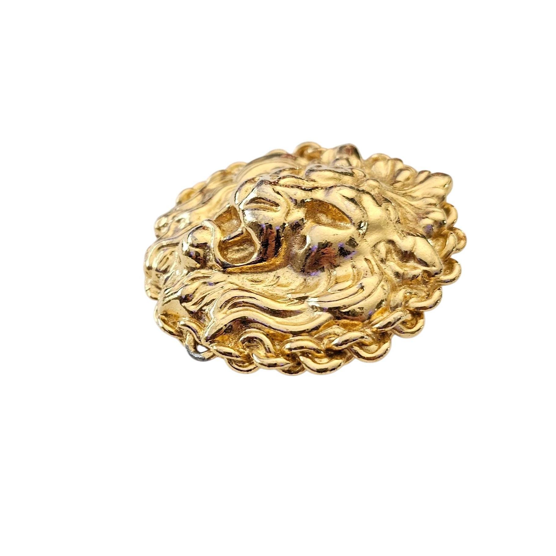 Ann Klein Glossy Gold Tone Round Lion Brooch Pin C415