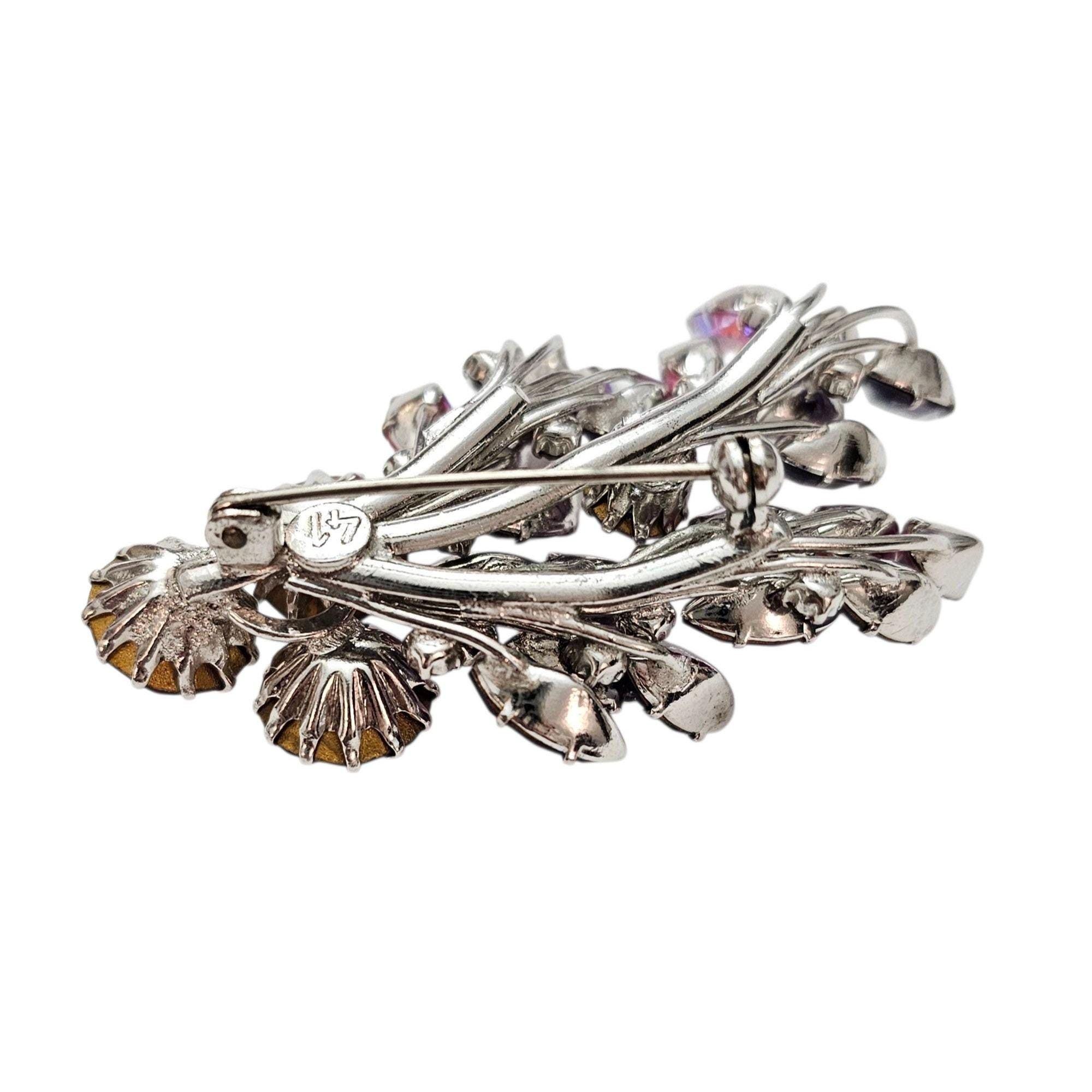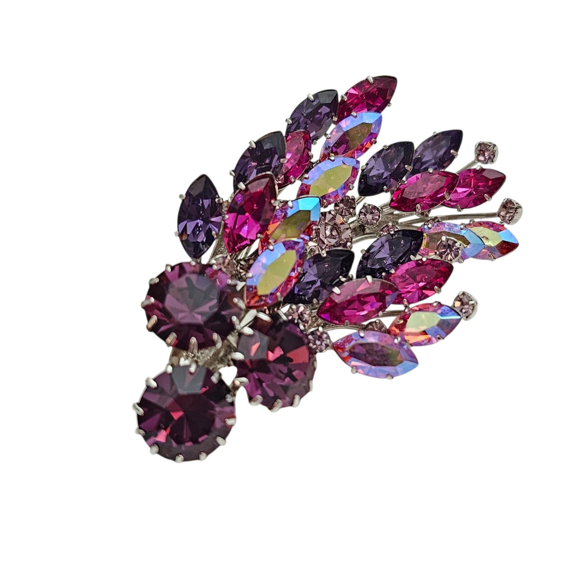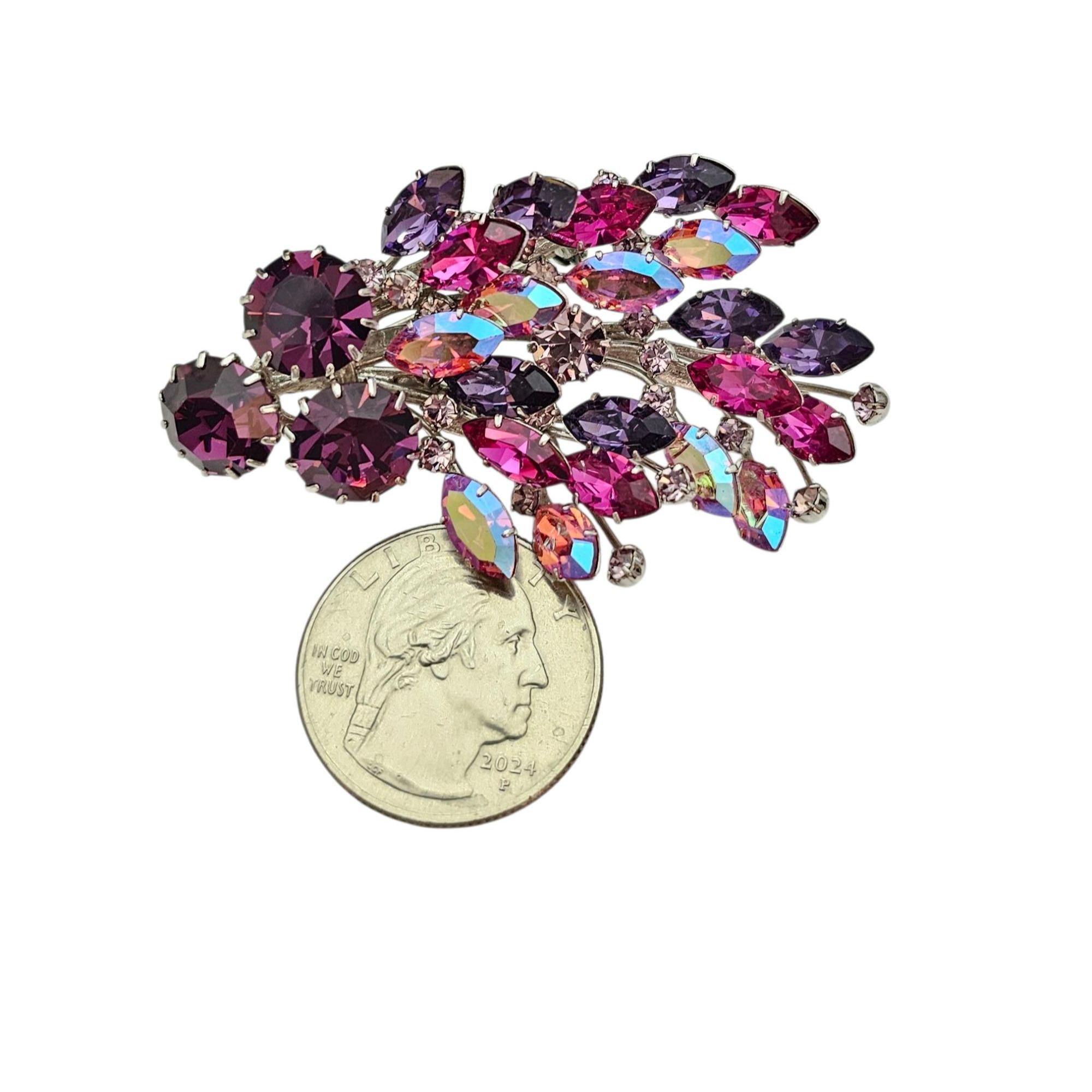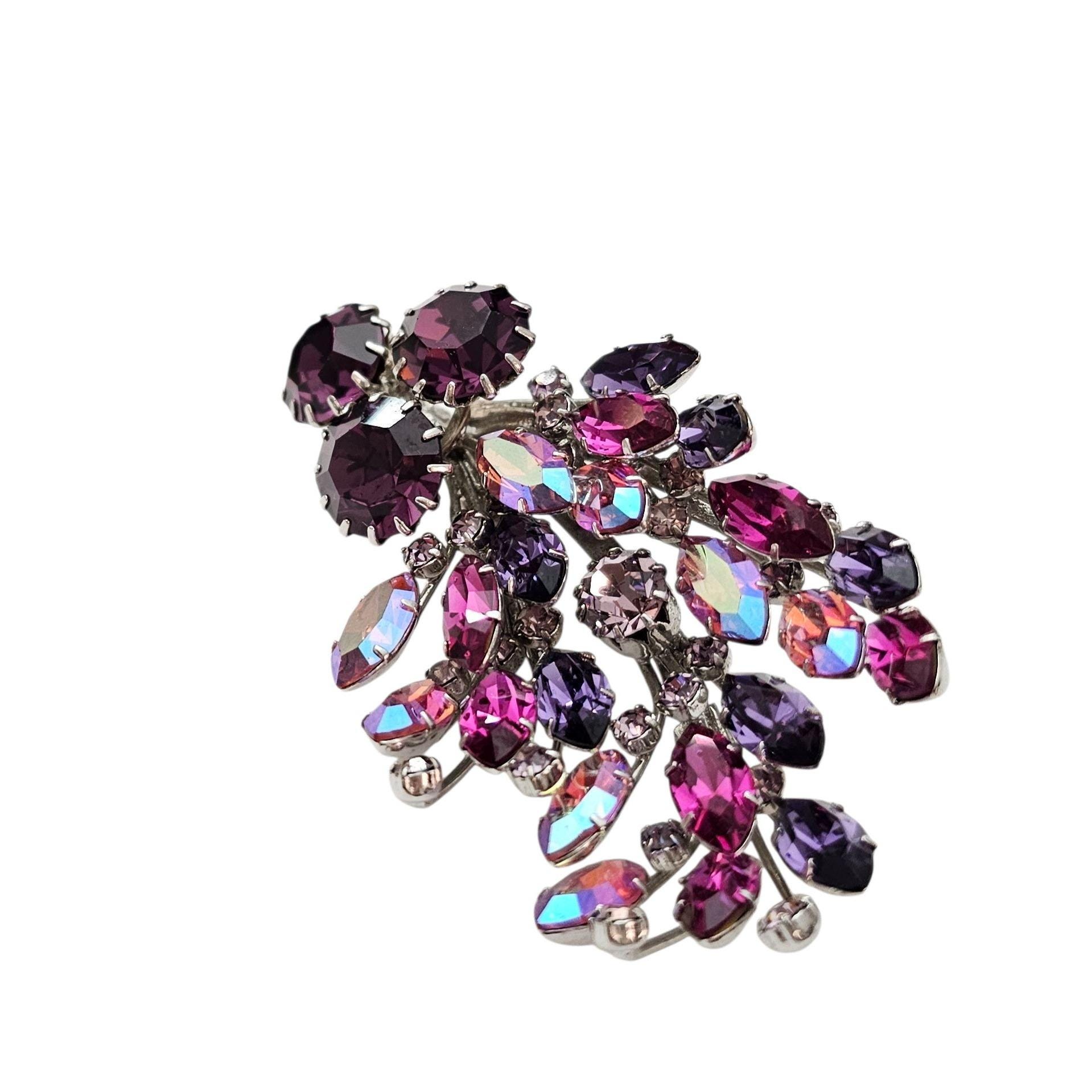 Manfred Kleinert Brooch Pink Purple AB Rhinestone Cluster Swag Pin Marked 41, C424