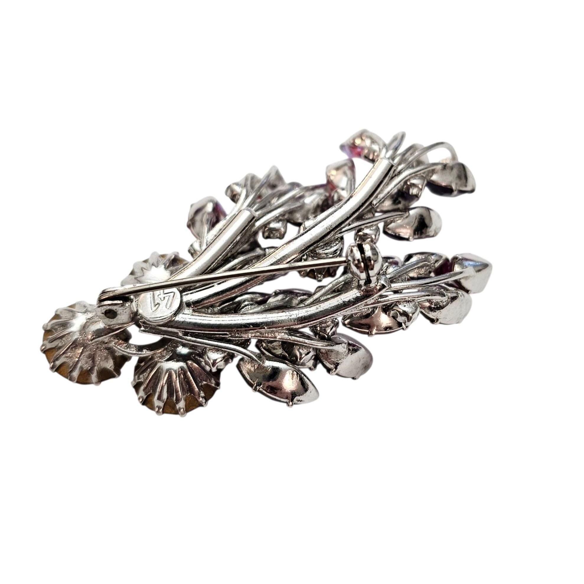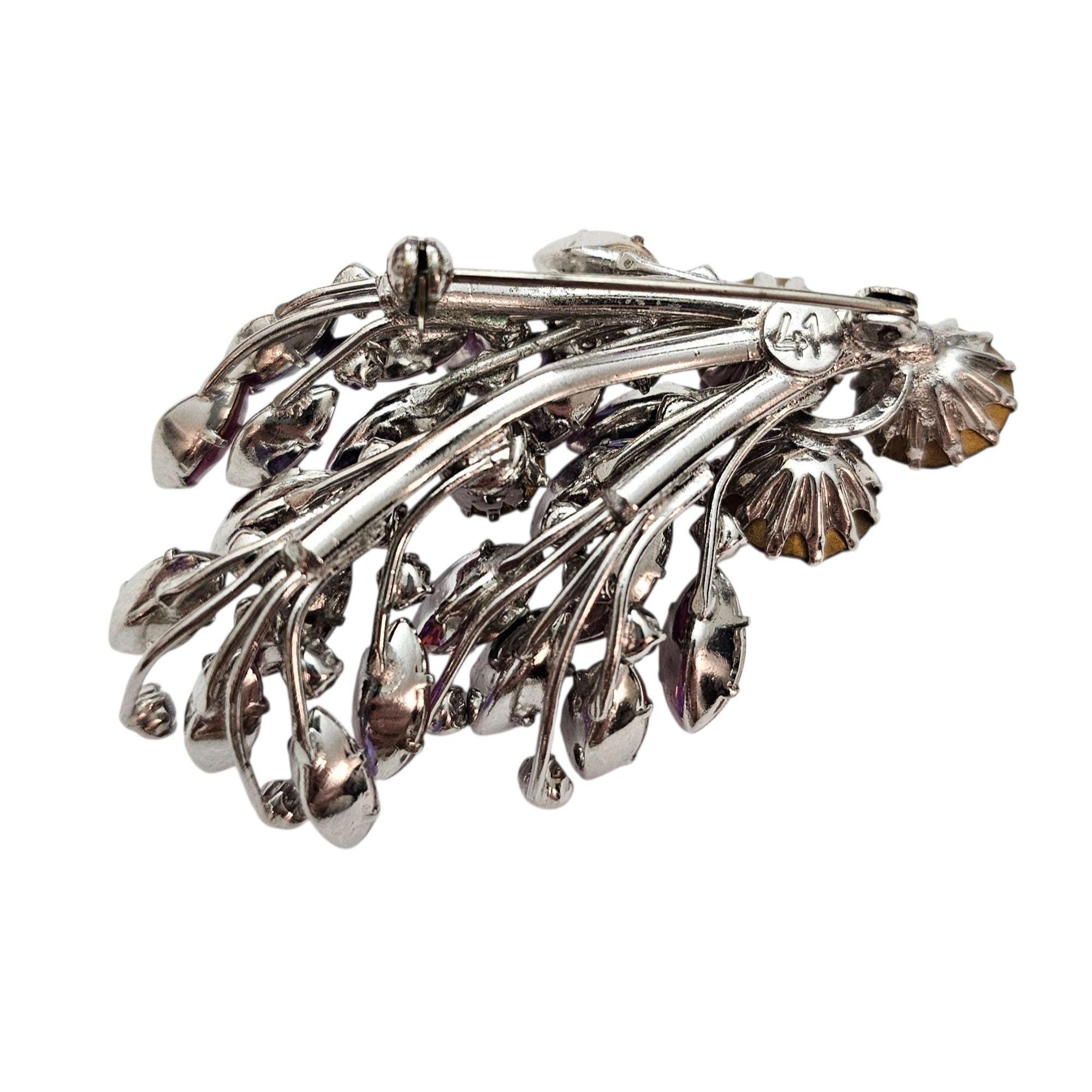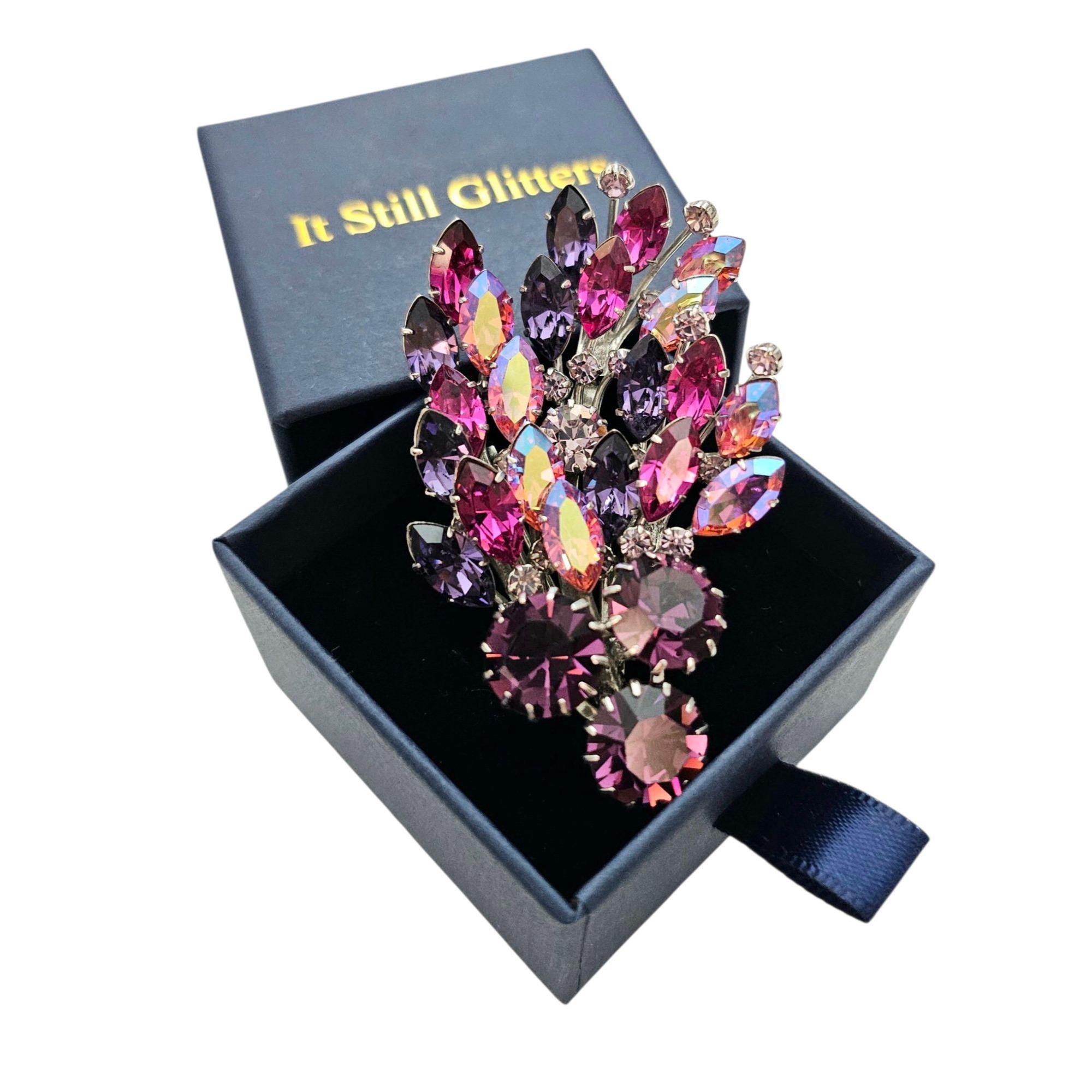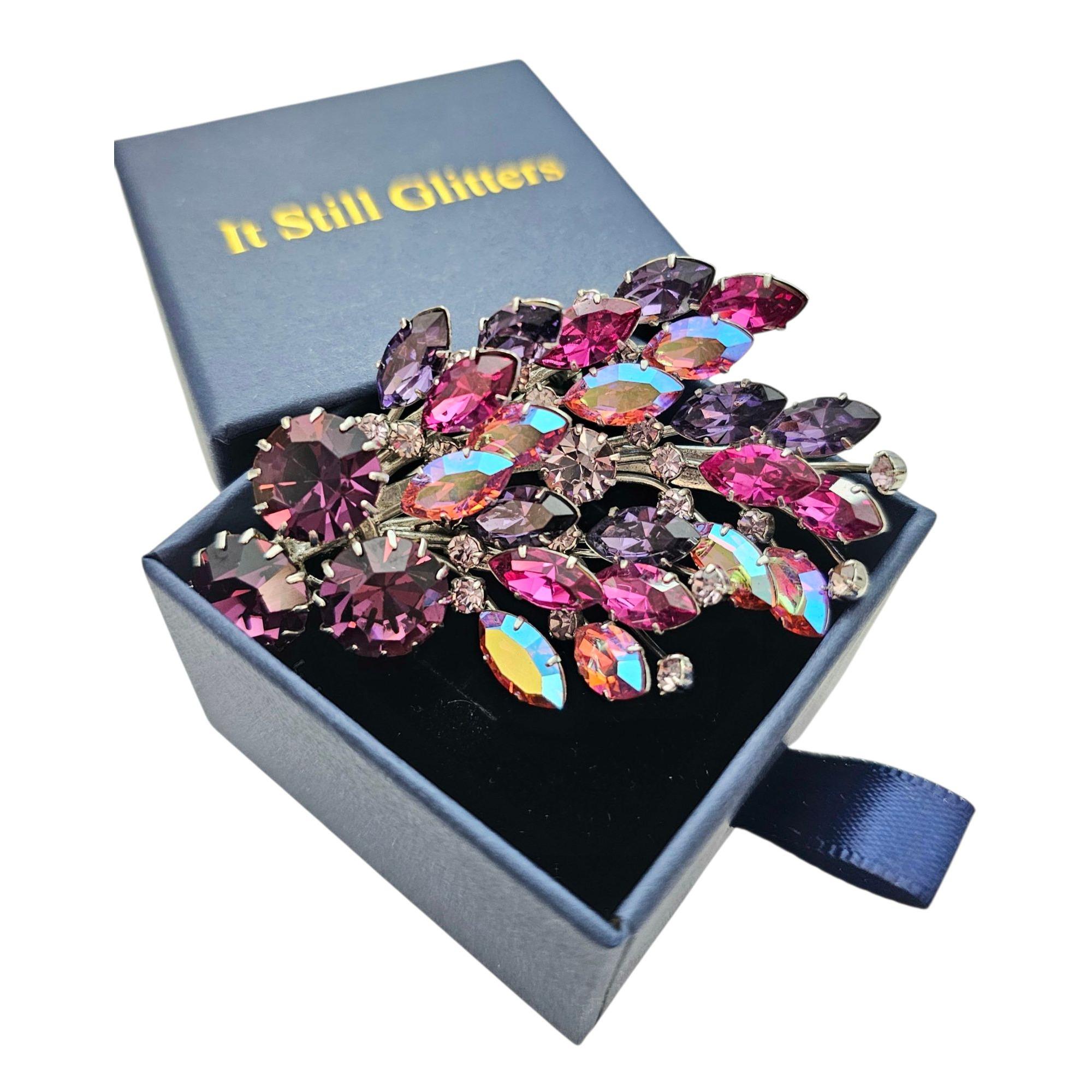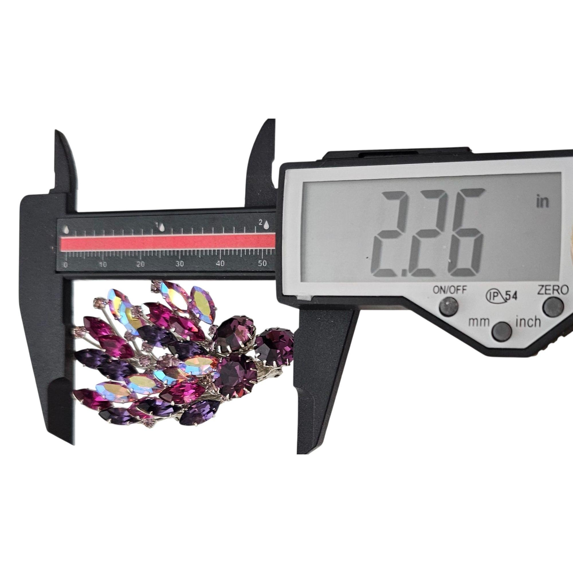 Manfred Kleinert Brooch Pink Purple AB Rhinestone Cluster Swag Pin Marked 41, C424