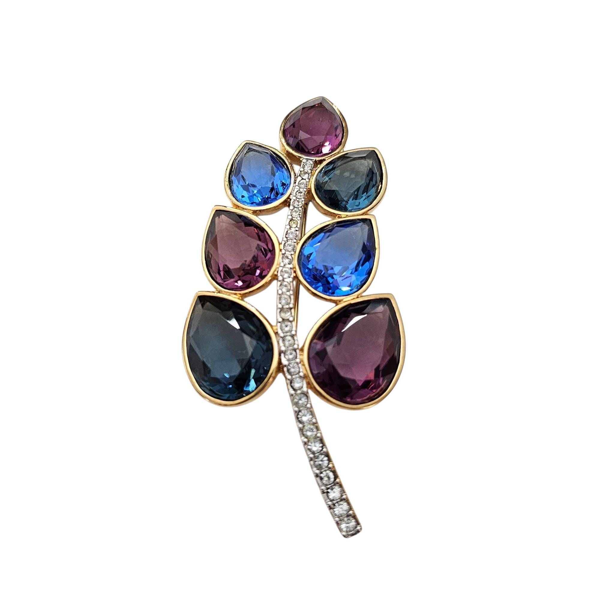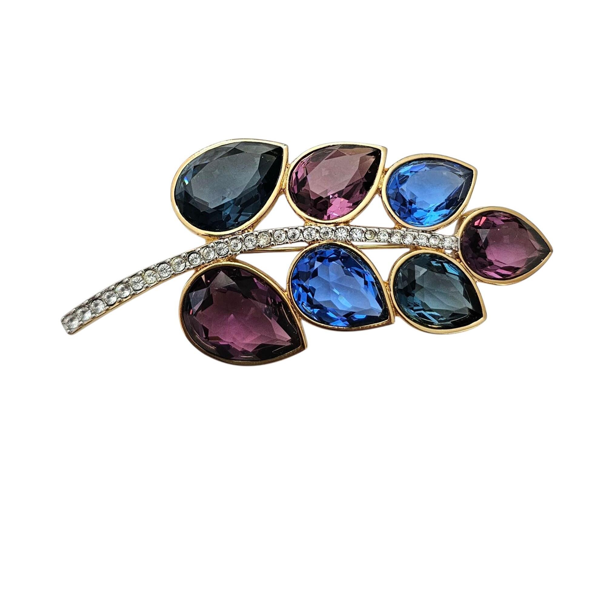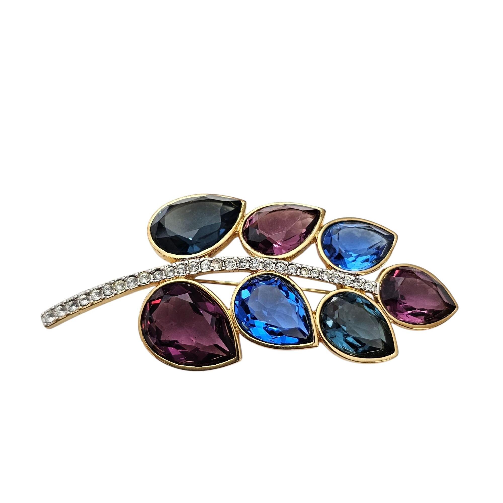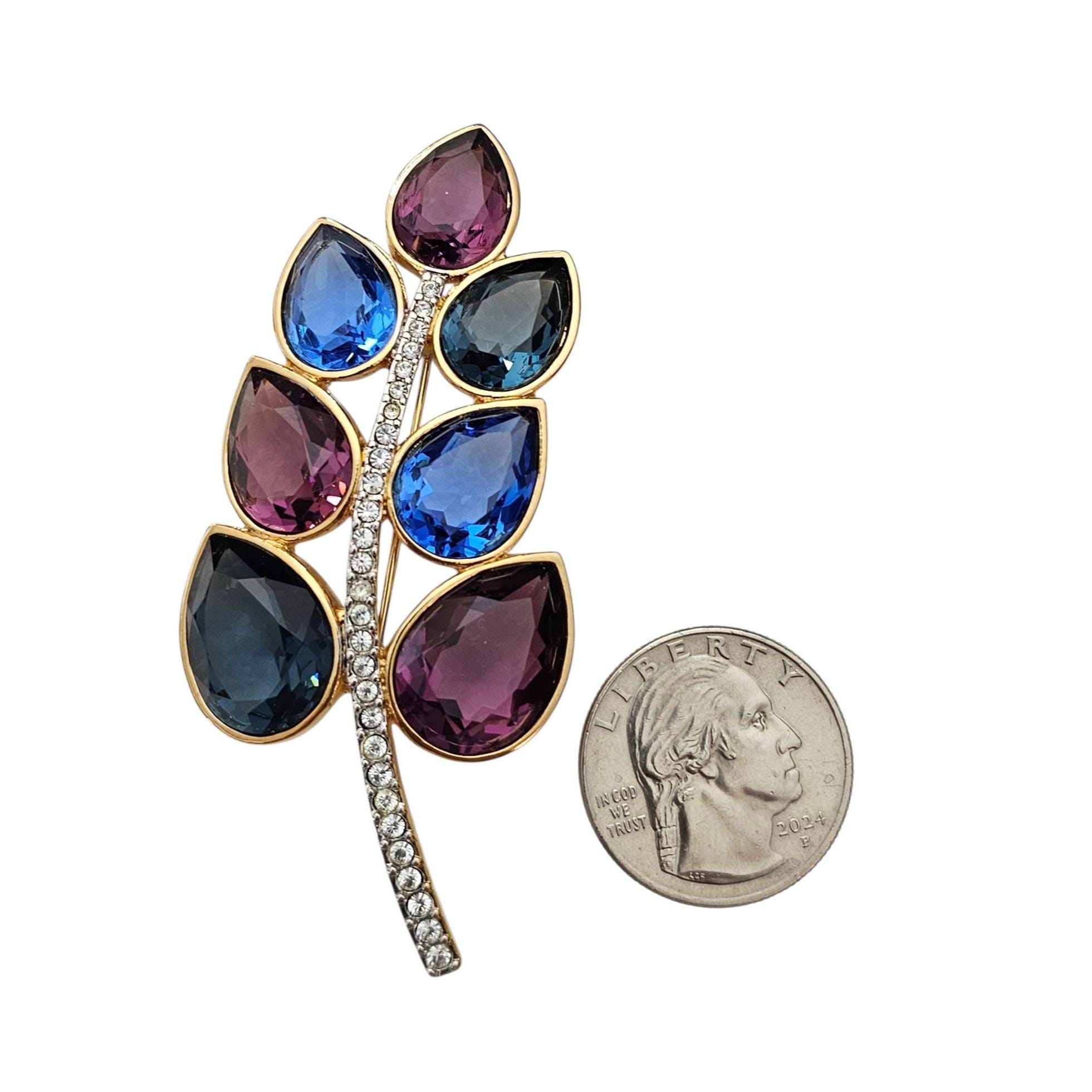 Swarovski Open Back Crystal Leaf Brooch, Purple Blue Clear Marked Swan Logo Pin C438