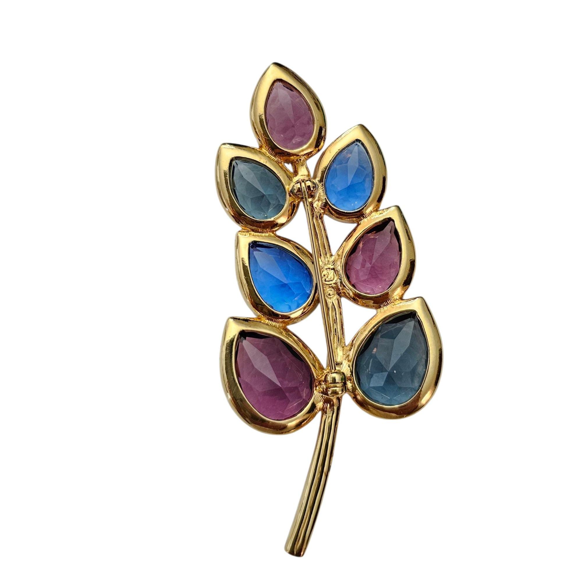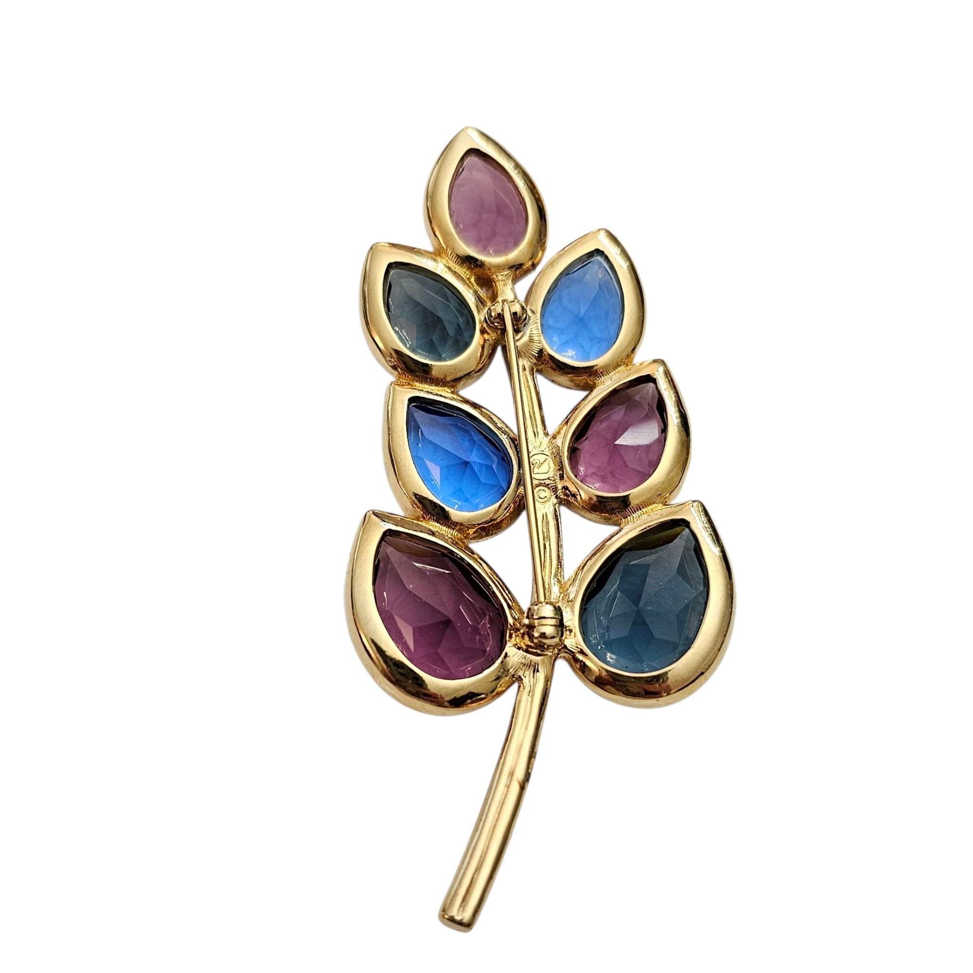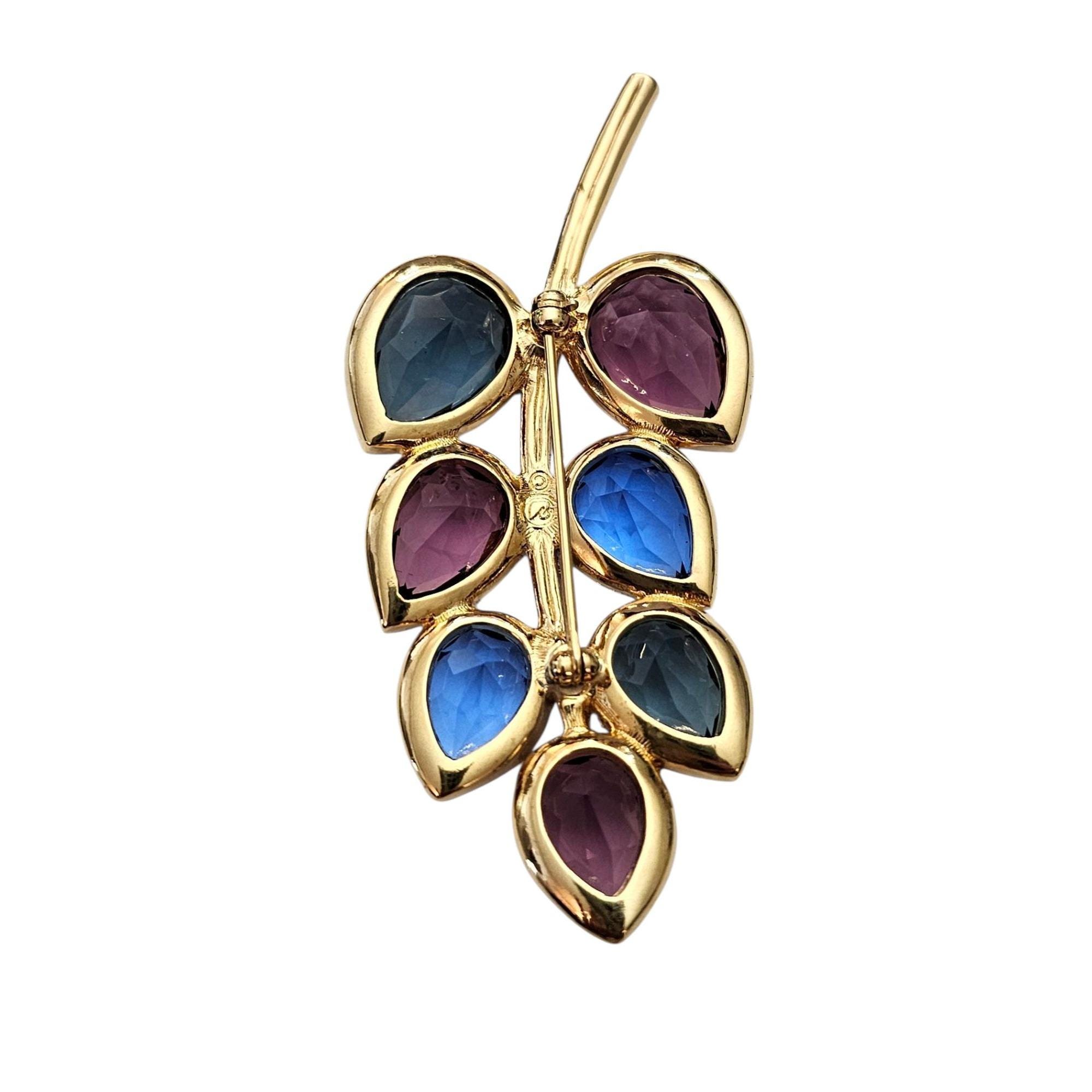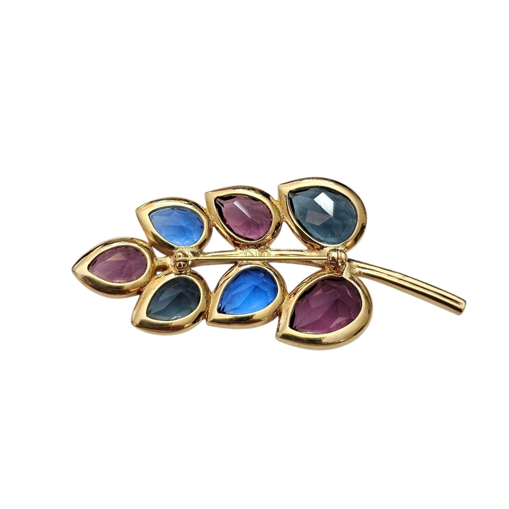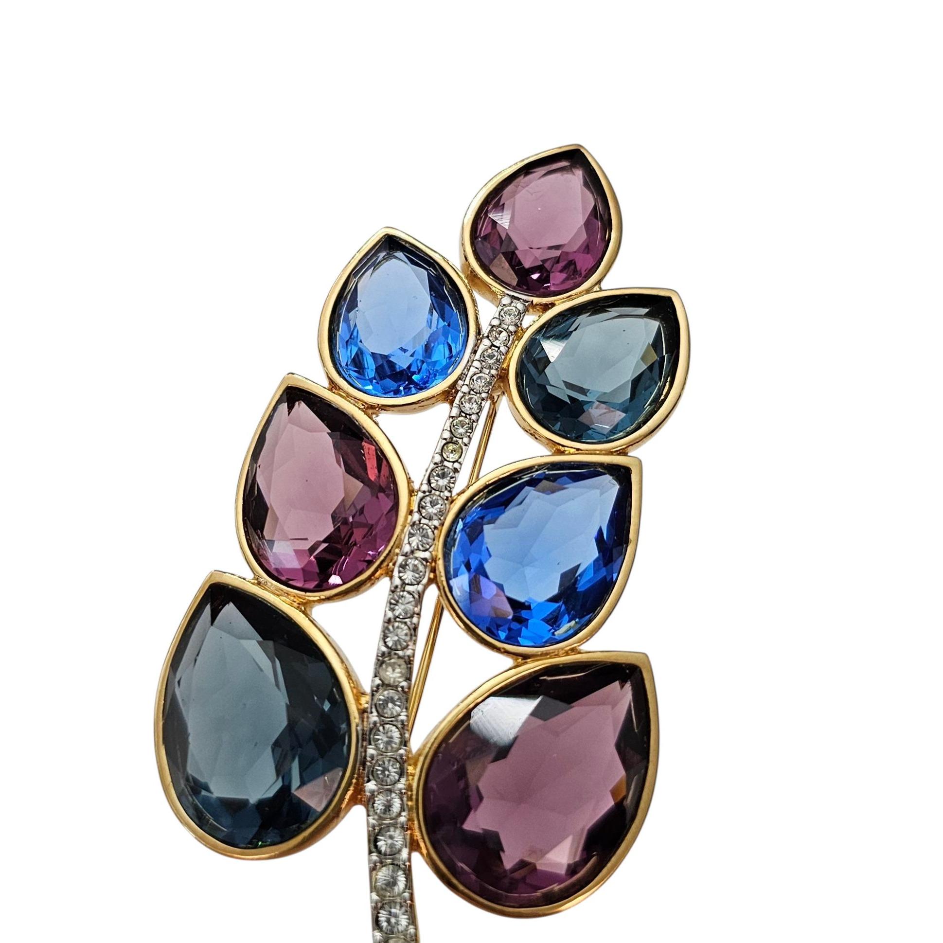 Swarovski Open Back Crystal Leaf Brooch, Purple Blue Clear Marked Swan Logo Pin C438