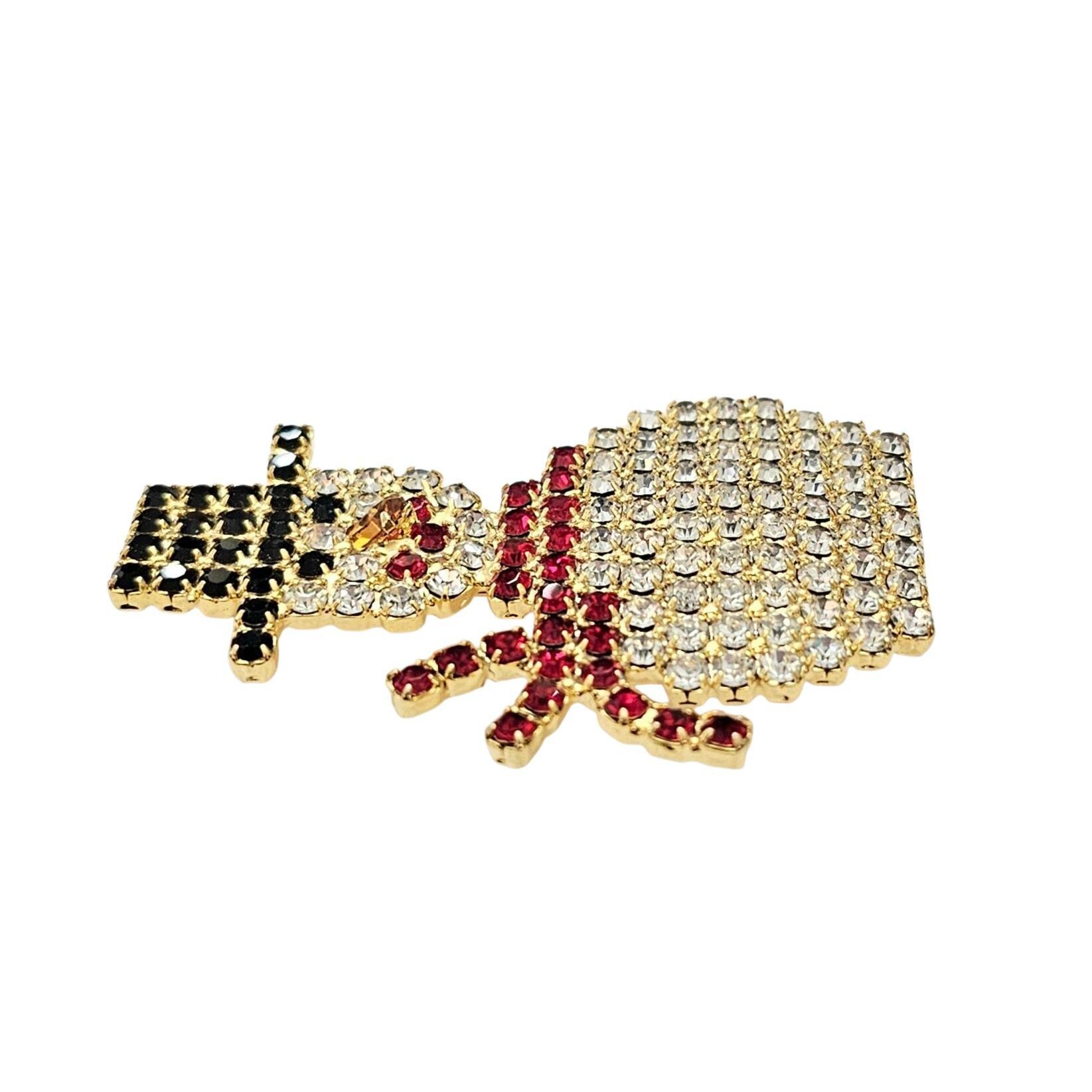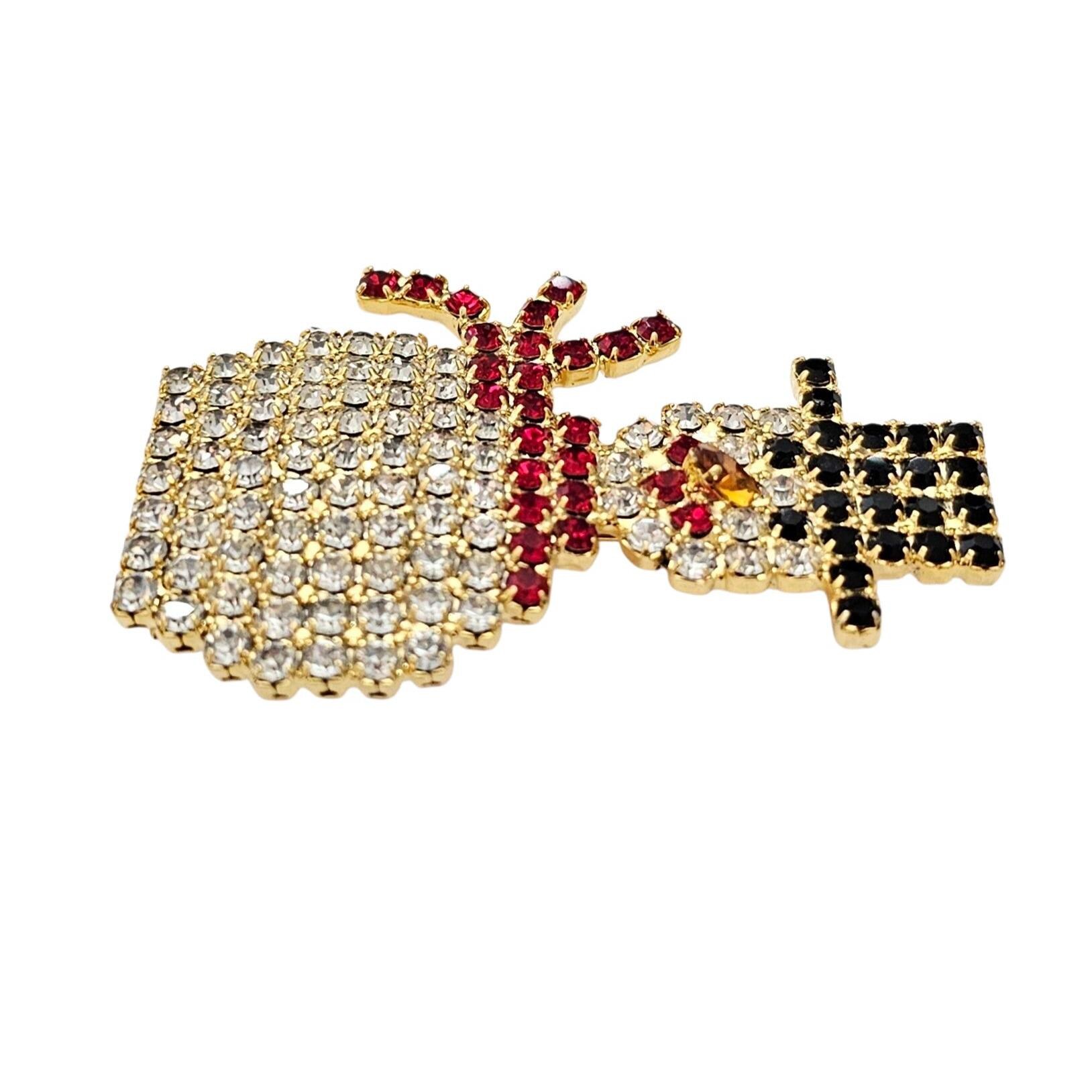 Snowman Brooch Clear Red Black Rhinestone Pin Vintage C437