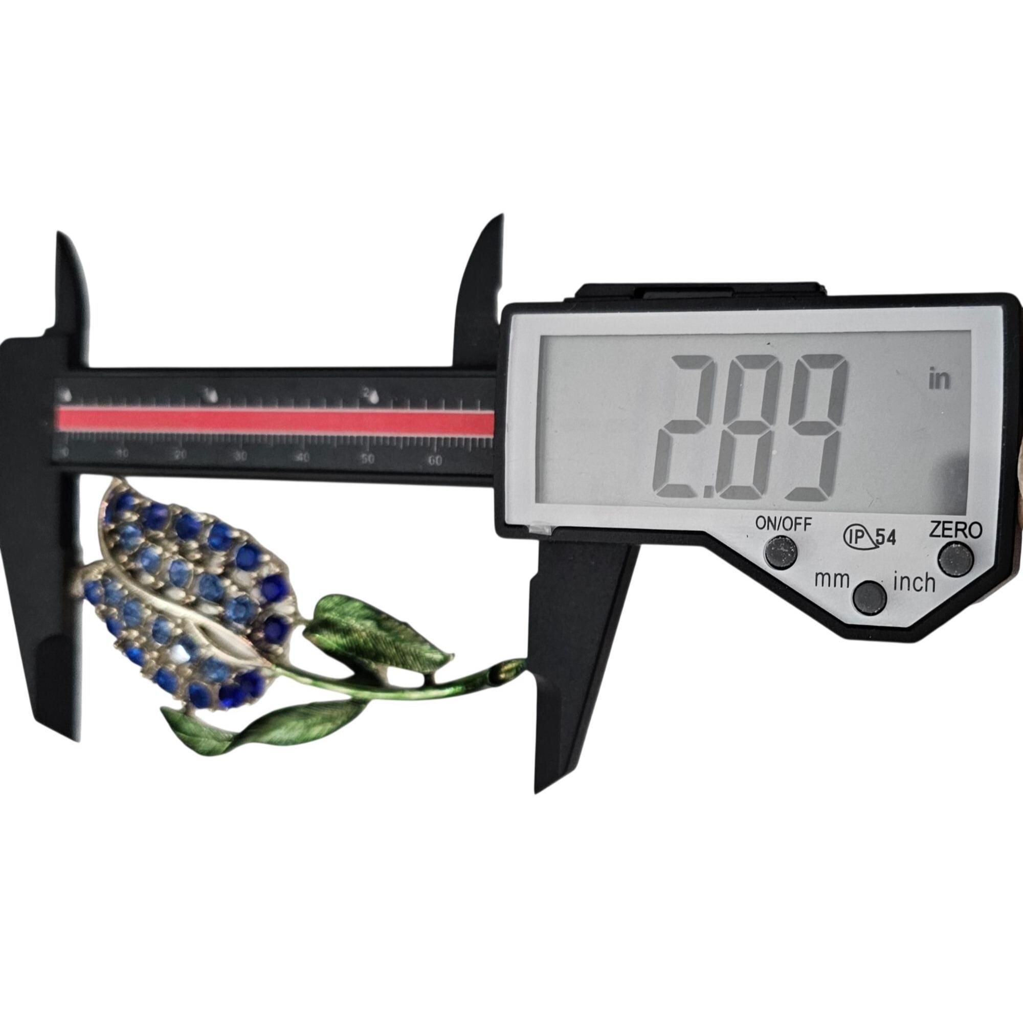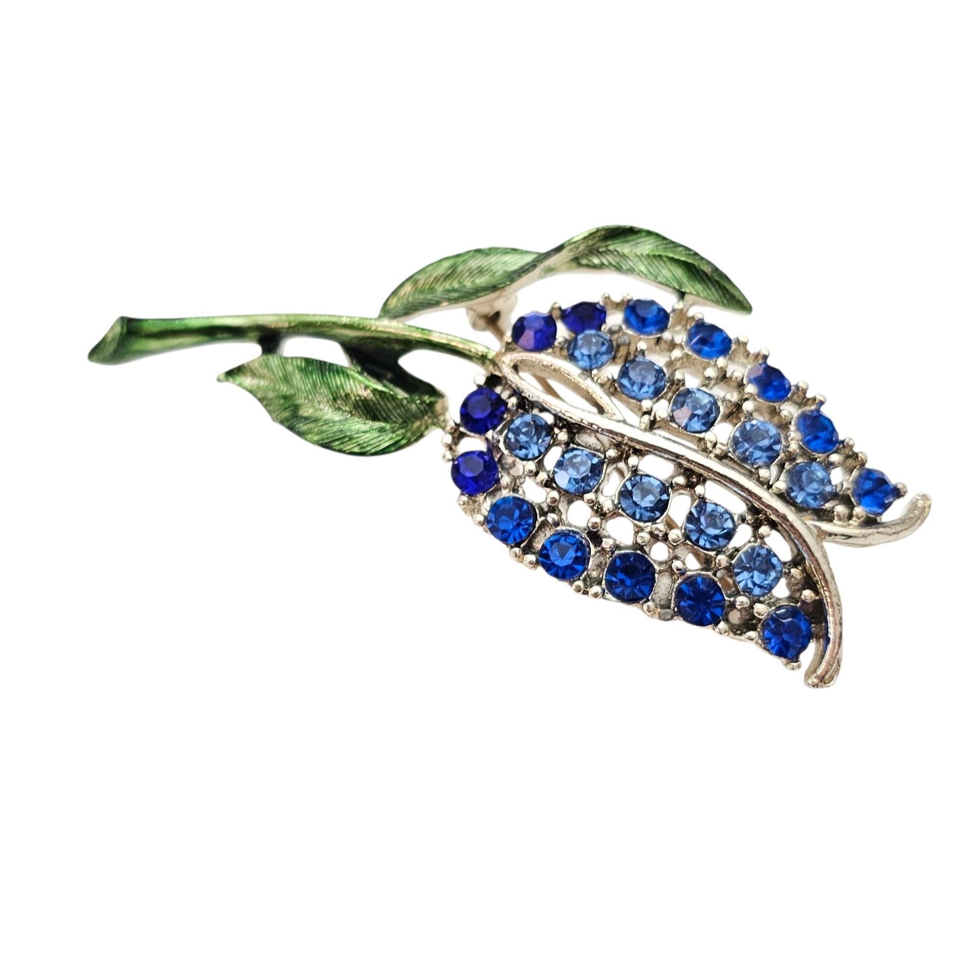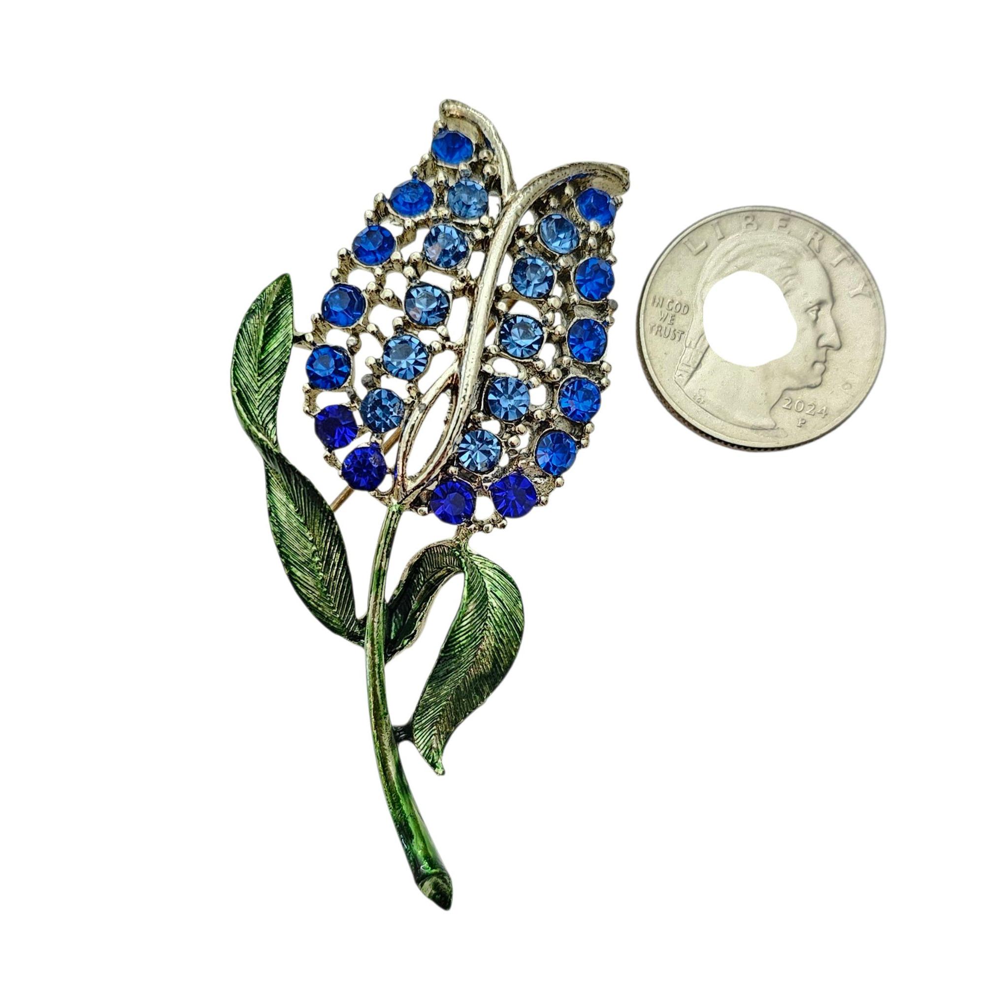 Vintage Blue Rhinestone Tulip Brooch, Mid Century New Old Stock Pin C435