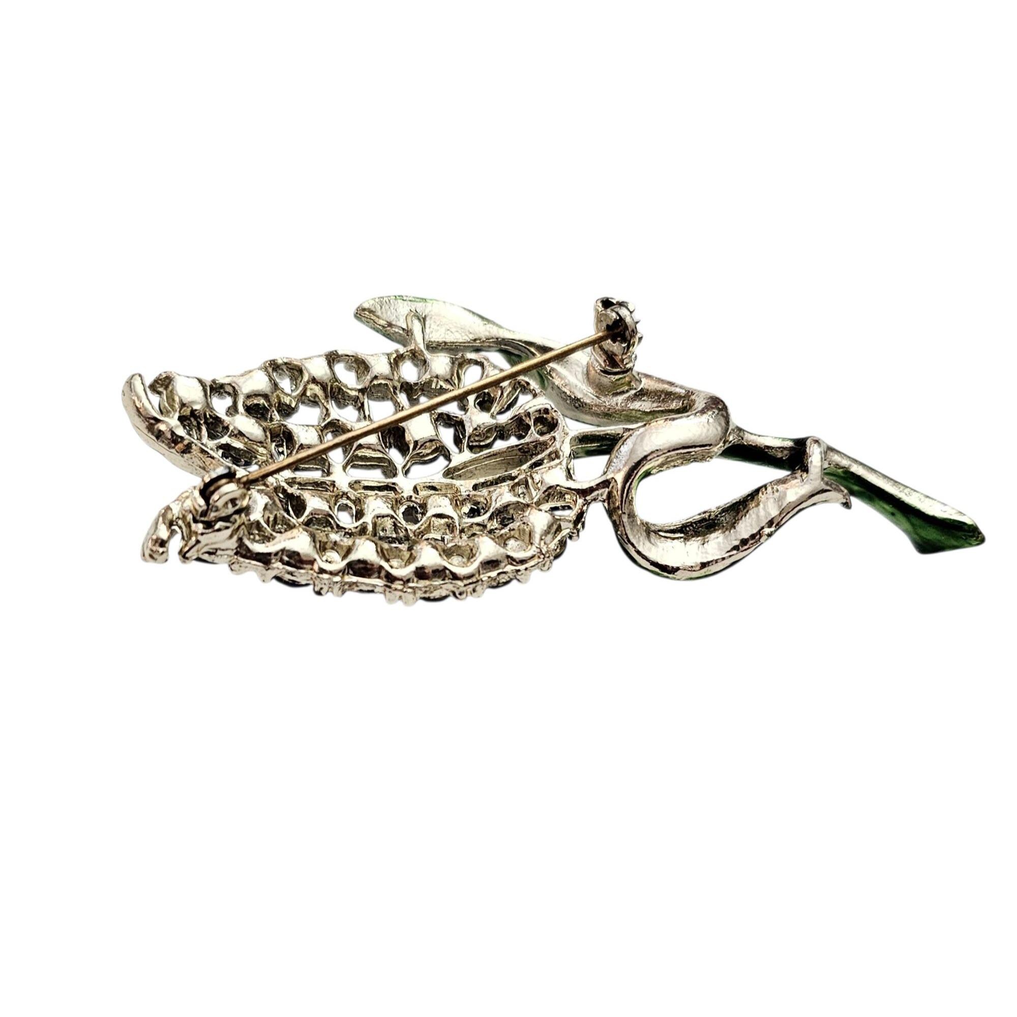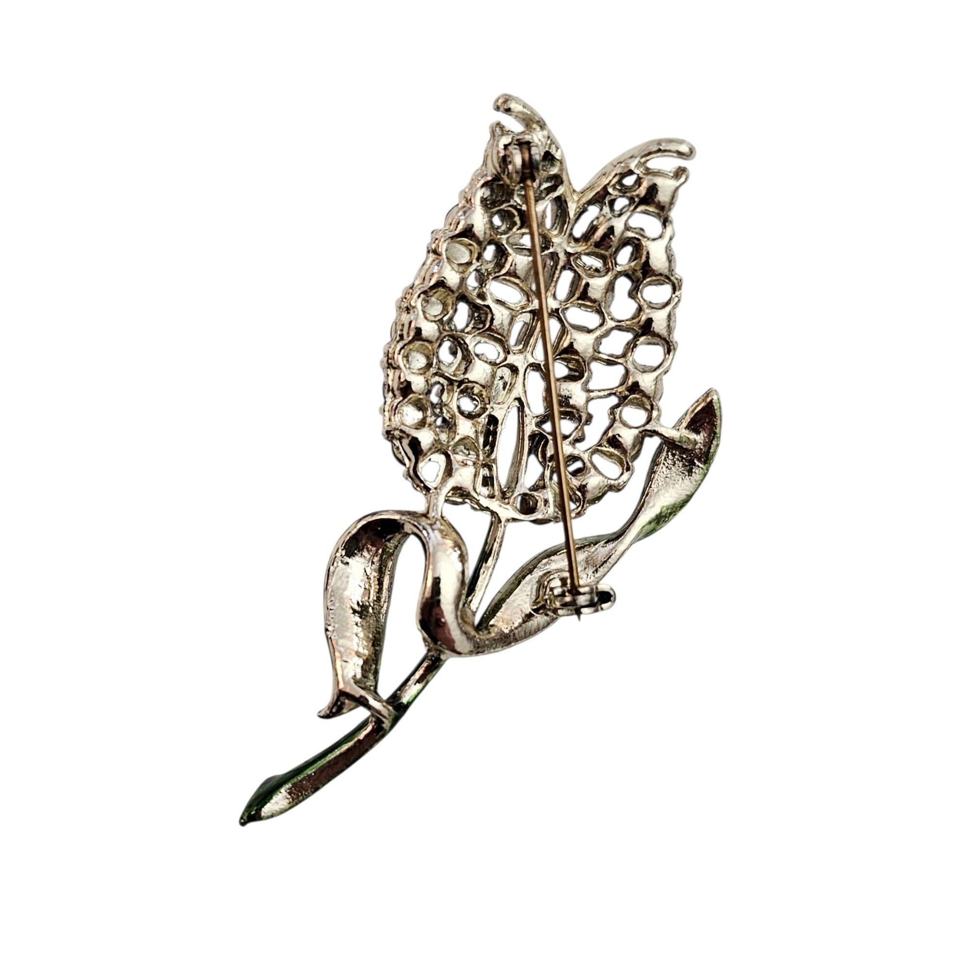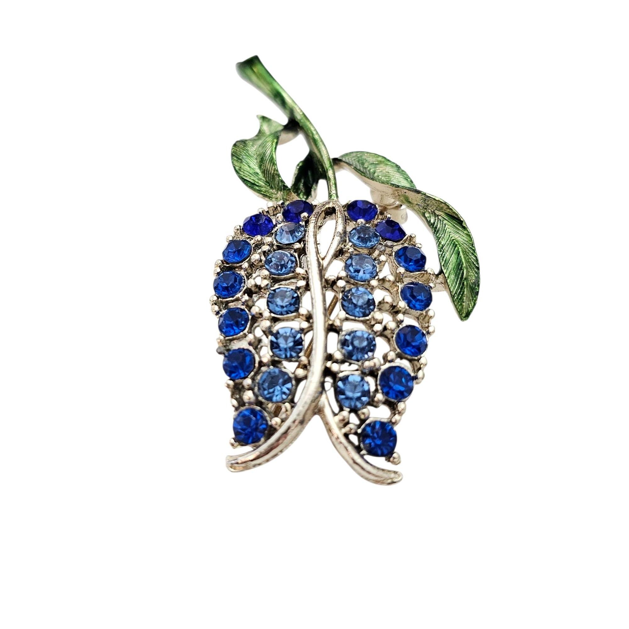 Vintage Blue Rhinestone Tulip Brooch, Mid Century New Old Stock Pin C435