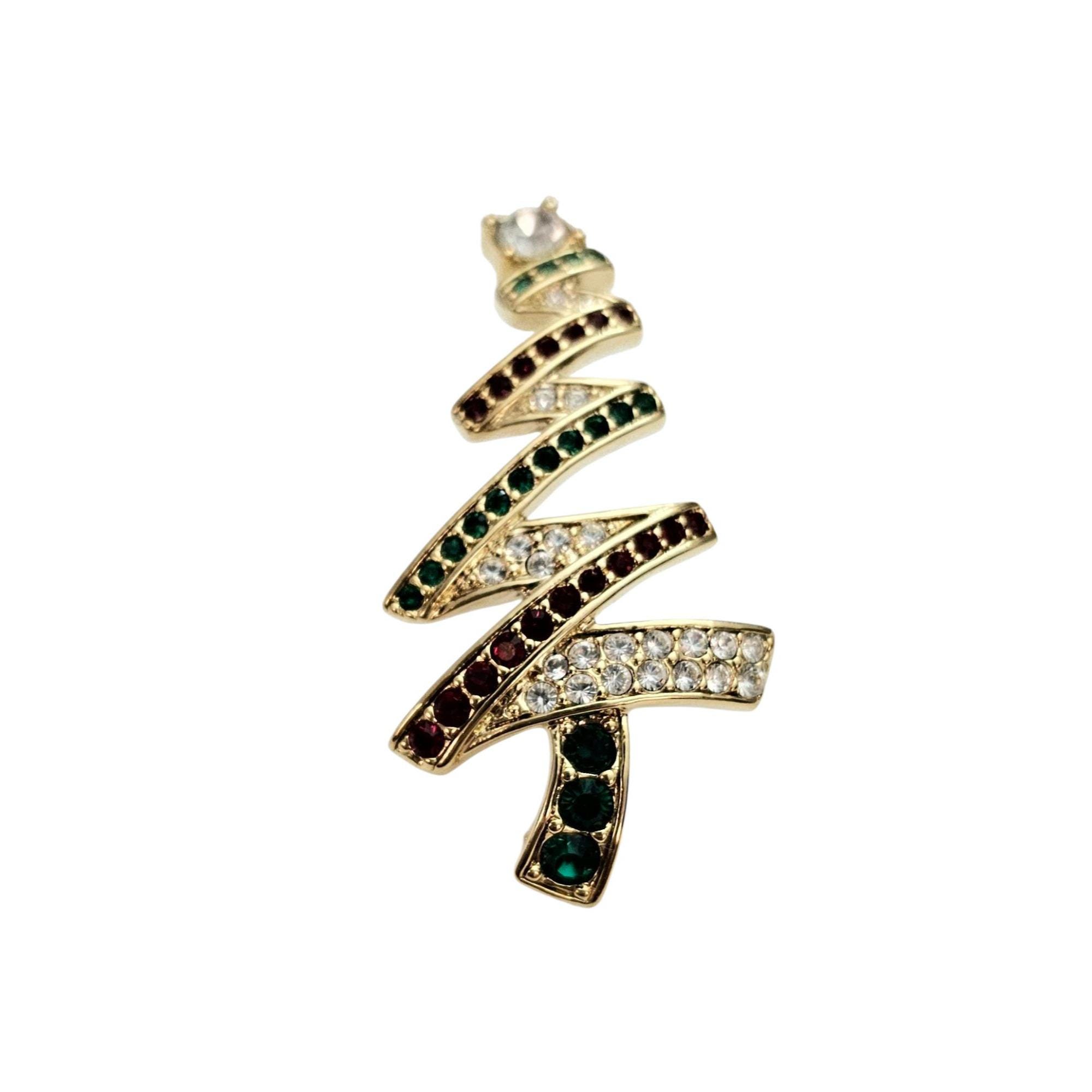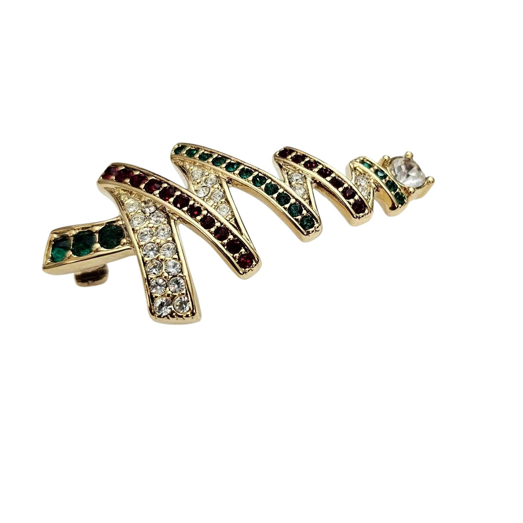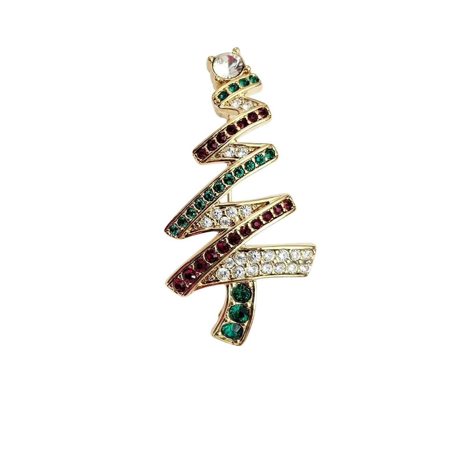 Monet Christmas Tree Red Green Clear Rhinestone Pin Signed C428