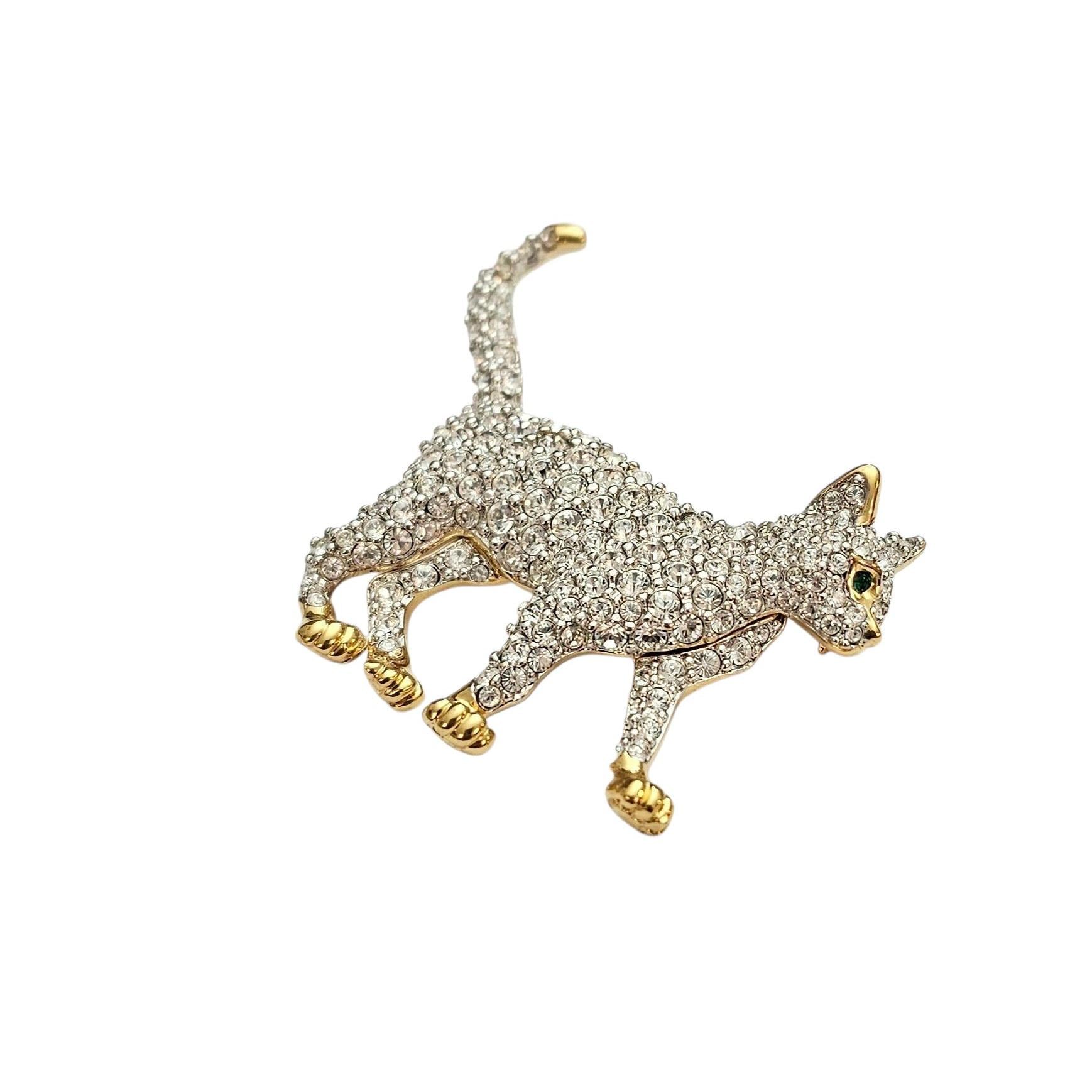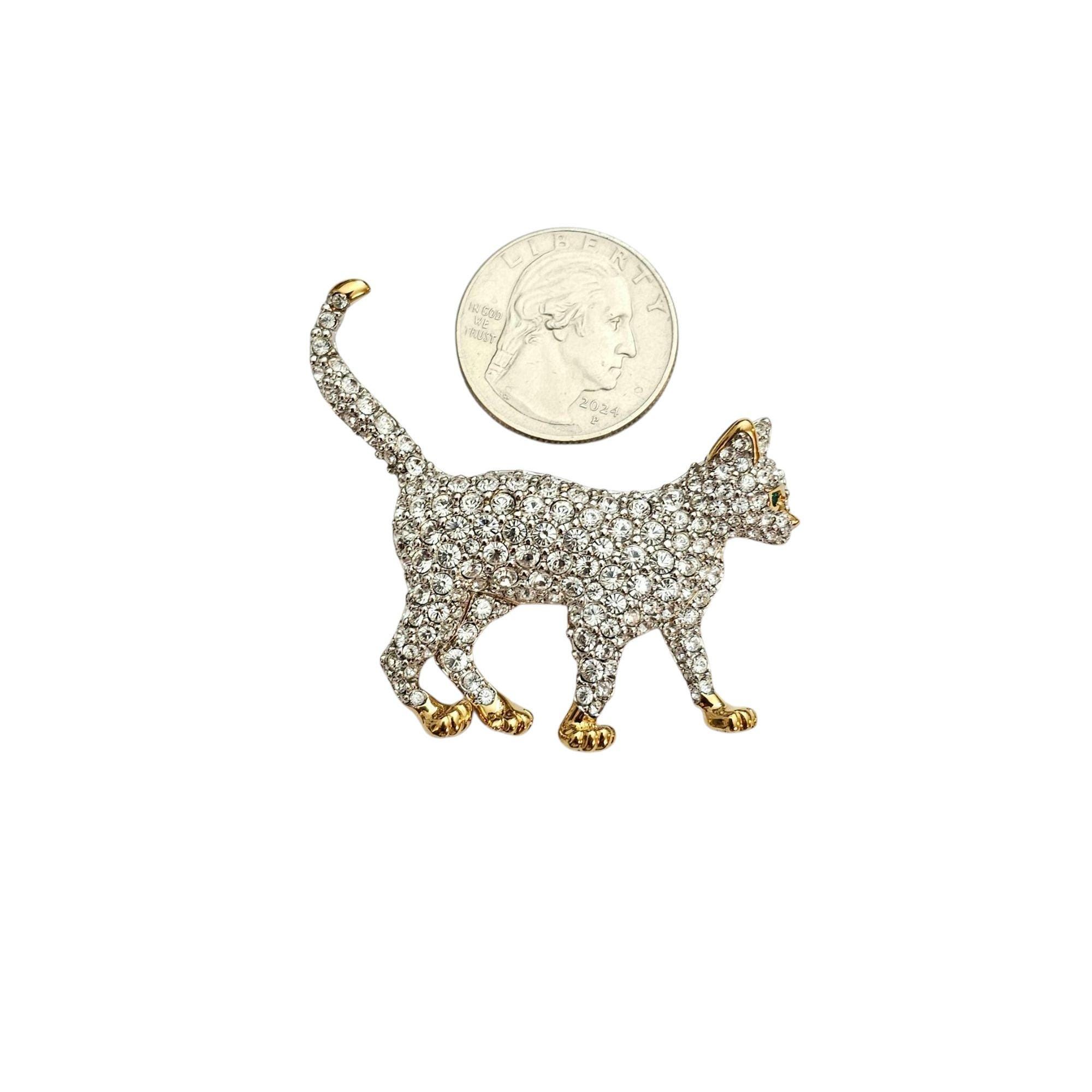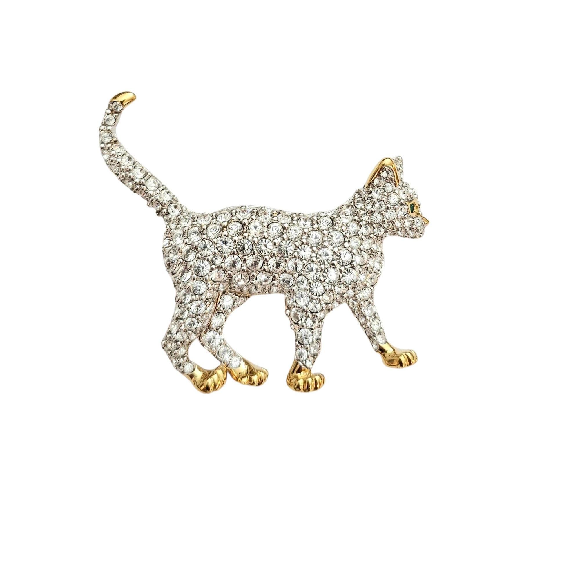 Swarovski Clear Rhinestone Cat Brooch Marked With Swan Logo, C440