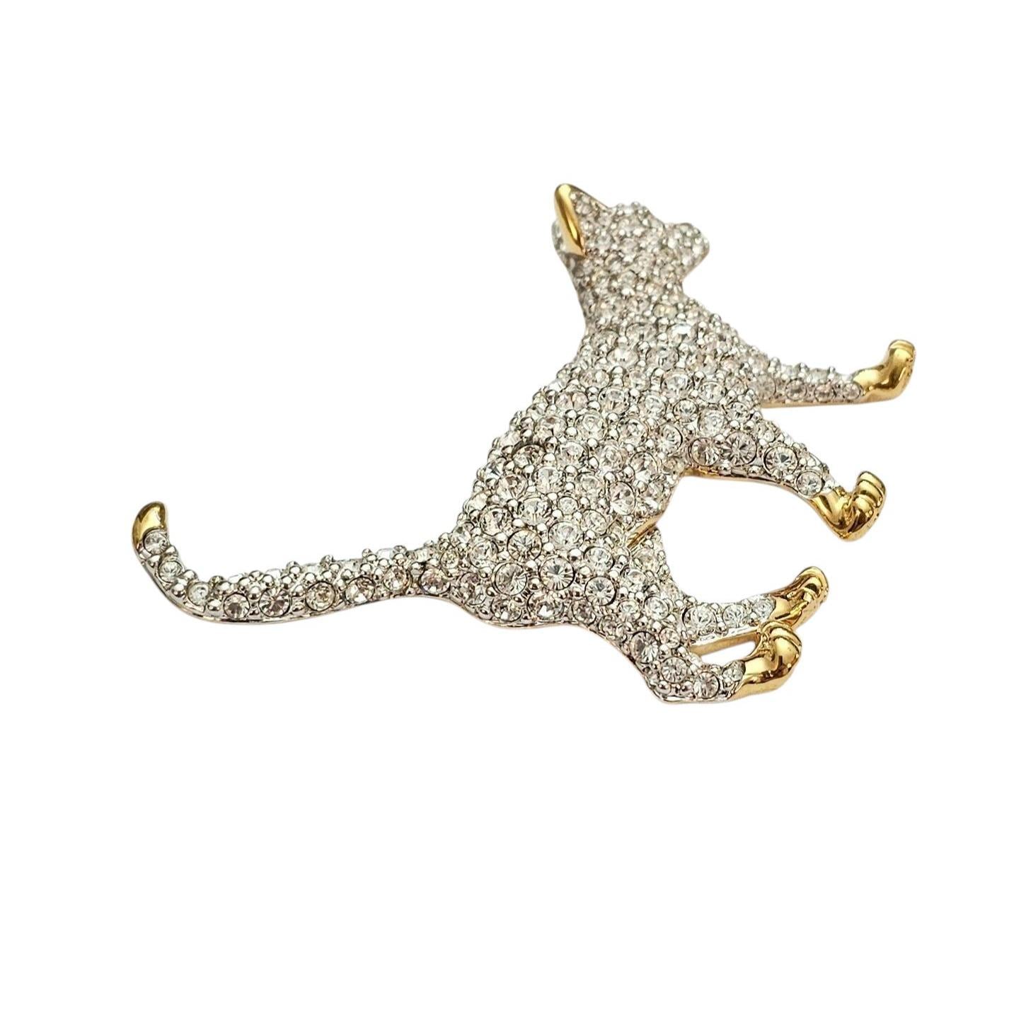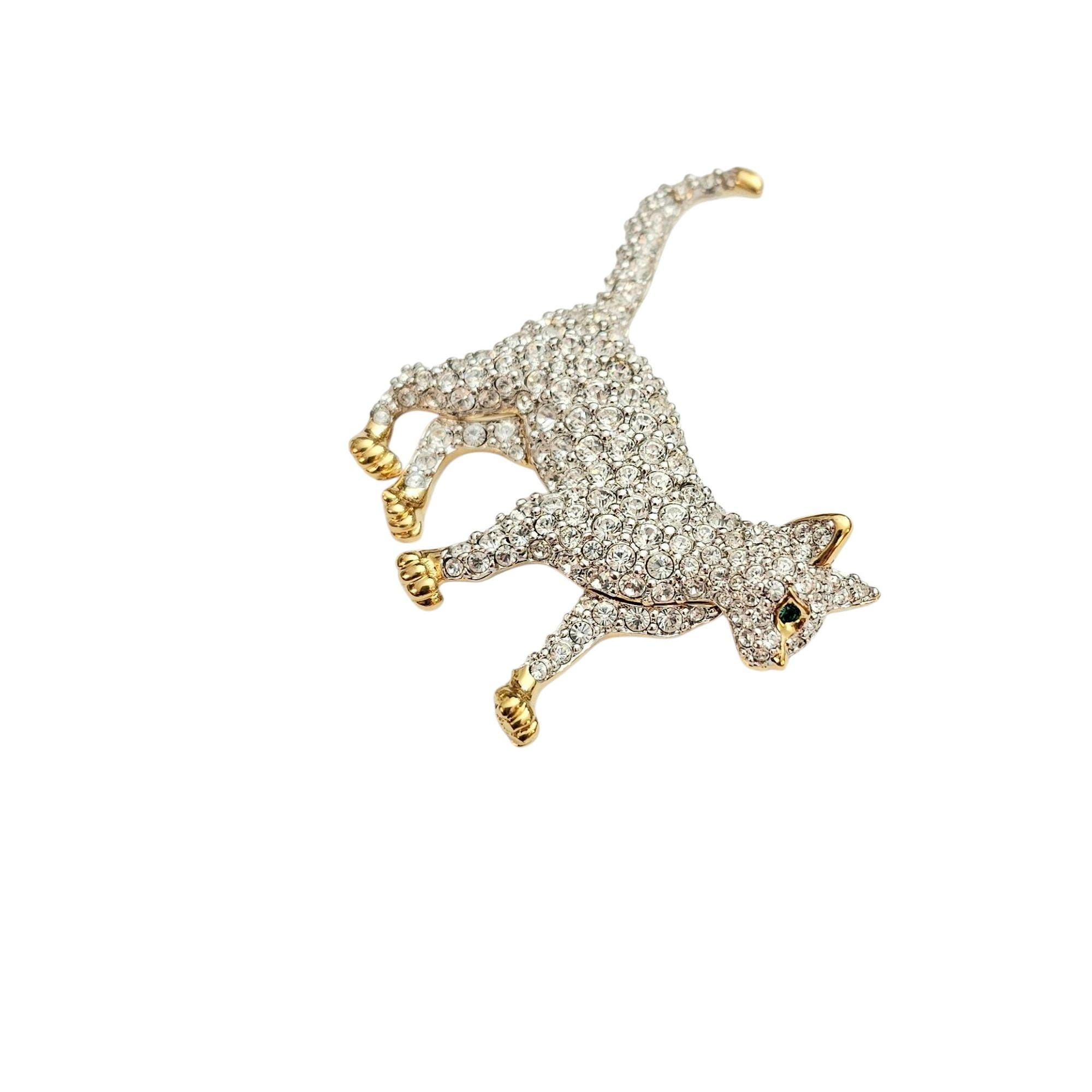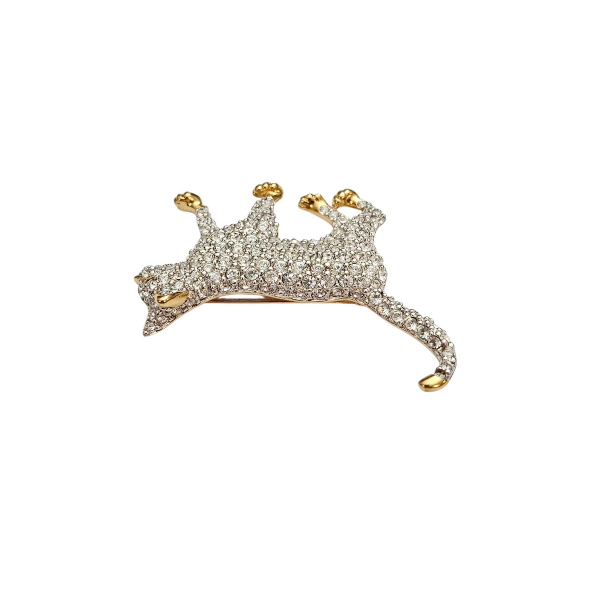 Swarovski Clear Rhinestone Cat Brooch Marked With Swan Logo, C440
