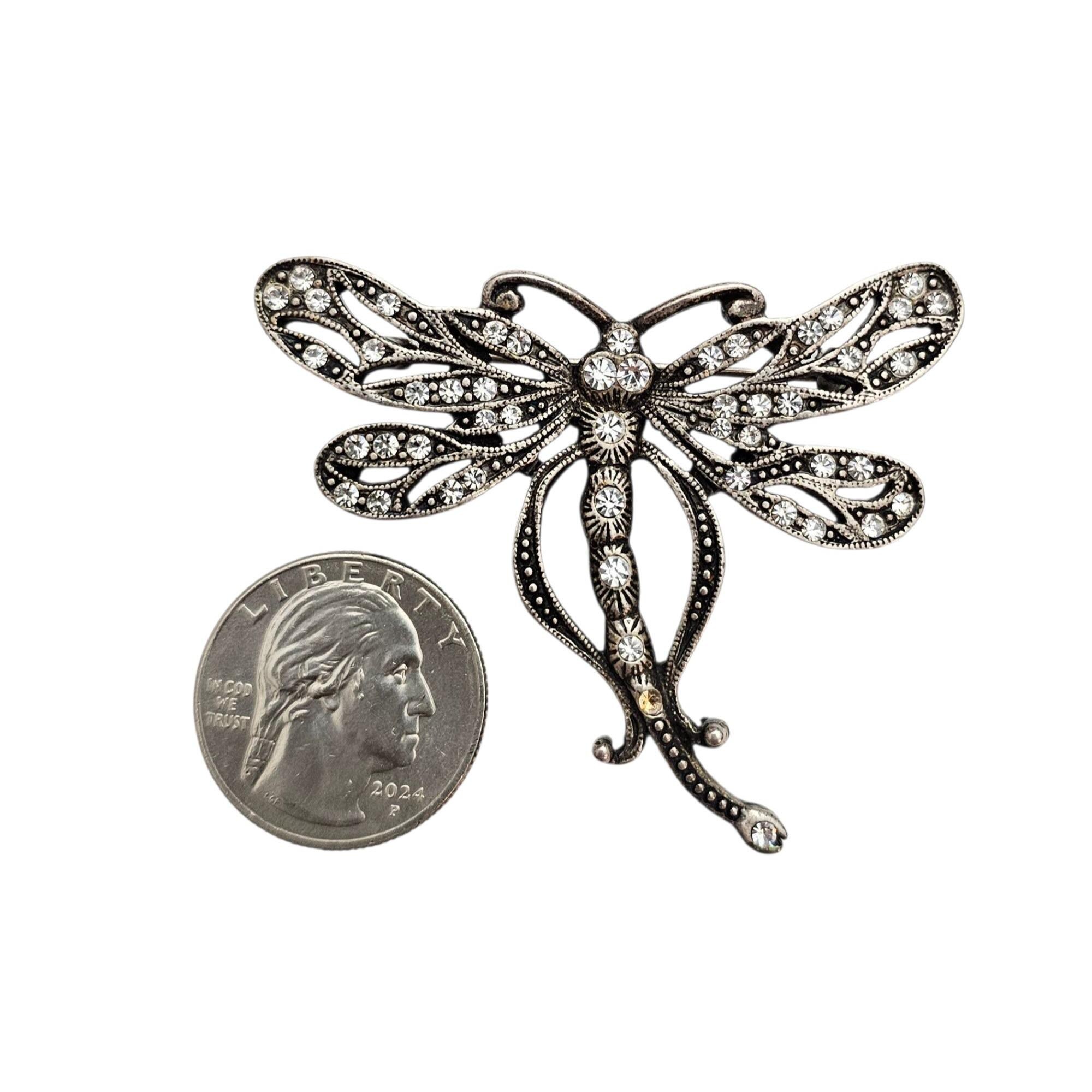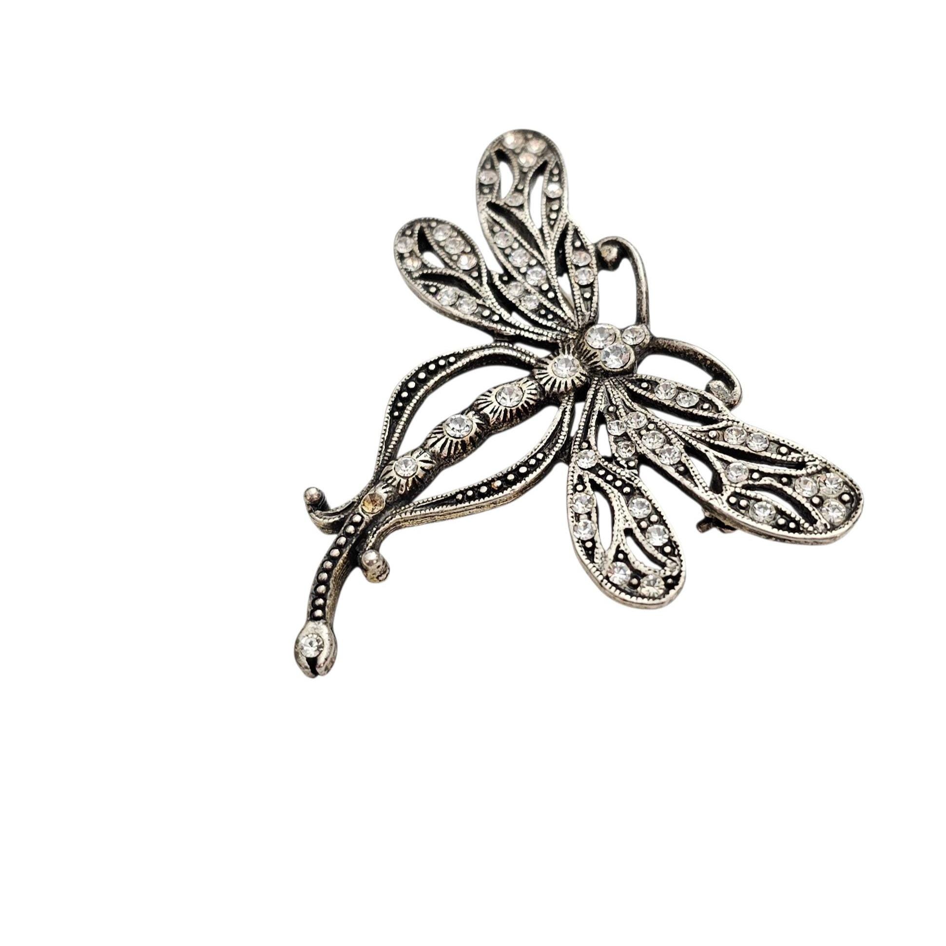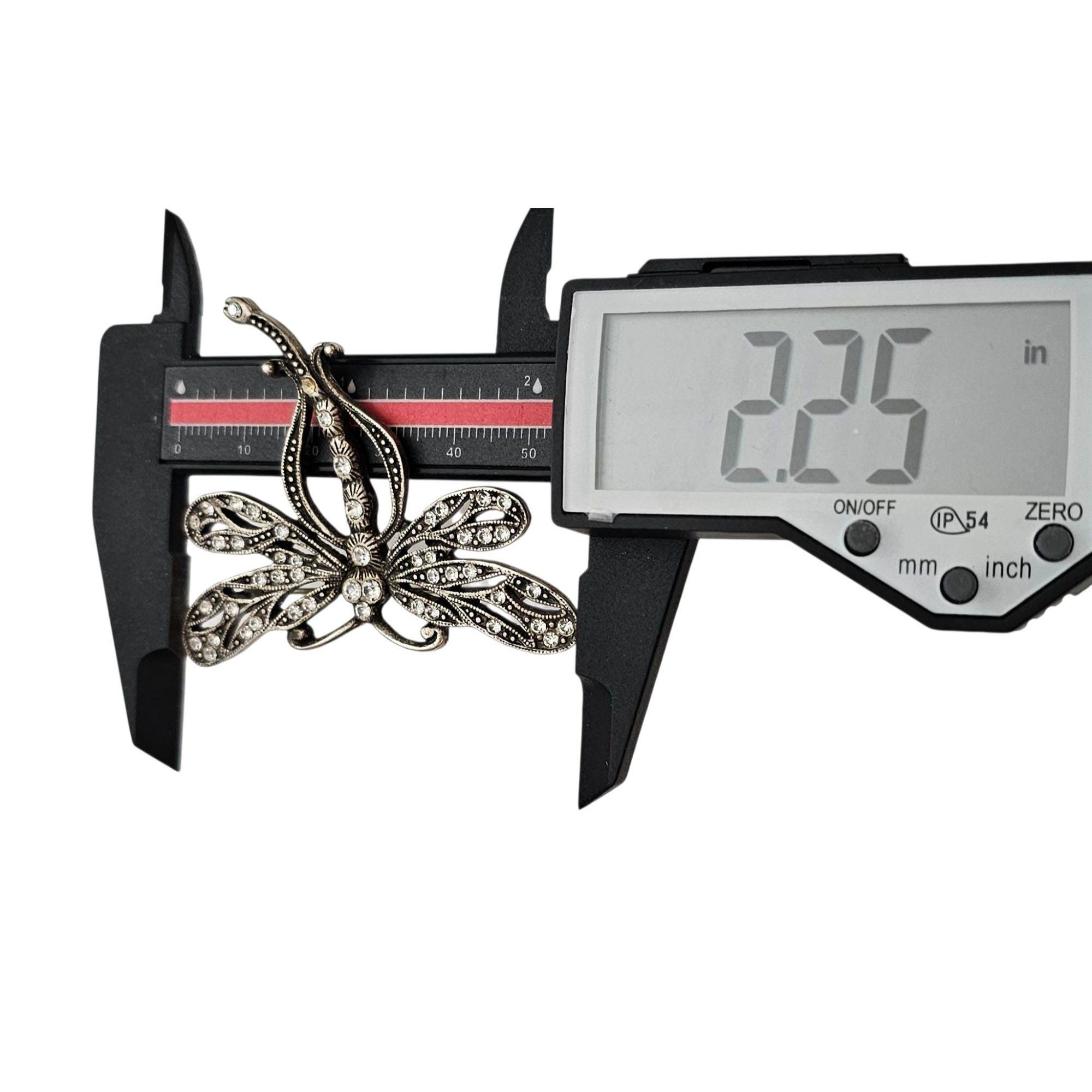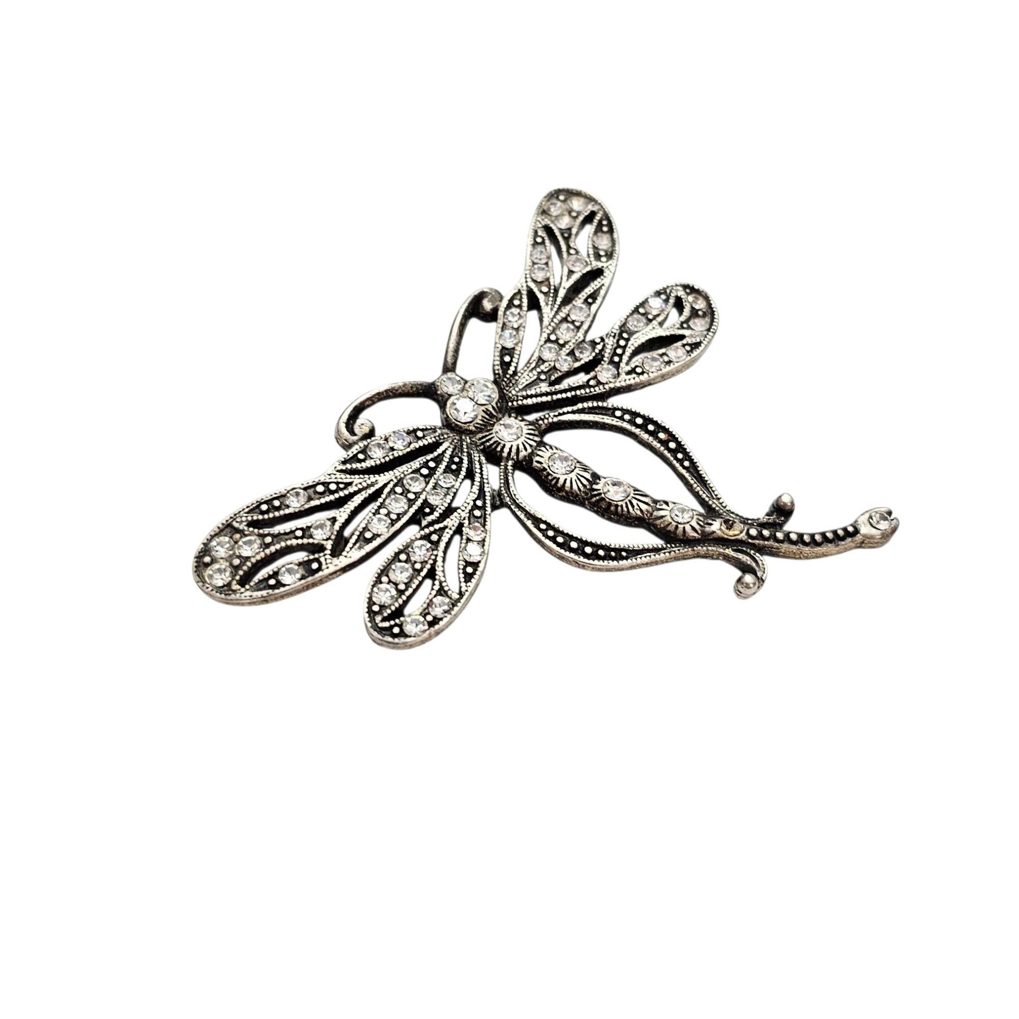 Sweet Romance Butterfly Brooch Clear Rhinestone Silver Tone Pin Signed, C442