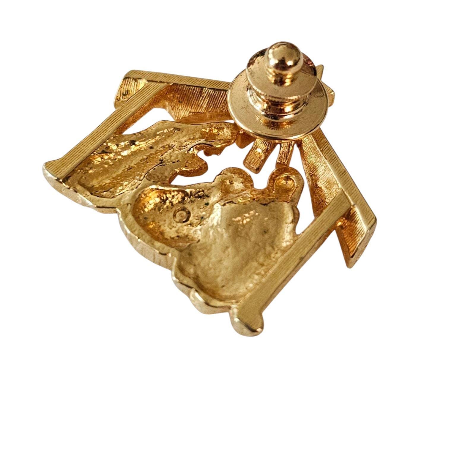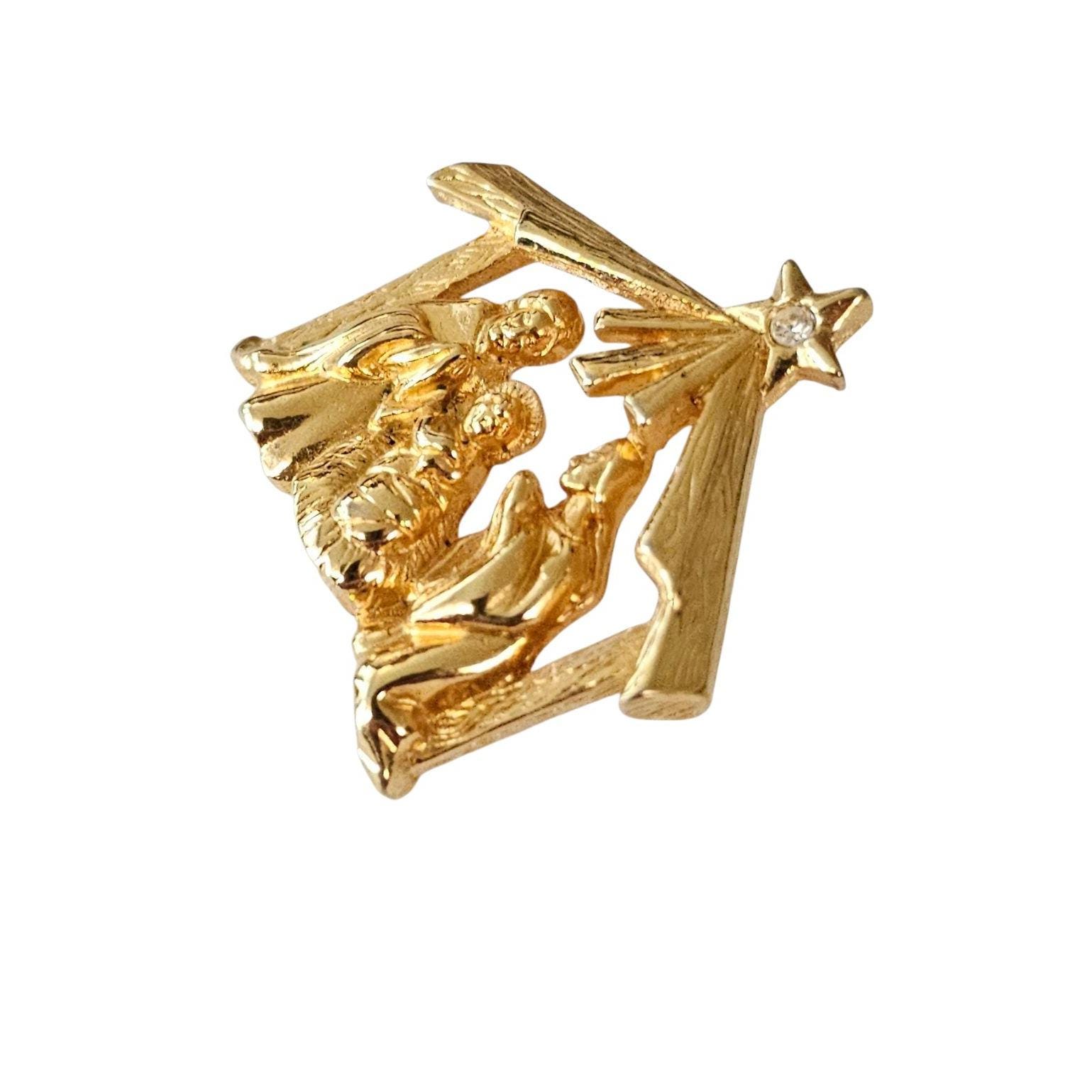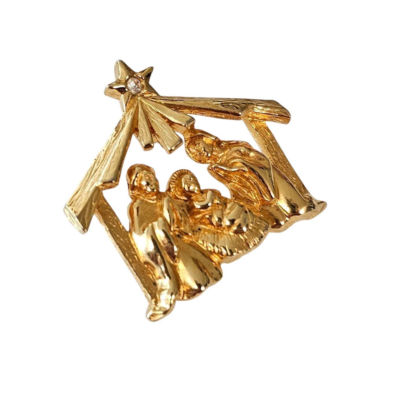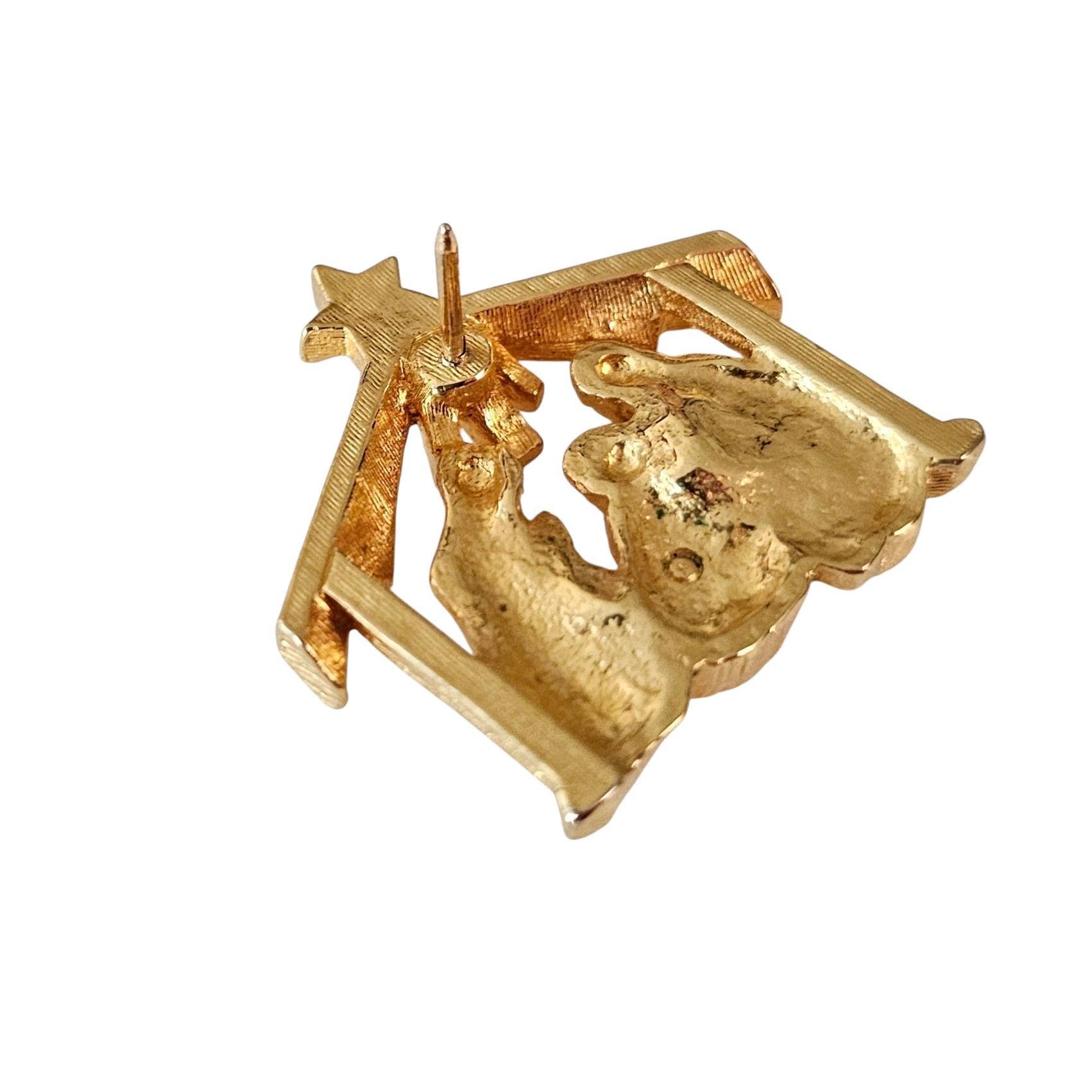 Gold Tone Nativity Scene Pin, Rhinestone Star Lapel C456