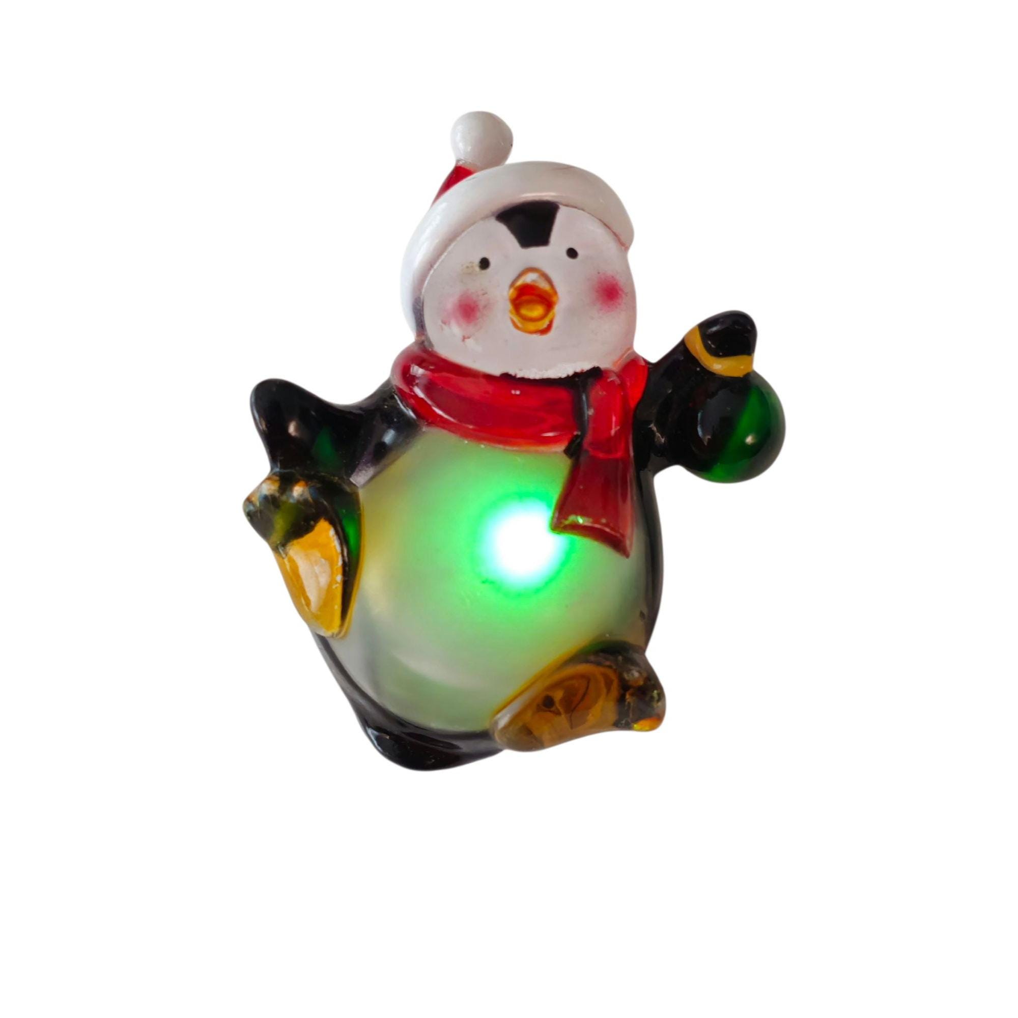 Light Up Penguin Pin Resin Multi-Color Christmas Brooch C450