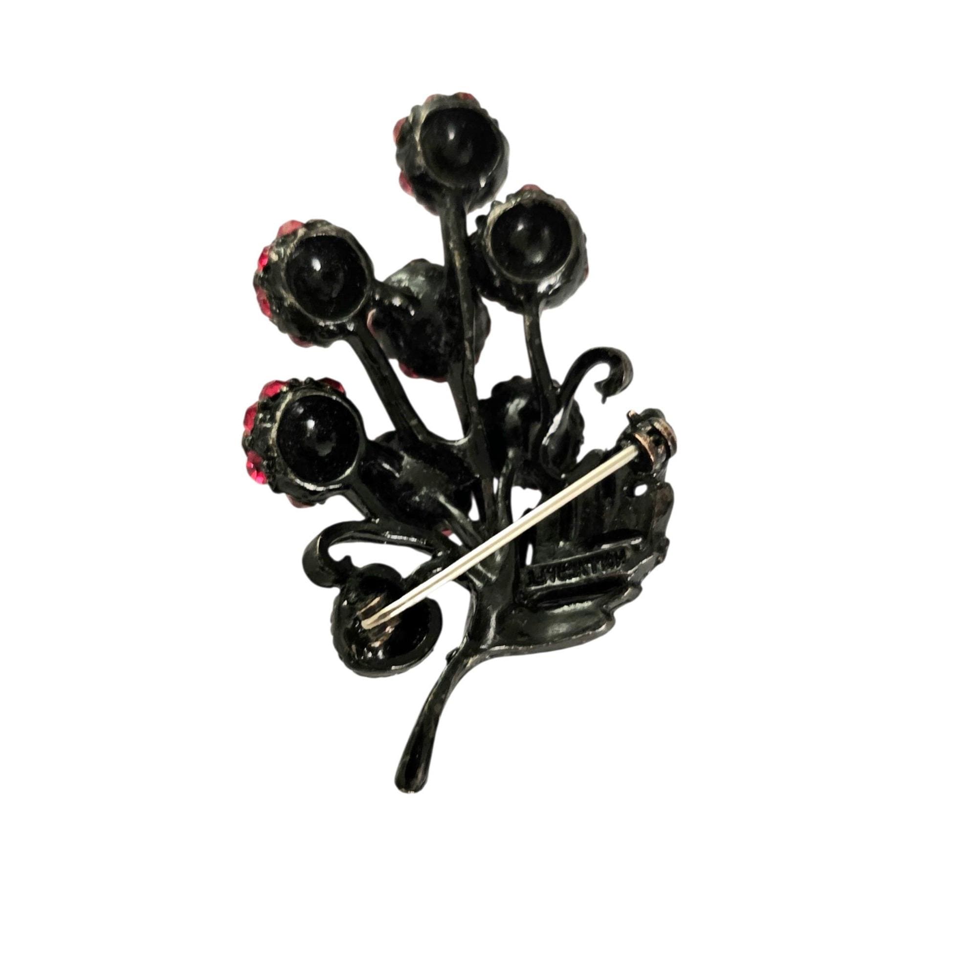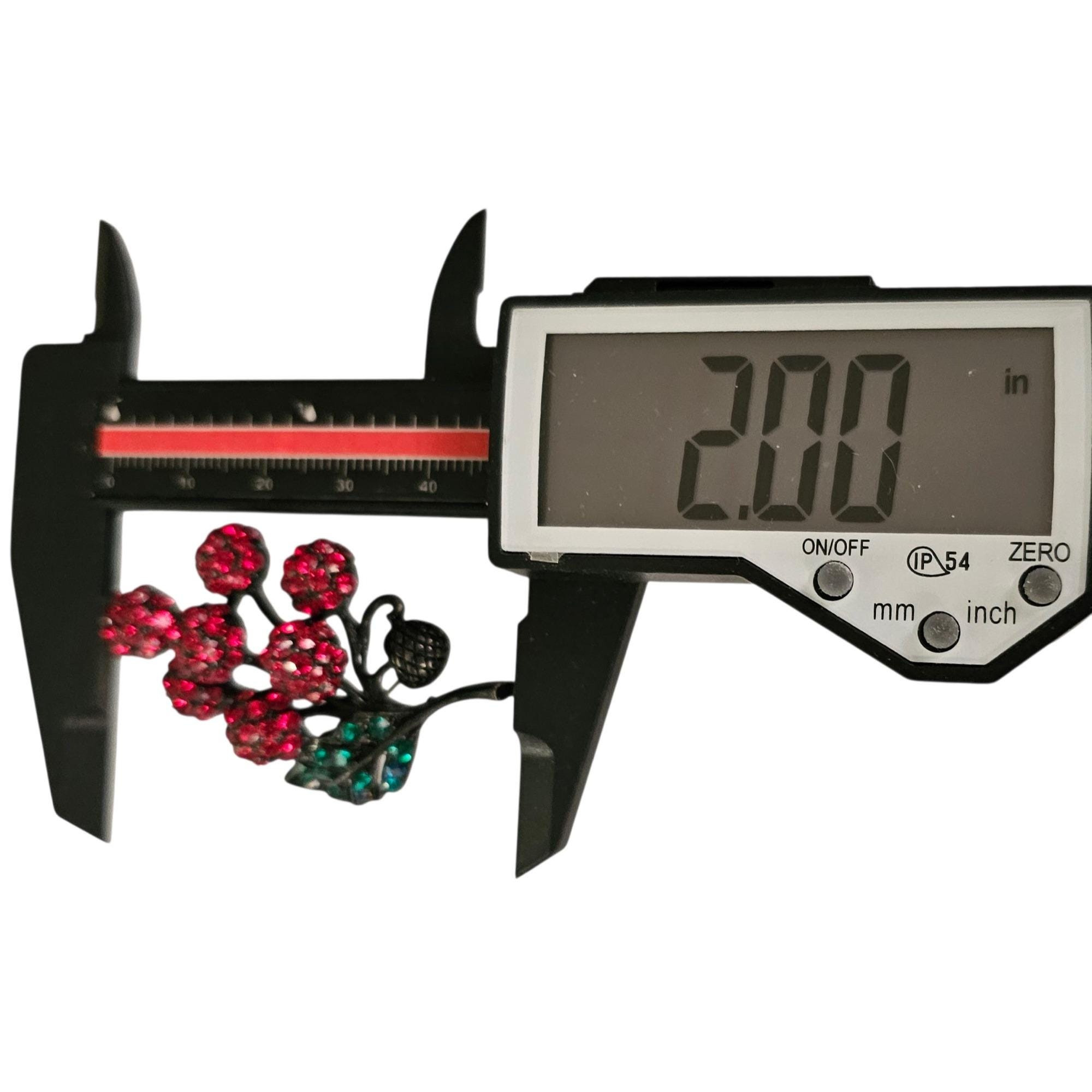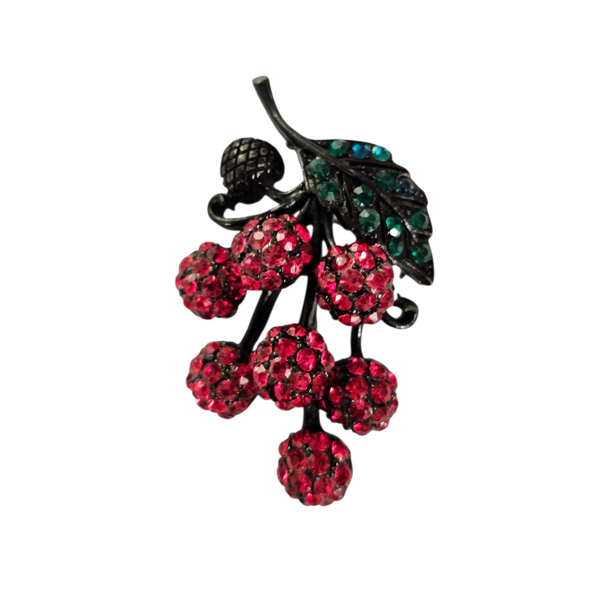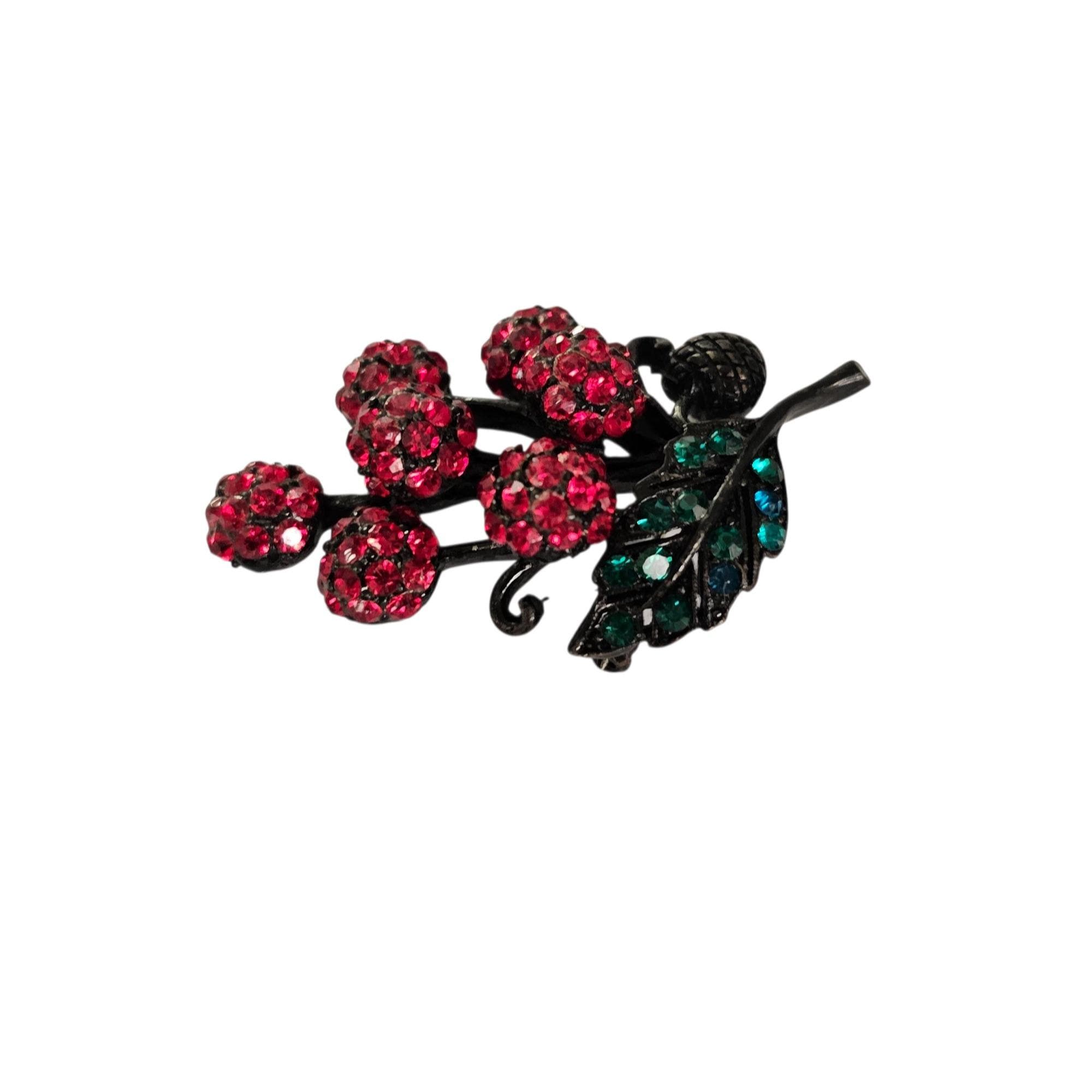 Holly Craft Cherry Brooch Red Rhinestone Cluster Cherries Pin Signed C478