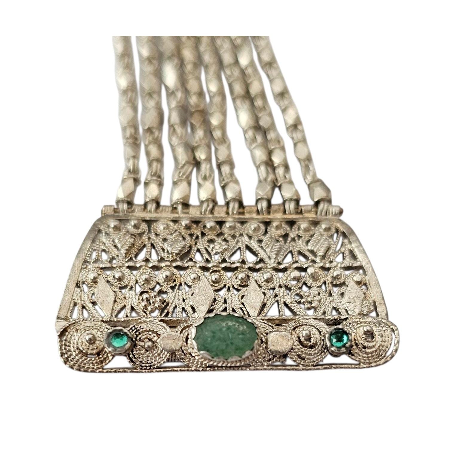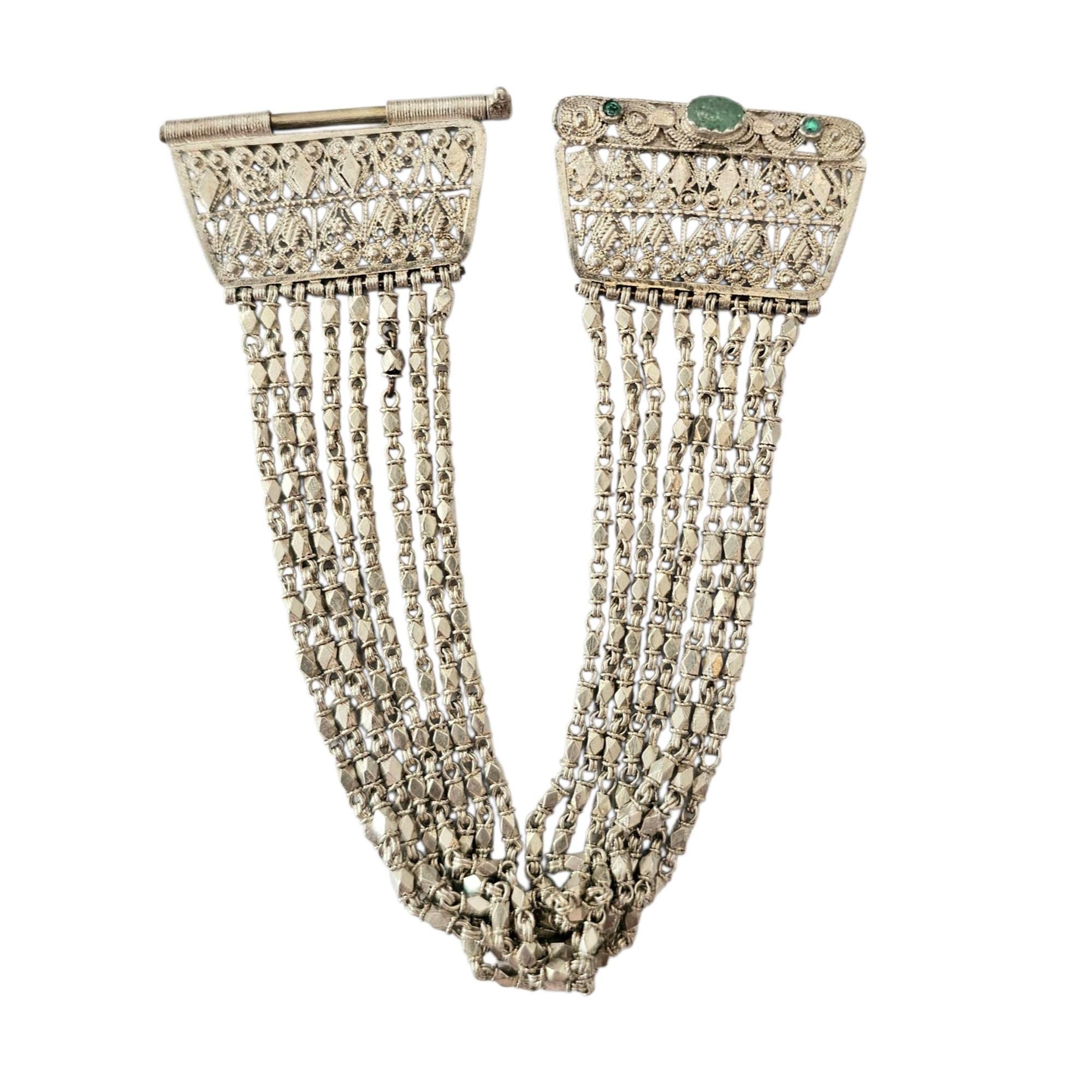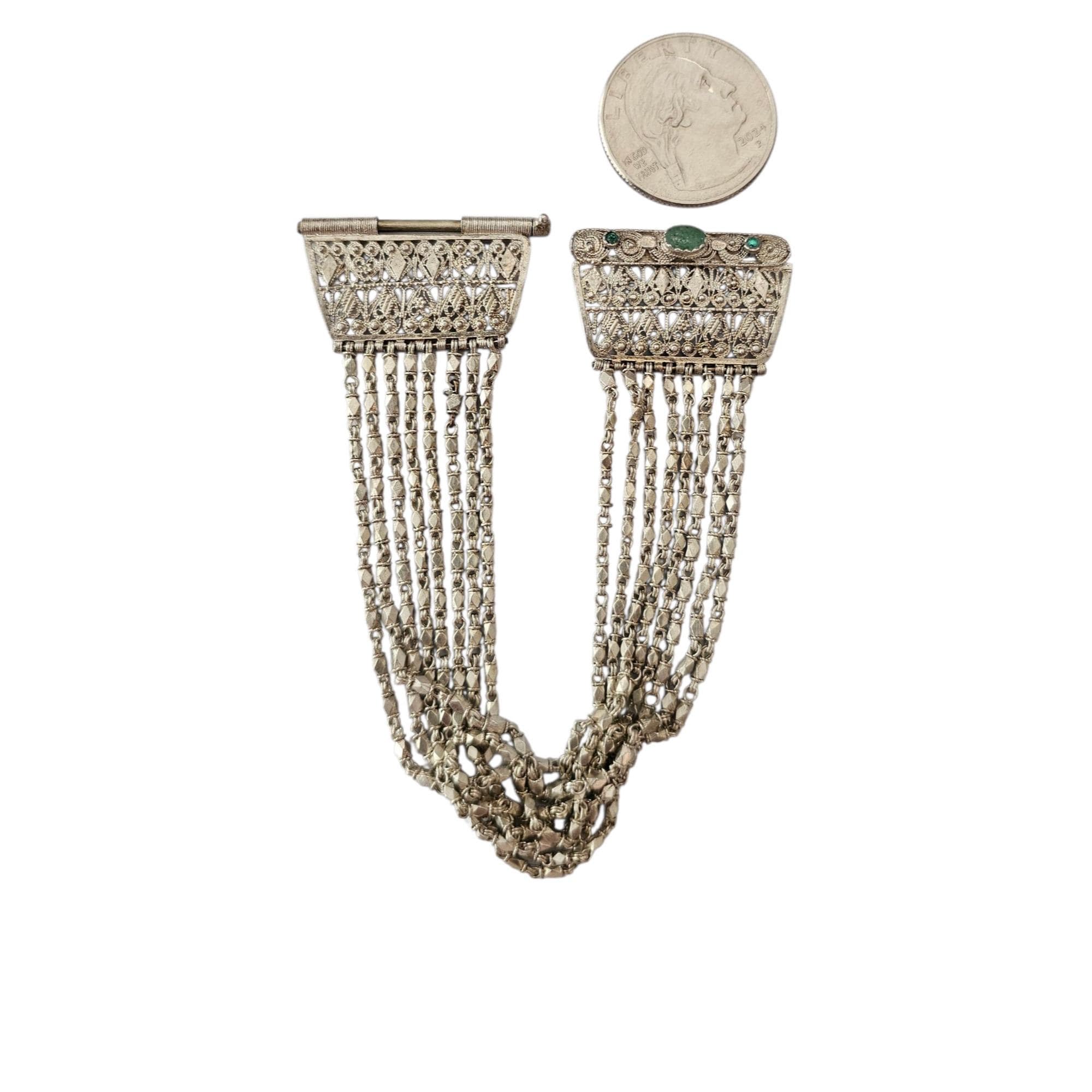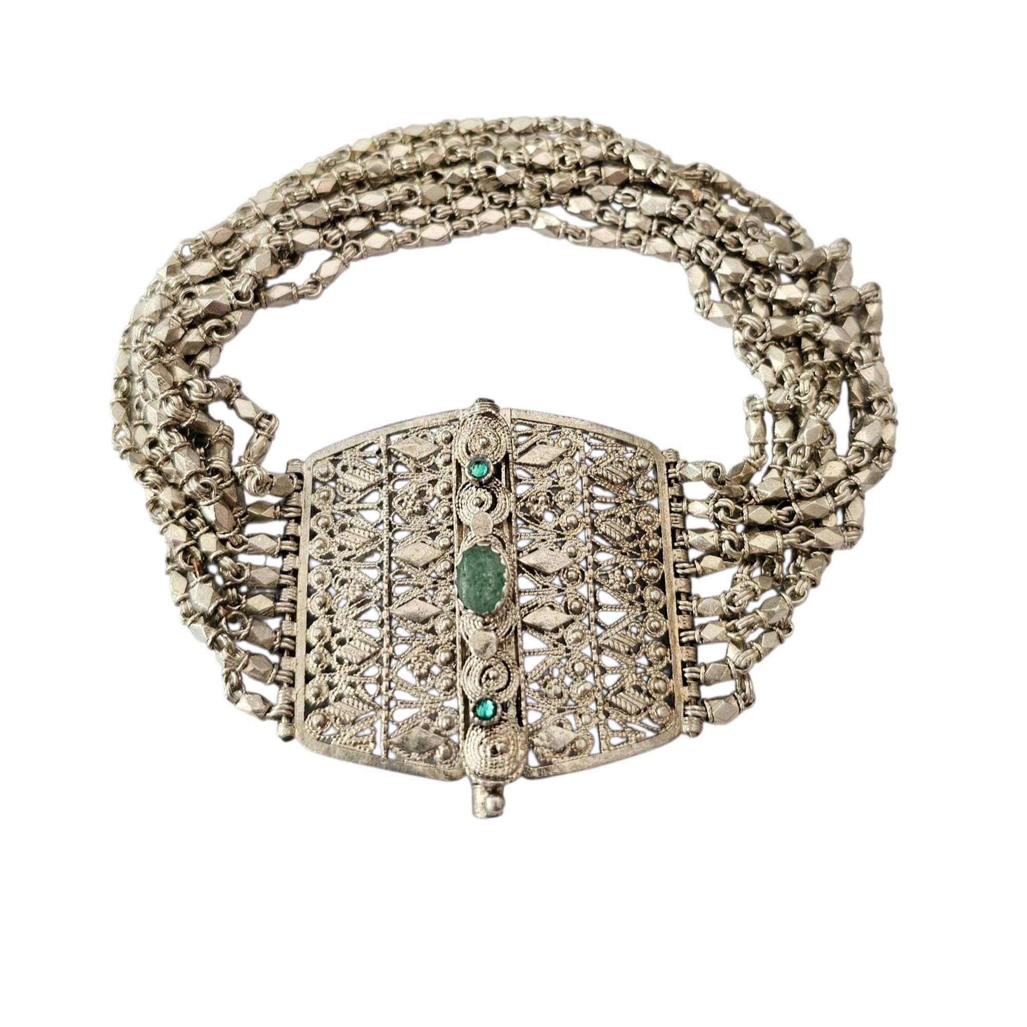 830 Silver Vintage Spun Silver Slide, Green Stone Multi Chain Bracelet C476