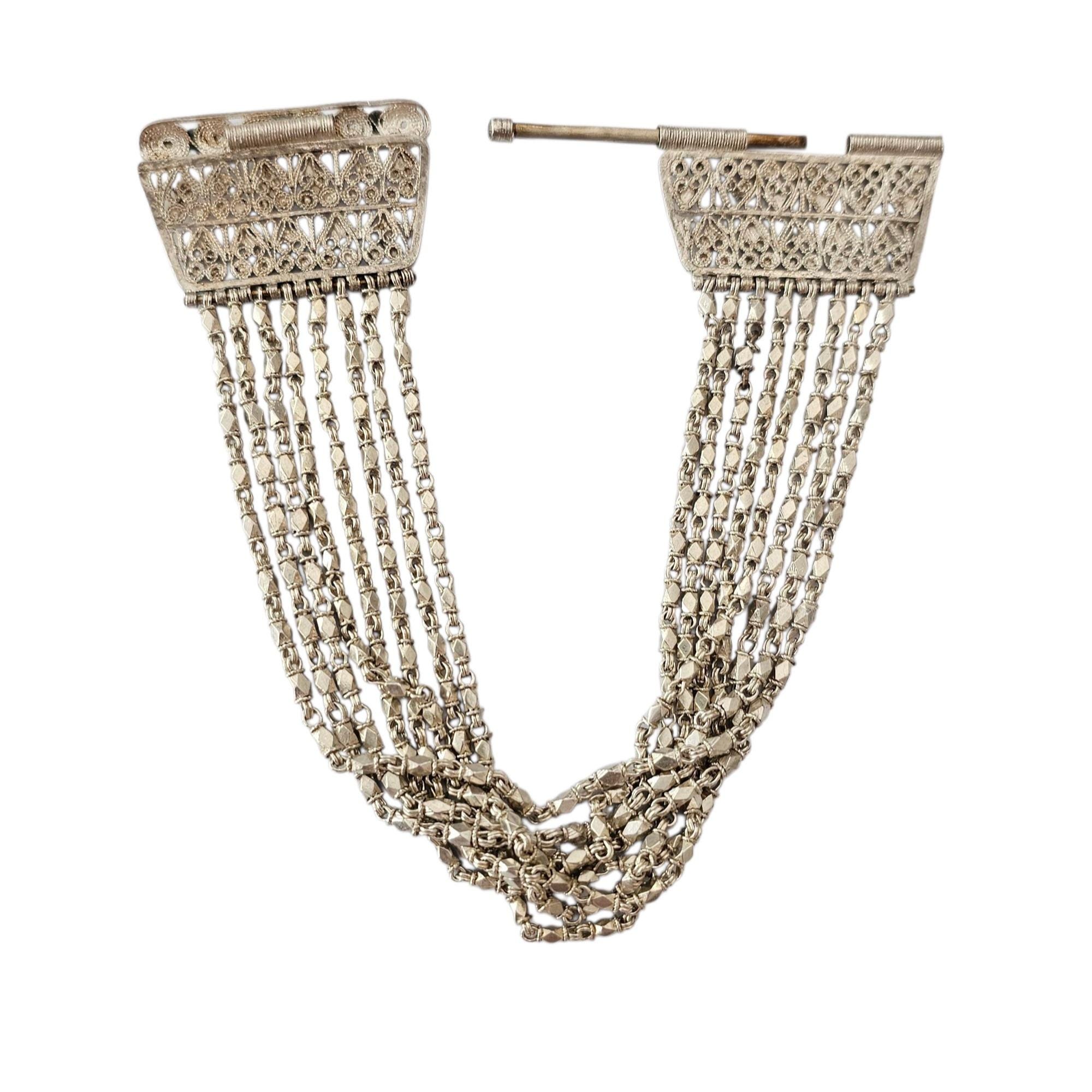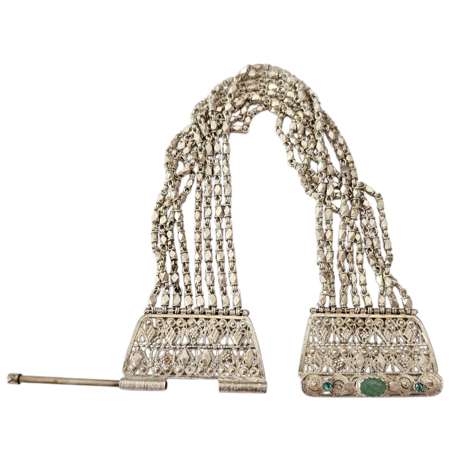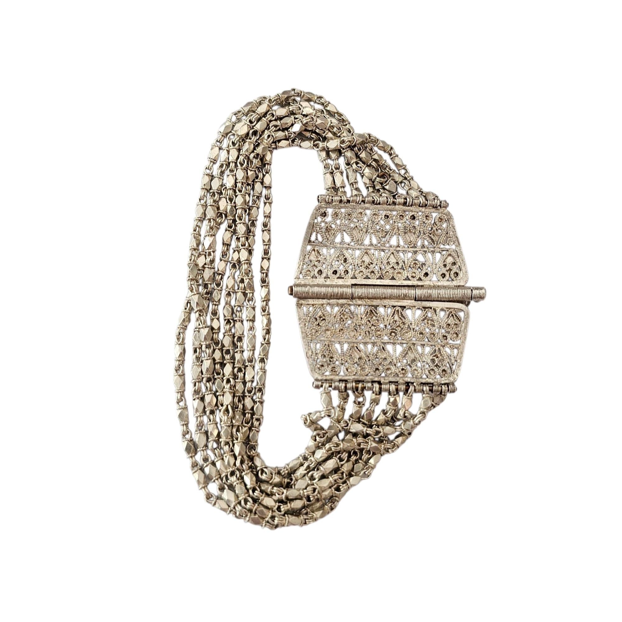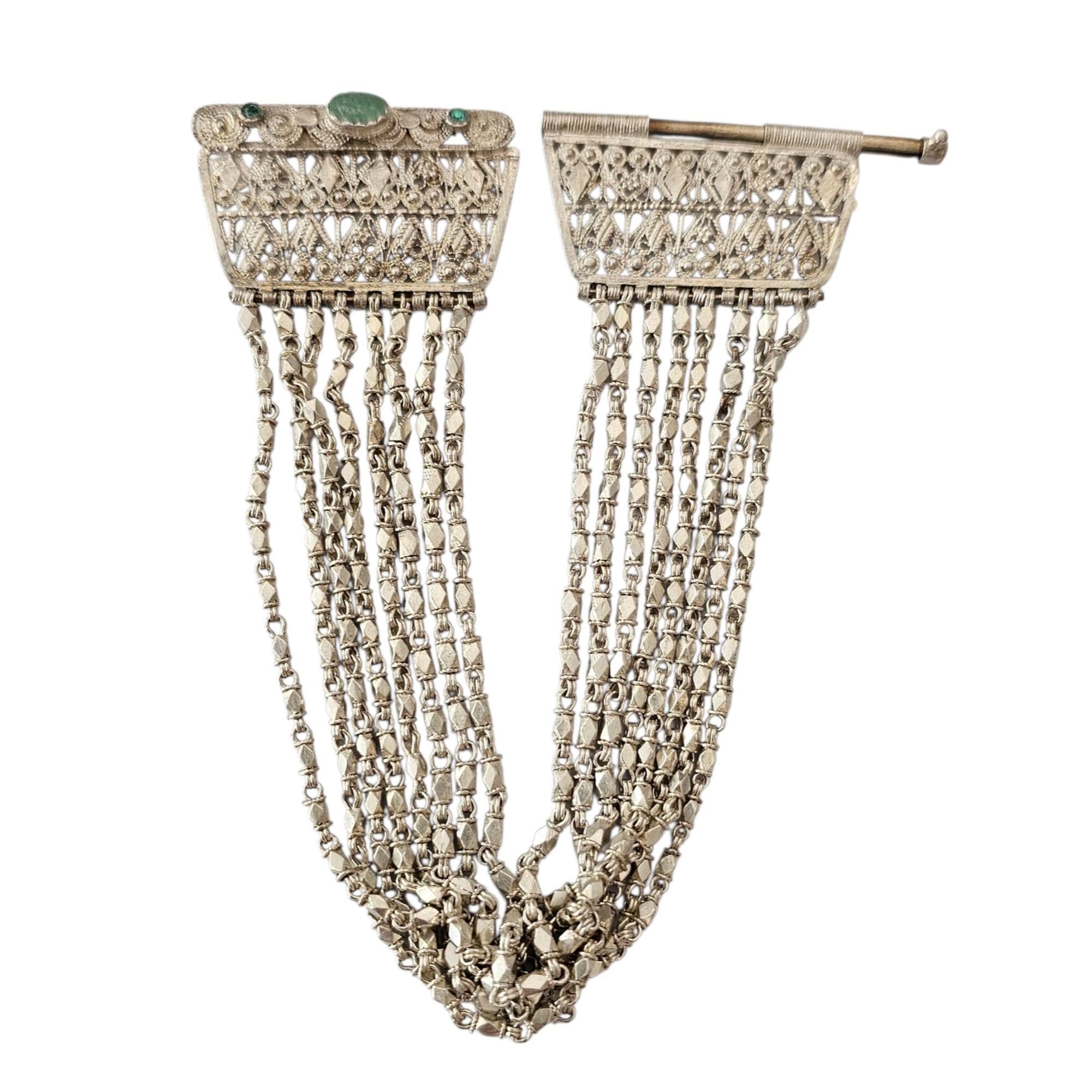 830 Silver Vintage Spun Silver Slide, Green Stone Multi Chain Bracelet C476