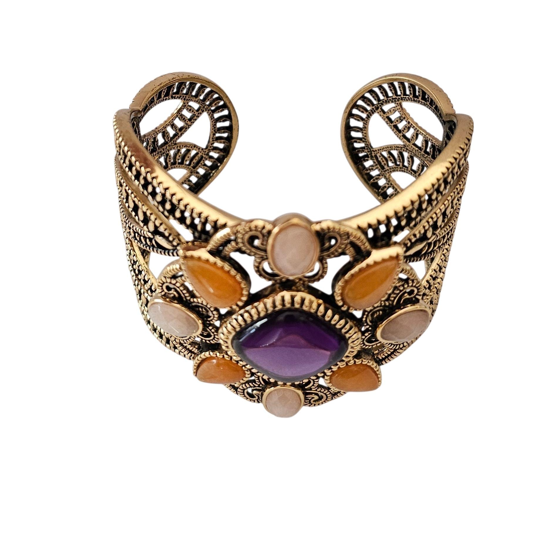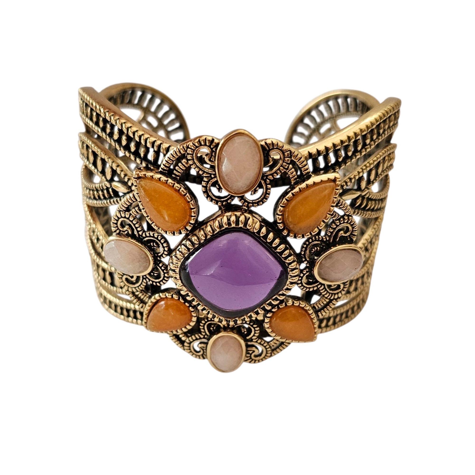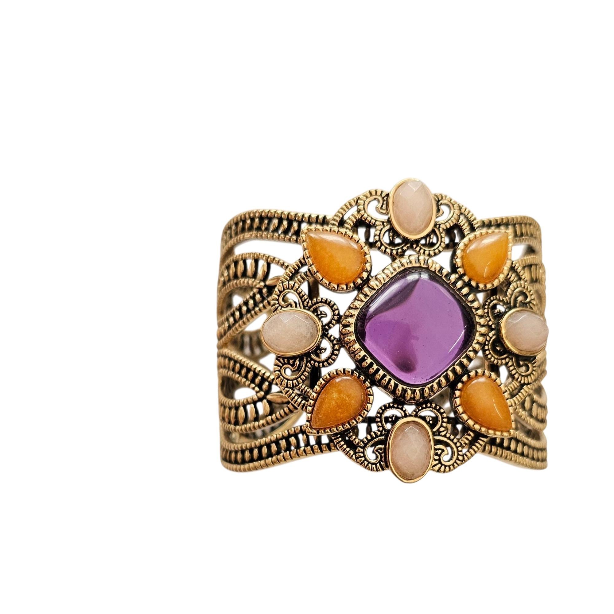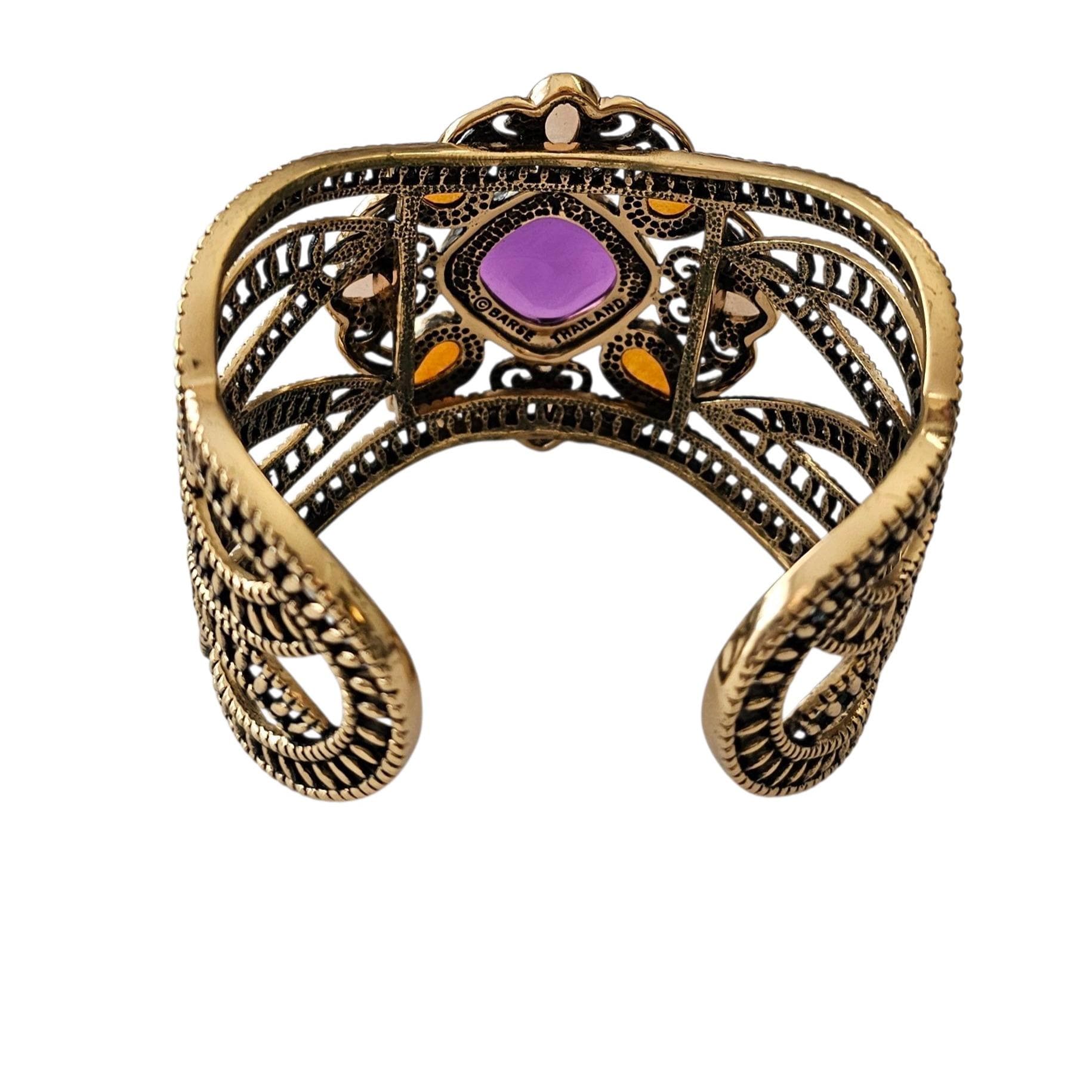 Barse Gold Tone Cuff Bracelet Purple Lucite Center Signed, C475