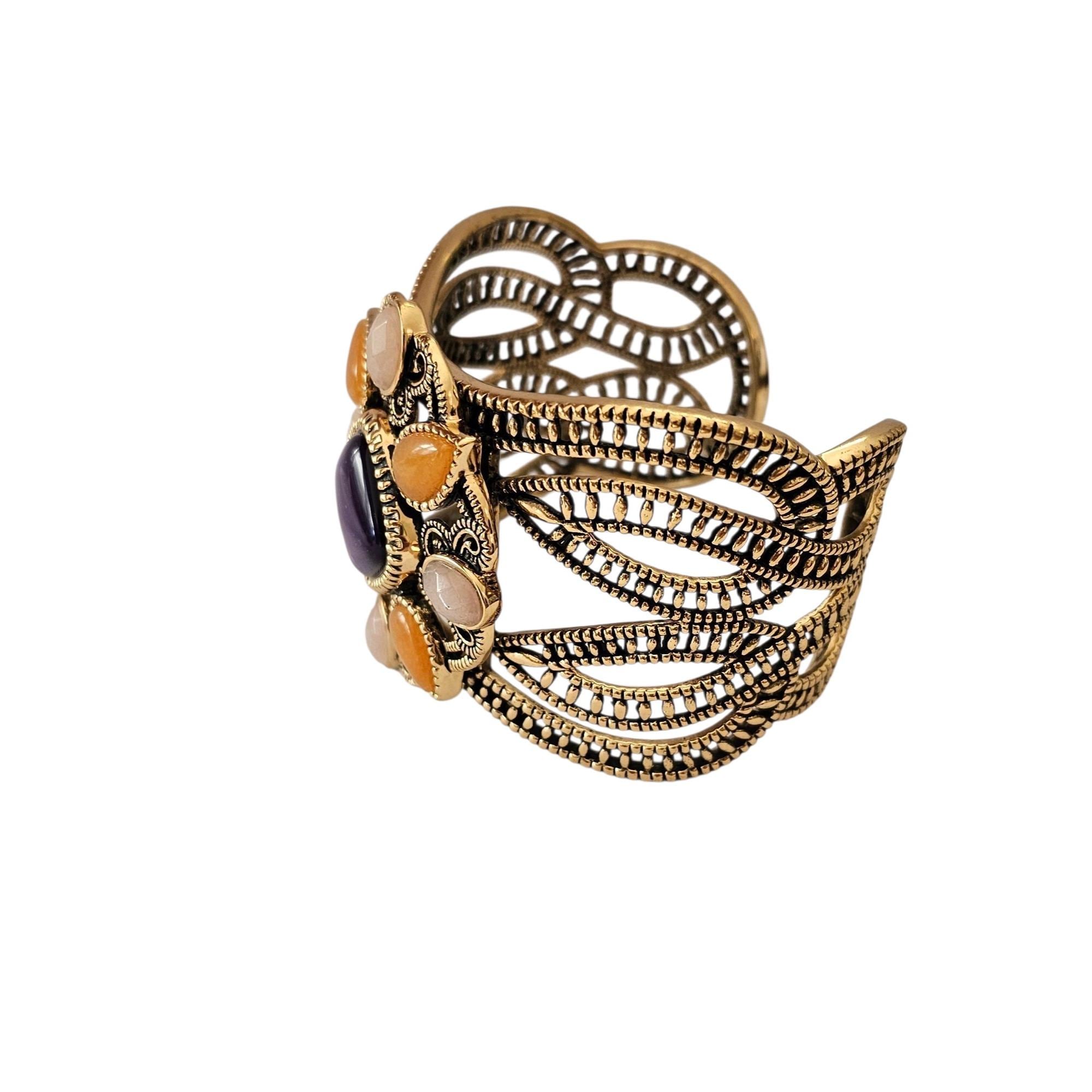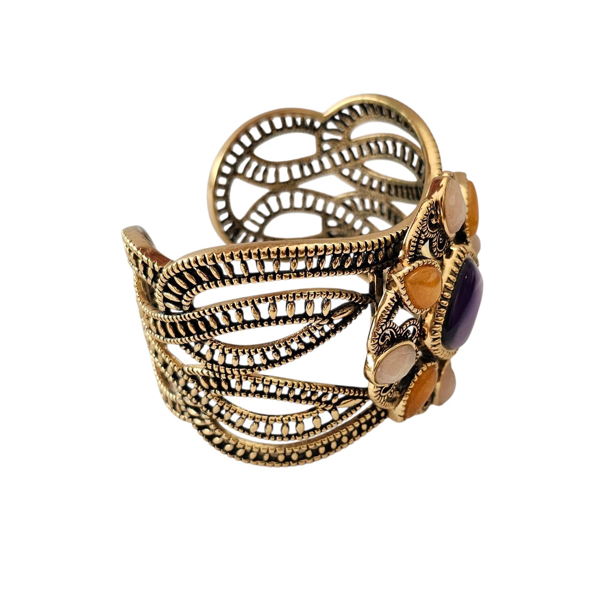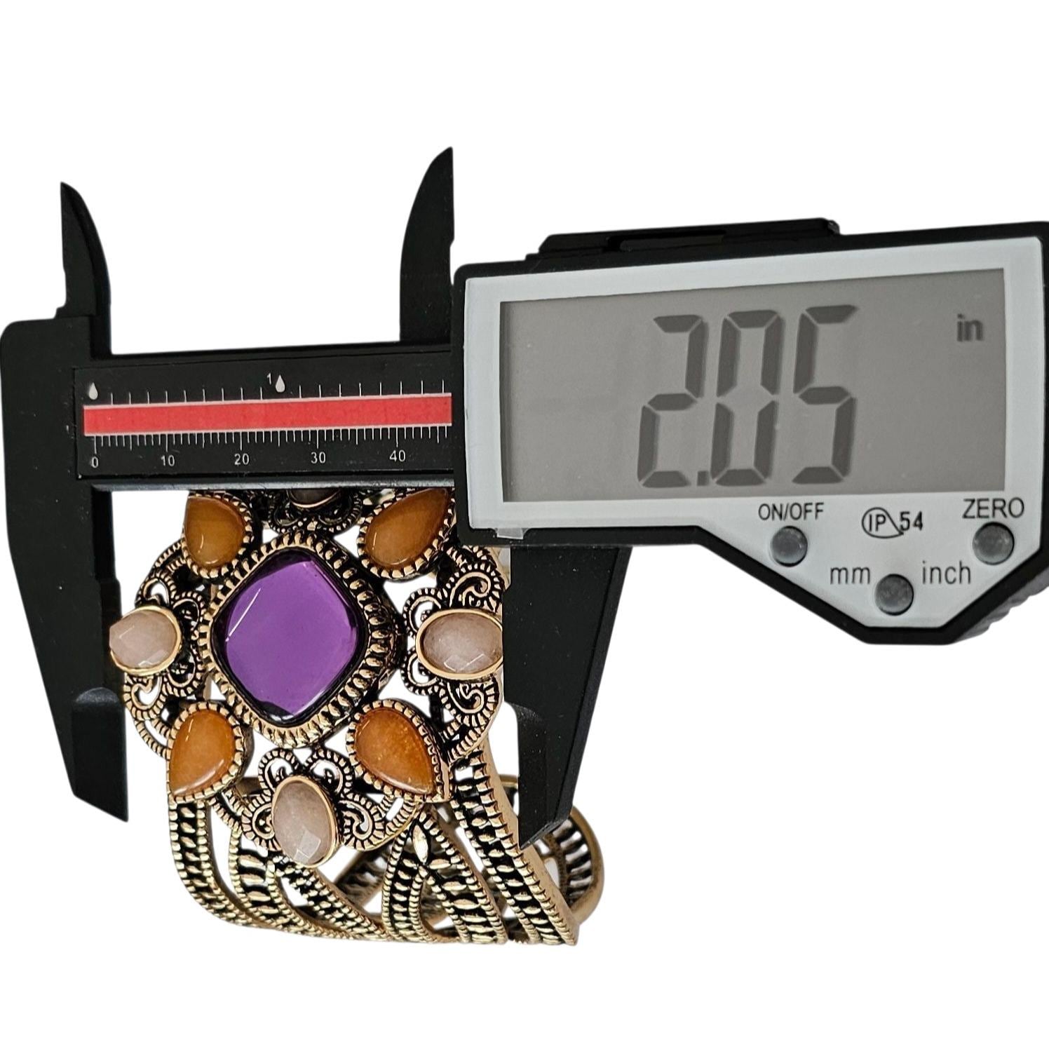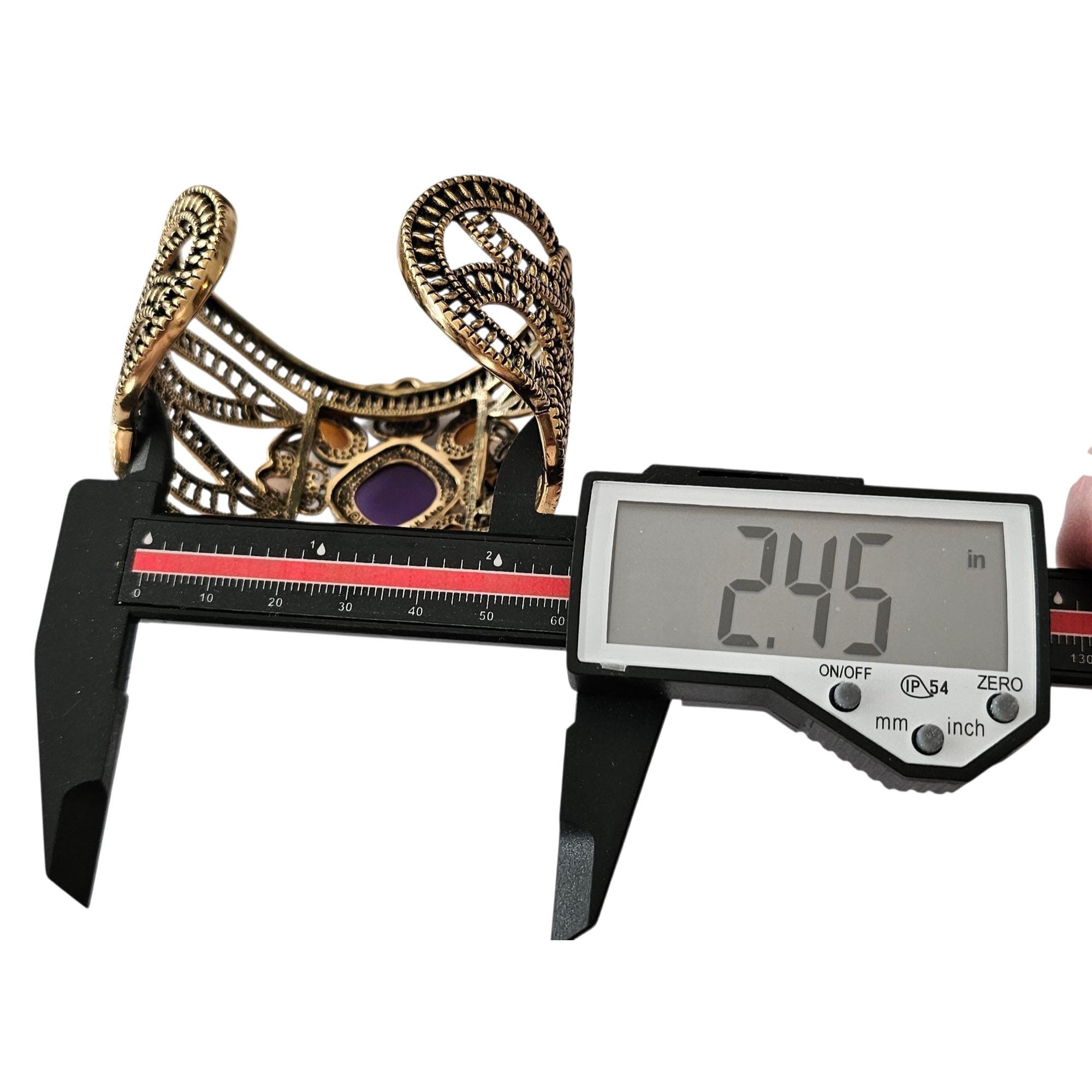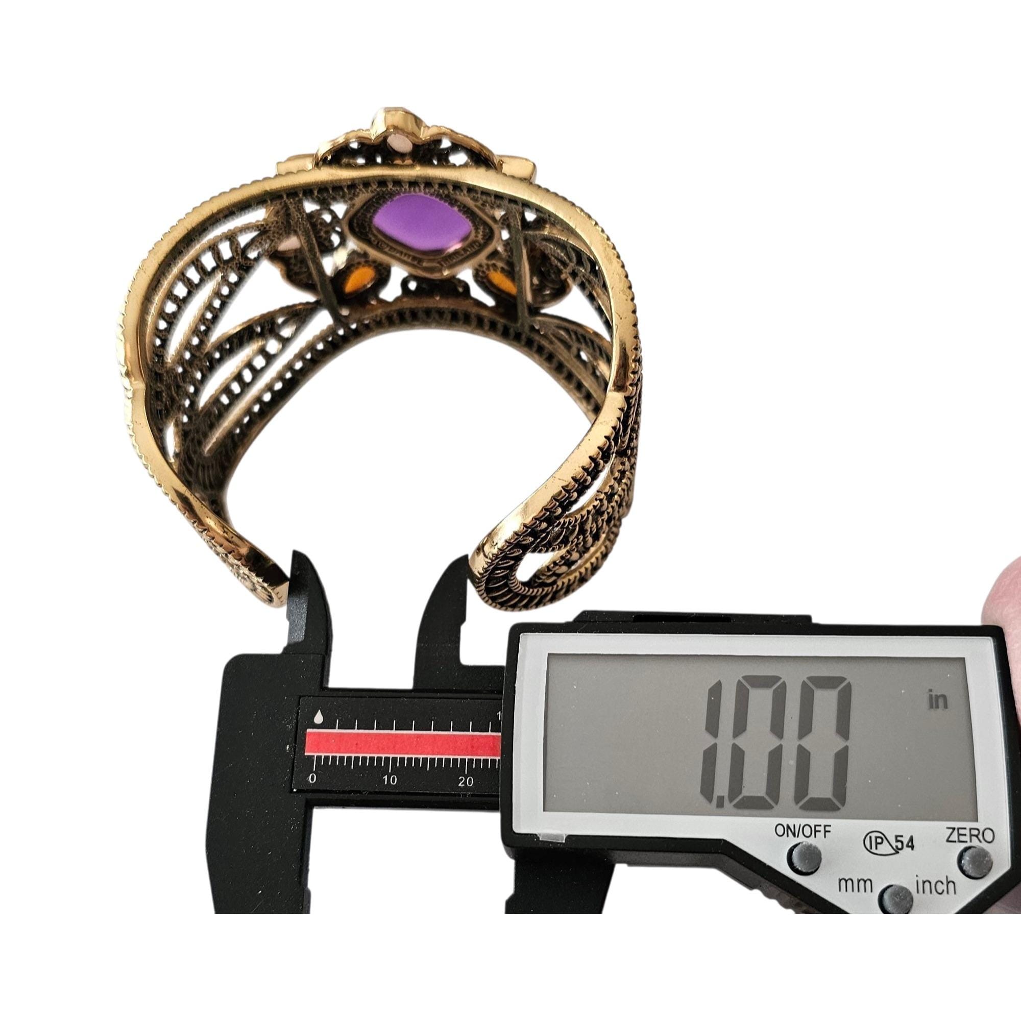 • This delightful bracelet measures 2 inches in width, 2.5 inches in inner diameter, and 1 inch in opening