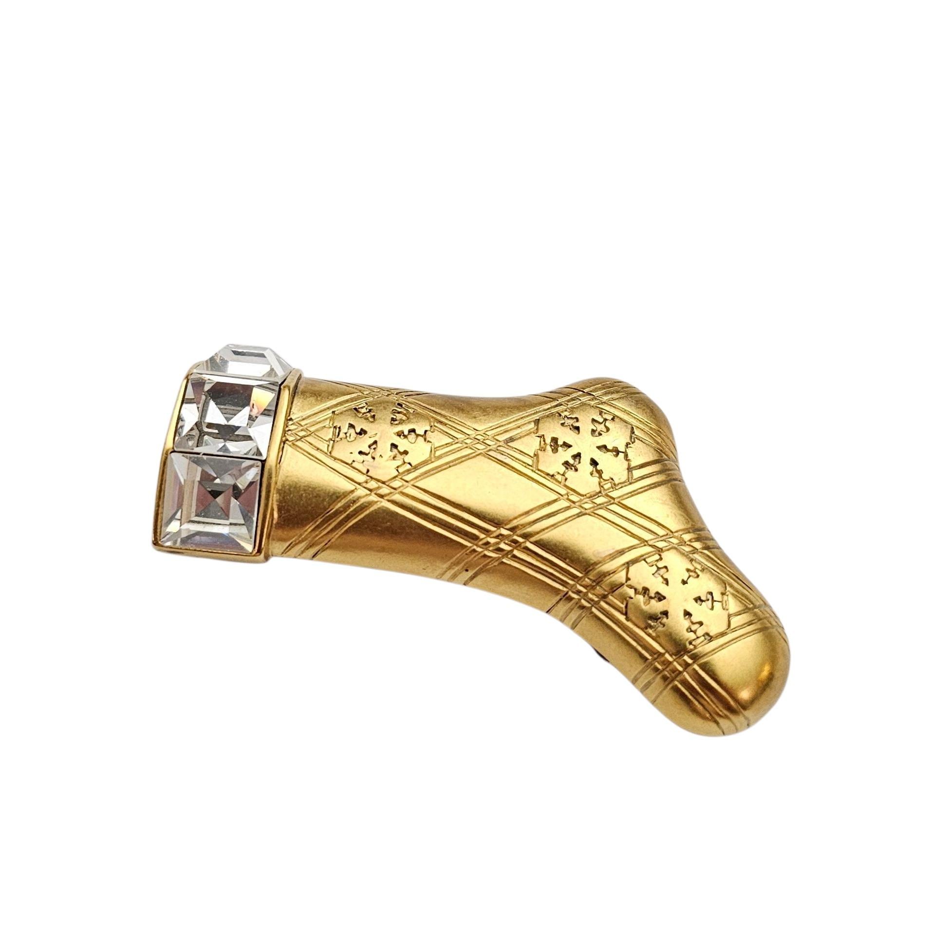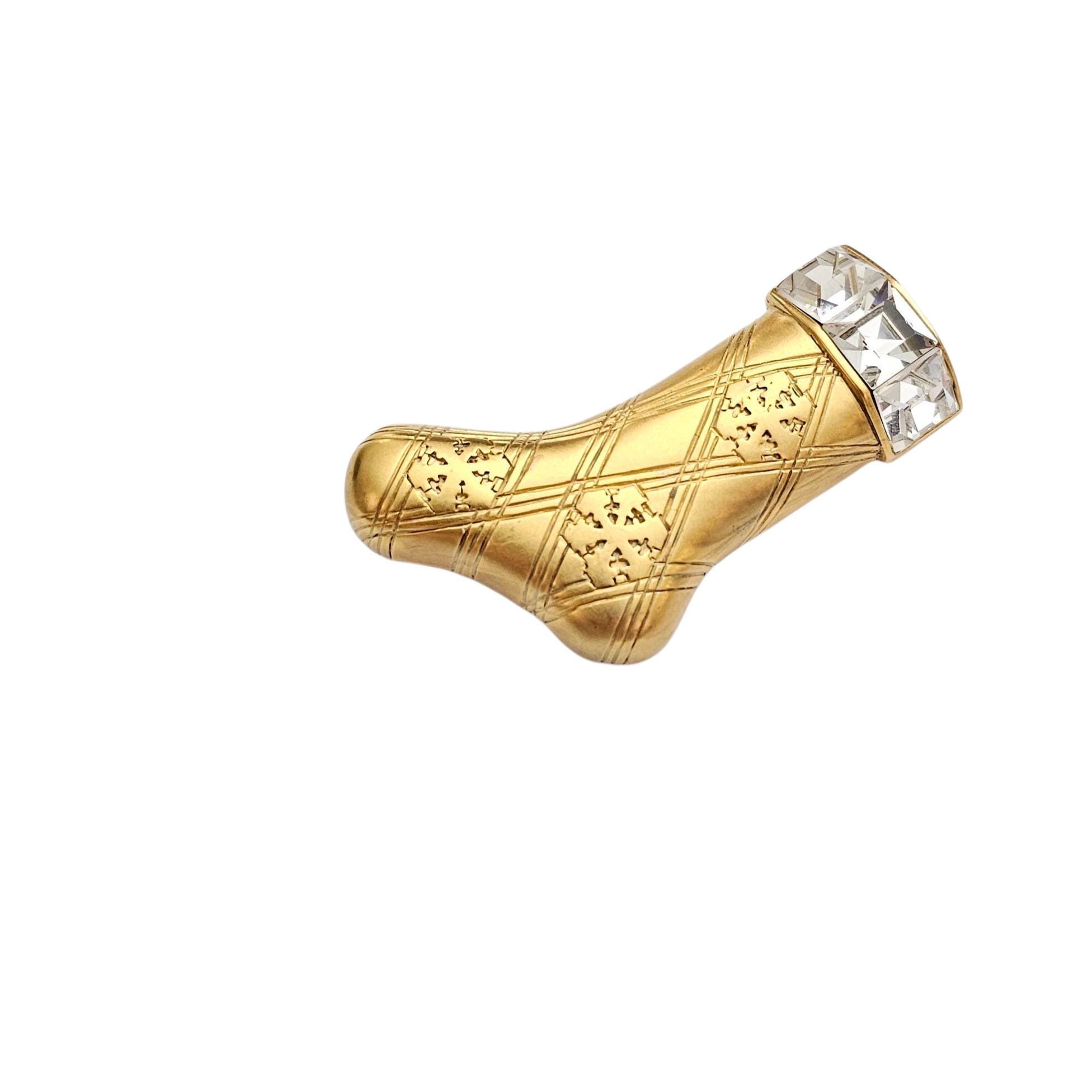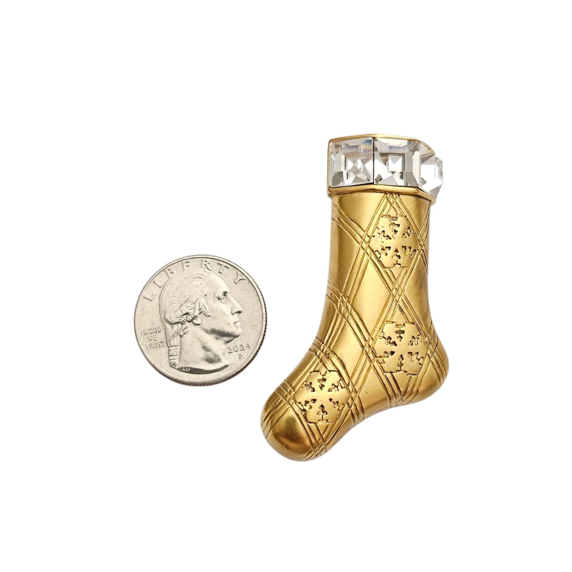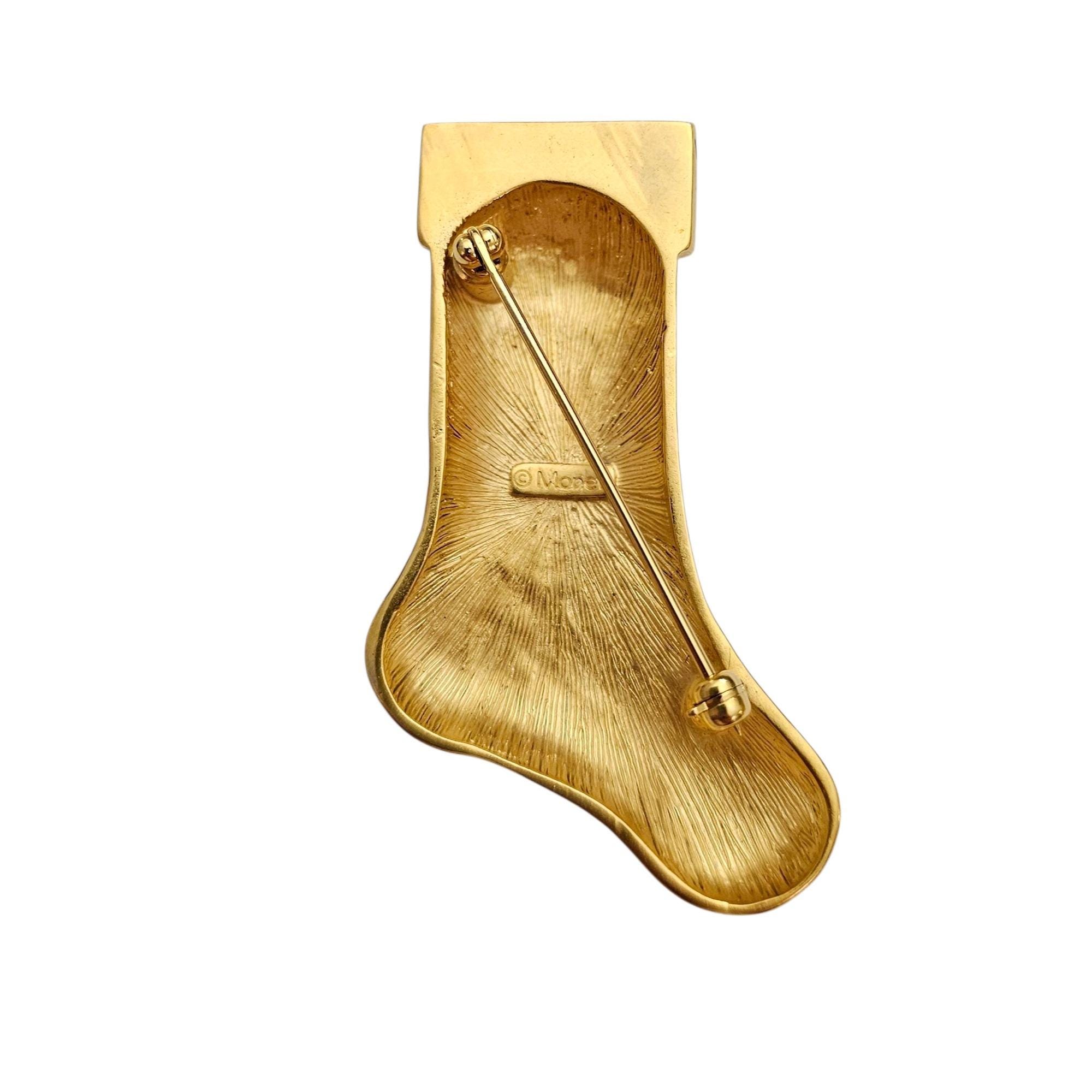 Monet Vintage Rhinestone Stocking Brooch Matte Gold Tone Pin Signed, C466