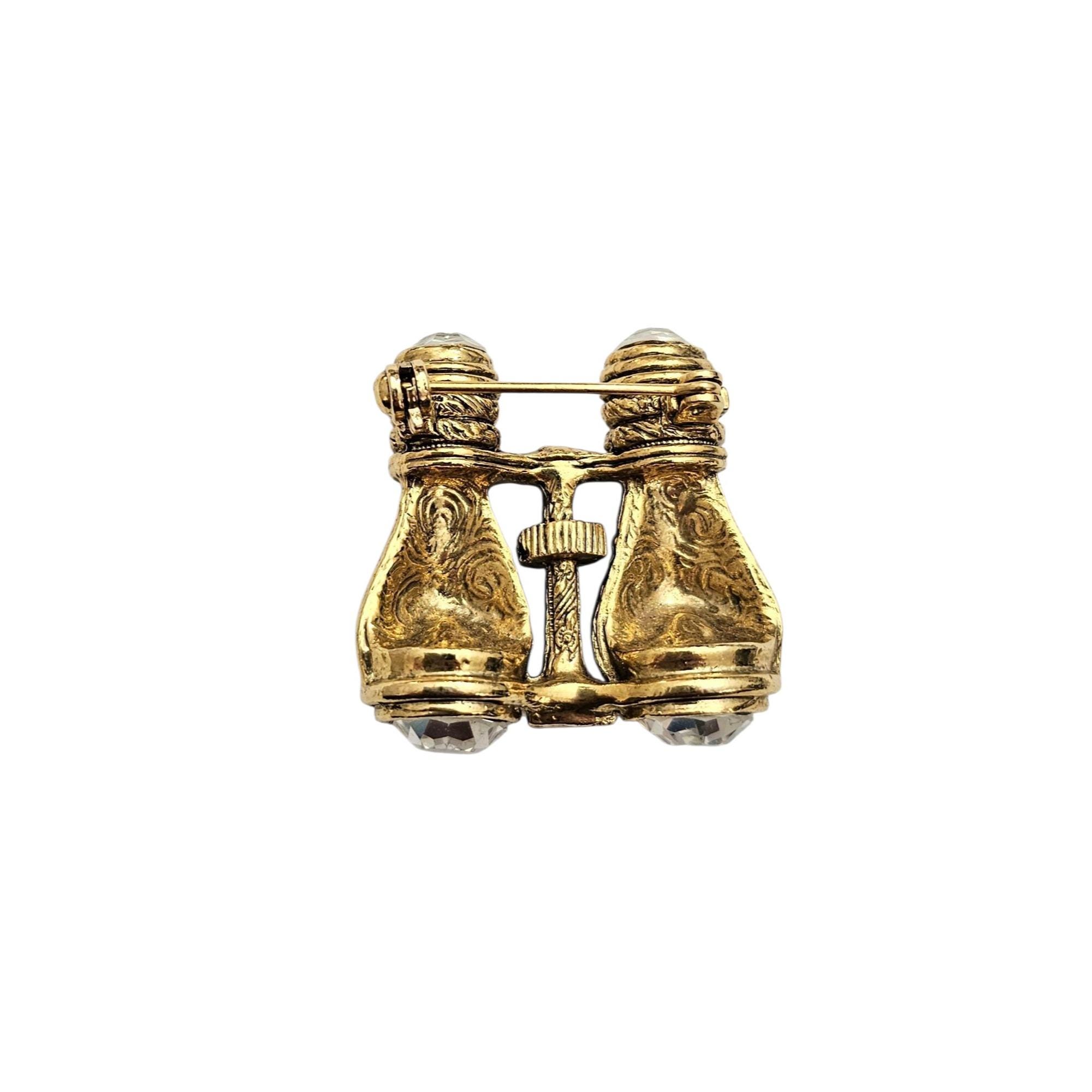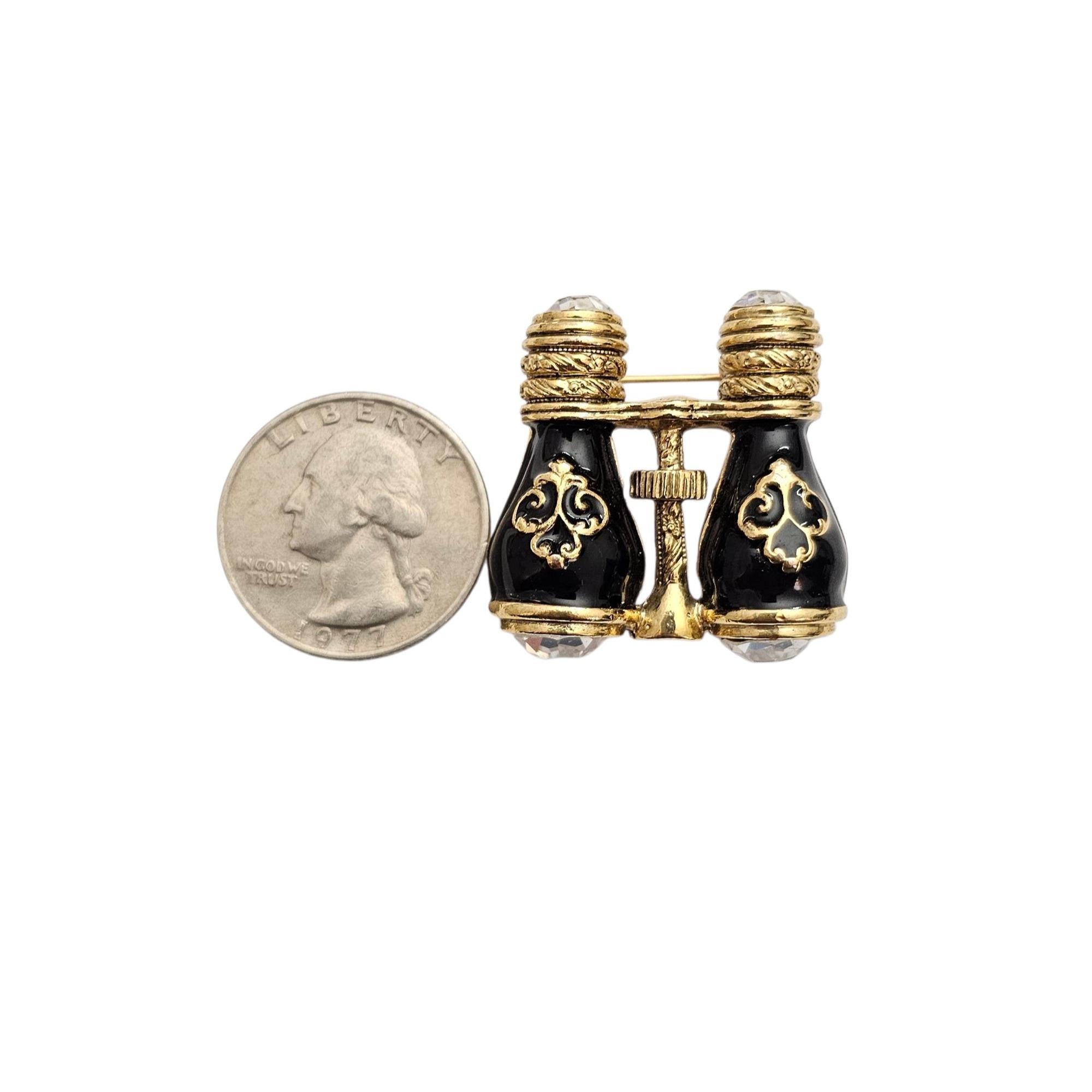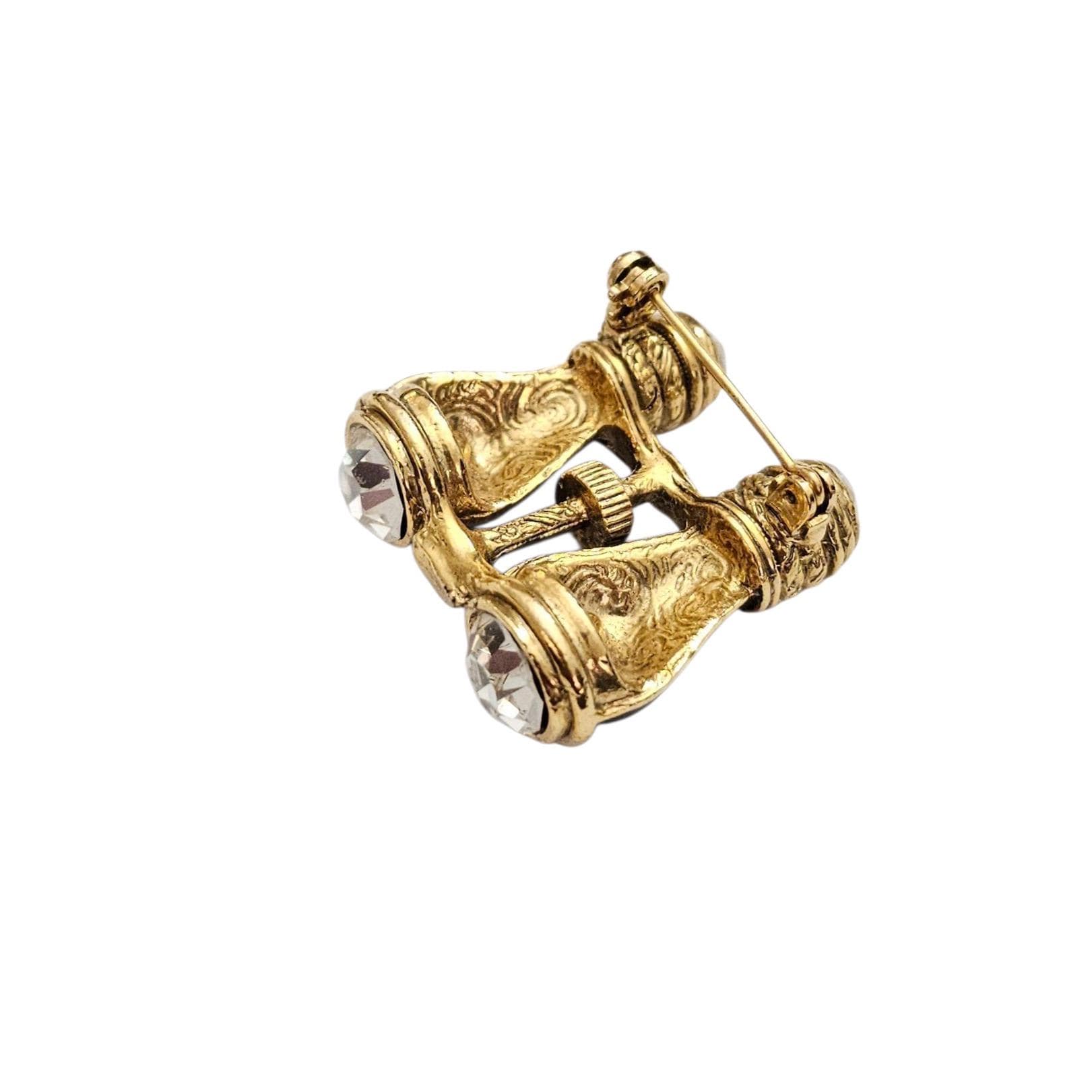 1928 Brand Opera Glasses Brooch Binoculars Clear Rhinestone Pin, C484