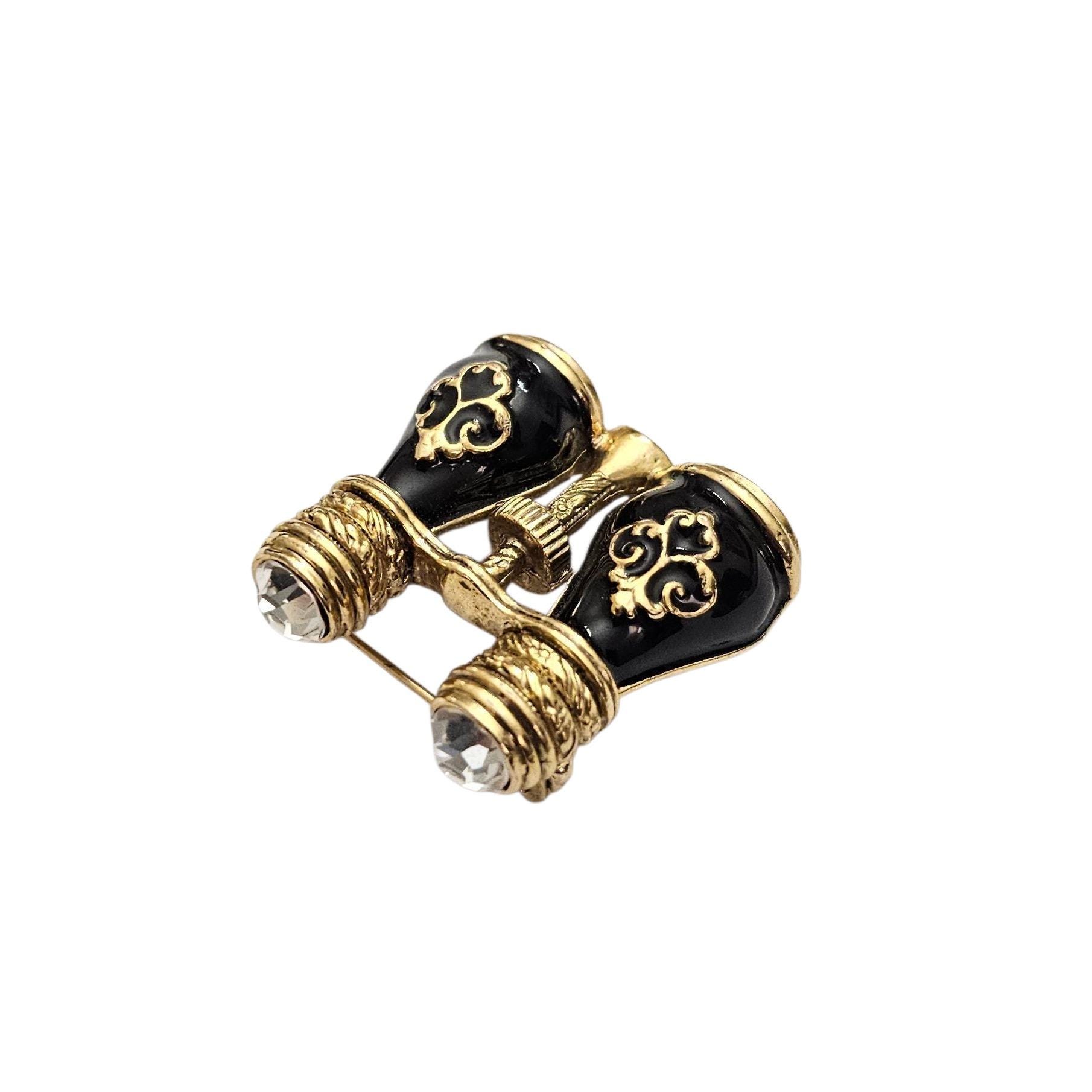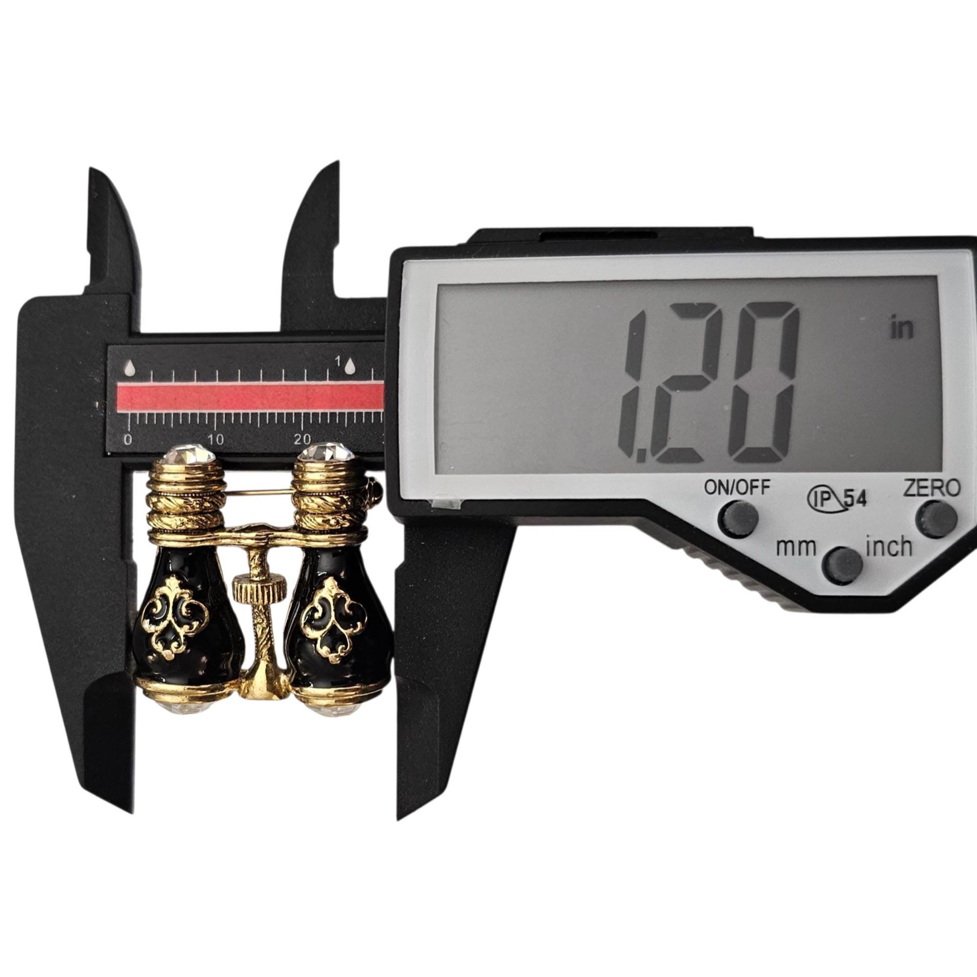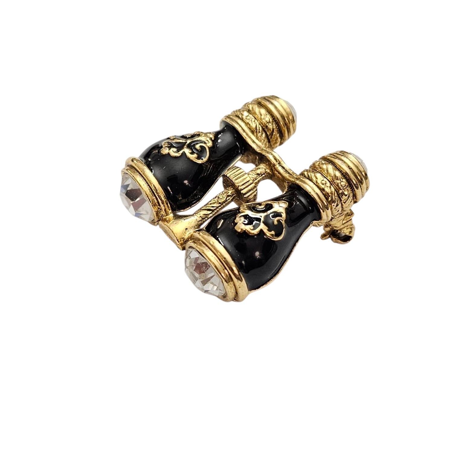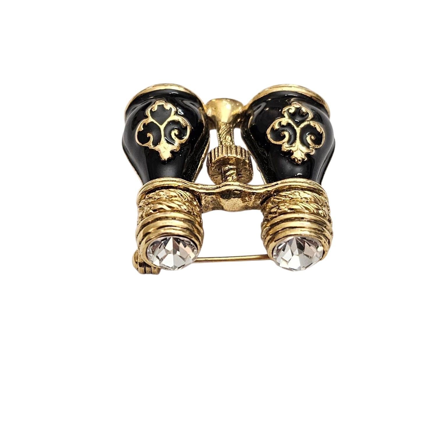1928 Brand Opera Glasses Brooch Binoculars Clear Rhinestone Pin, C484