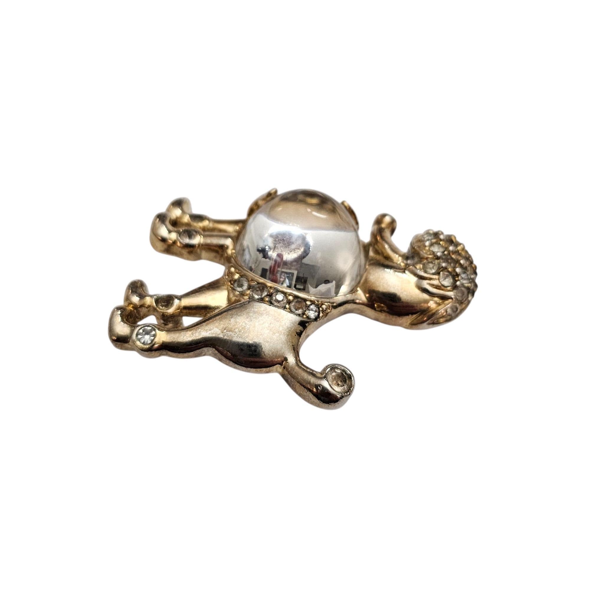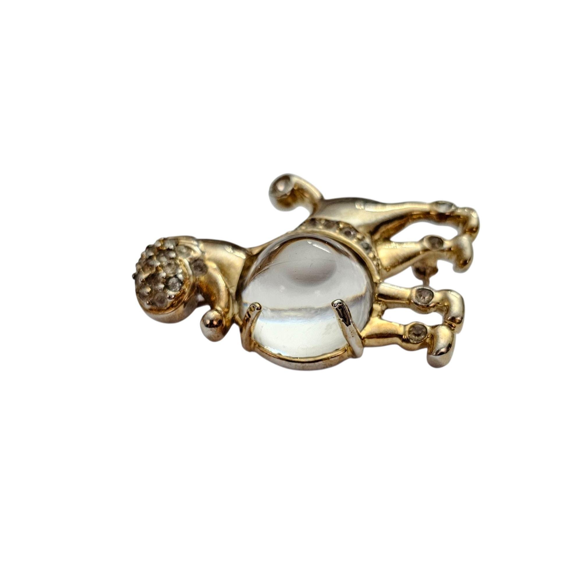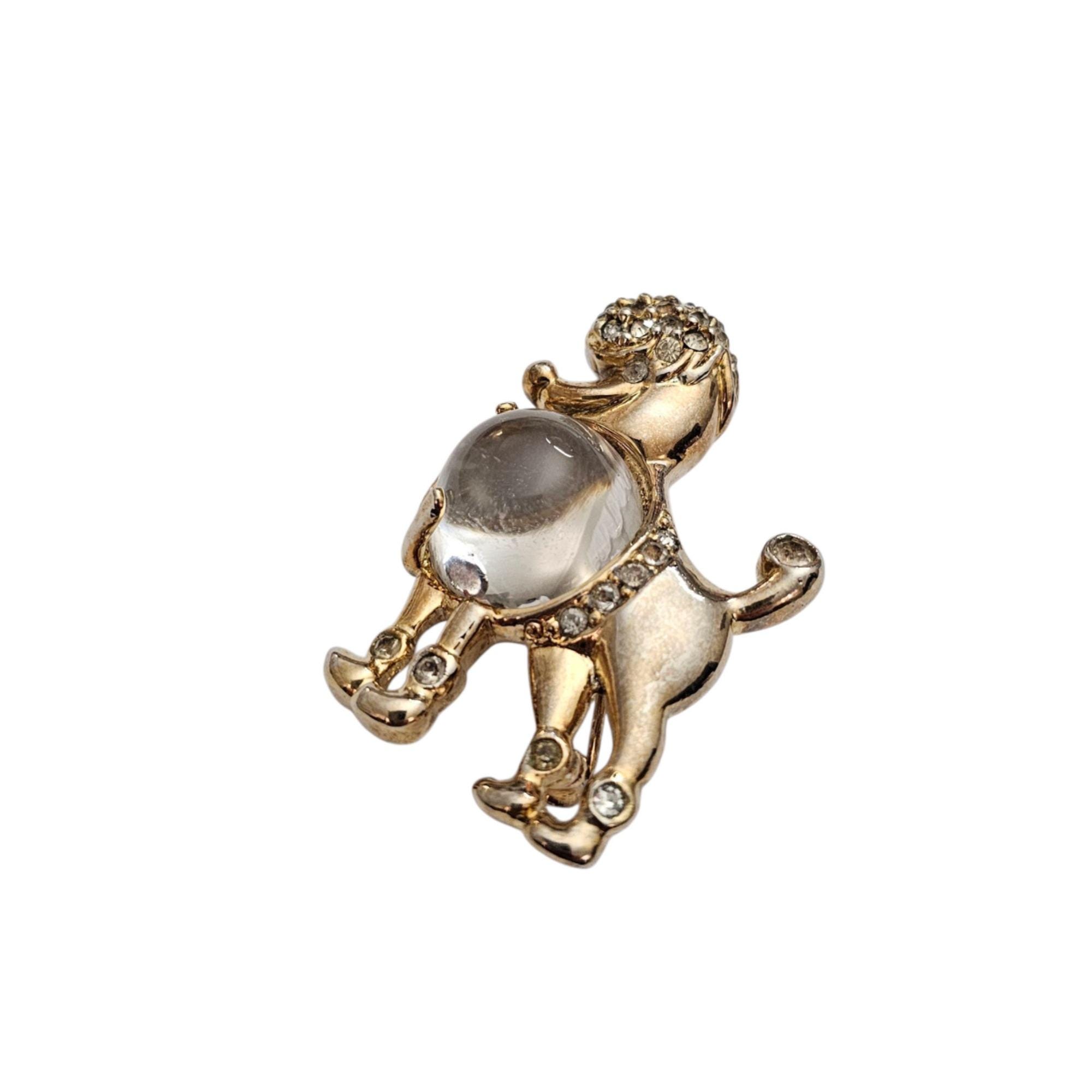 Corocraft Glass Jelly Gold Tone Poodle Brooch Signed, C483