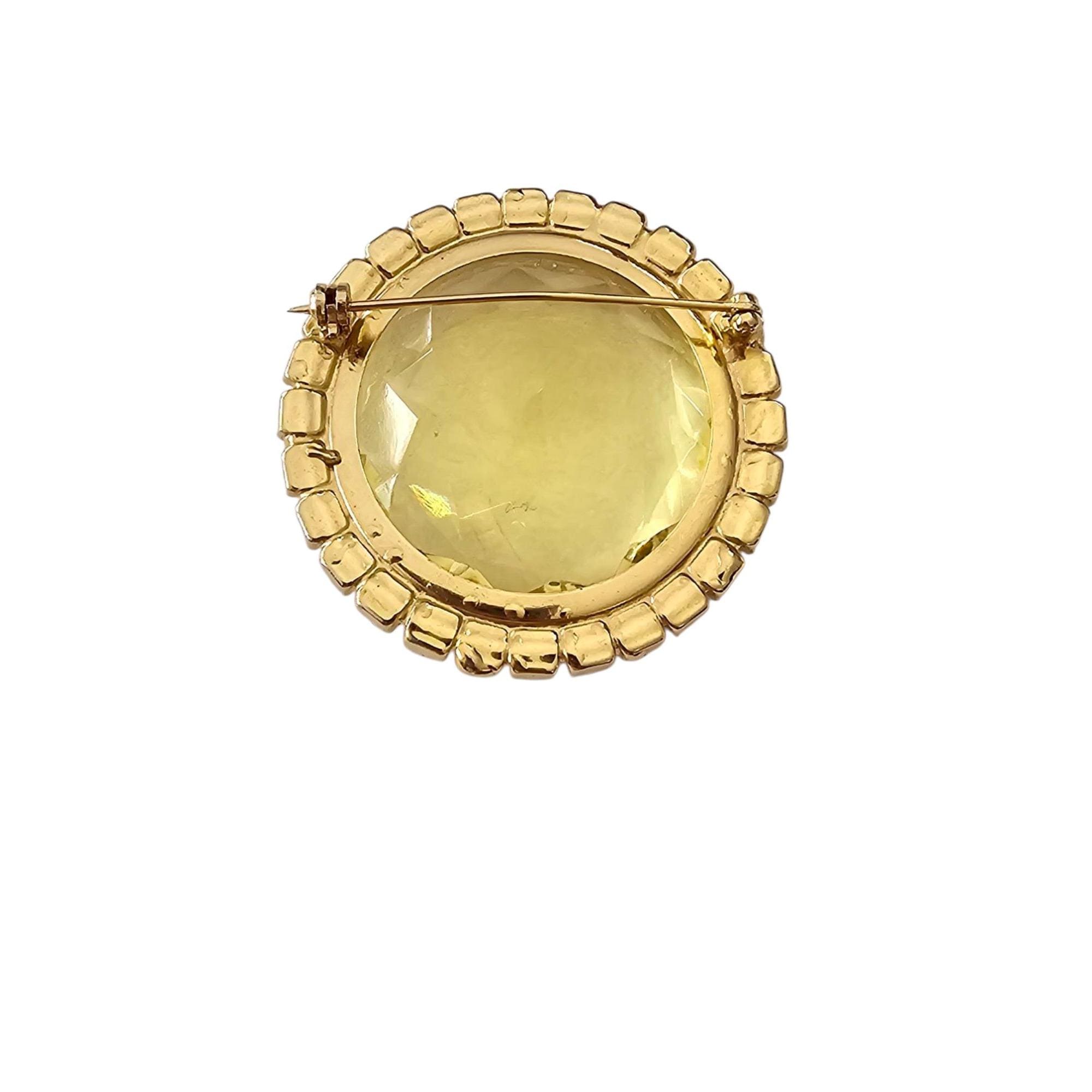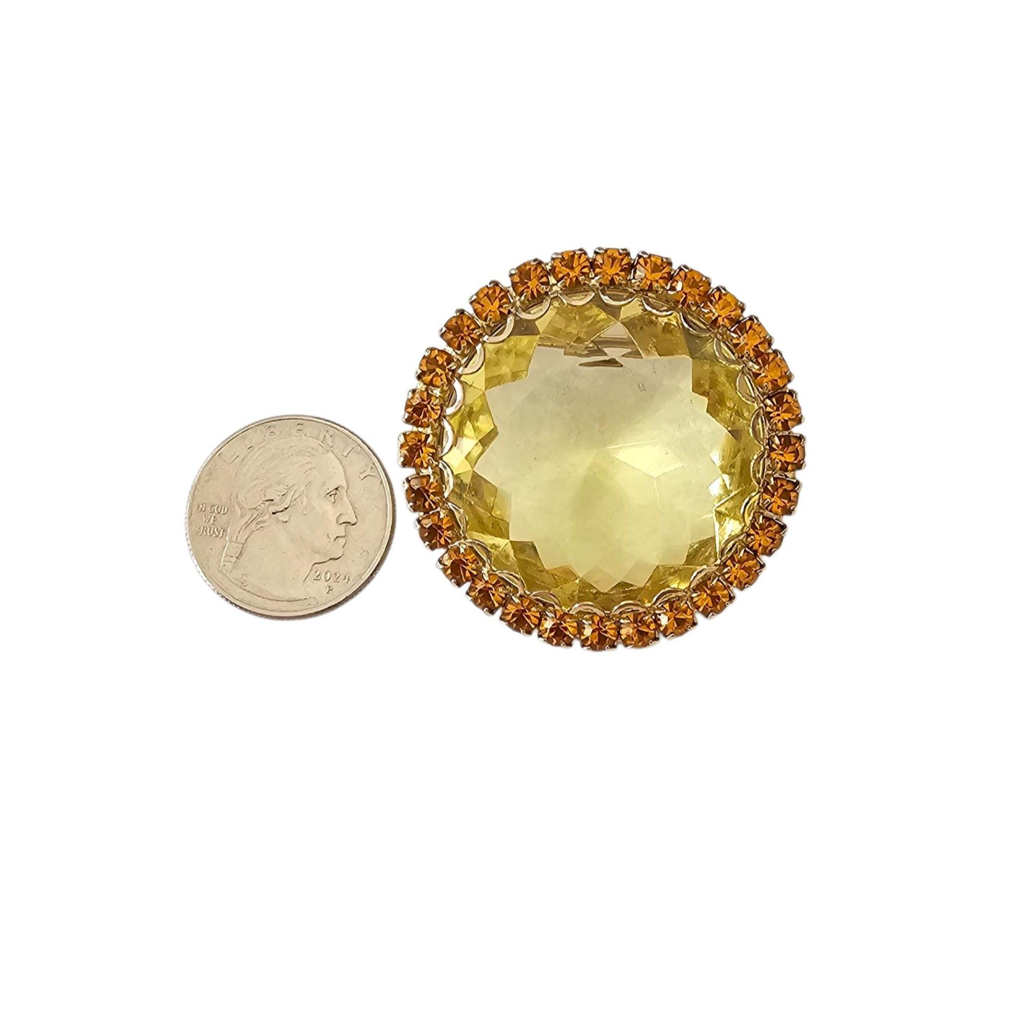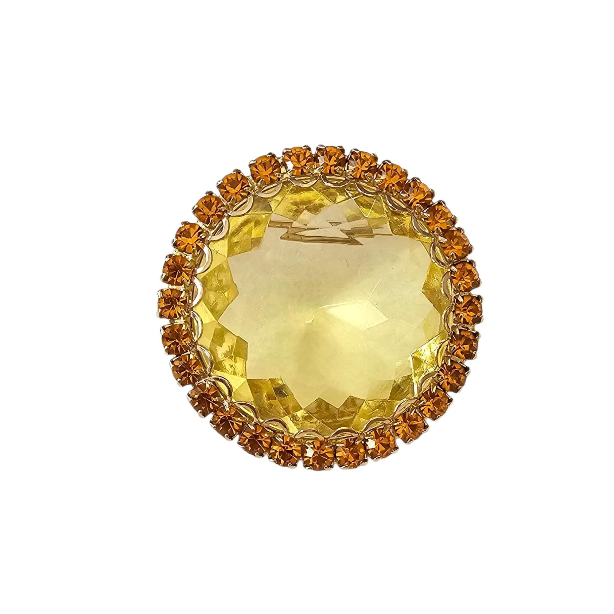 Round Vintage Faceted Yellow Chunky Rhinestone Brooch C470