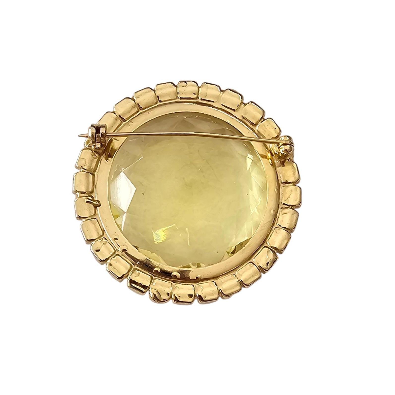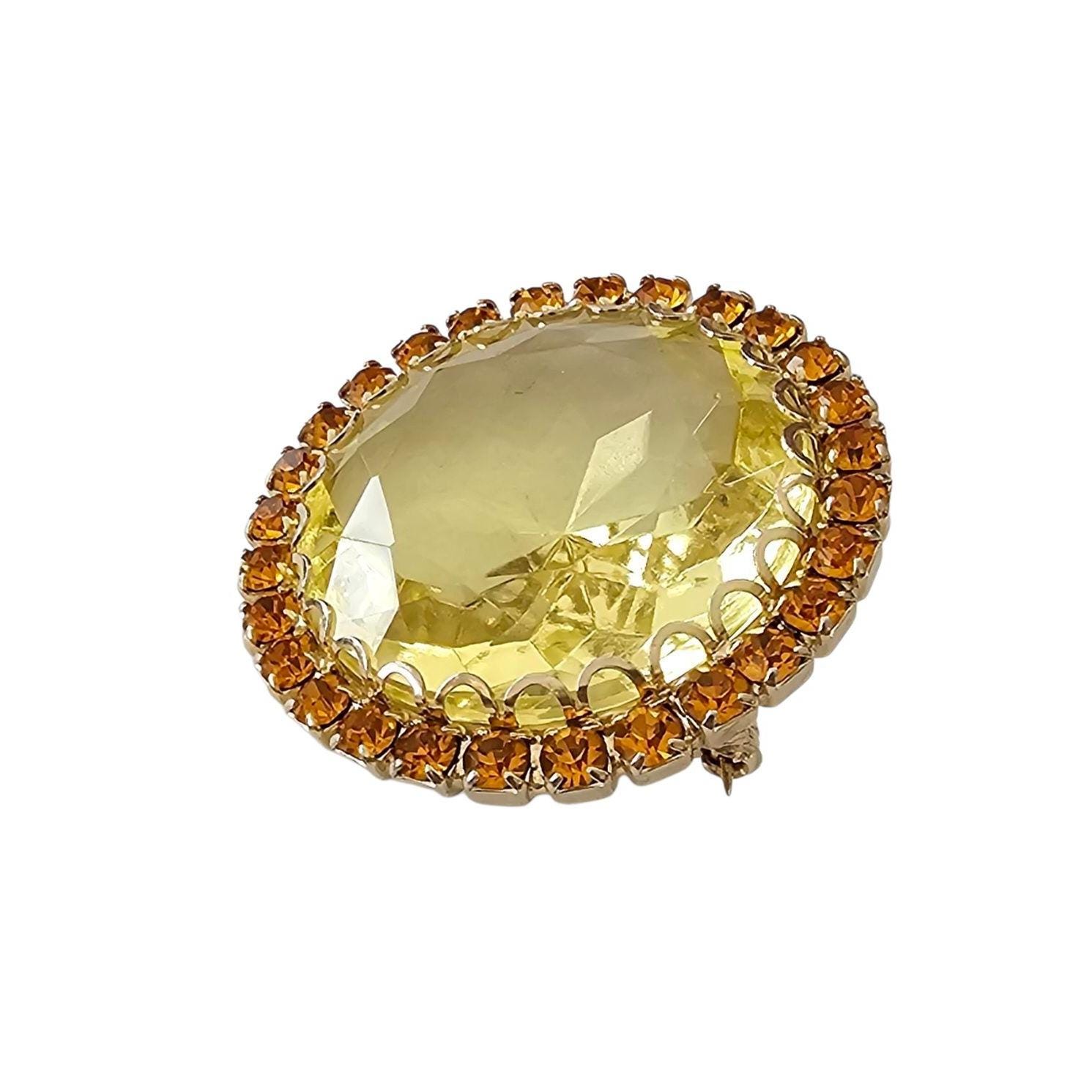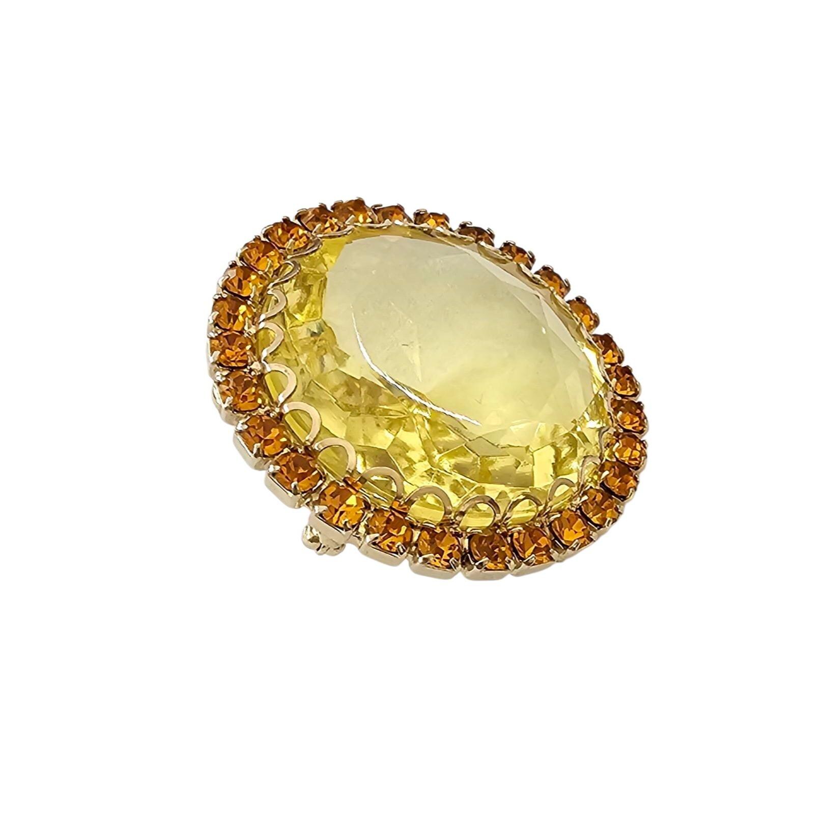 Round Vintage Faceted Yellow Chunky Rhinestone Brooch C470