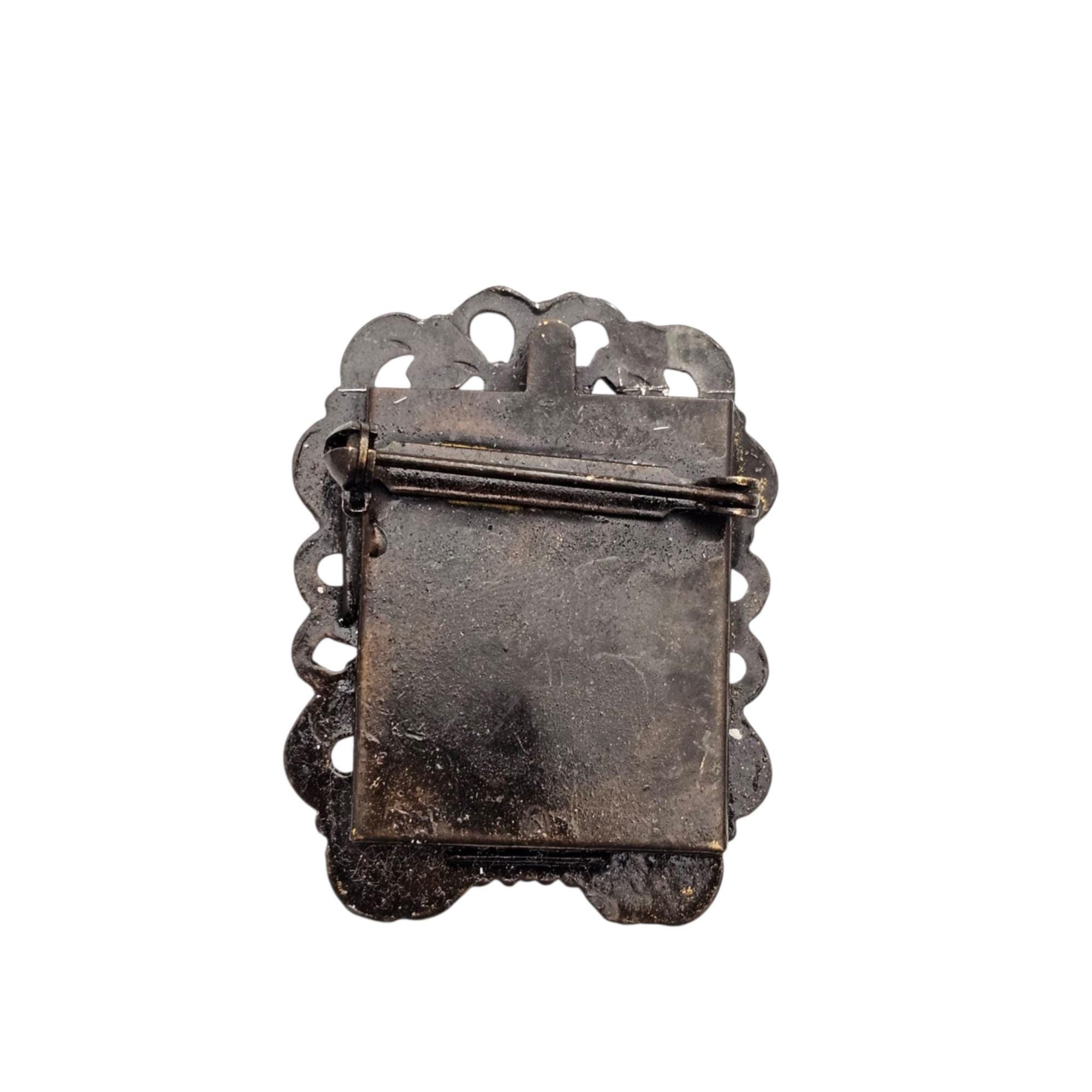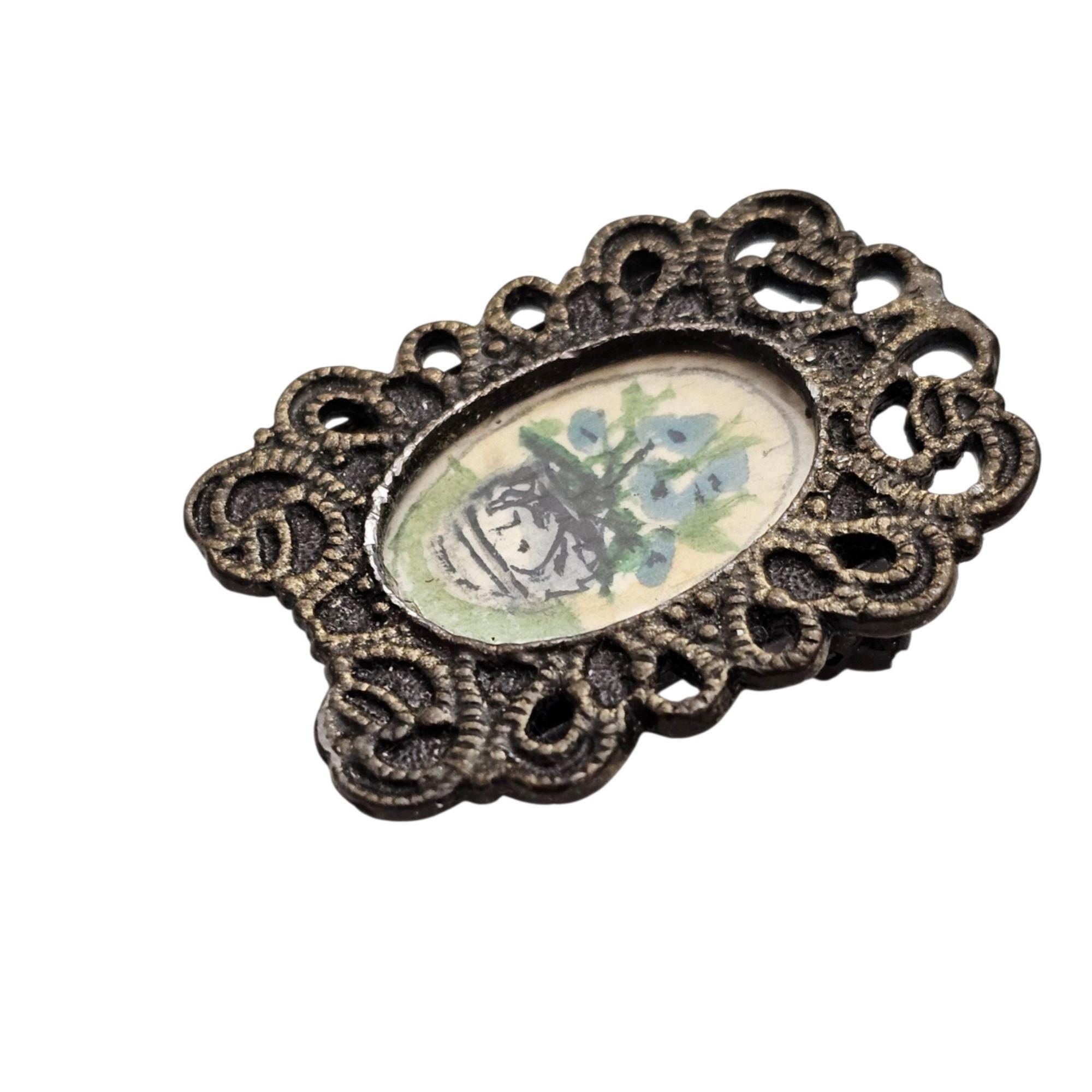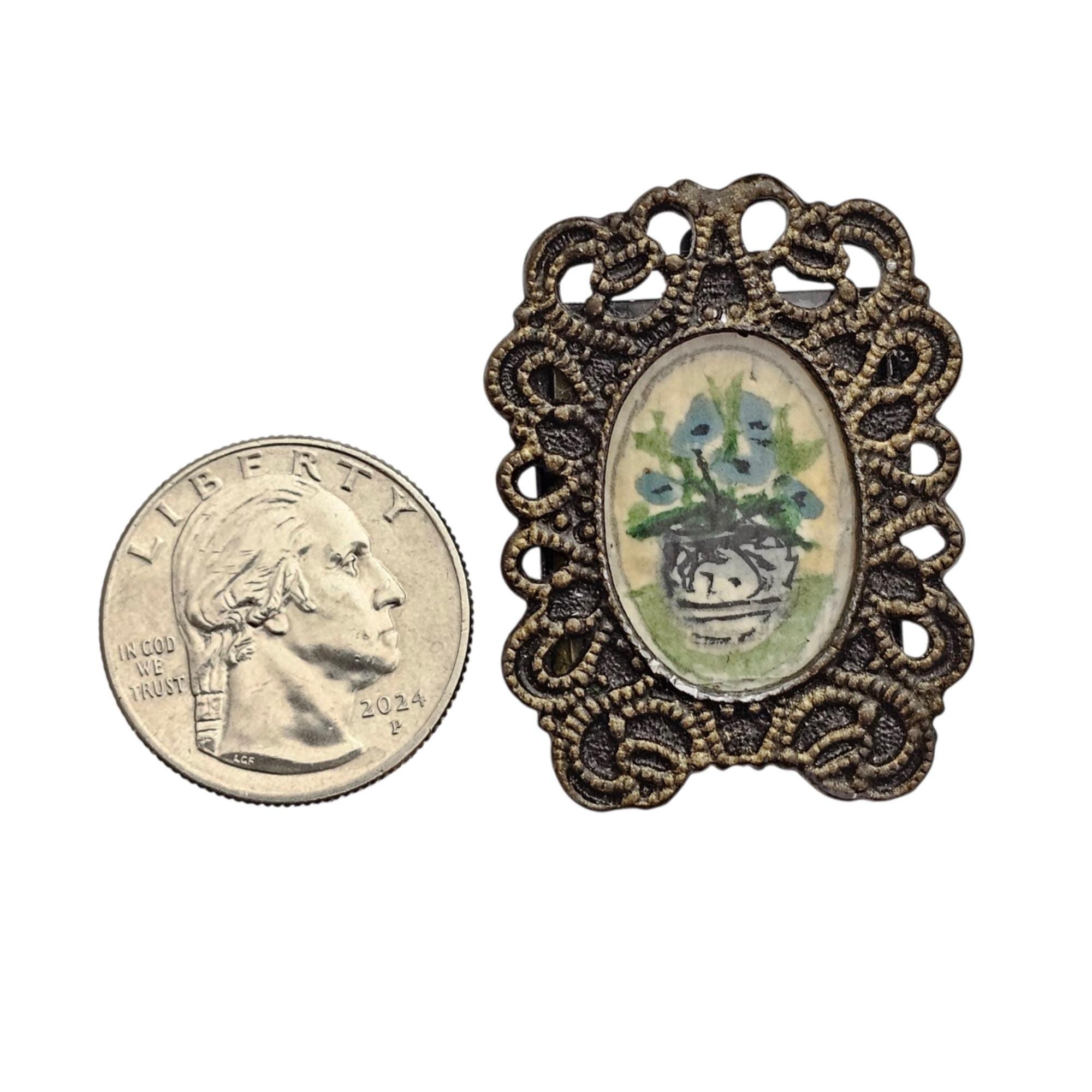 Vase of Flowers Mini Painting In Frame Brooch Water Color Vintage Pin C507