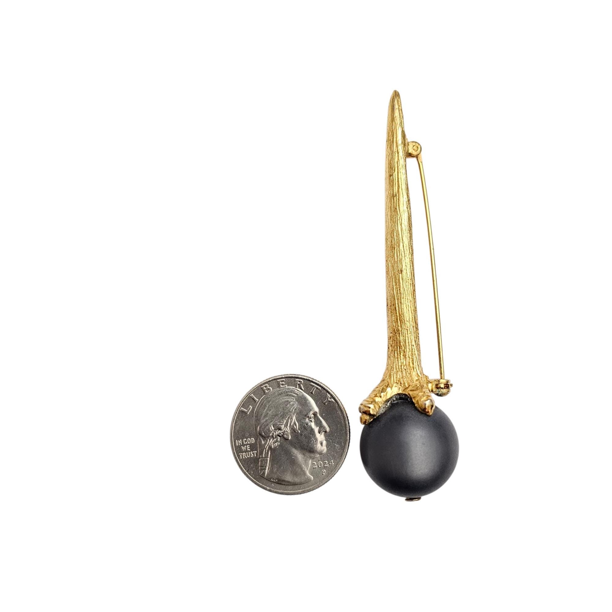 Gold Tone Eagle Claw Blue Gray Lucite Jelly Ball Brooch Vintage Pin C503