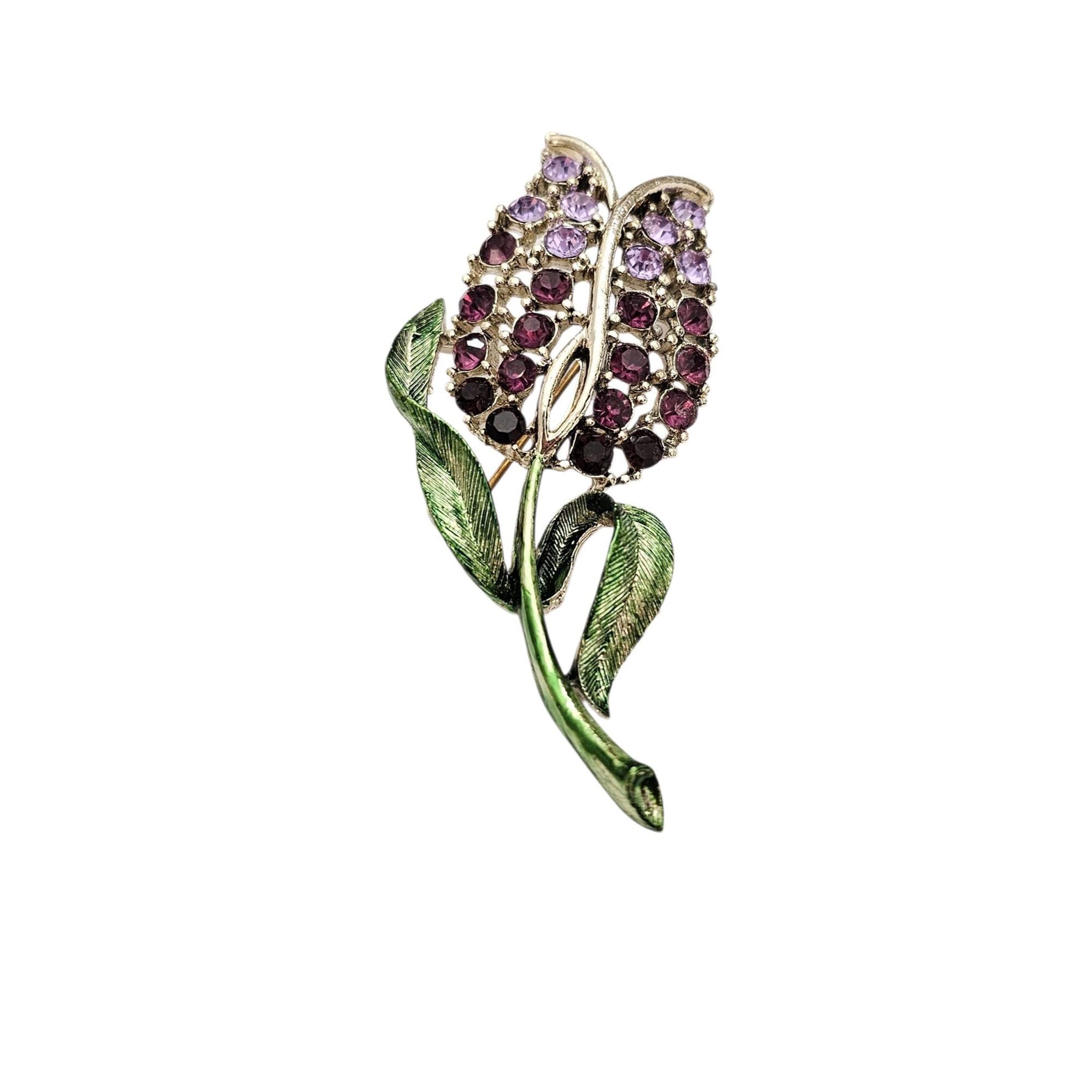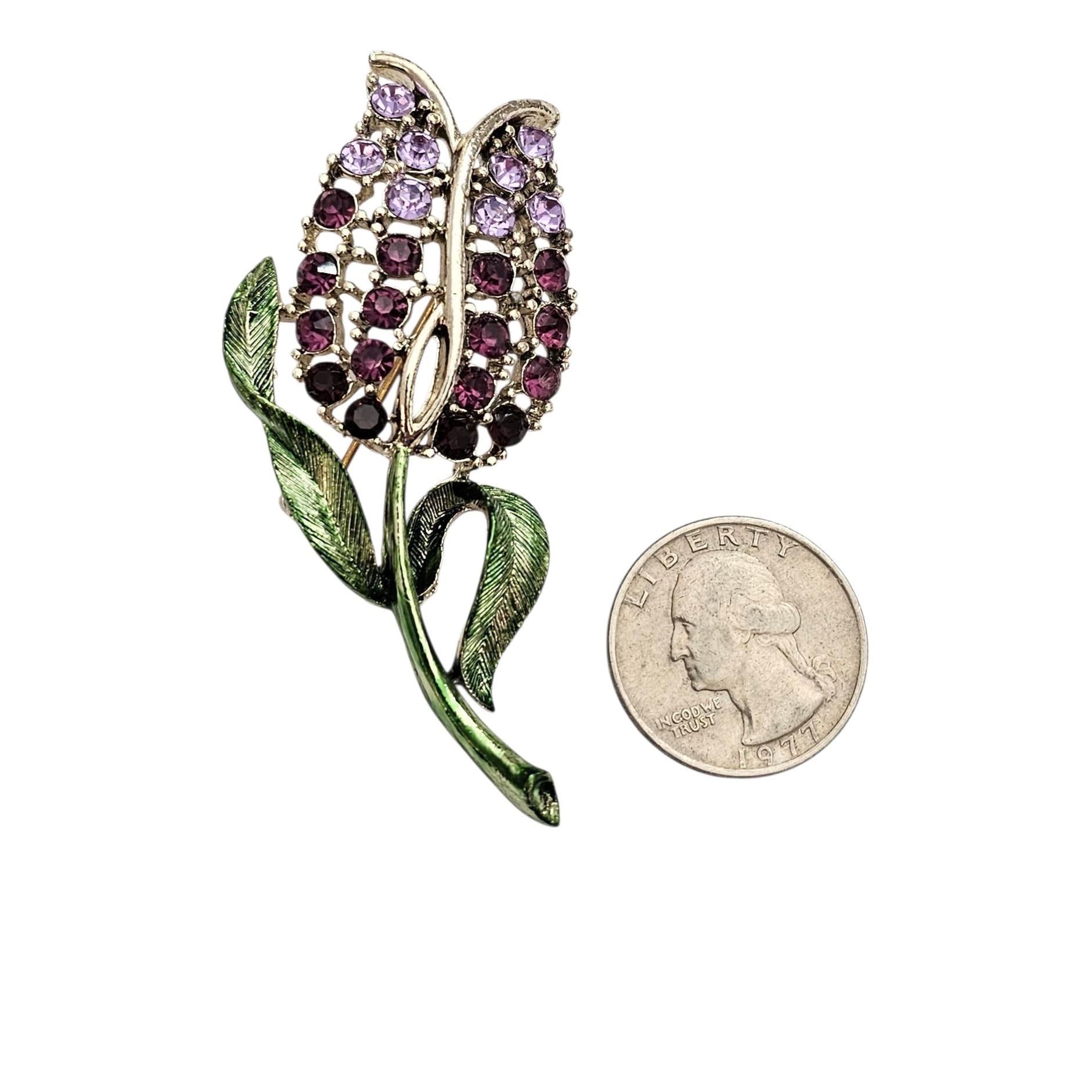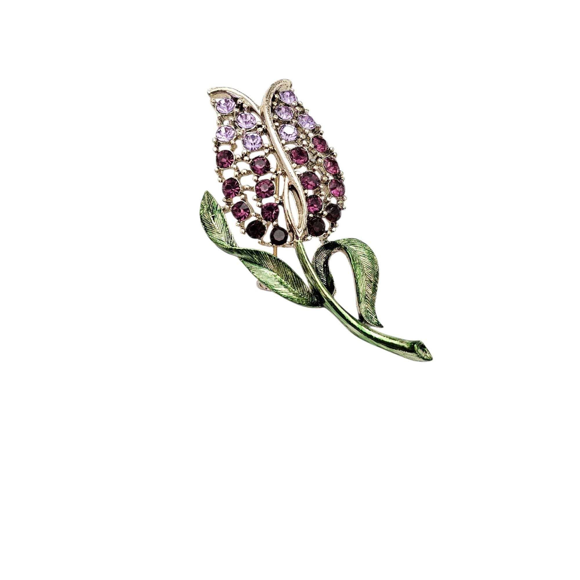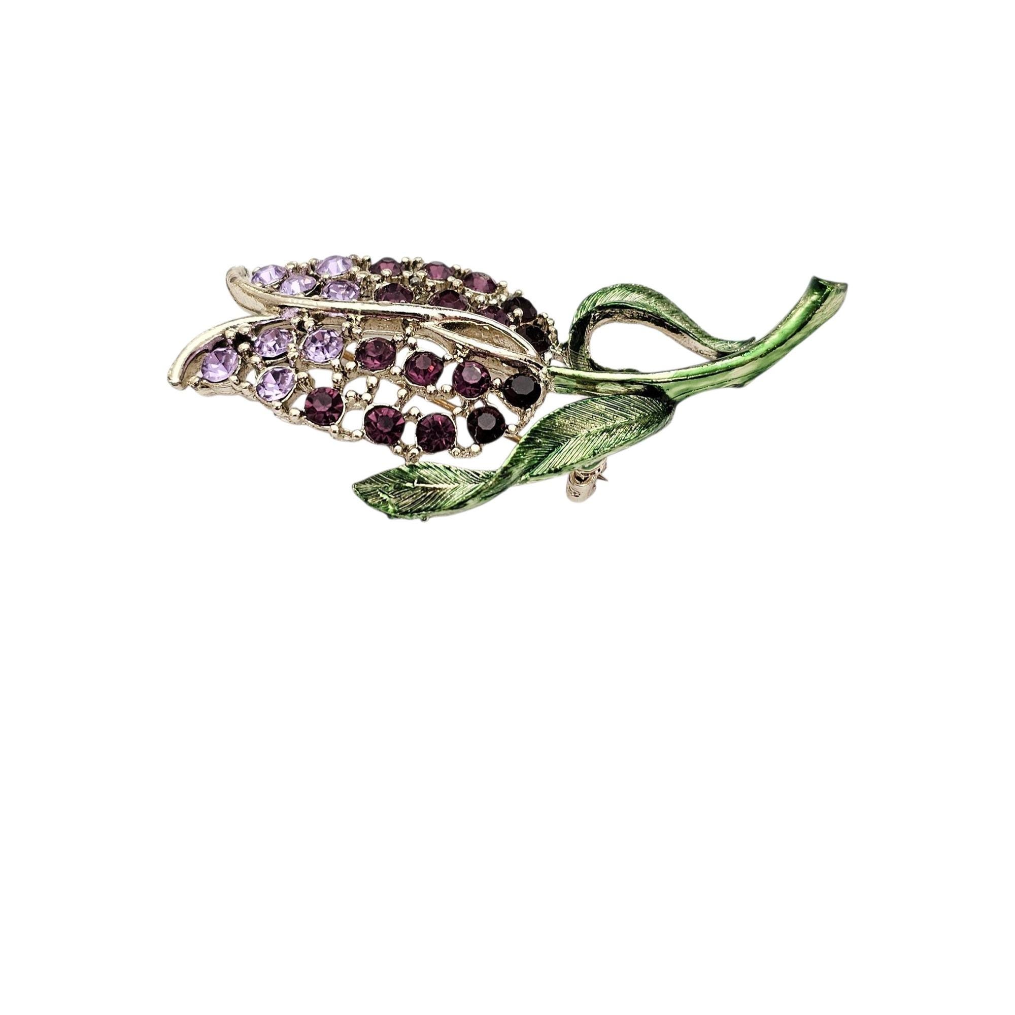 Purple Rhinestone Tulip Brooch Green Enamel Vintage Pin, C497