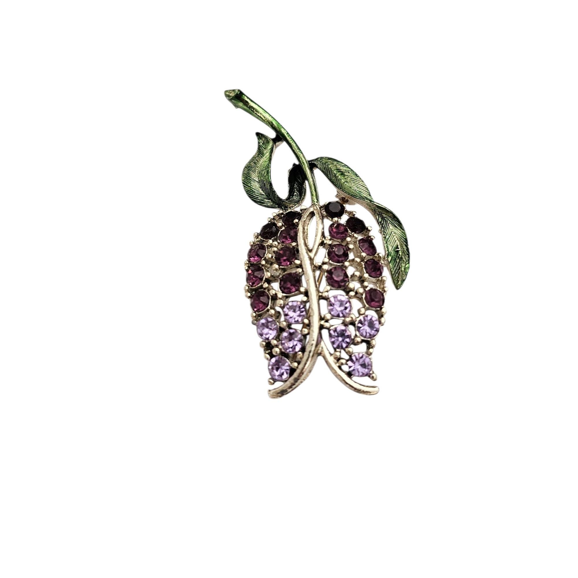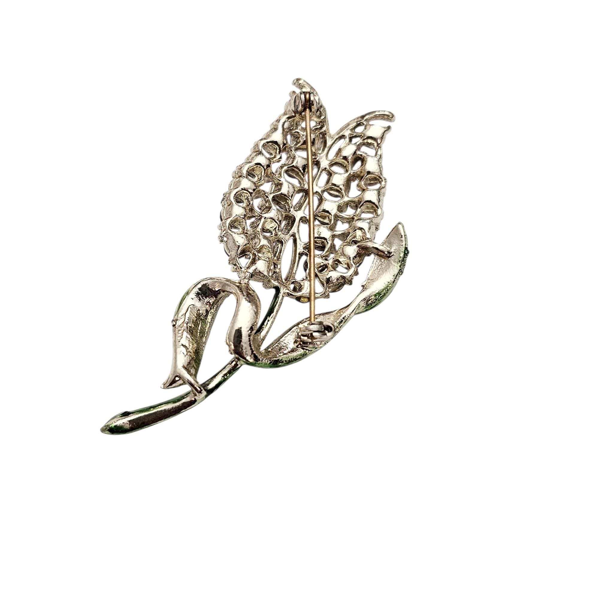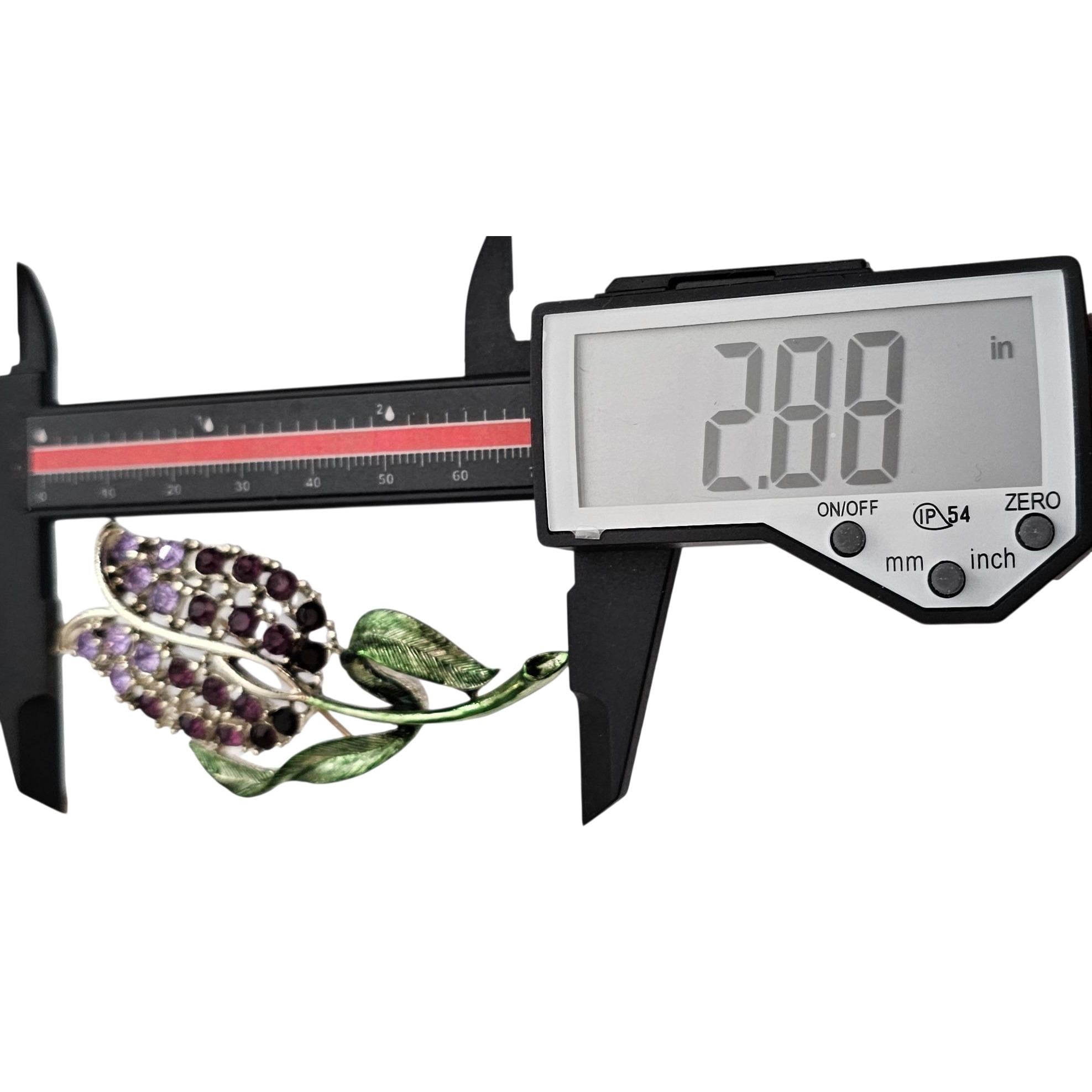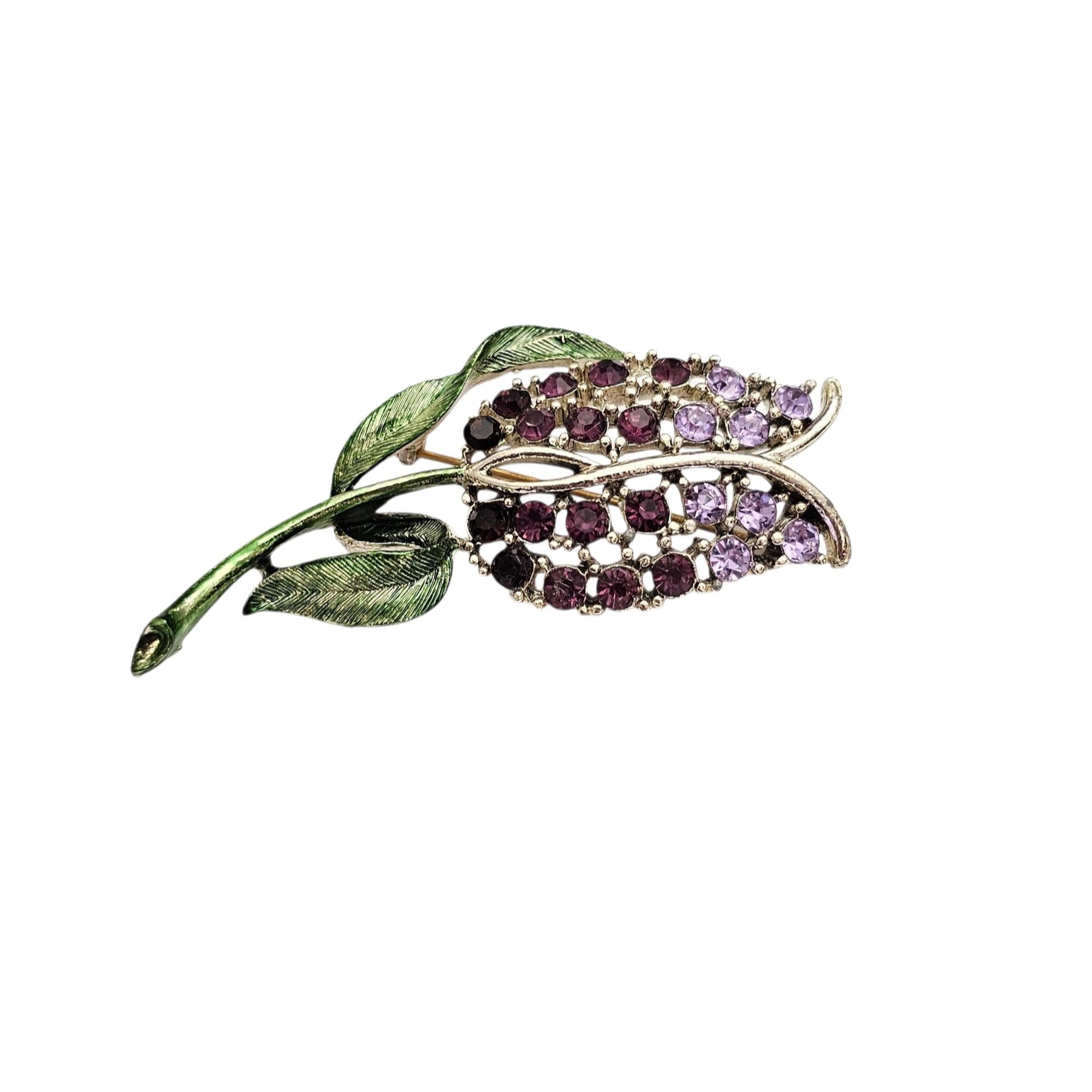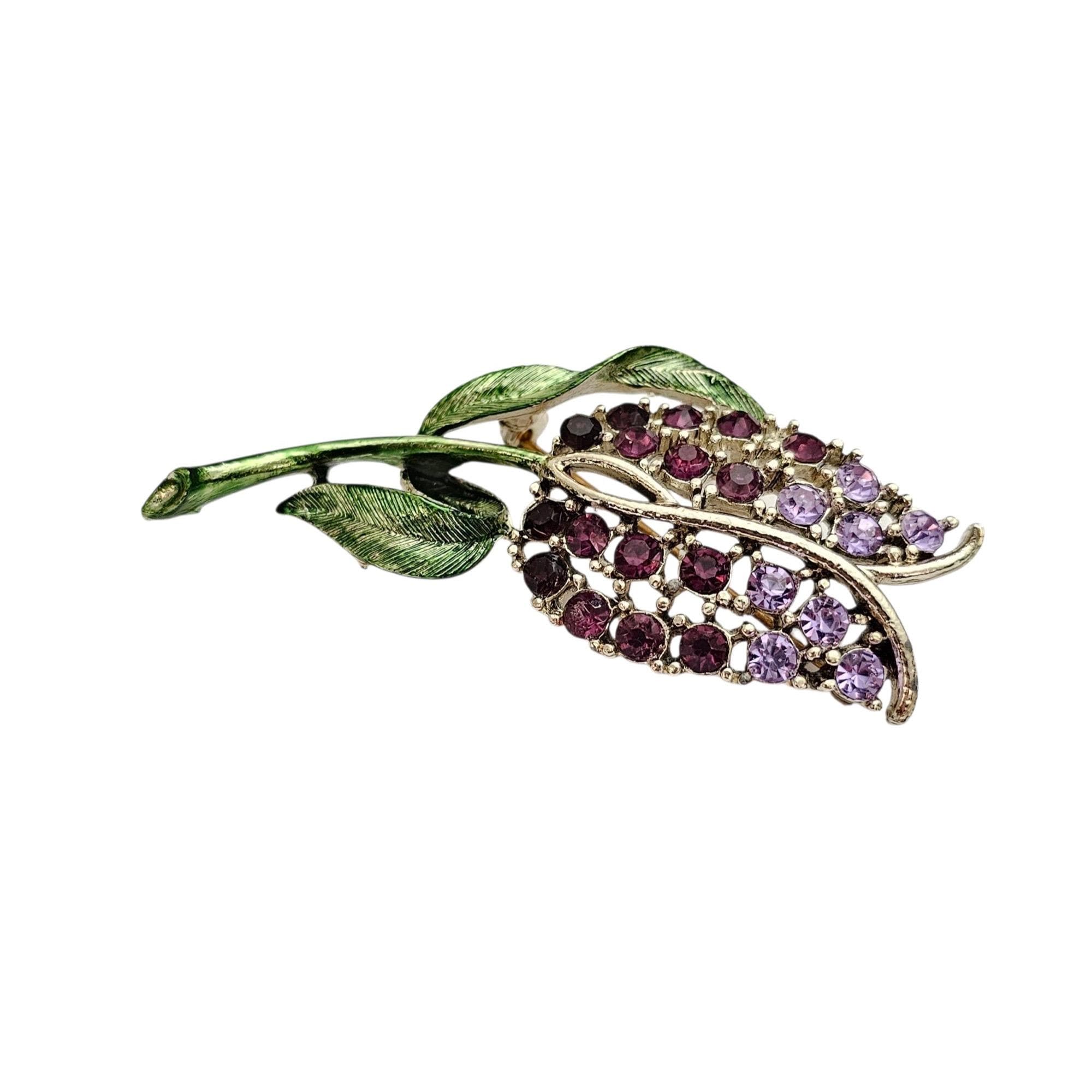 Purple Rhinestone Tulip Brooch Green Enamel Vintage Pin, C497