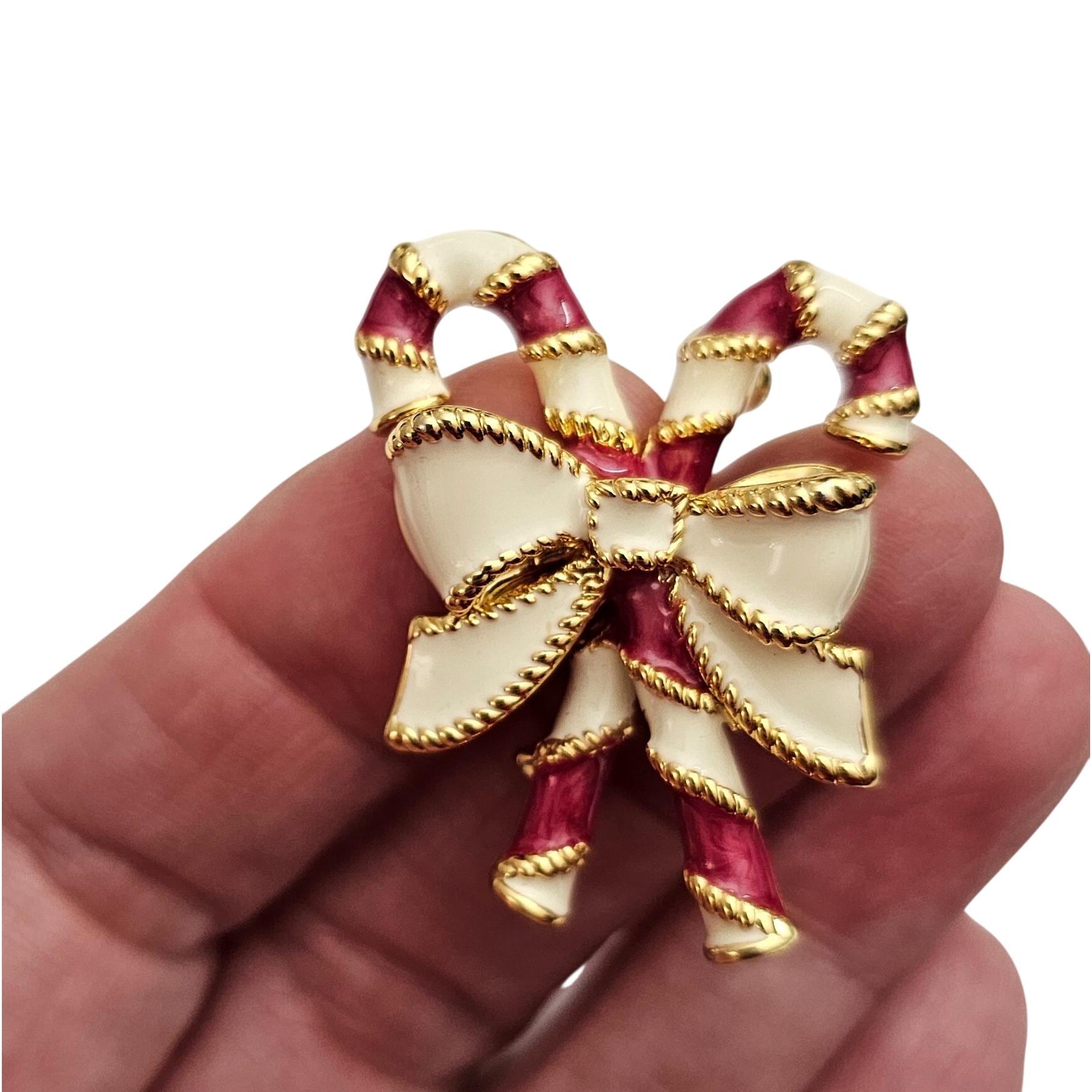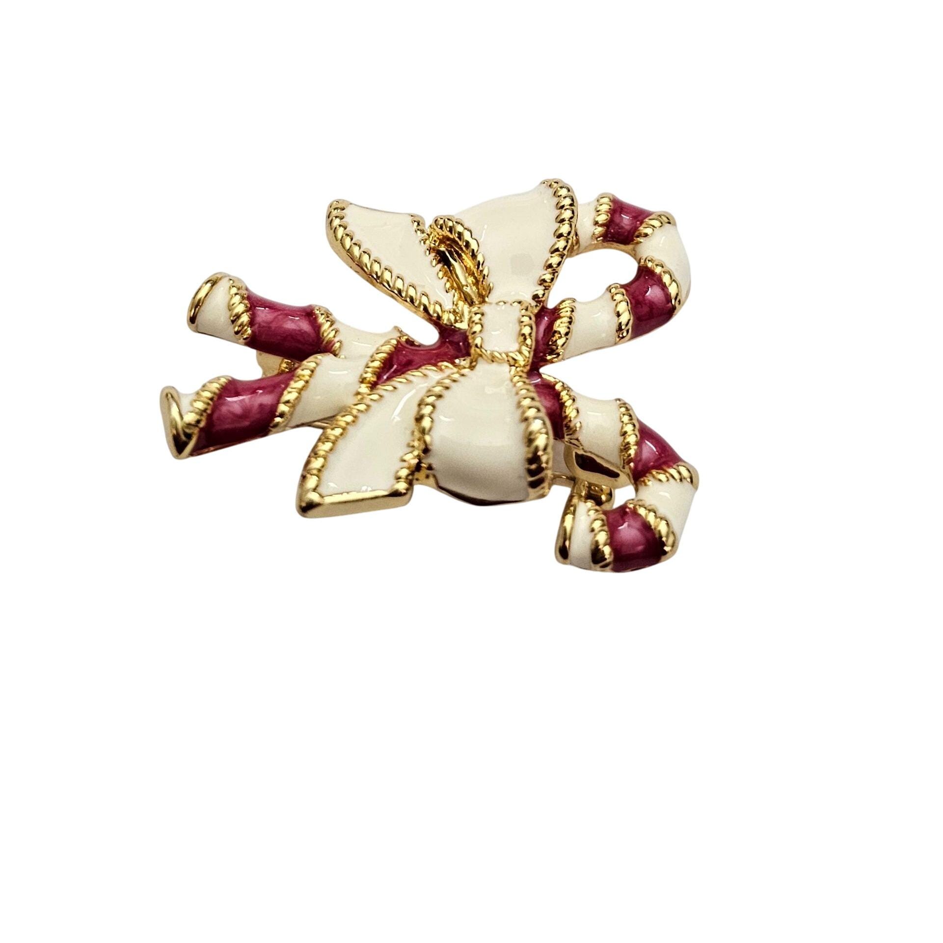 Red Creme Candy Cane Brooch Christmas Pin C519