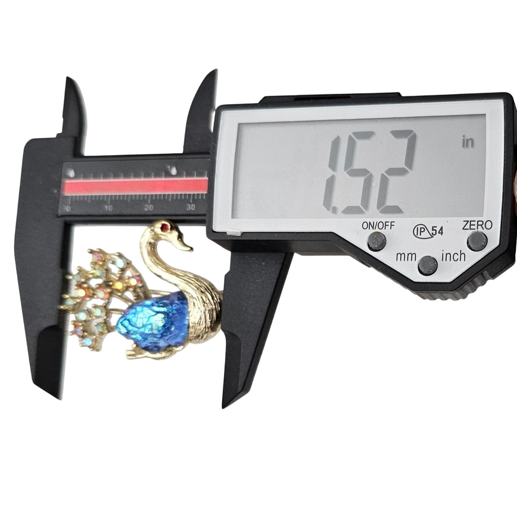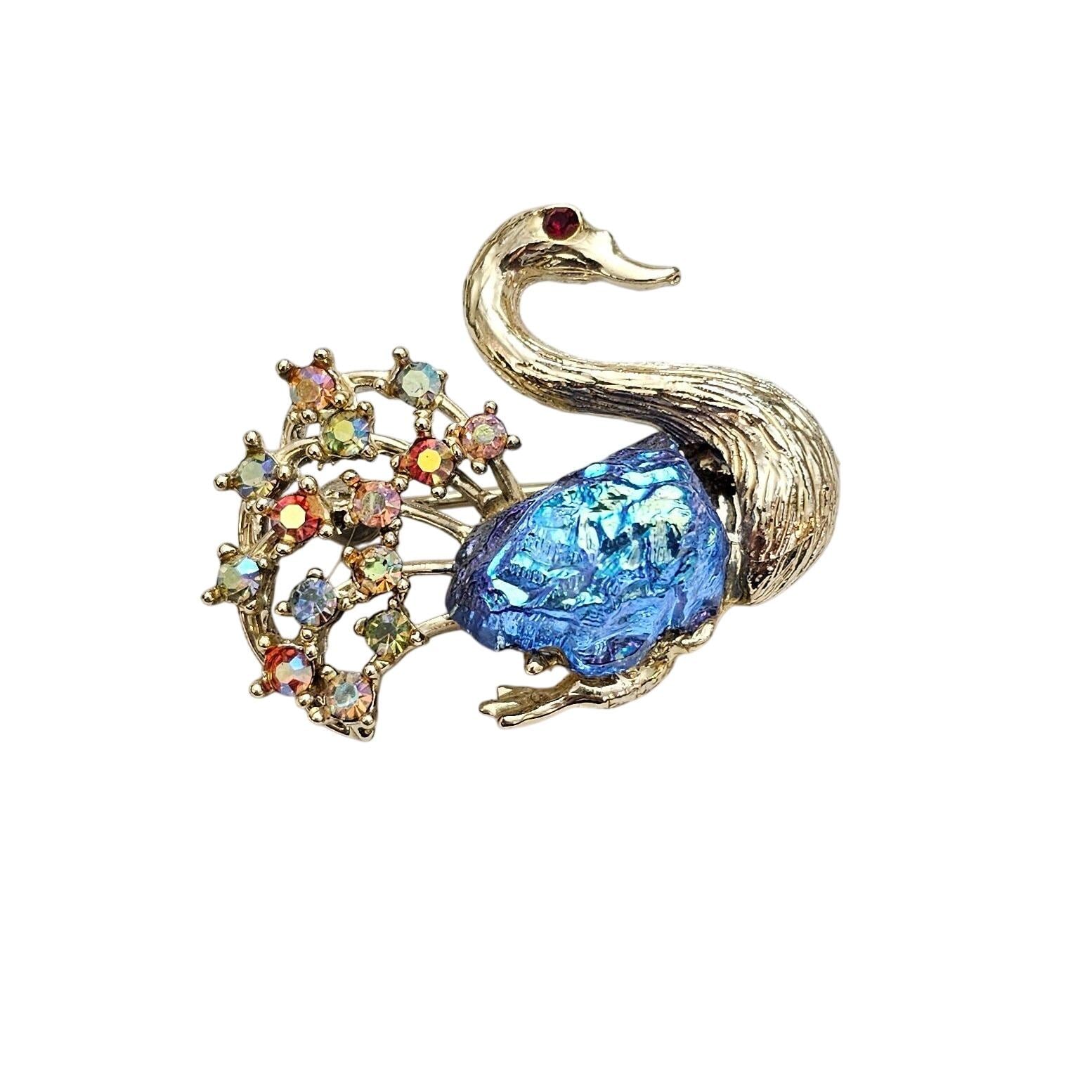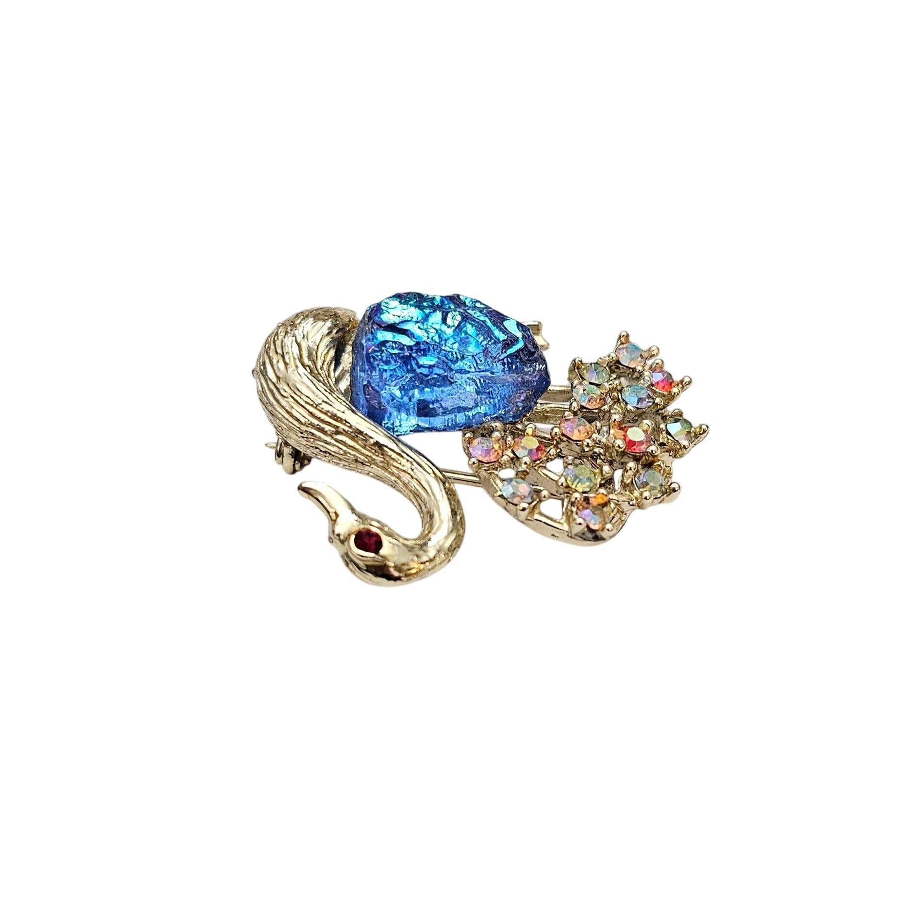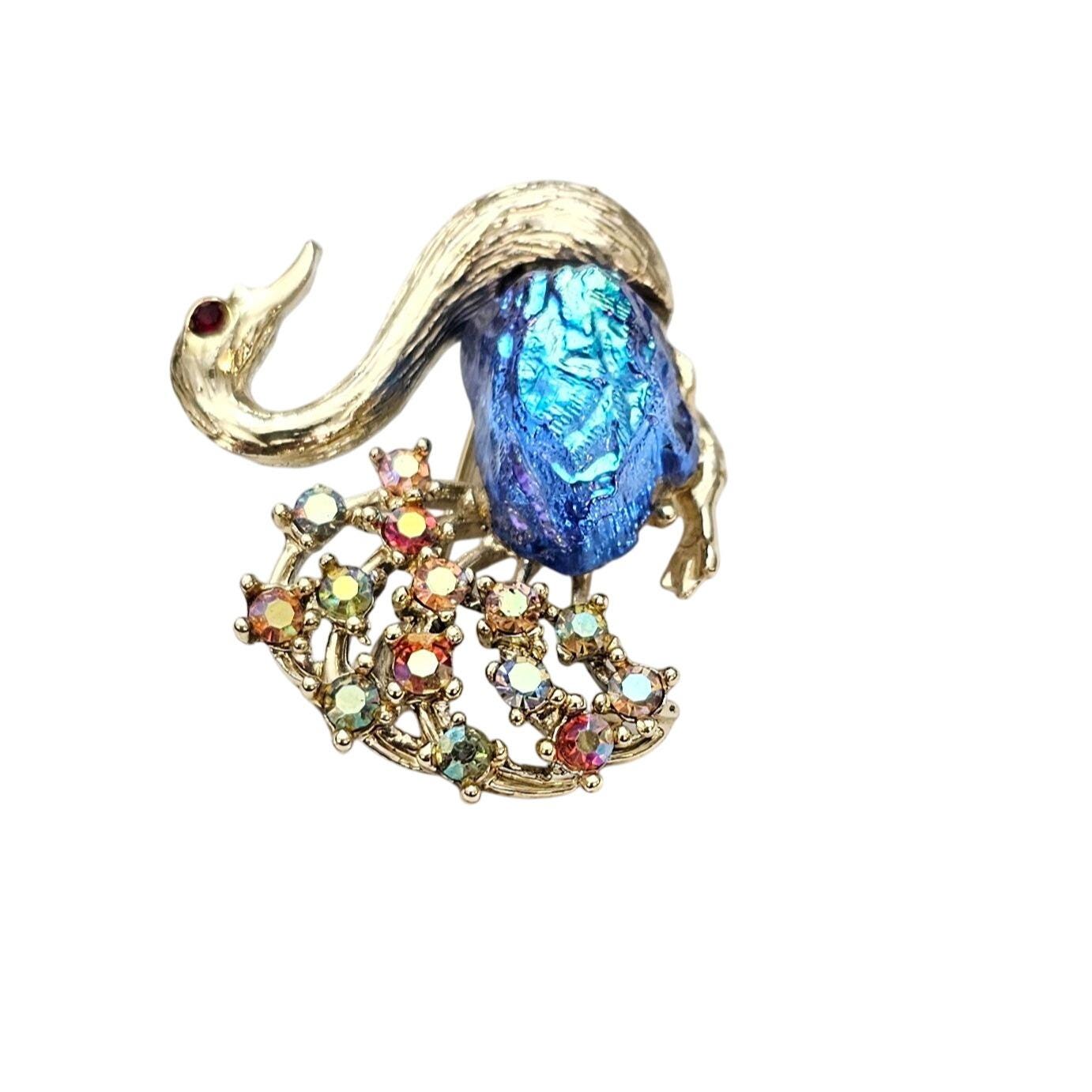 BSK Blue AB Lava Rhinestone Swan Brooch Multicolor Chaton Pin Signed C540