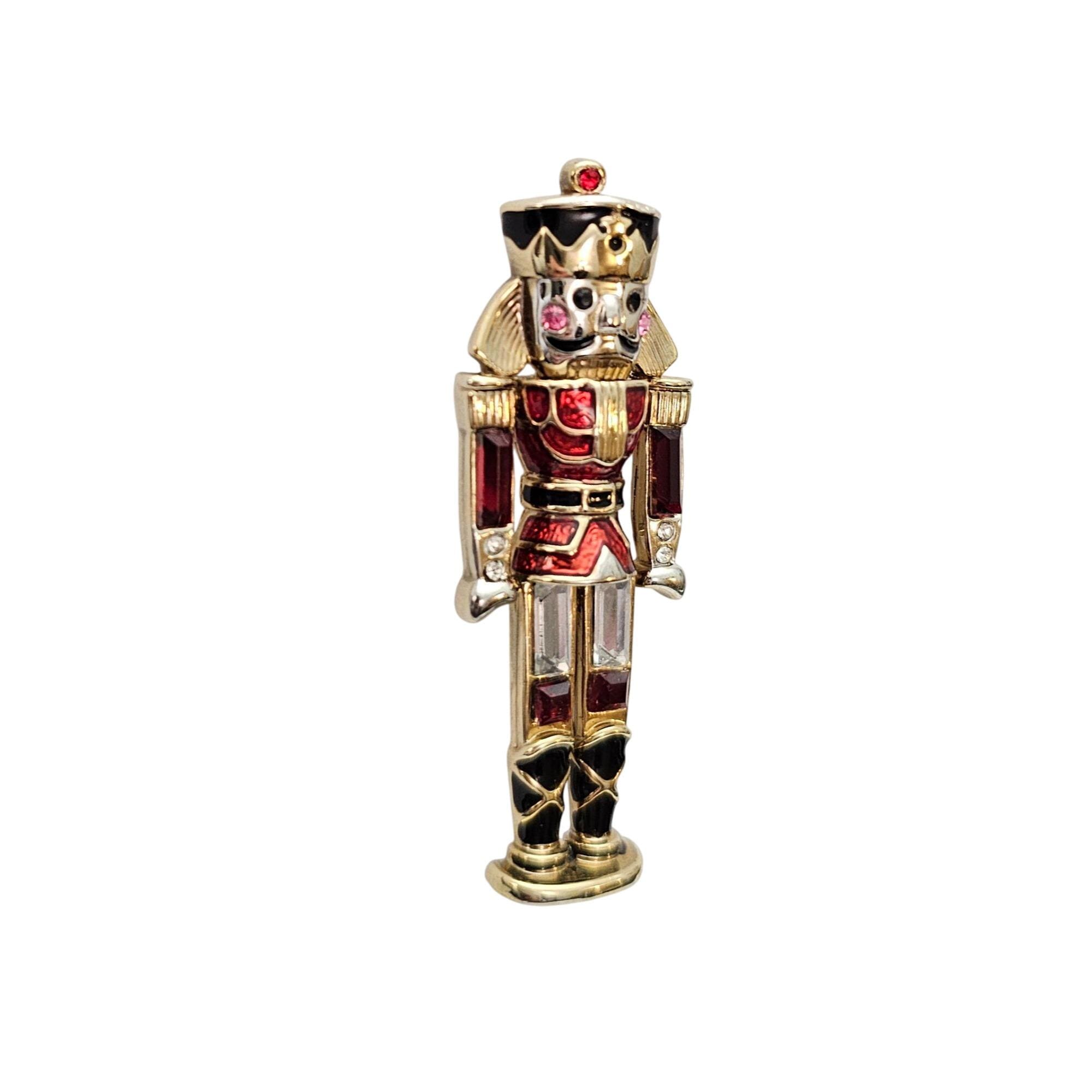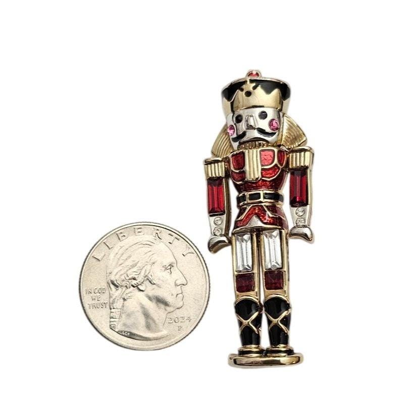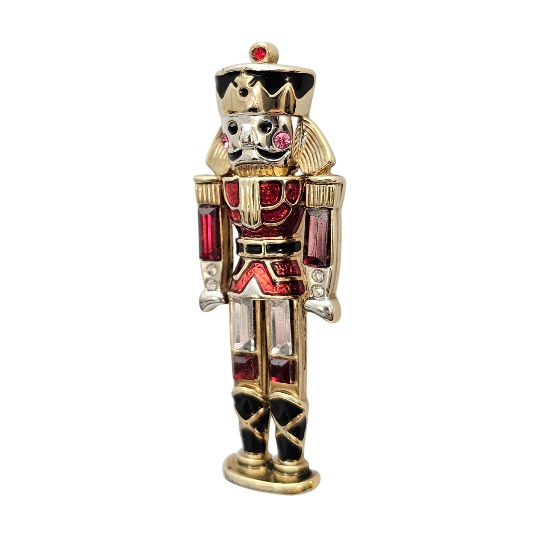 Monet Nutcracker Soldier Christmas Brooch Rhinestone Enamel Pin Signed C536