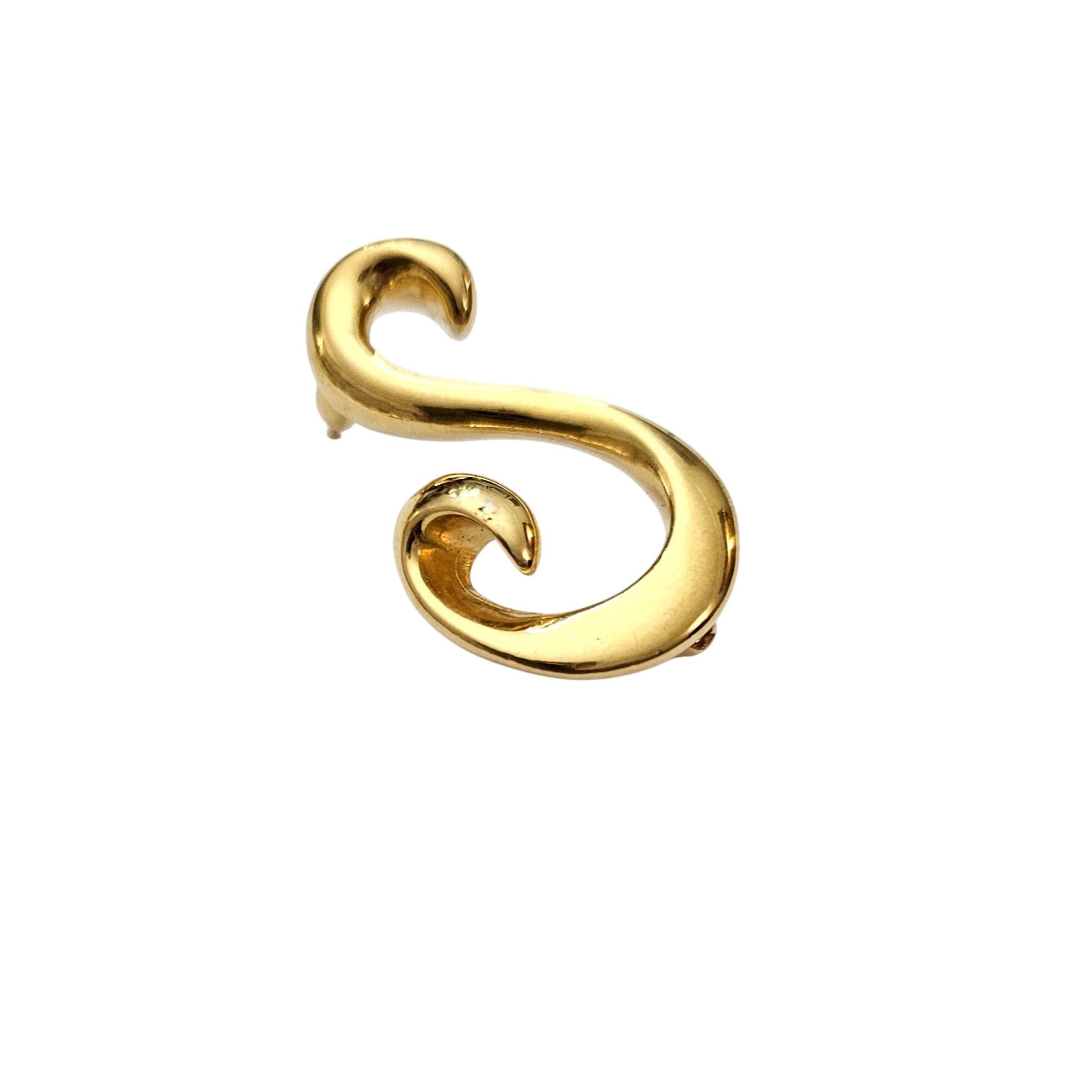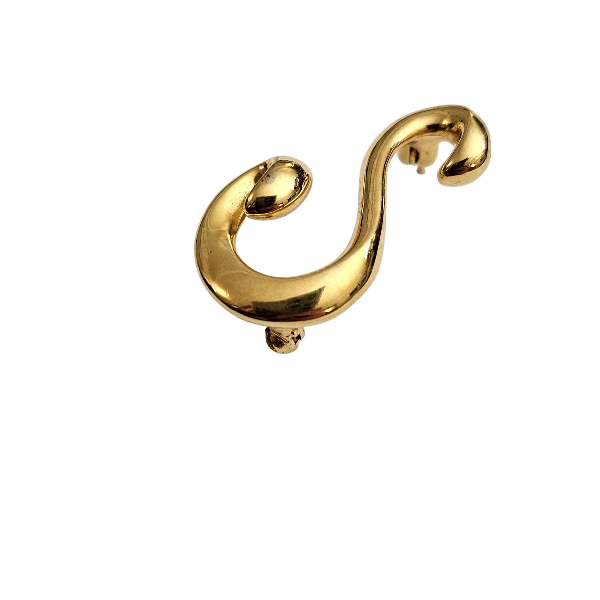 Ann Klein Letter S Brooch, Gold Tone Pin Signed C522