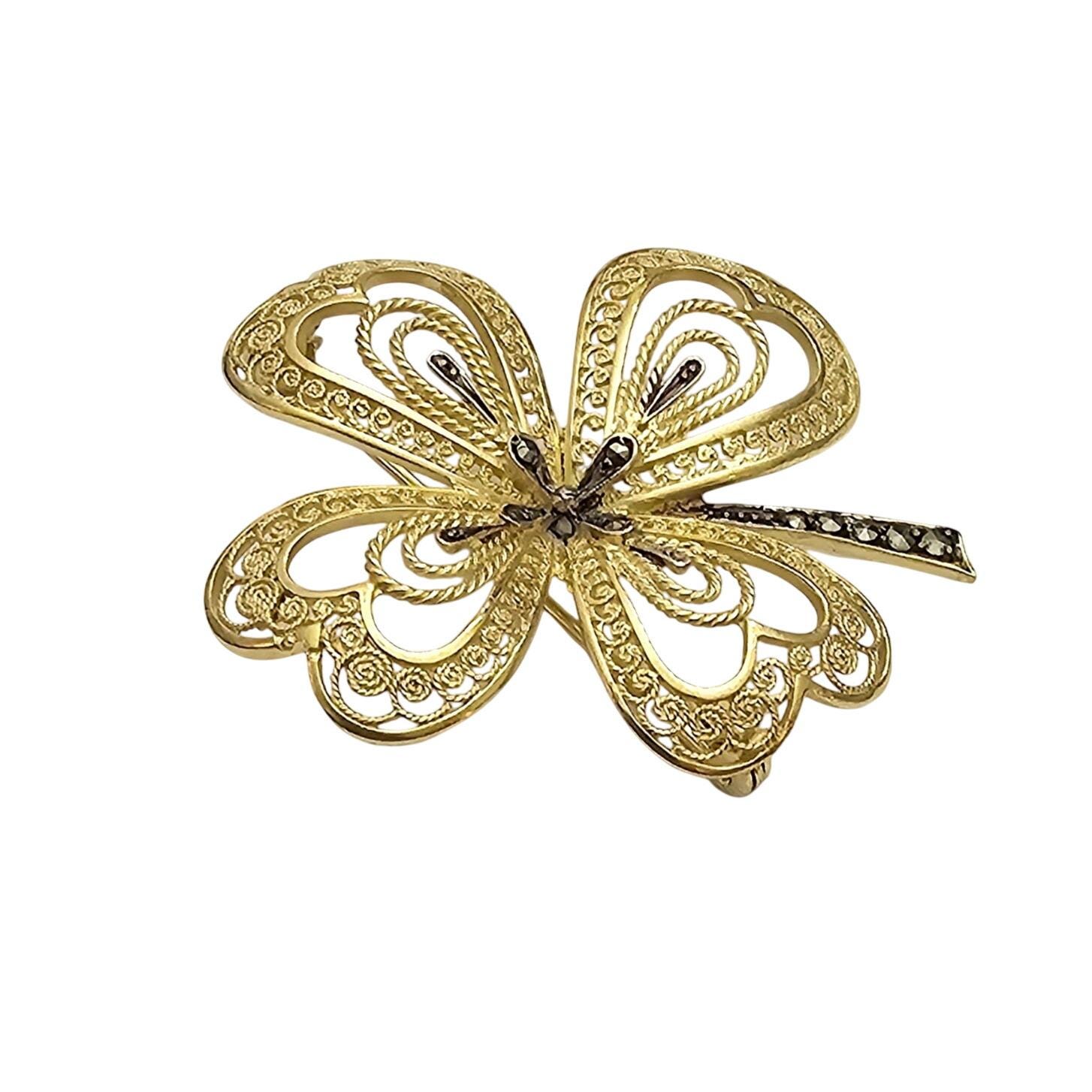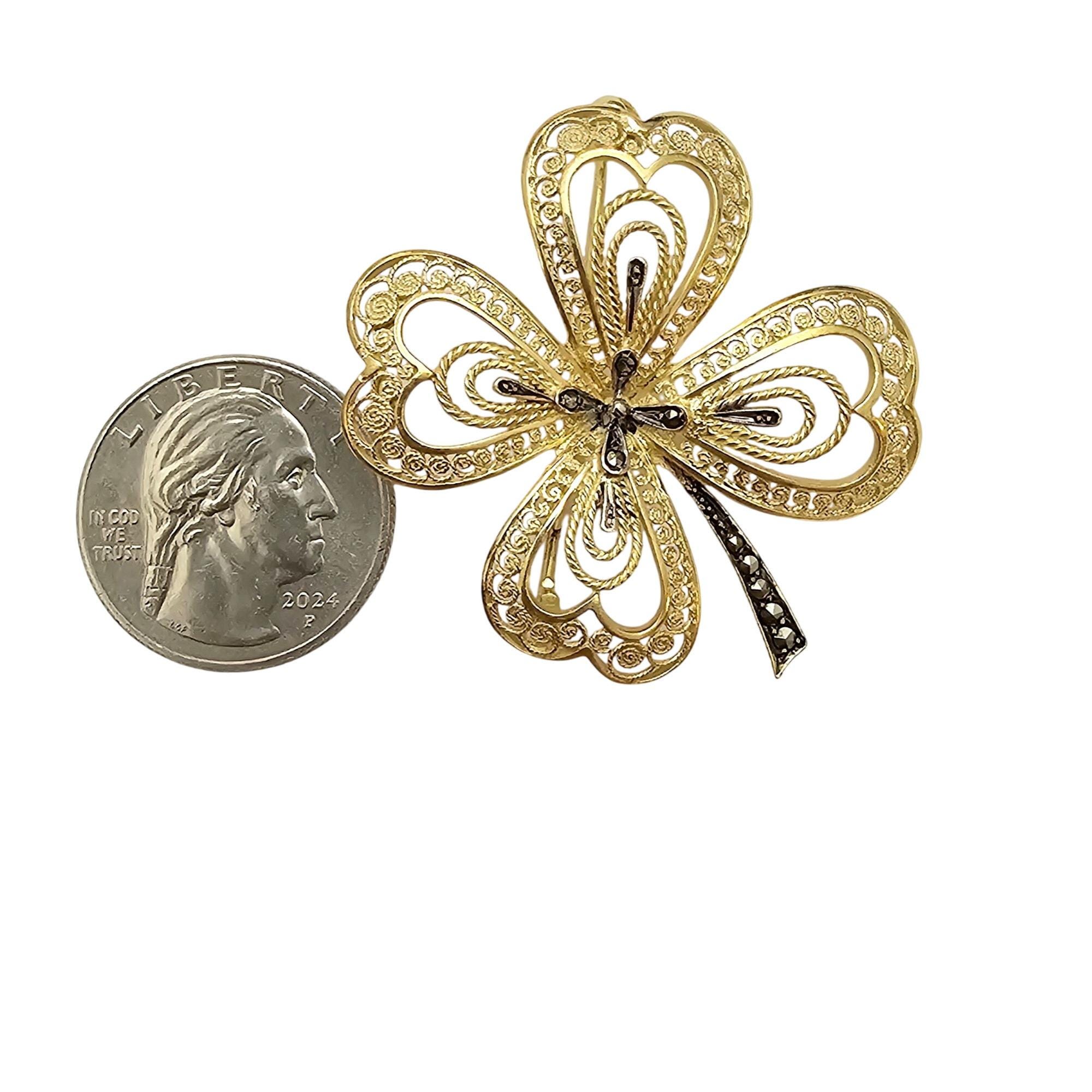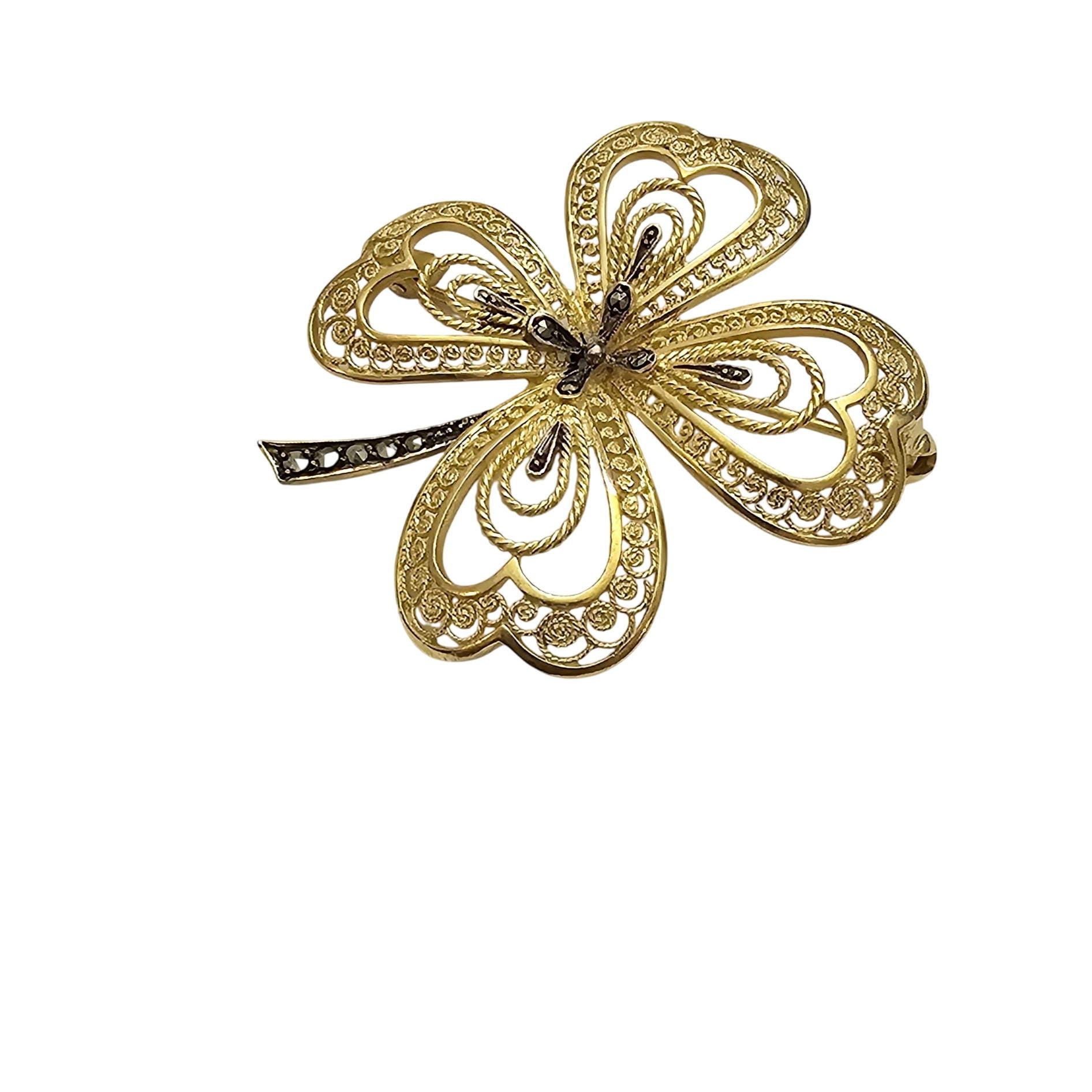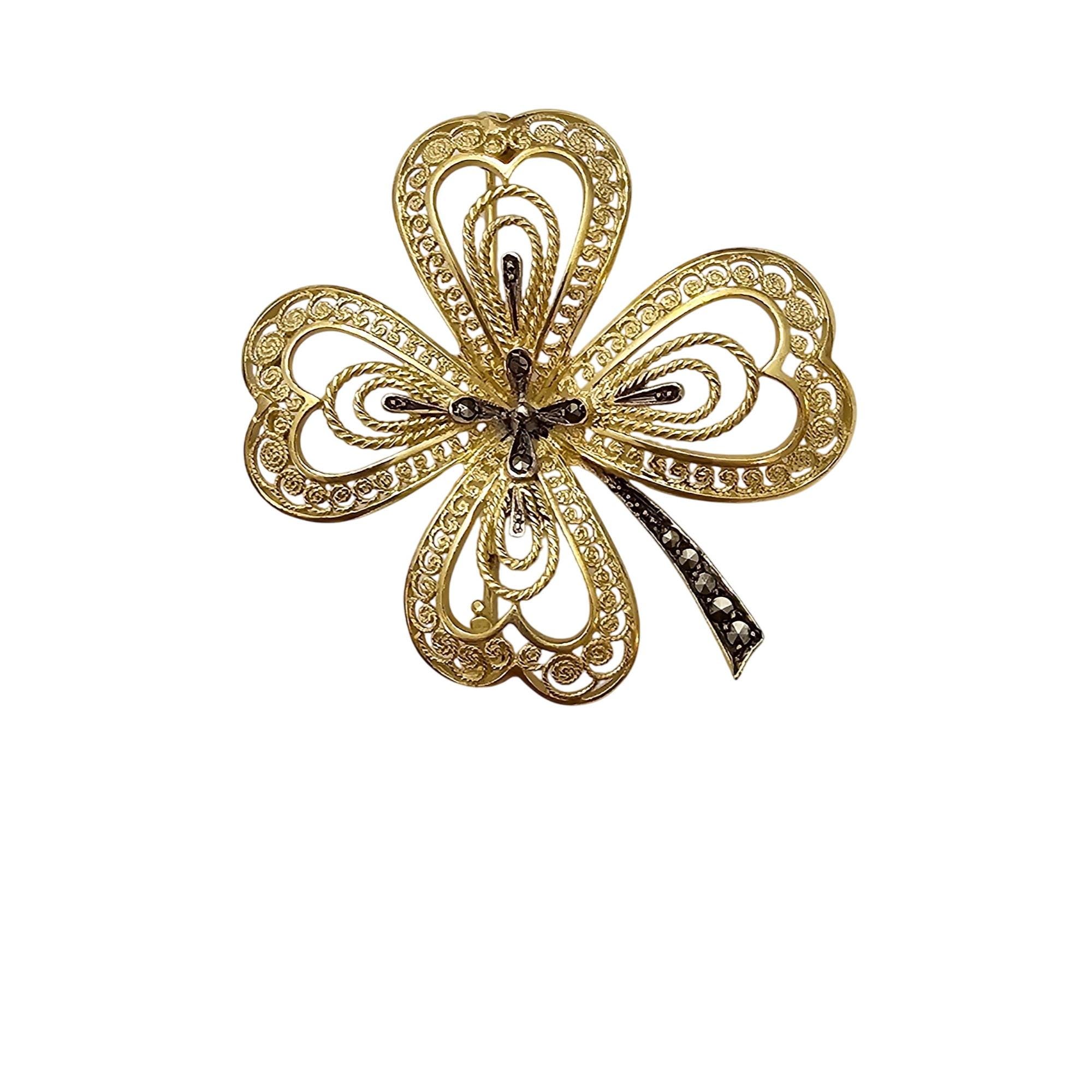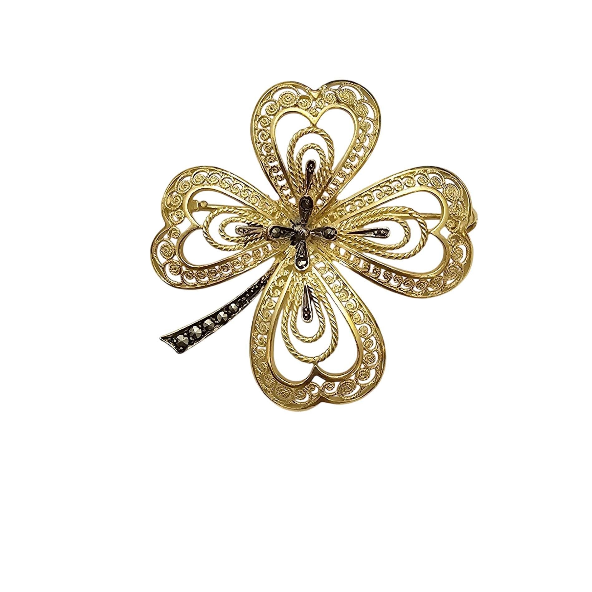 Vermeil Marcasite Clover Brooch, Sterling Germany Marcasite Pin C568