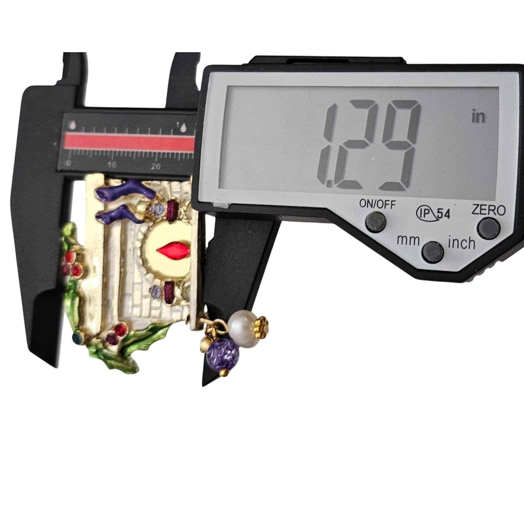 • Decorated with purple enameled Christmas stockings and dangling pearl and purple bead charms