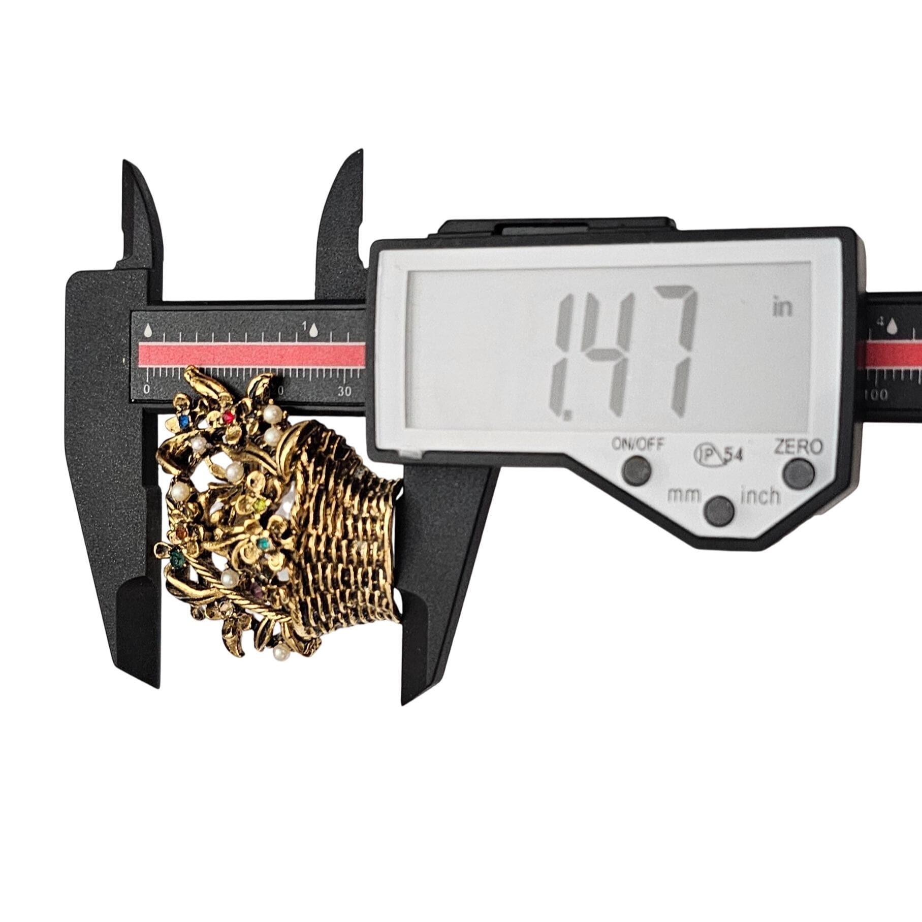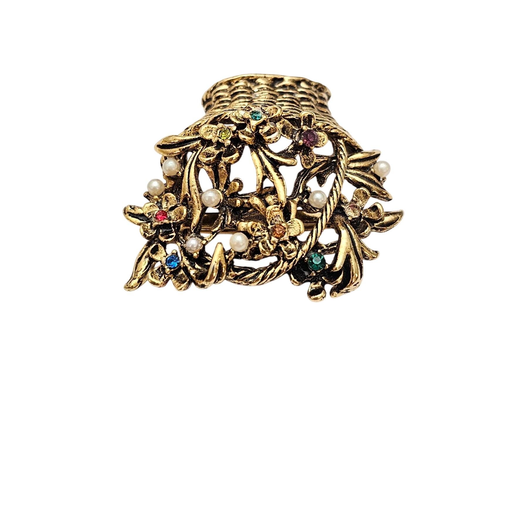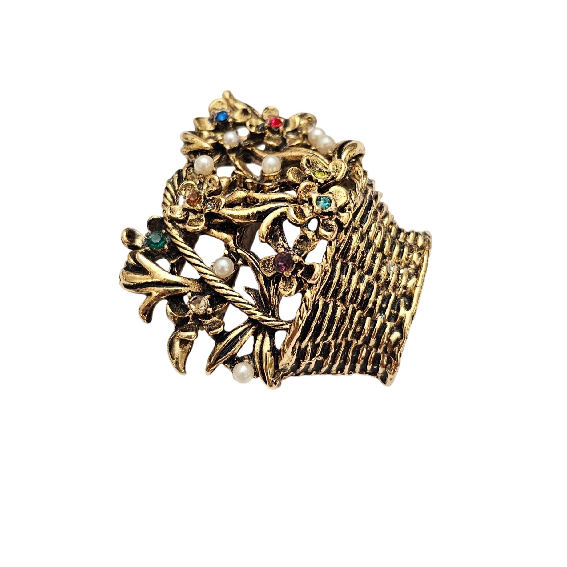 Flower Basket Brooch, Faux Pearl Rhinestone Pin C550